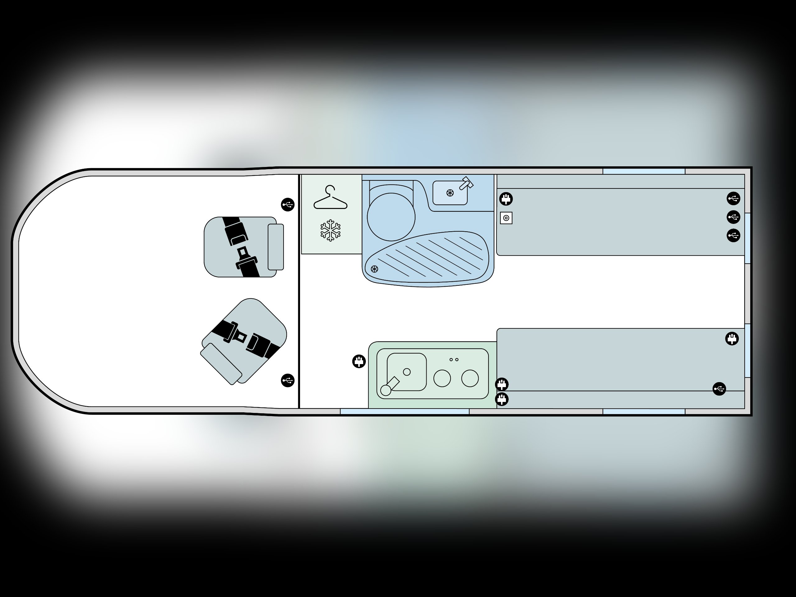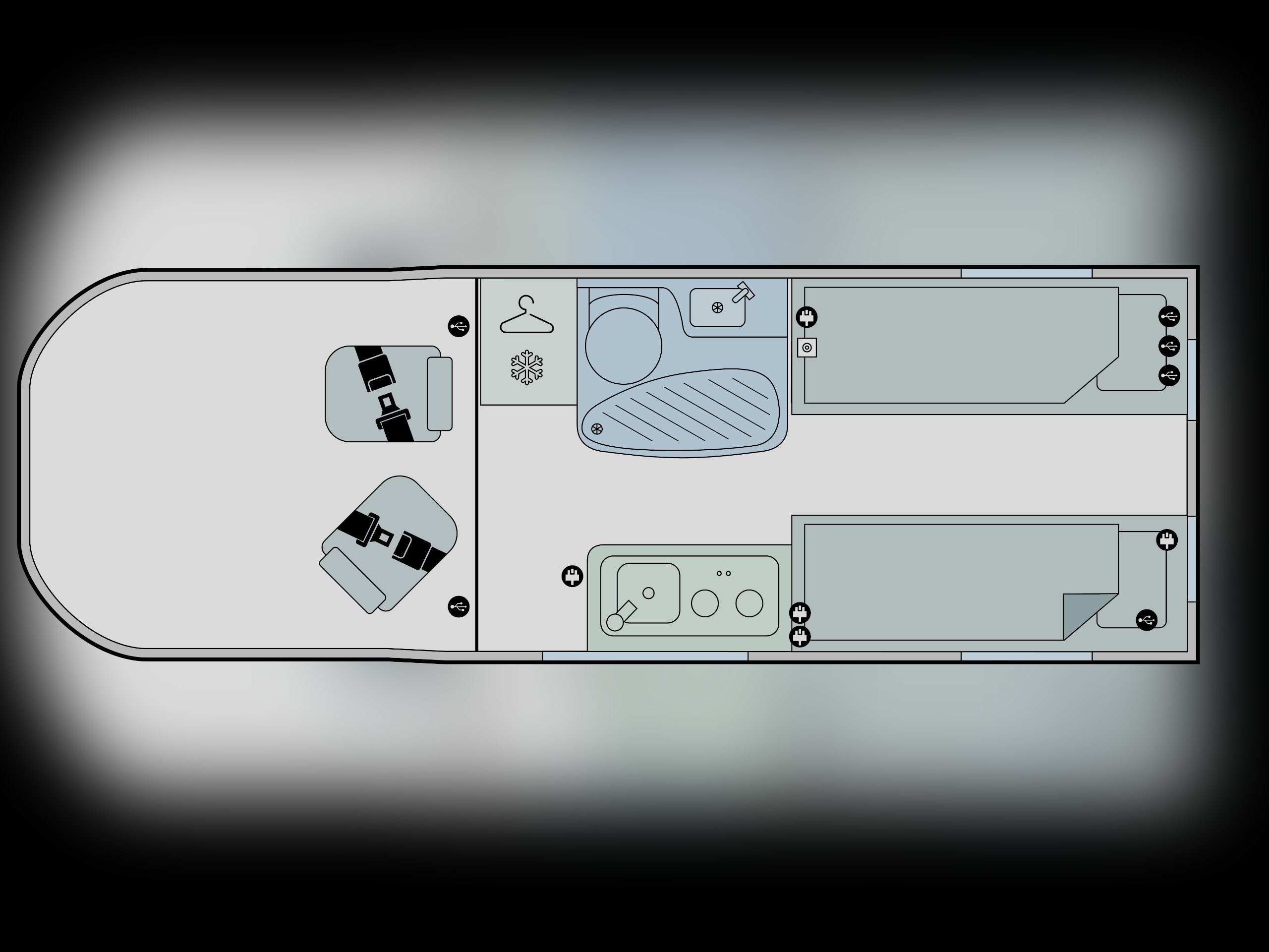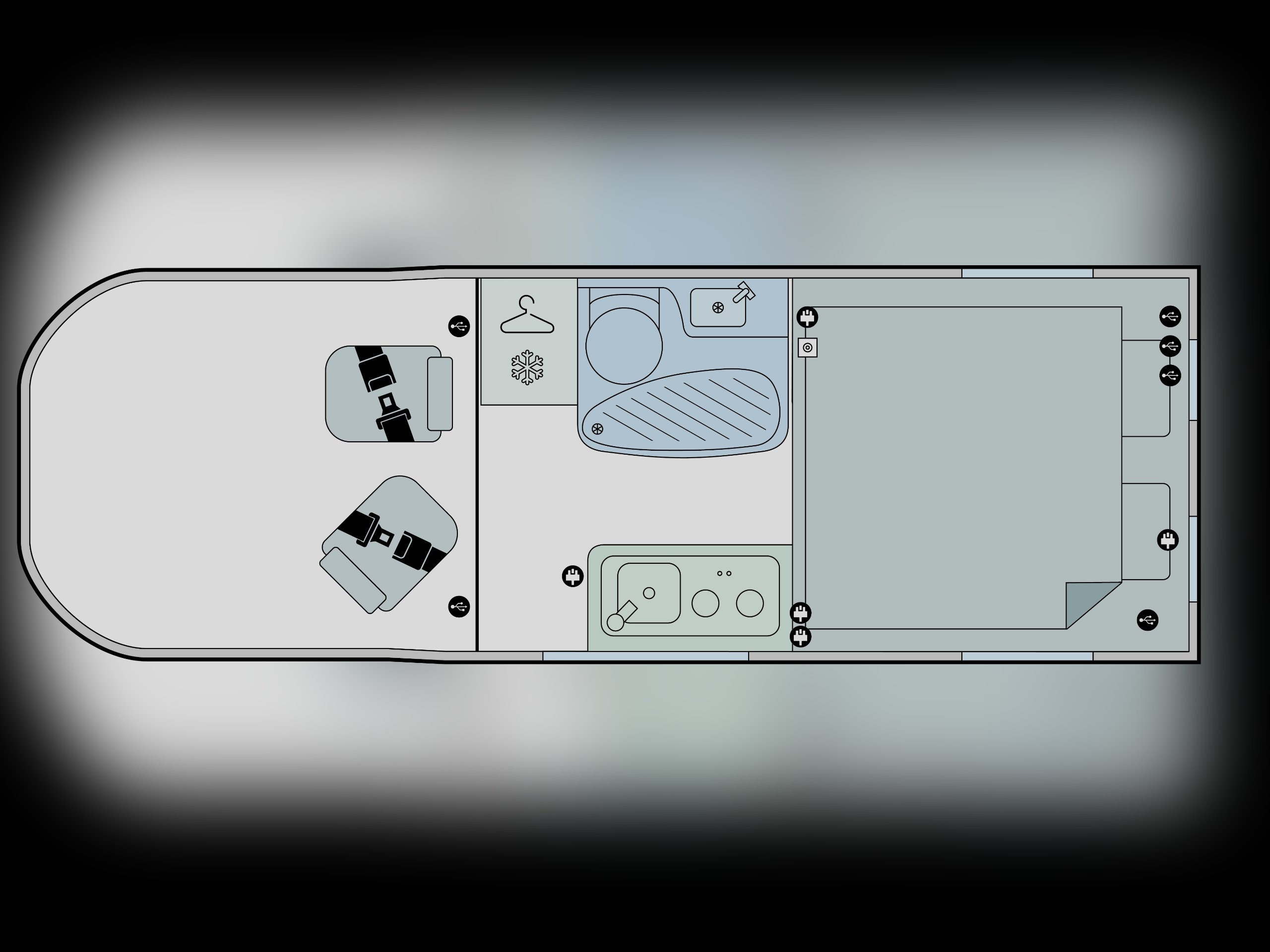 - Rear lounge / twin singles or double bed