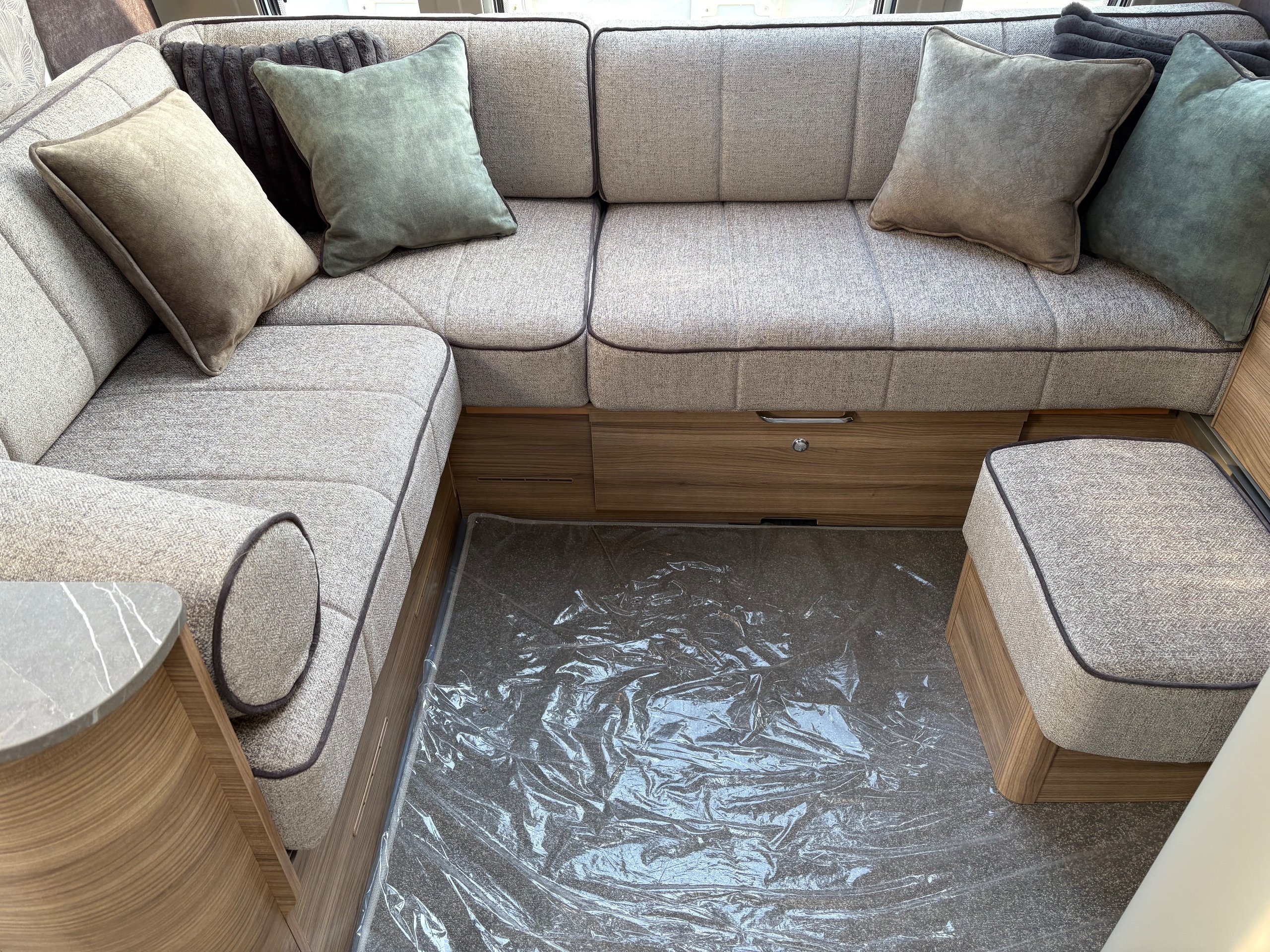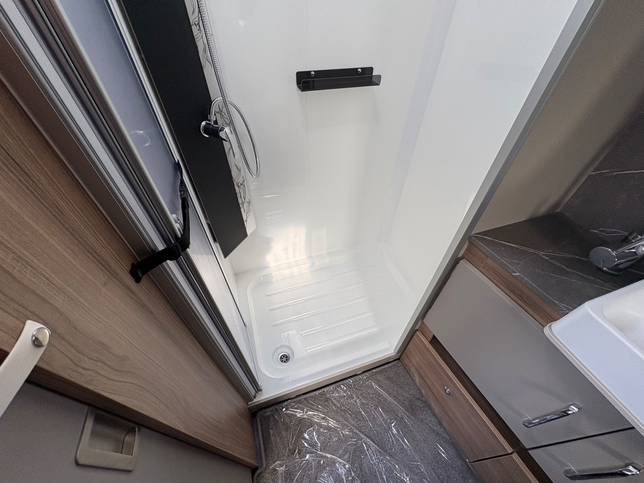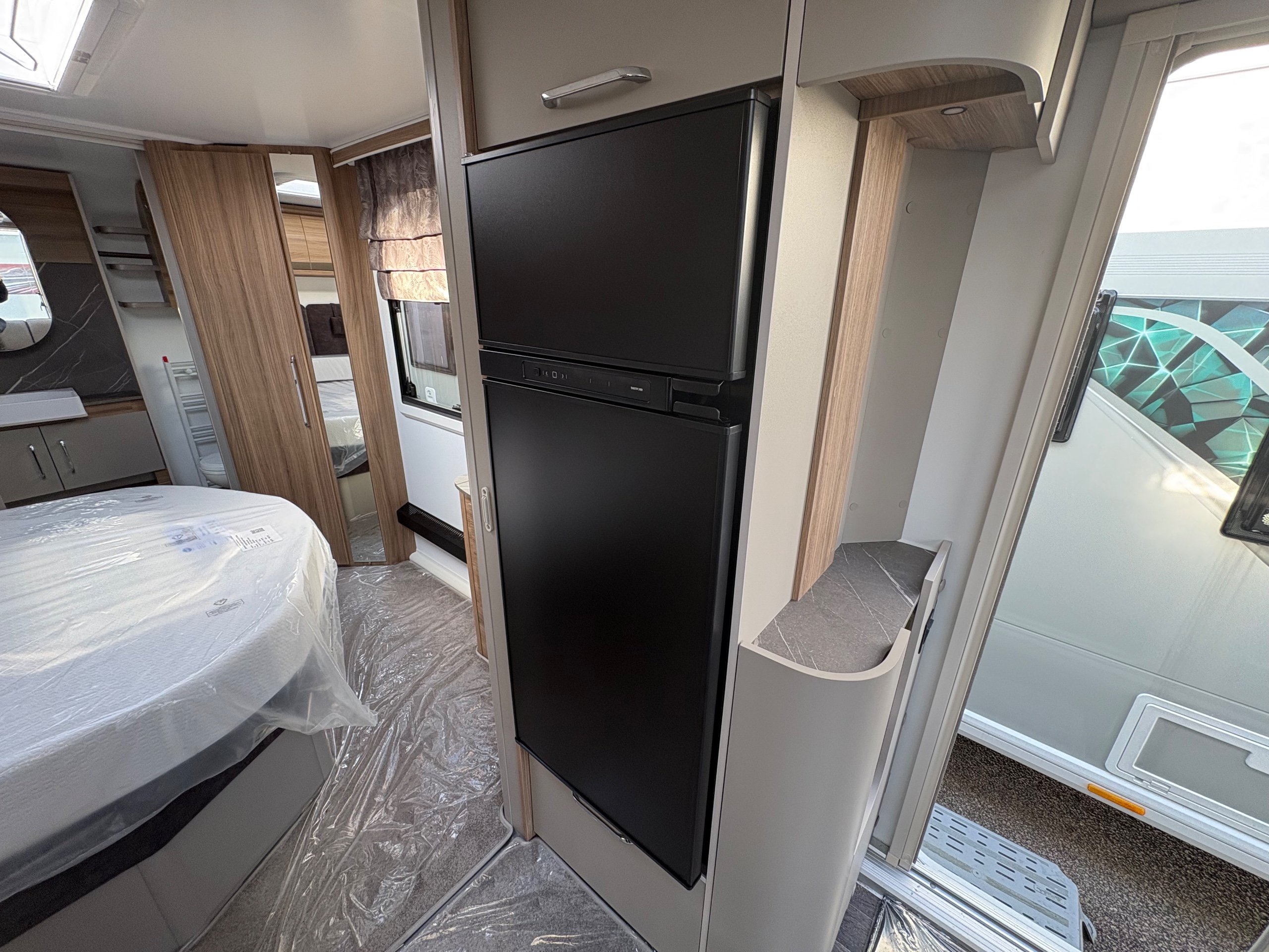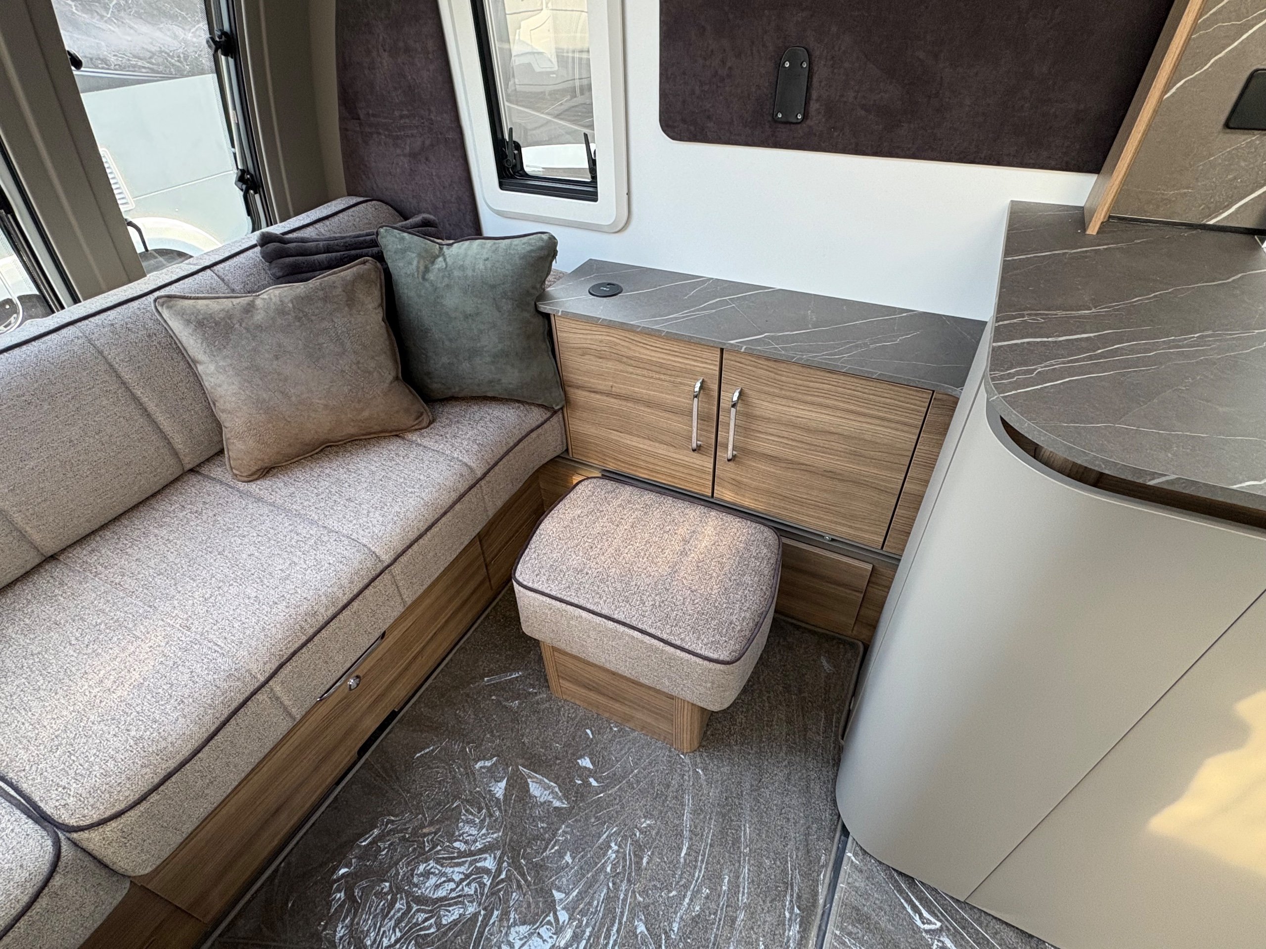Year: 2026, Berth: 4, Internal length: 6.60m / 21'8", External length: 7.90m / 25'11", Width: 2.45m / 8', Unladen weight: 1682kg, MTPLM: 1852kg Max upgrade 2000kg ), Awning size: 10.78m, Warranty: 3 years major components, 6 years bodyshell ( subject to terms and conditions ). An impressive eight feet wide caravan, fitted on a twin axle to make the most of the space and loading allowance. The Alvor features a roomy L shaped front lounge area, comfortable foot stool and wall mounted television bracket. The large kitchen work surface is perfect for the light snack as well as the evening meal, assisted by the large fridge opposite. The 5' wide mattress pulls out at night and slides back during the day to help with access to the rear washroom. The large square shower also features a handy hanging rail for those wet coats. great van for touring or for a seasonal pitch. -