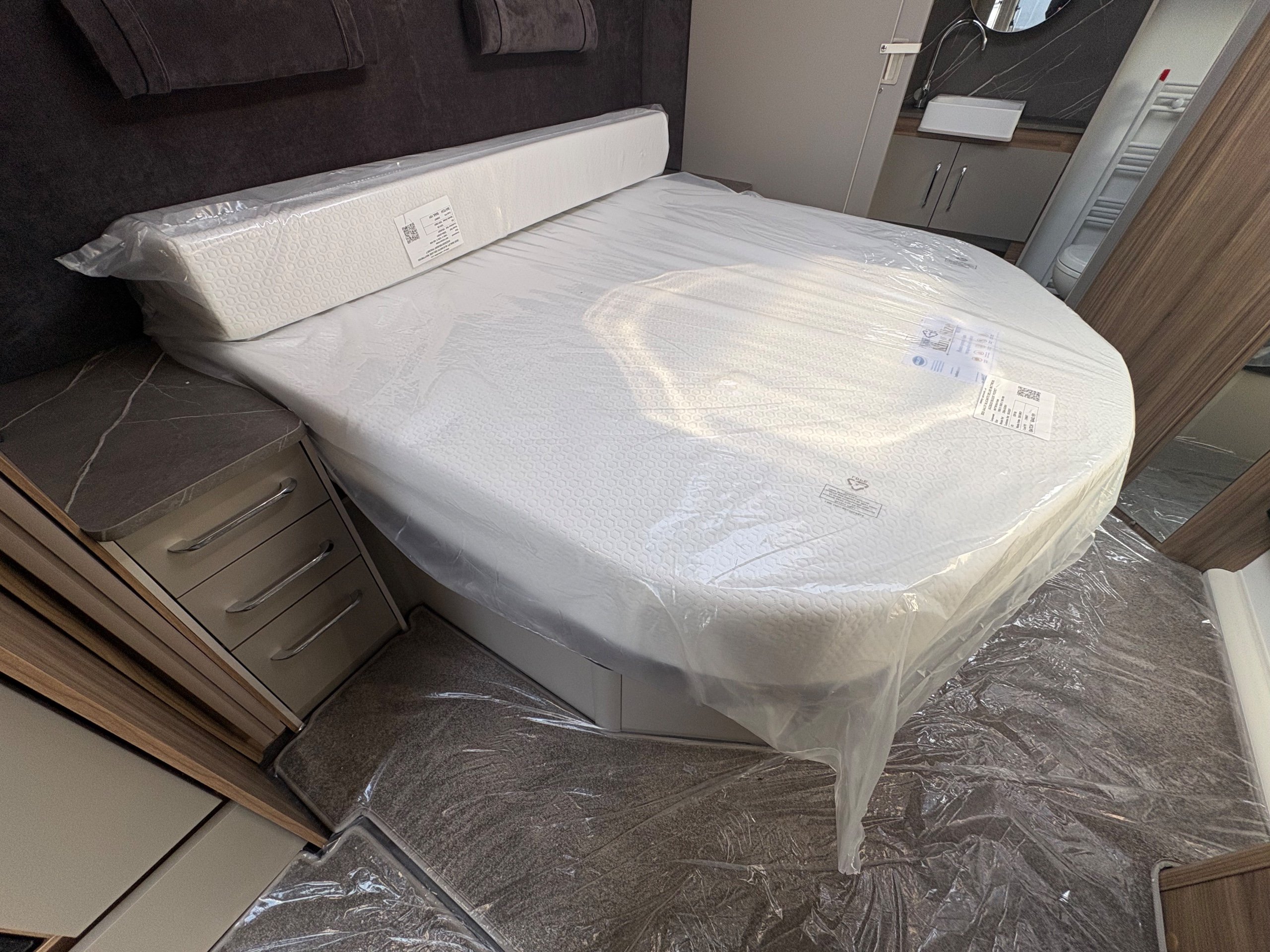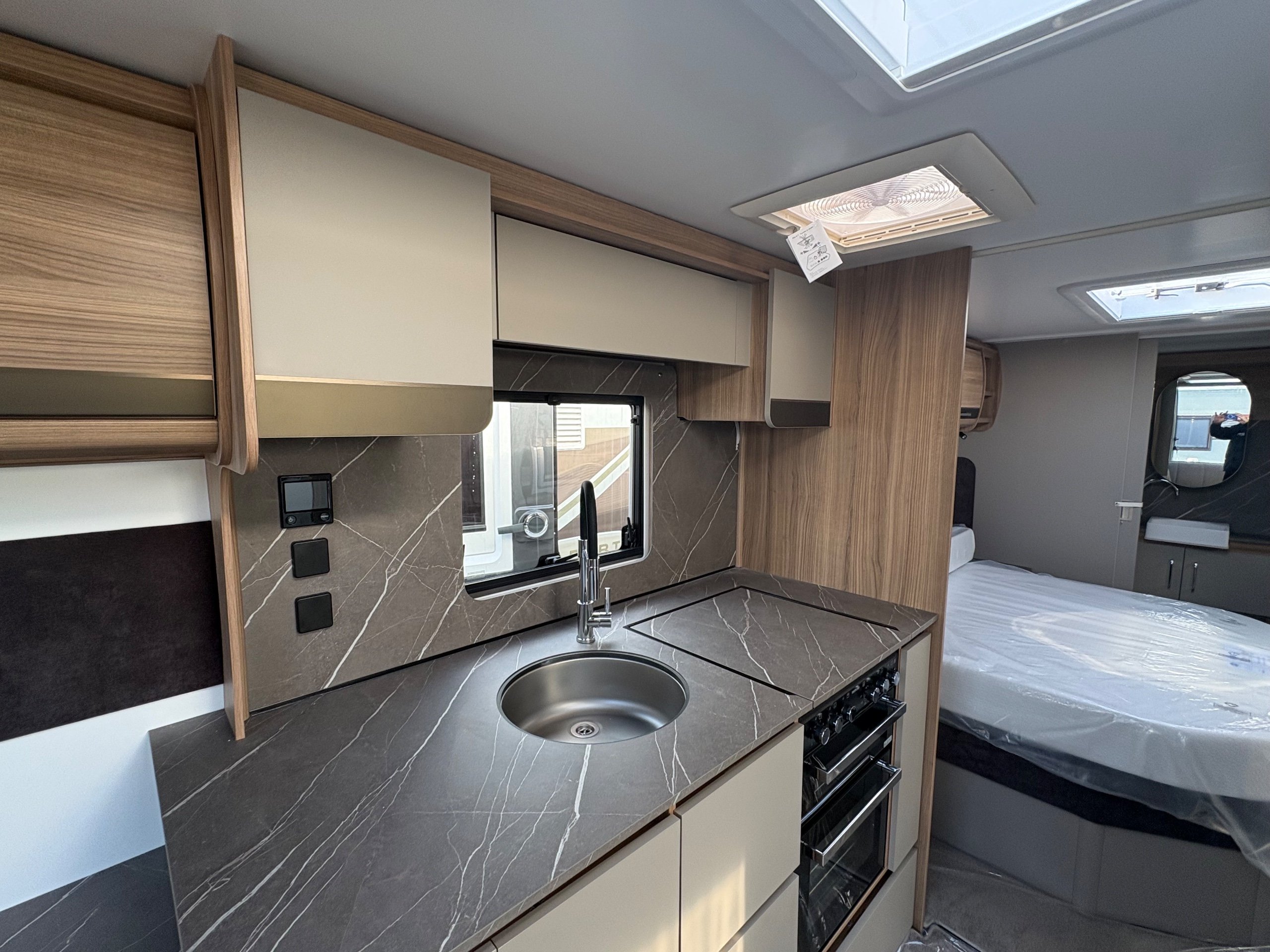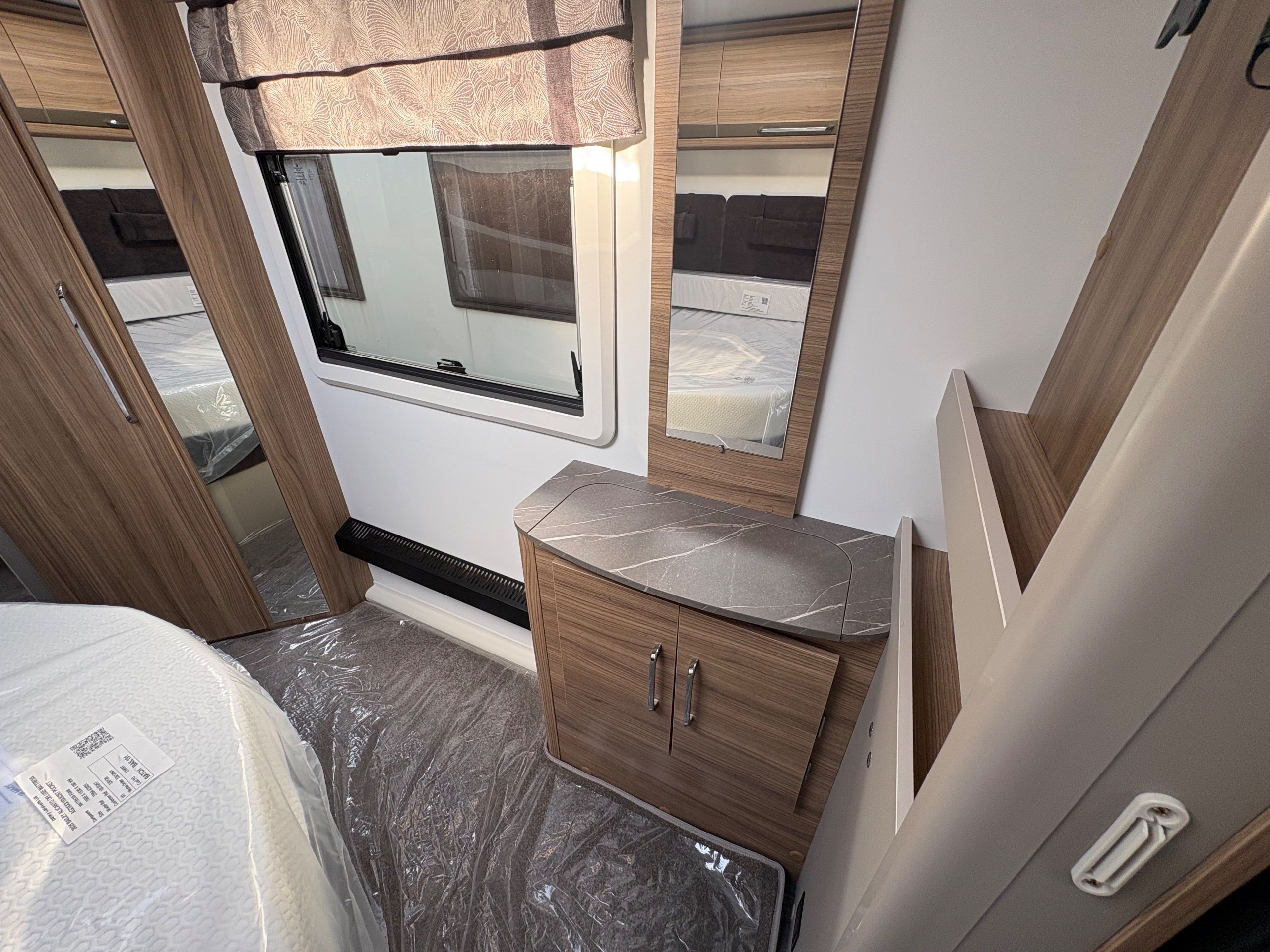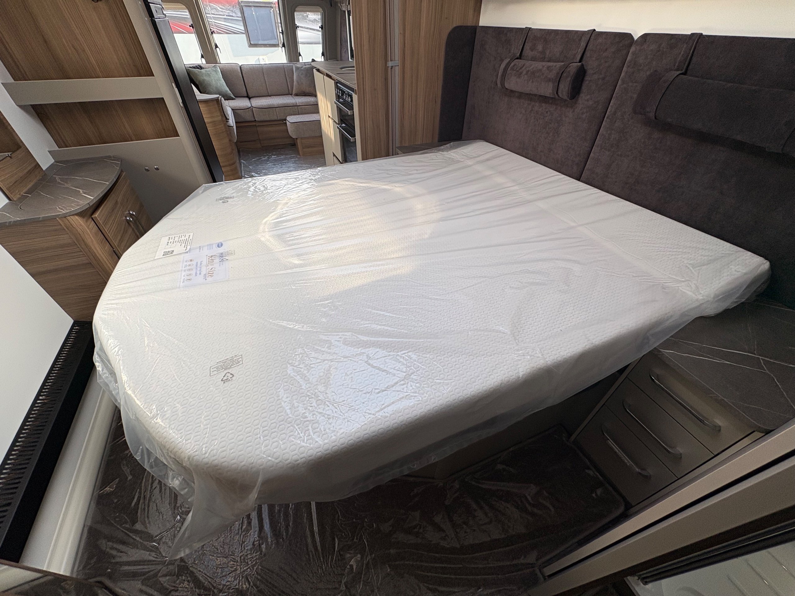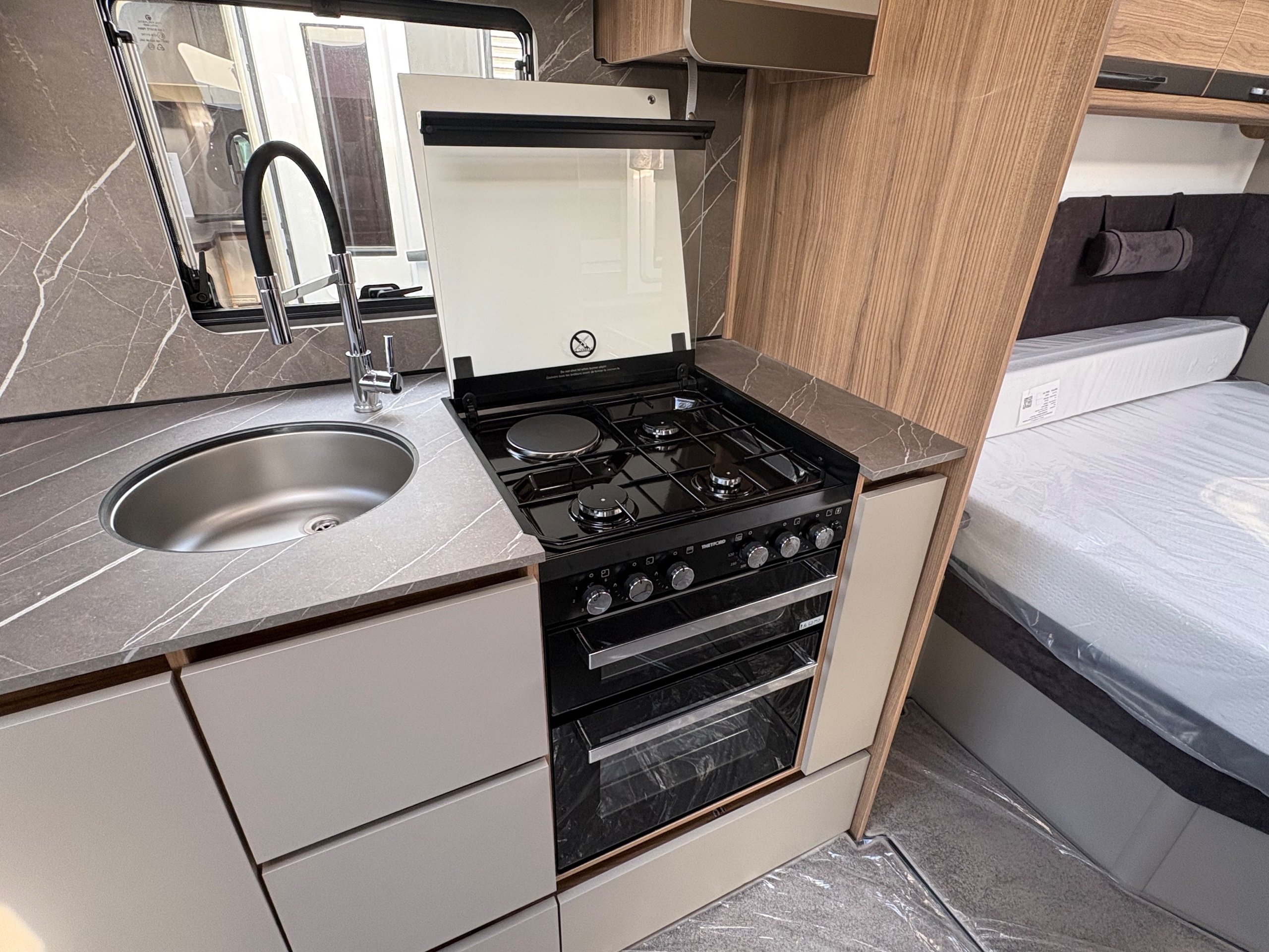 Year: 2026, Berth: 4, Internal length: 6.60m / 21'8", External length: 7.90m / 25'11", Width: 2.45m / 8', Unladen weight: 1682kg, MTPLM: 1852kg Max upgrade 2000kg ), Awning size: 10.78m, Warranty: 3 years major components, 6 years bodyshell ( subject to terms and conditions ). An impressive eight feet wide caravan, fitted on a twin axle to make the most of the space and loading allowance. The Alvor features a roomy L shaped front lounge area, comfortable foot stool and wall mounted television bracket. The large kitchen work surface is perfect for the light snack as well as the evening meal, assisted by the large fridge opposite. The 5' wide mattress pulls out at night and slides back during the day to help with access to the rear washroom. The large square shower also features a handy hanging rail for those wet coats. great van for touring or for a seasonal pitch. -