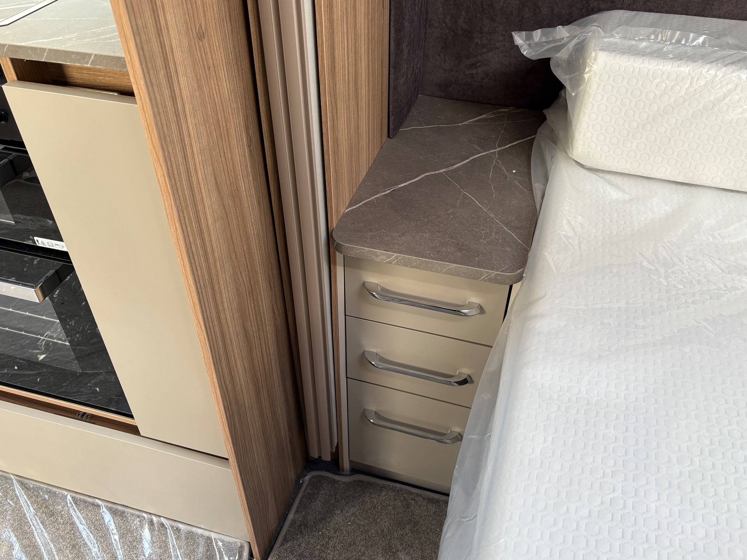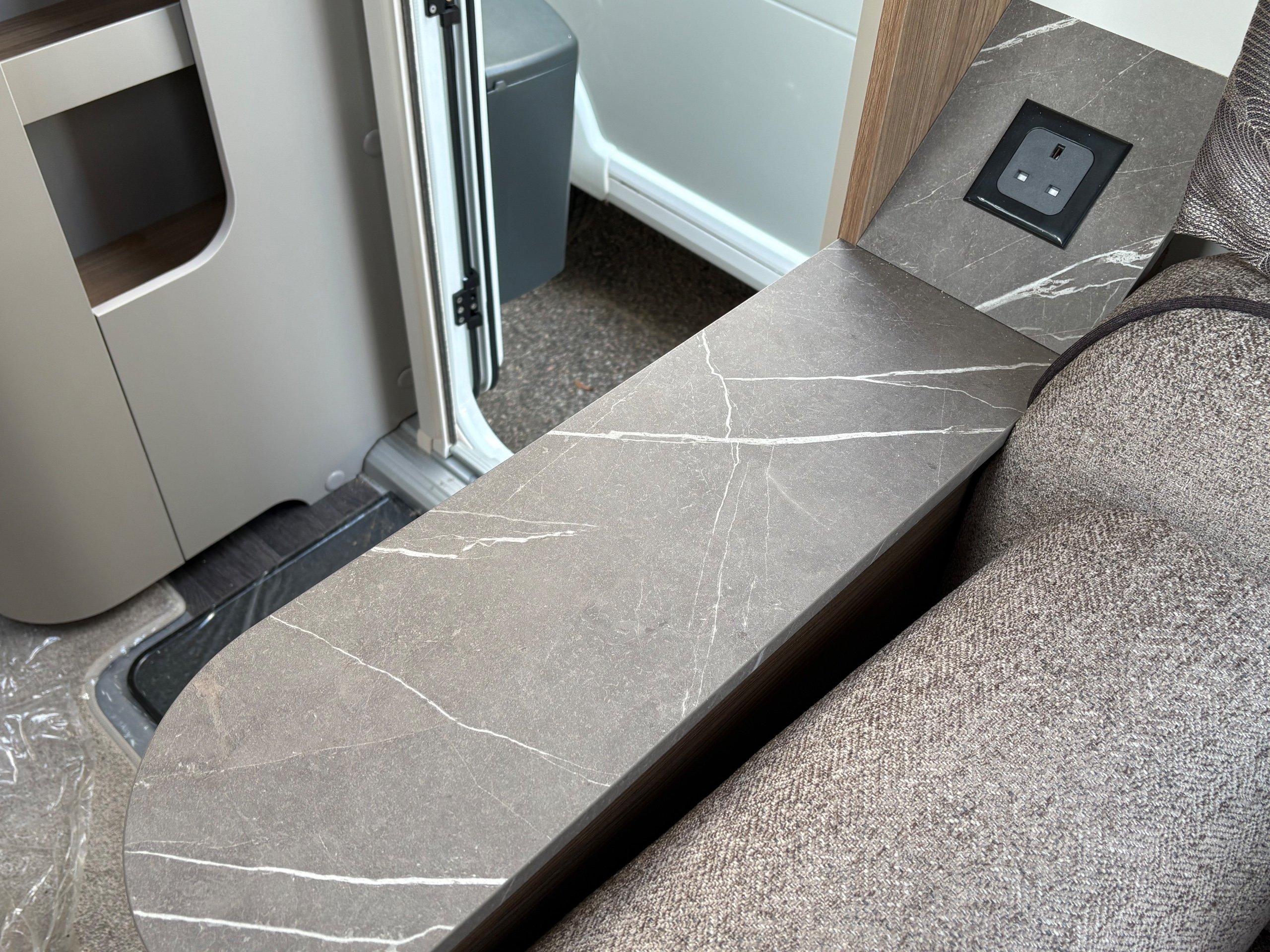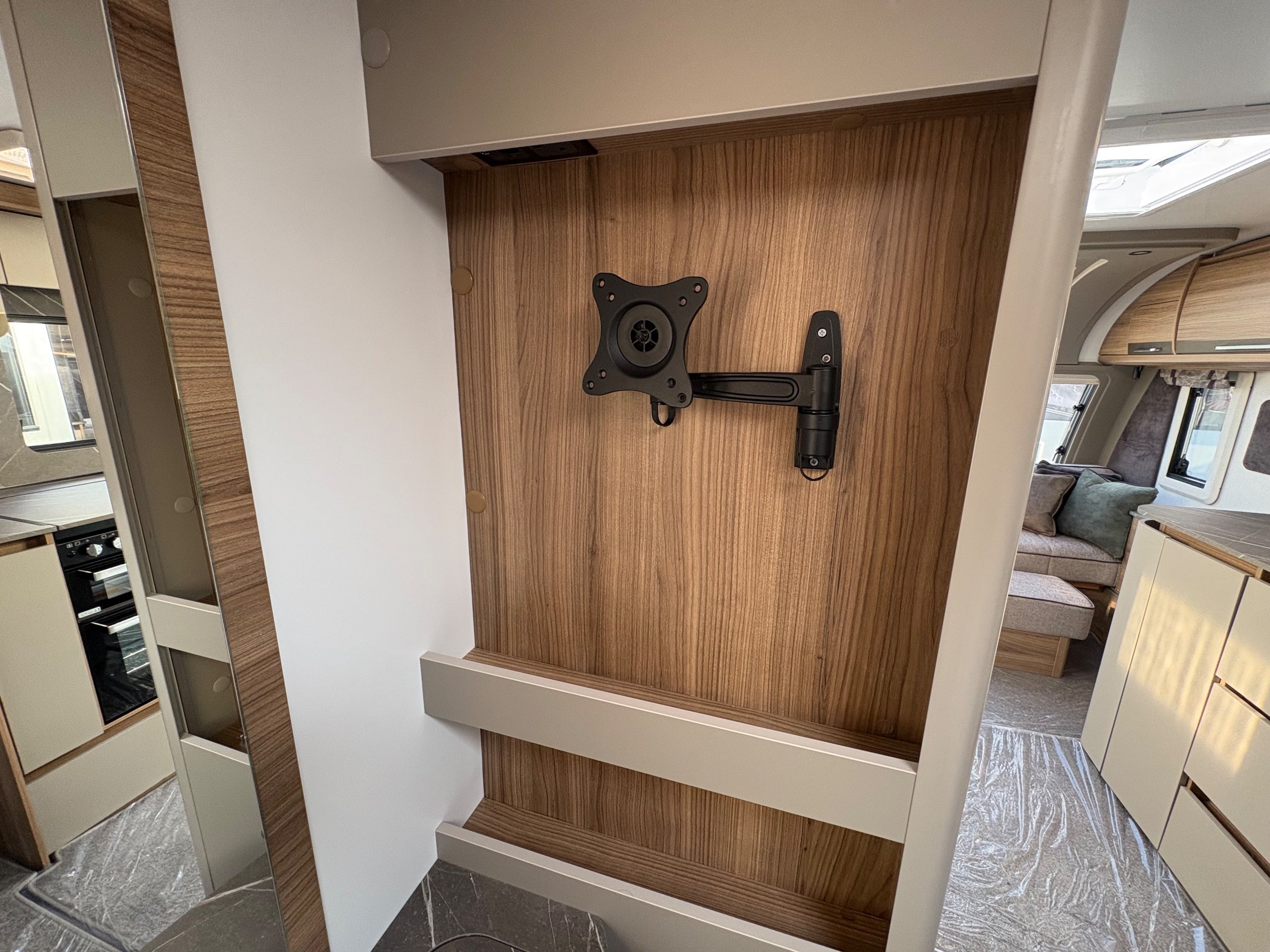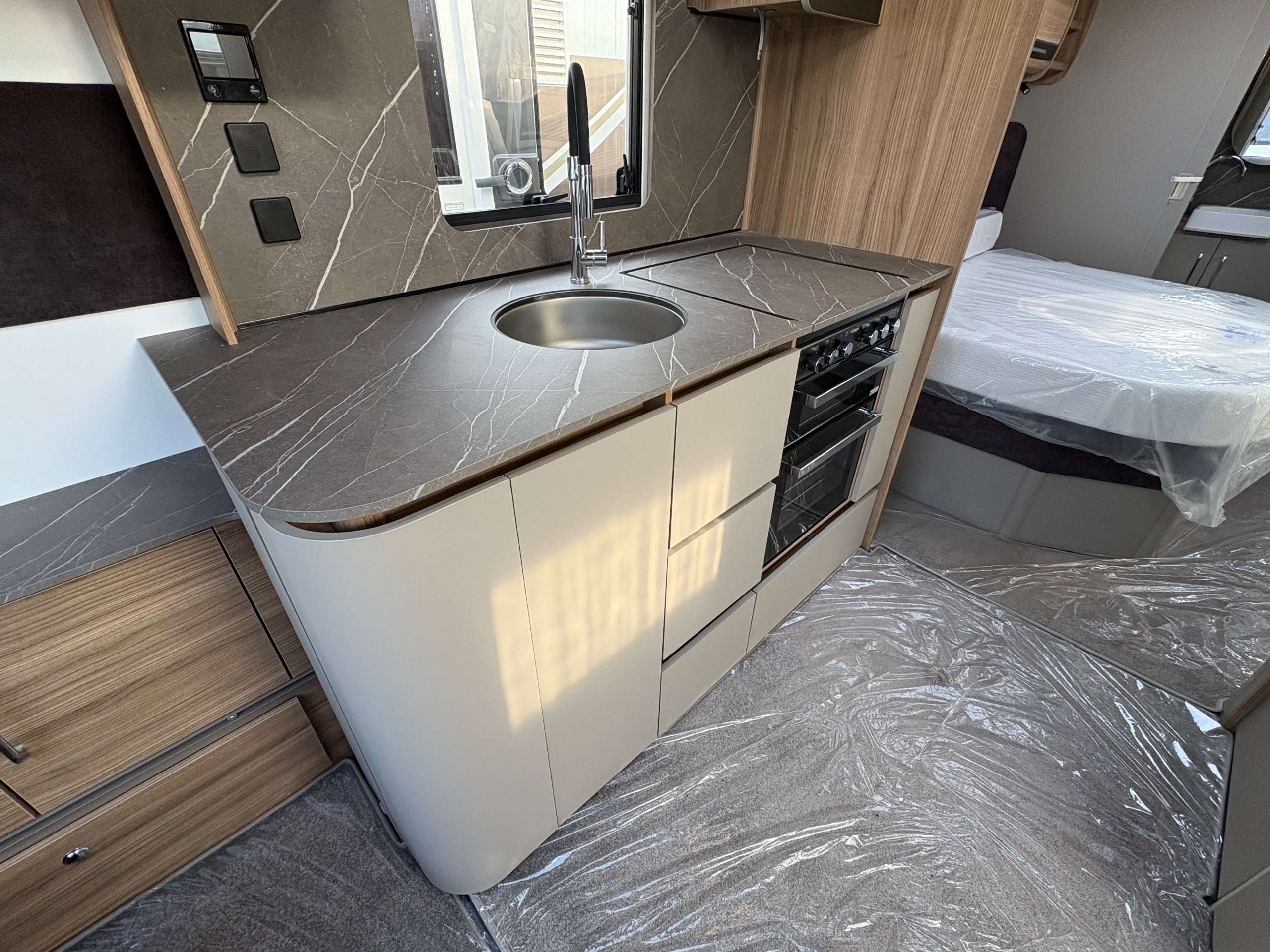 Year: 2026, Berth: 4, Internal length: 6.60m / 21'8", External length: 7.90m / 25'11", Width: 2.45m / 8', Unladen weight: 1682kg, MTPLM: 1852kg Max upgrade 2000kg ), Awning size: 10.78m, Warranty: 3 years major components, 6 years bodyshell ( subject to terms and conditions ). An impressive eight feet wide caravan, fitted on a twin axle to make the most of the space and loading allowance. The Alvor features a roomy L shaped front lounge area, comfortable foot stool and wall mounted television bracket. The large kitchen work surface is perfect for the light snack as well as the evening meal, assisted by the large fridge opposite. The 5' wide mattress pulls out at night and slides back during the day to help with access to the rear washroom. The large square shower also features a handy hanging rail for those wet coats. great van for touring or for a seasonal pitch. -