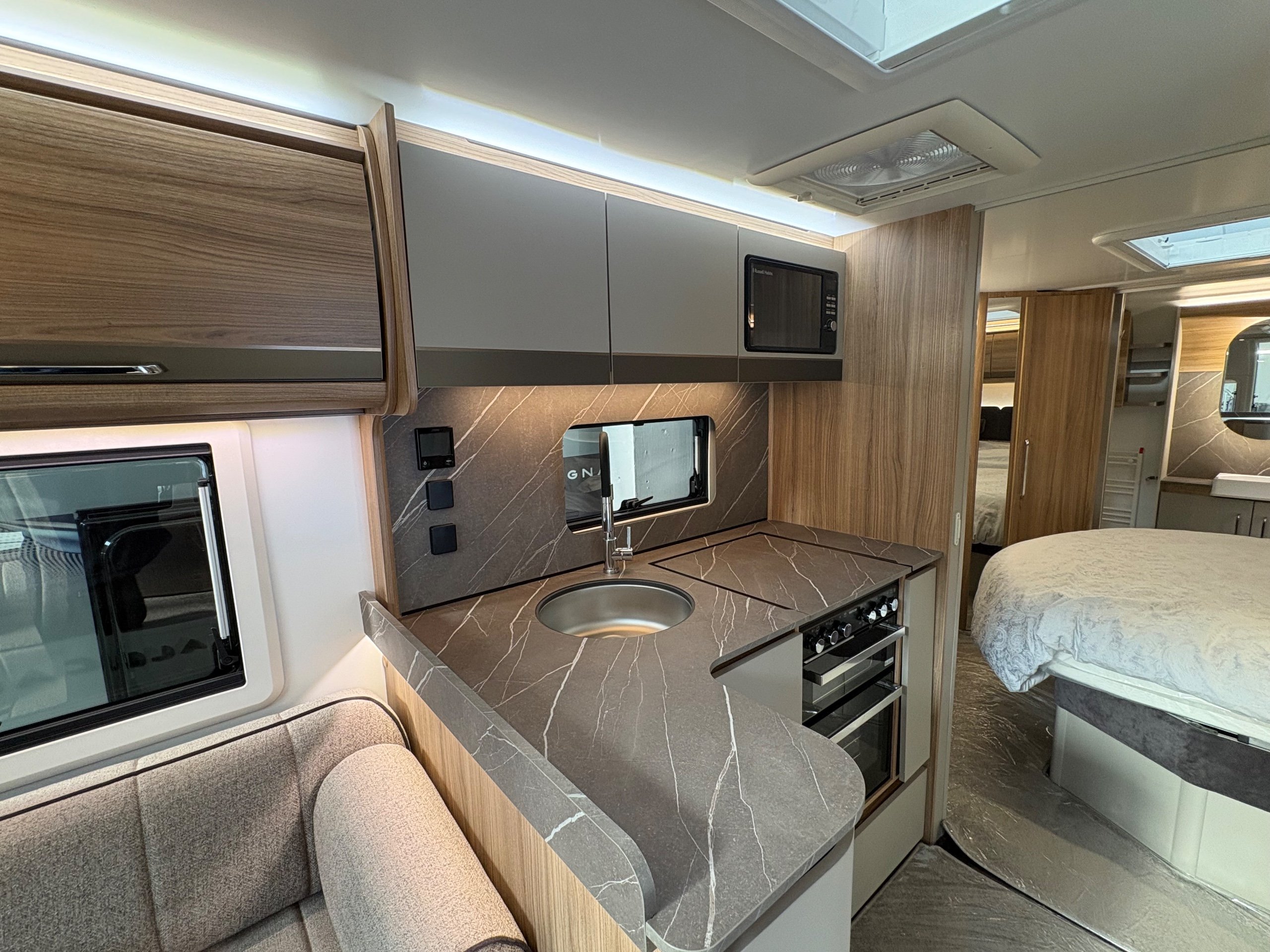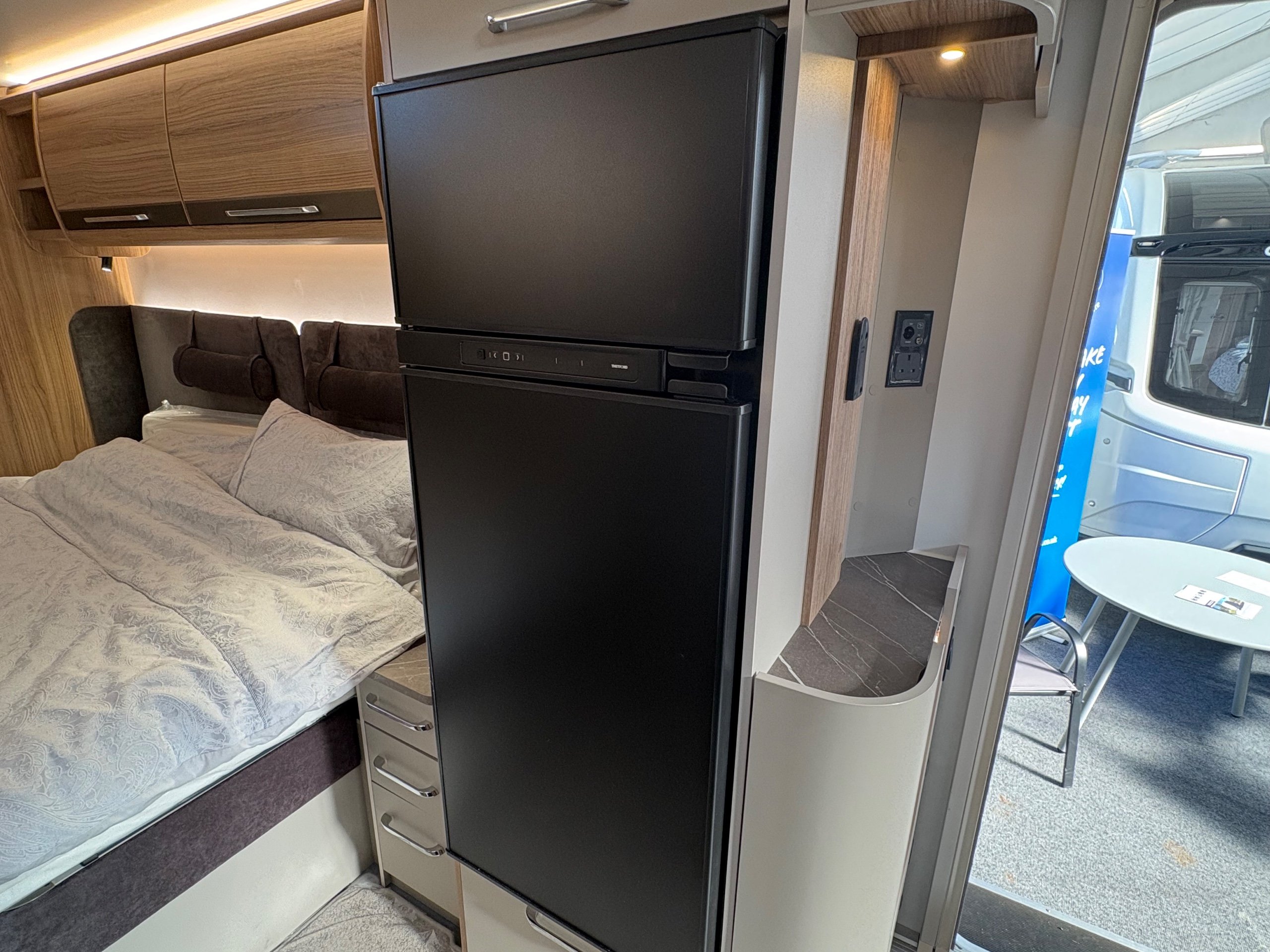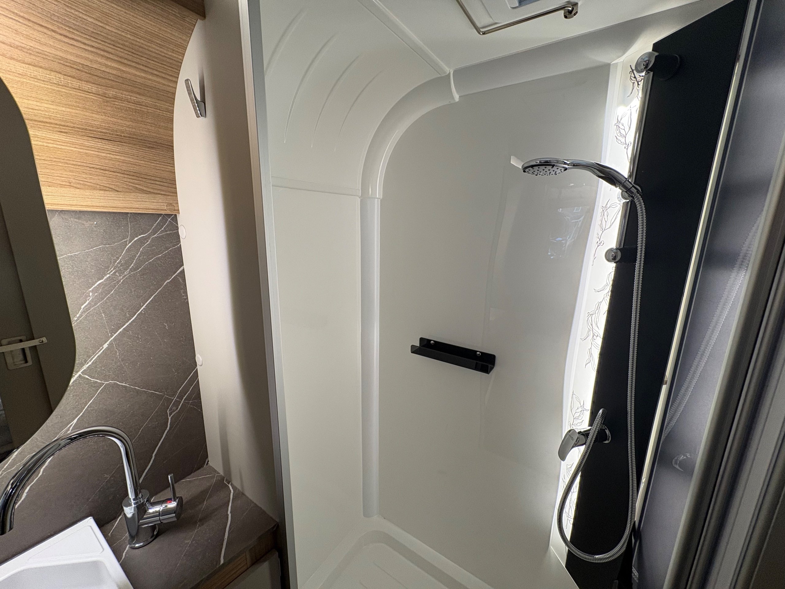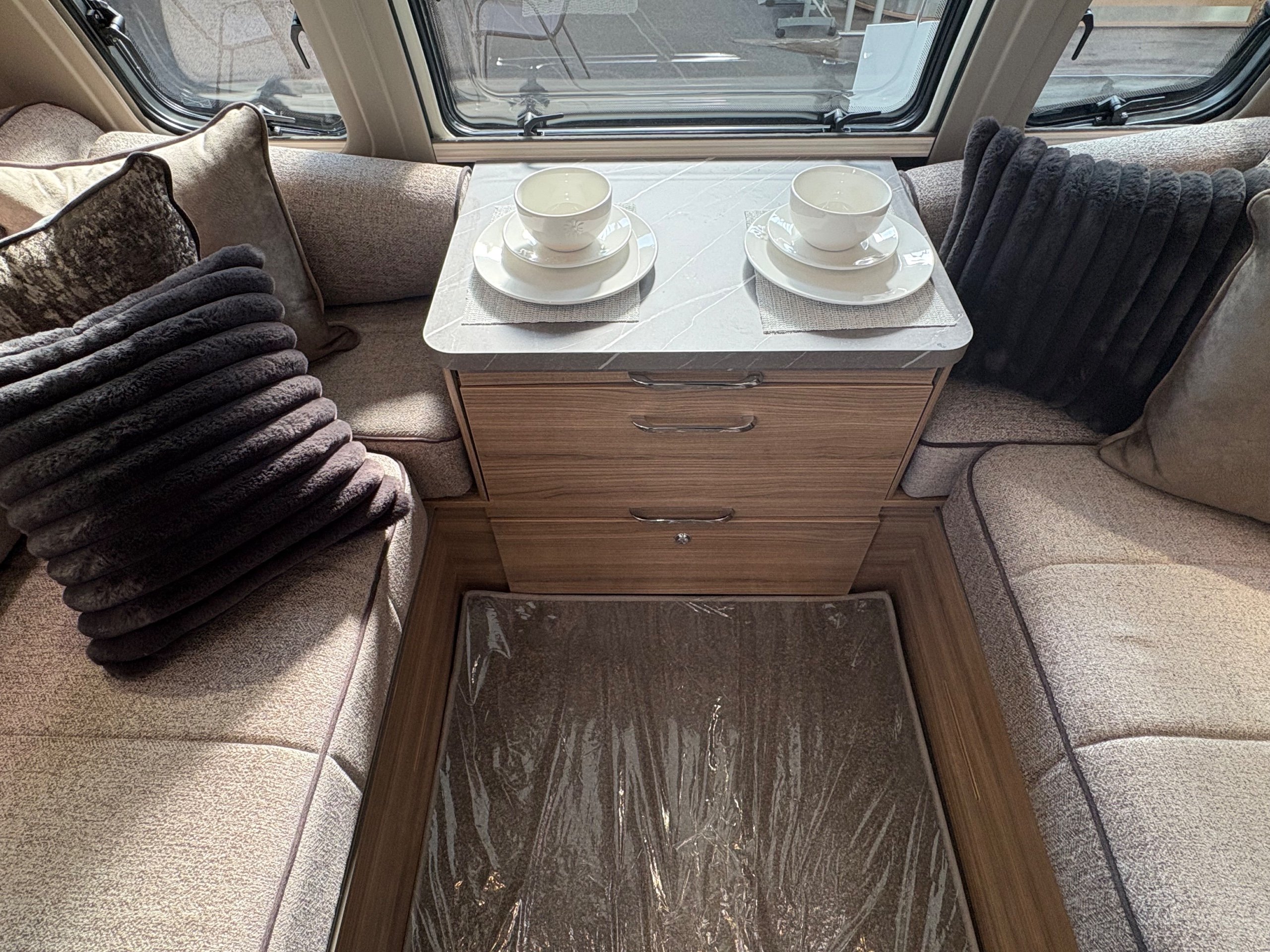 Year: 2026, Berth: 4, Internal length: 6.60m / 21'8", External length: 7.90m / 25'11", Width: 2.45m / 8', Unladen weight: 1707kg, MTPLM: 1867kg ( Upgraded MTPLM: 2000kg ), Awning size: 10.78m, Warranty: 3 years major components, 6 year bodyshell ( subject to terms and conditions ). This caravan is truly stunning whether for couples or families. The eight feet body width along with the large front windows, flood the front of the caravan with lots of natural light, all of which gives an amazing feeling of space. The kitchen features a large fridge freezer, lots of work surface space and storage options. The bedroom features the five foot mattress, fitted headrests for those who like to read before bed. The rear washroom provides space to move around, a large rear lit mirror and a large square shaped shower. -