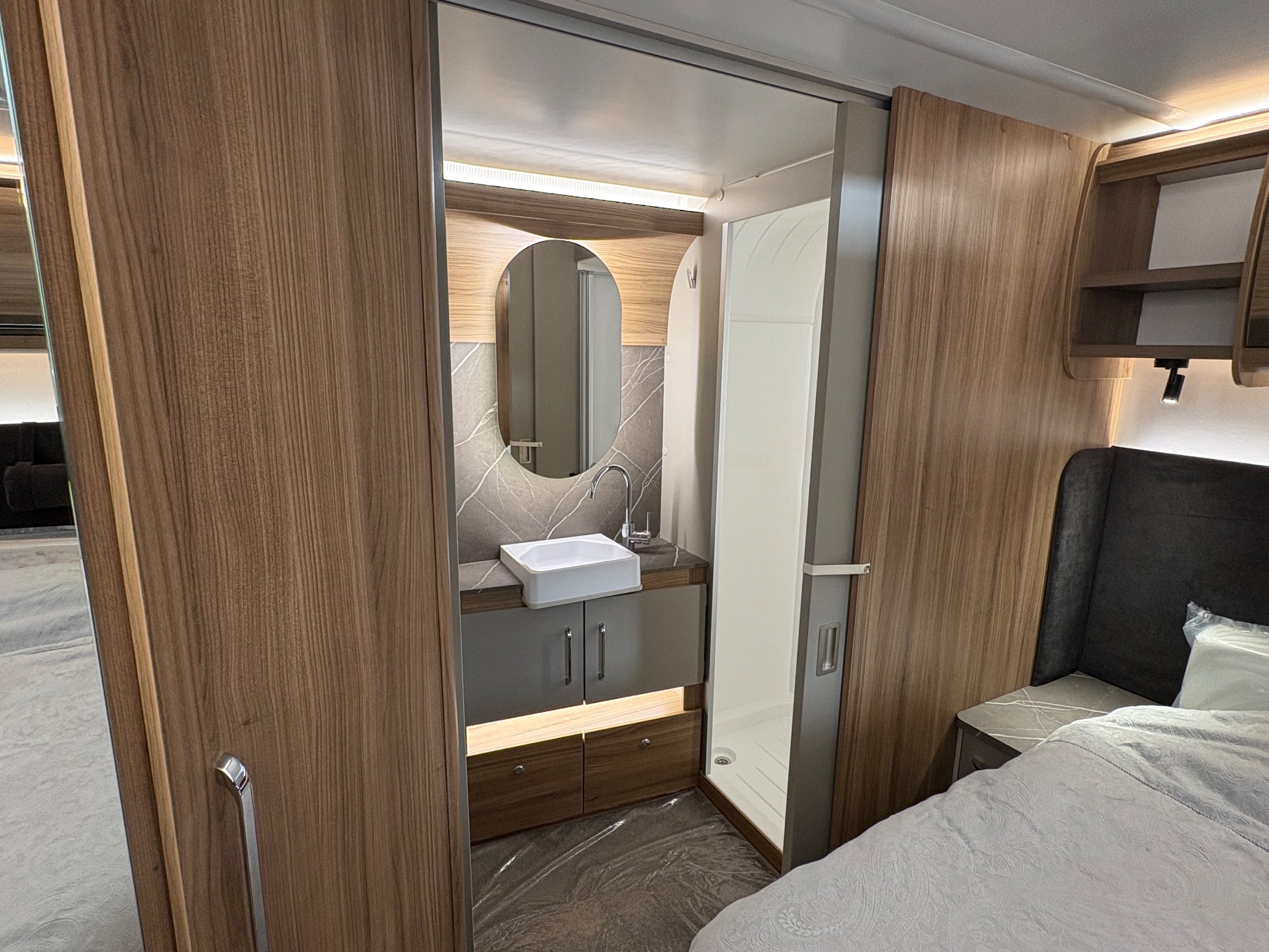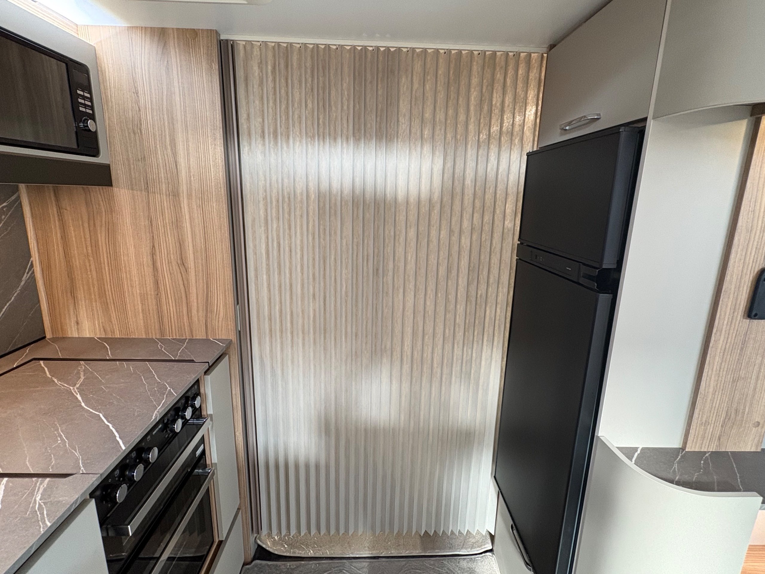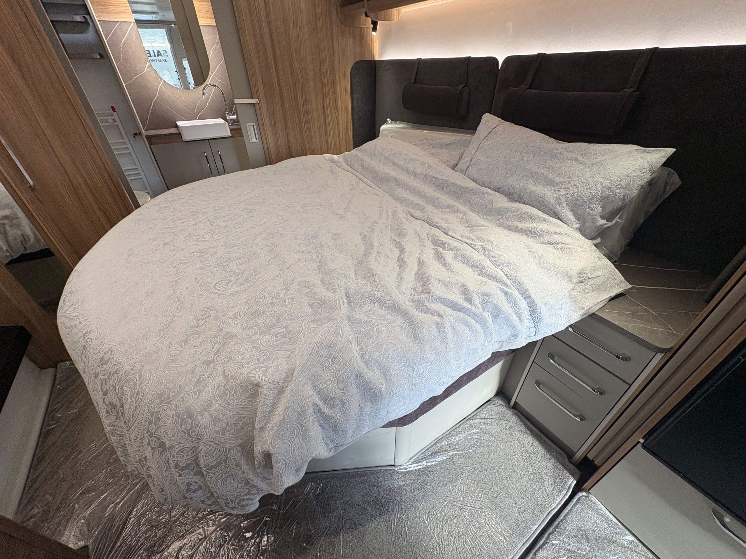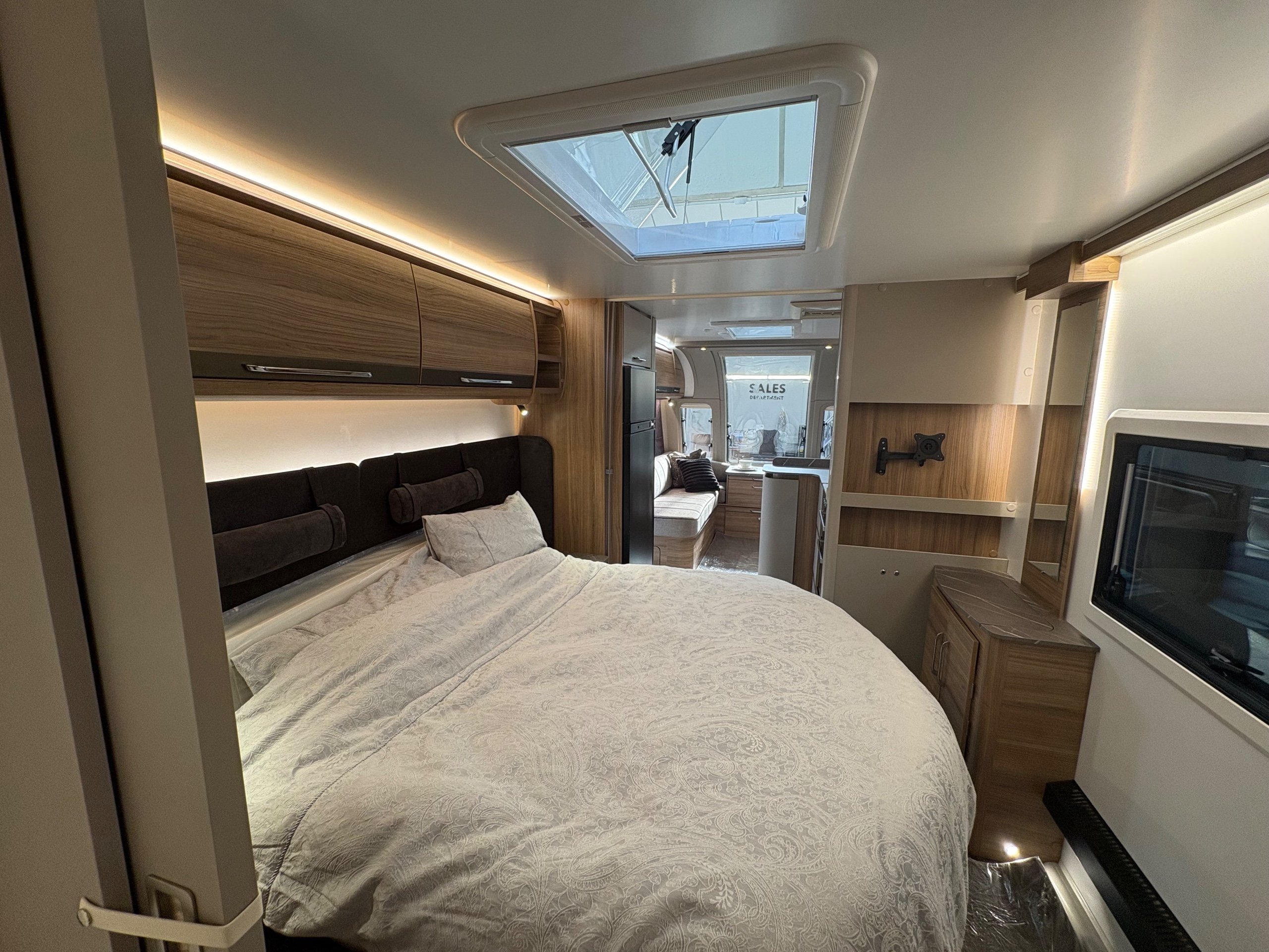 Year: 2026, Berth: 4, Internal length: 6.60m / 21'8", External length: 7.90m / 25'11", Width: 2.45m / 8', Unladen weight: 1707kg, MTPLM: 1867kg ( Upgraded MTPLM: 2000kg ), Awning size: 10.78m, Warranty: 3 years major components, 6 year bodyshell ( subject to terms and conditions ). This caravan is truly stunning whether for couples or families. The eight feet body width along with the large front windows, flood the front of the caravan with lots of natural light, all of which gives an amazing feeling of space. The kitchen features a large fridge freezer, lots of work surface space and storage options. The bedroom features the five foot mattress, fitted headrests for those who like to read before bed. The rear washroom provides space to move around, a large rear lit mirror and a large square shaped shower. -