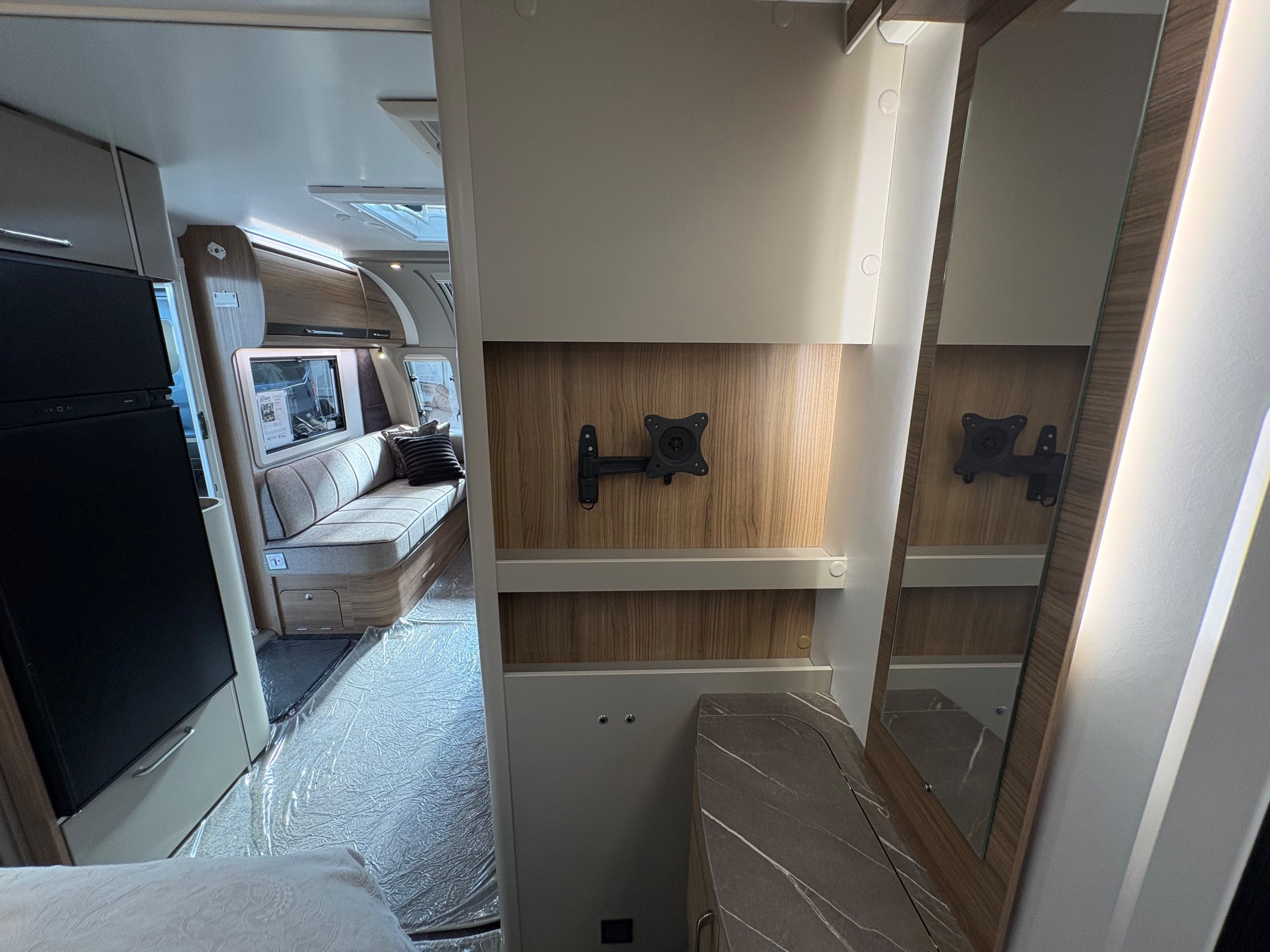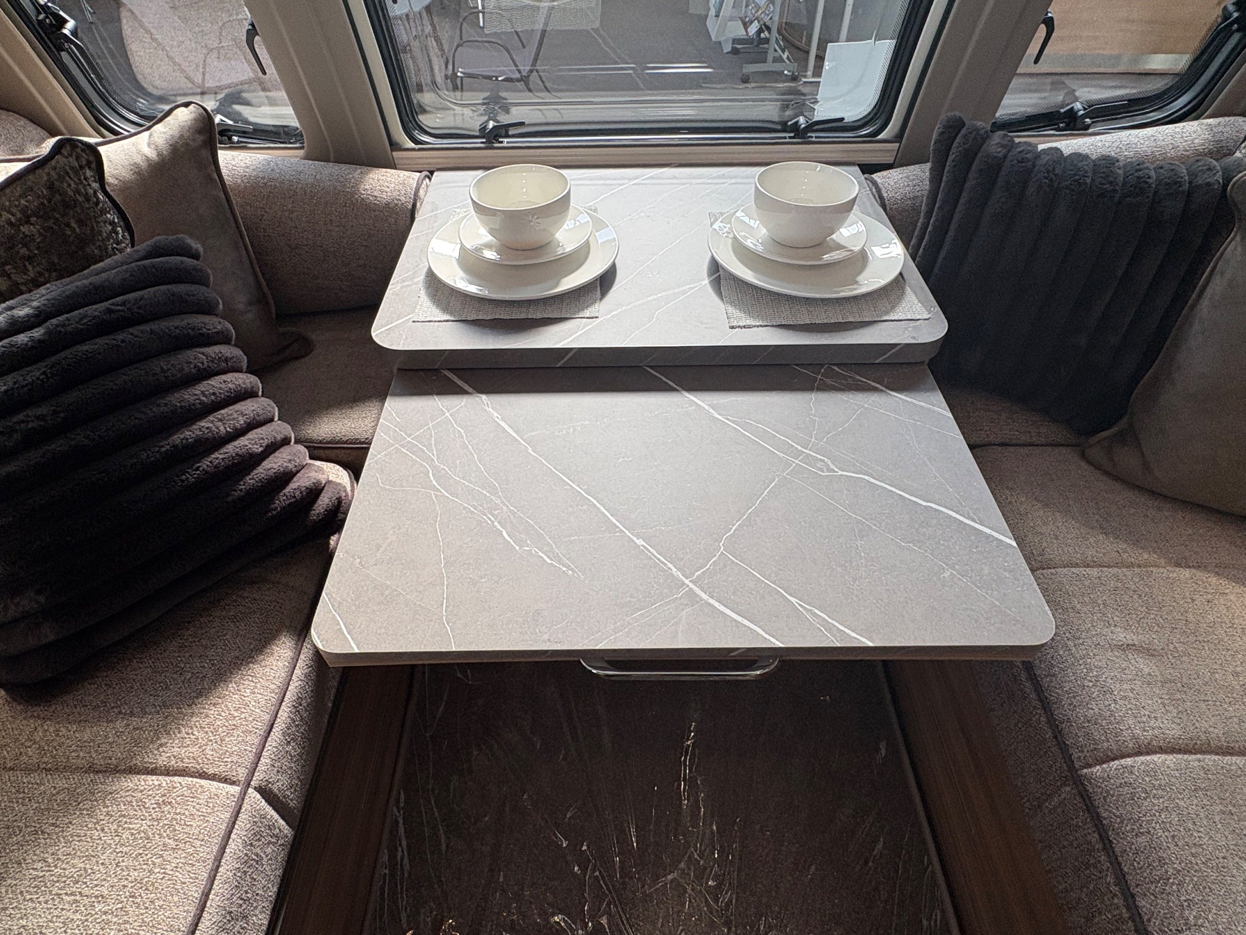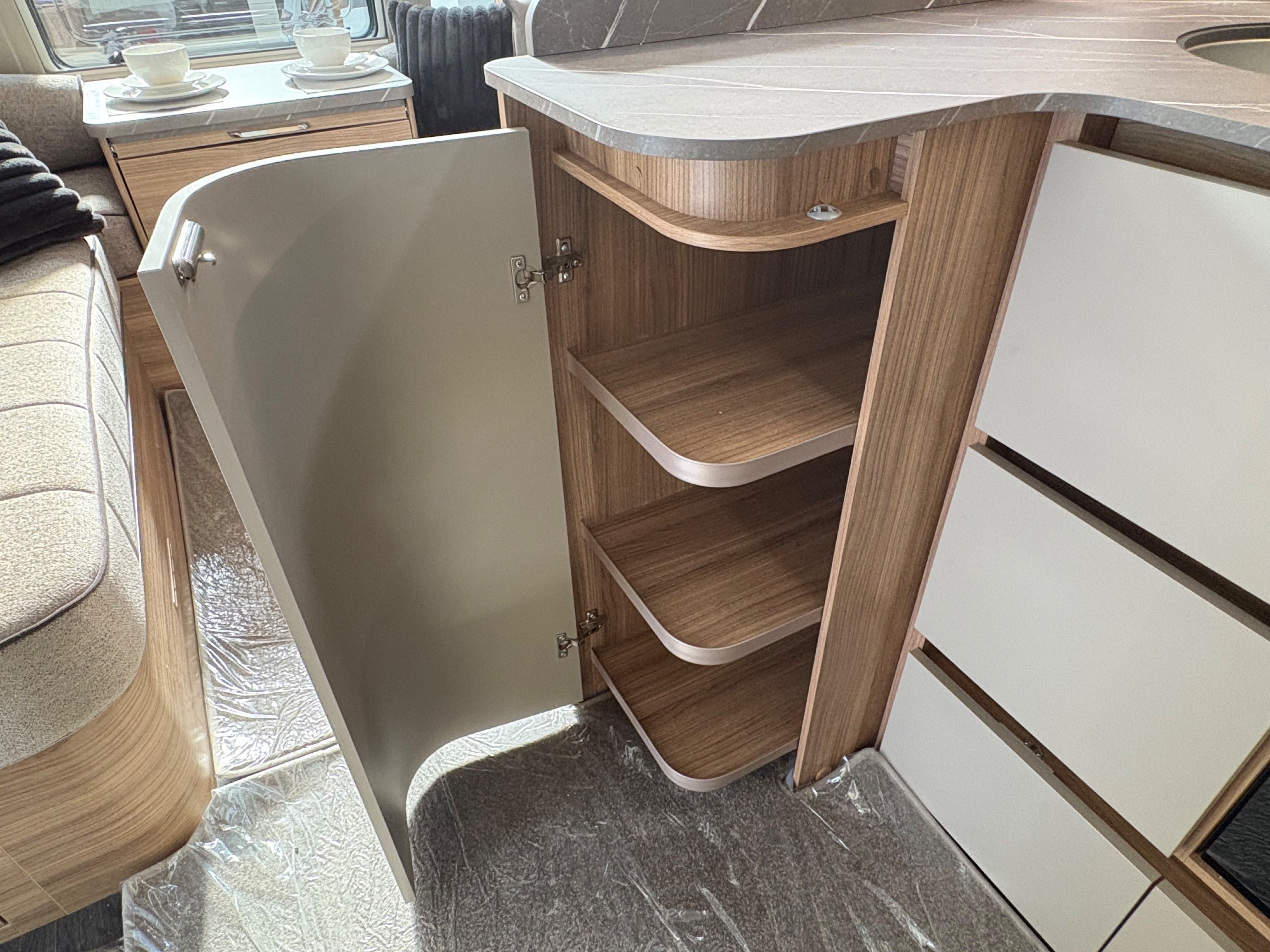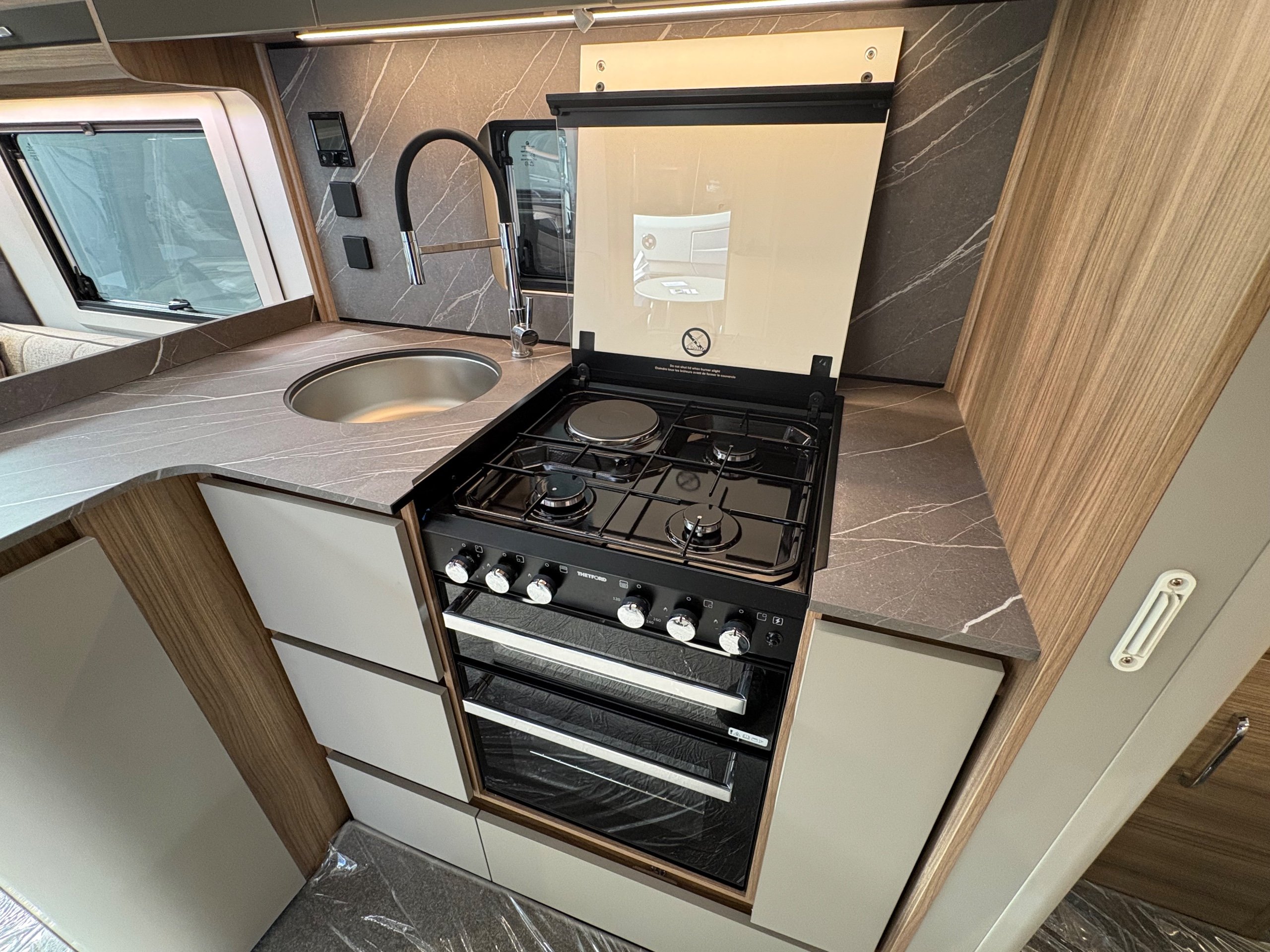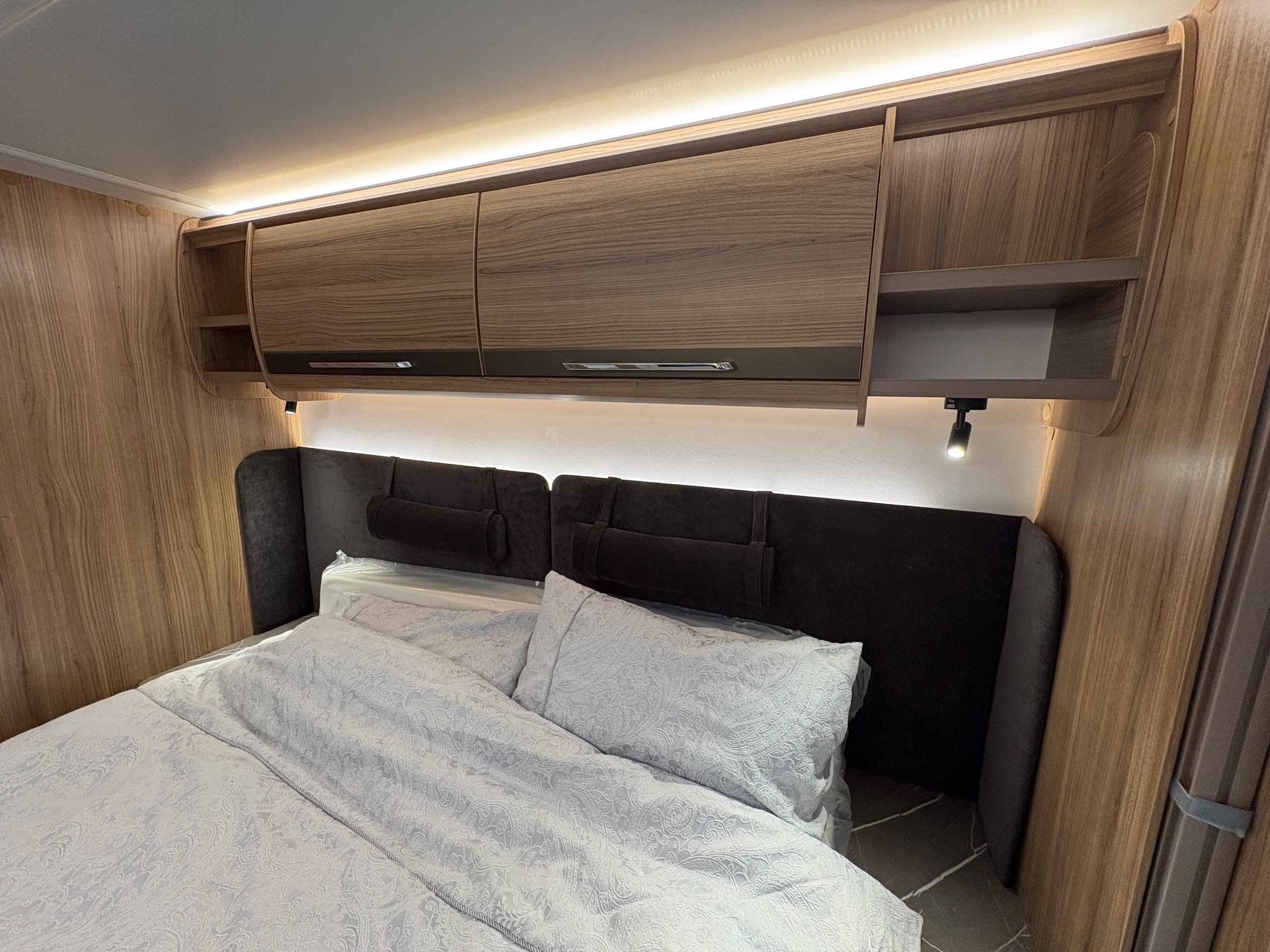 Year: 2026, Berth: 4, Internal length: 6.60m / 21'8", External length: 7.90m / 25'11", Width: 2.45m / 8', Unladen weight: 1707kg, MTPLM: 1867kg ( Upgraded MTPLM: 2000kg ), Awning size: 10.78m, Warranty: 3 years major components, 6 year bodyshell ( subject to terms and conditions ). This caravan is truly stunning whether for couples or families. The eight feet body width along with the large front windows, flood the front of the caravan with lots of natural light, all of which gives an amazing feeling of space. The kitchen features a large fridge freezer, lots of work surface space and storage options. The bedroom features the five foot mattress, fitted headrests for those who like to read before bed. The rear washroom provides space to move around, a large rear lit mirror and a large square shaped shower. -
