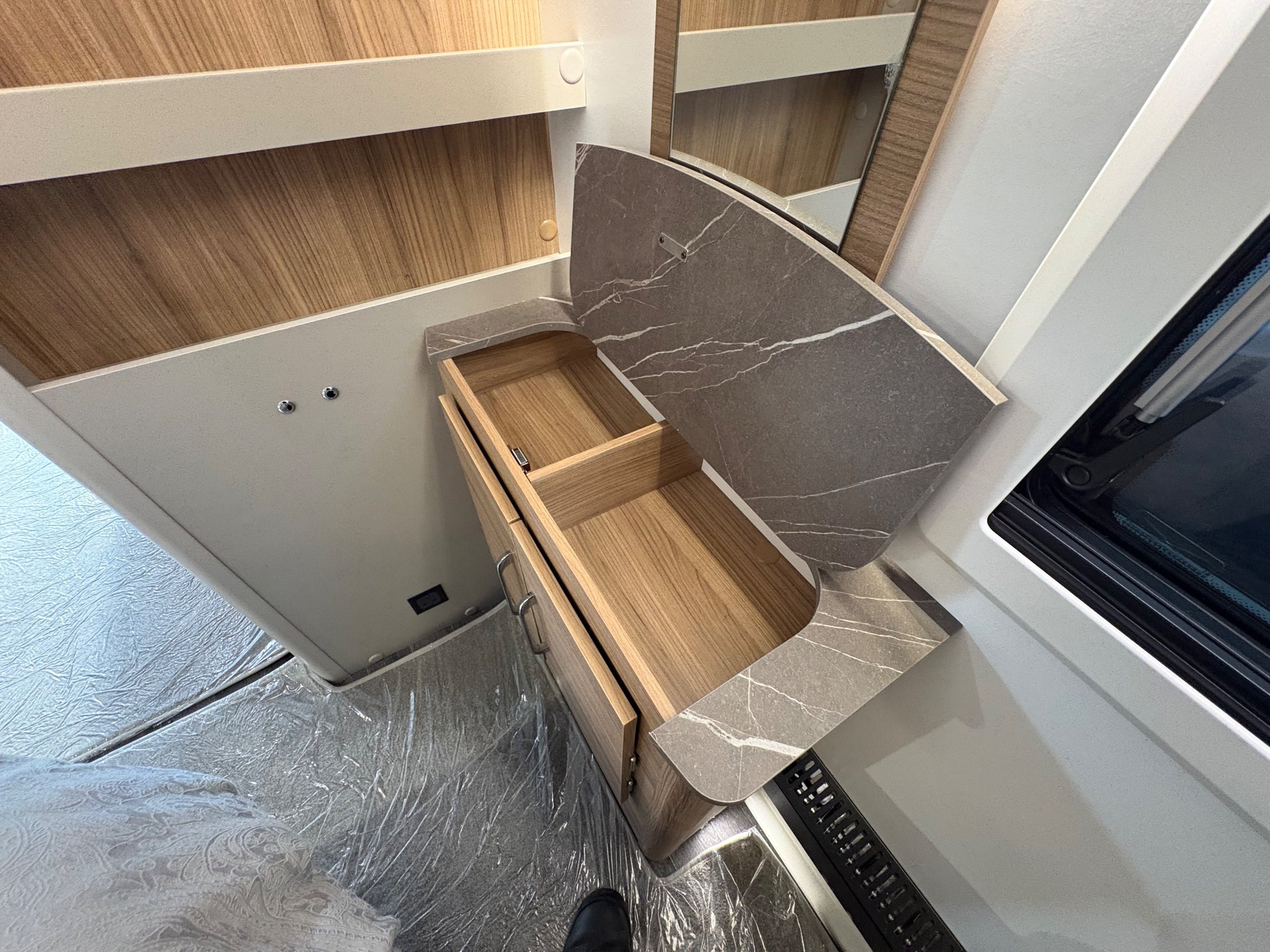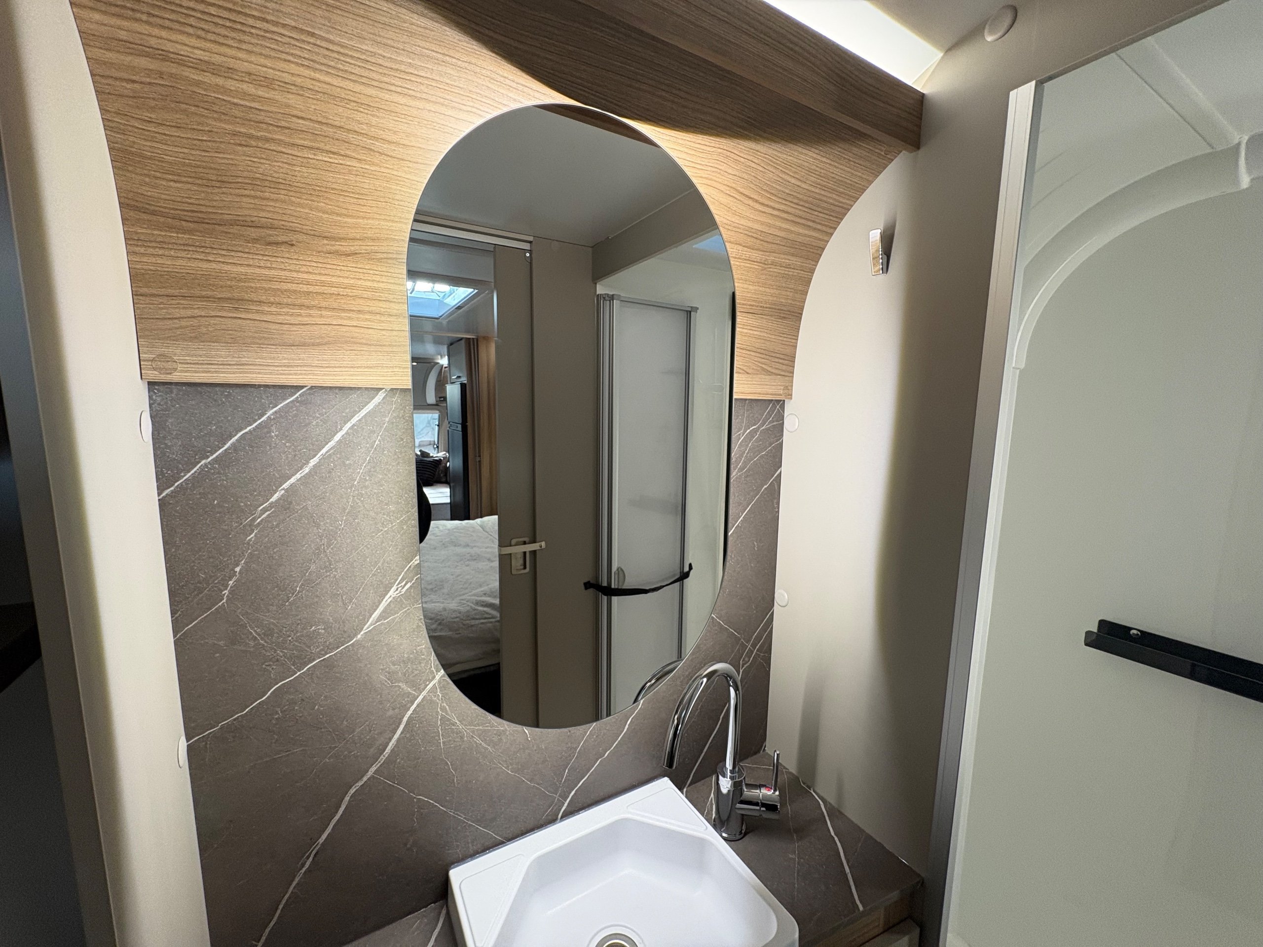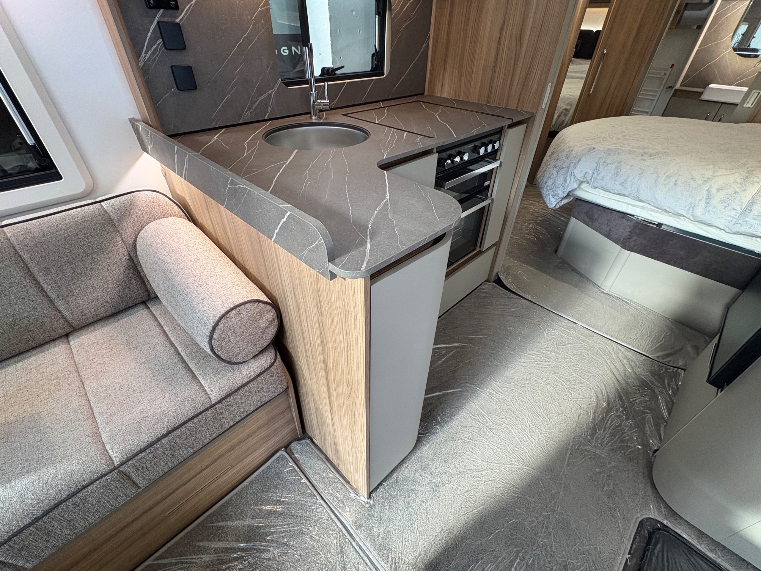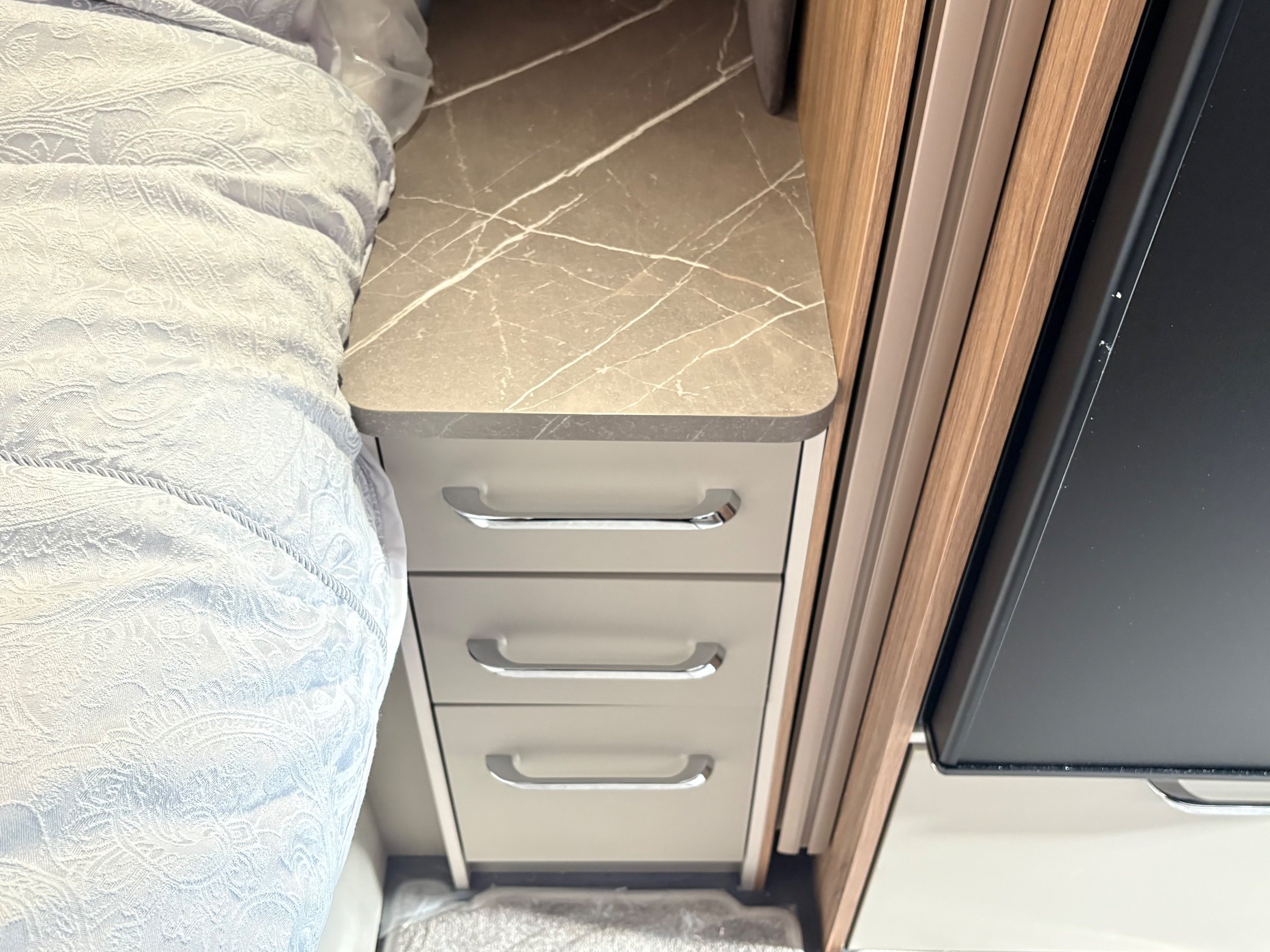 Year: 2026, Berth: 4, Internal length: 6.60m / 21'8", External length: 7.90m / 25'11", Width: 2.45m / 8', Unladen weight: 1707kg, MTPLM: 1867kg ( Upgraded MTPLM: 2000kg ), Awning size: 10.78m, Warranty: 3 years major components, 6 year bodyshell ( subject to terms and conditions ). This caravan is truly stunning whether for couples or families. The eight feet body width along with the large front windows, flood the front of the caravan with lots of natural light, all of which gives an amazing feeling of space. The kitchen features a large fridge freezer, lots of work surface space and storage options. The bedroom features the five foot mattress, fitted headrests for those who like to read before bed. The rear washroom provides space to move around, a large rear lit mirror and a large square shaped shower. -