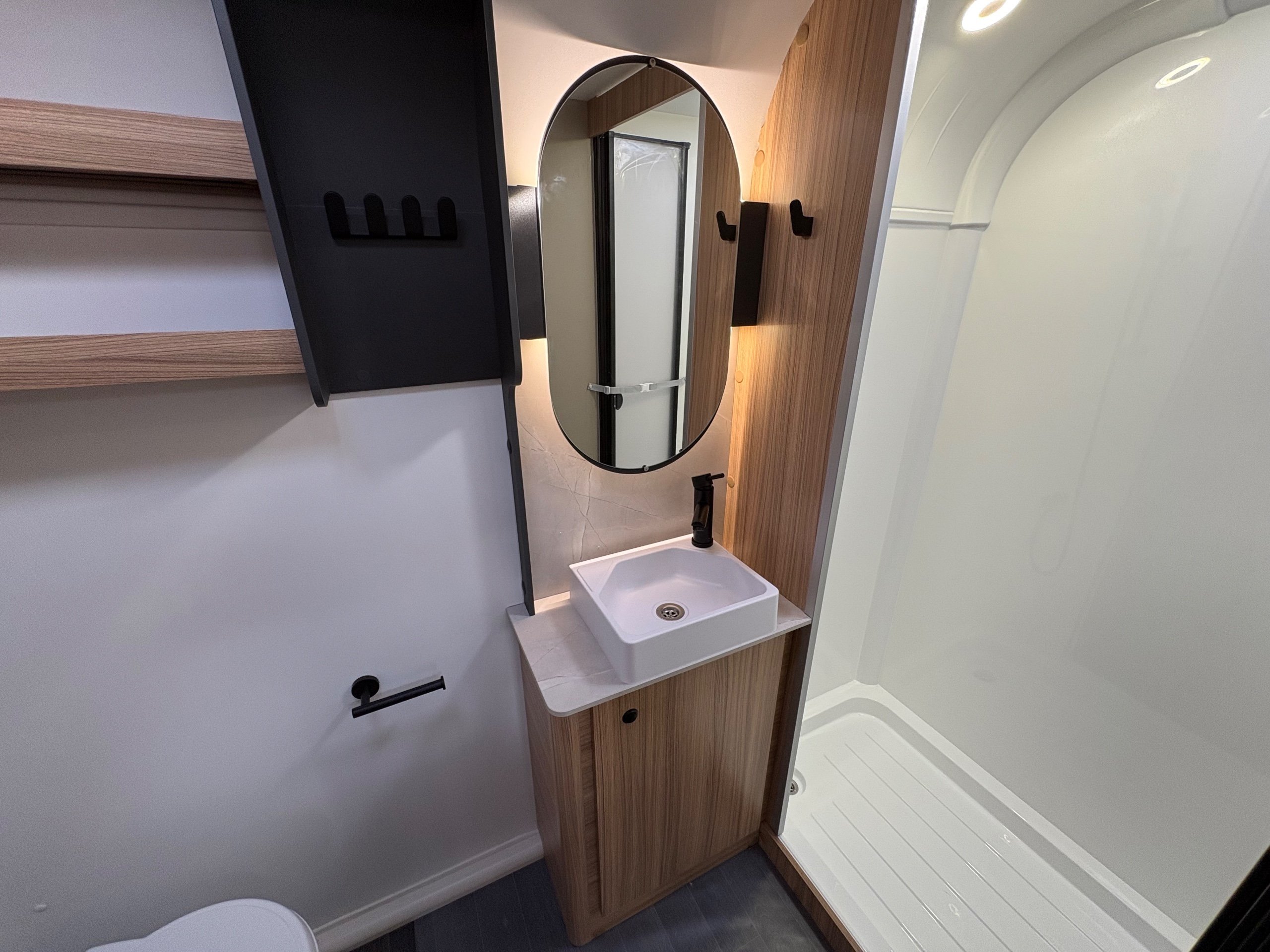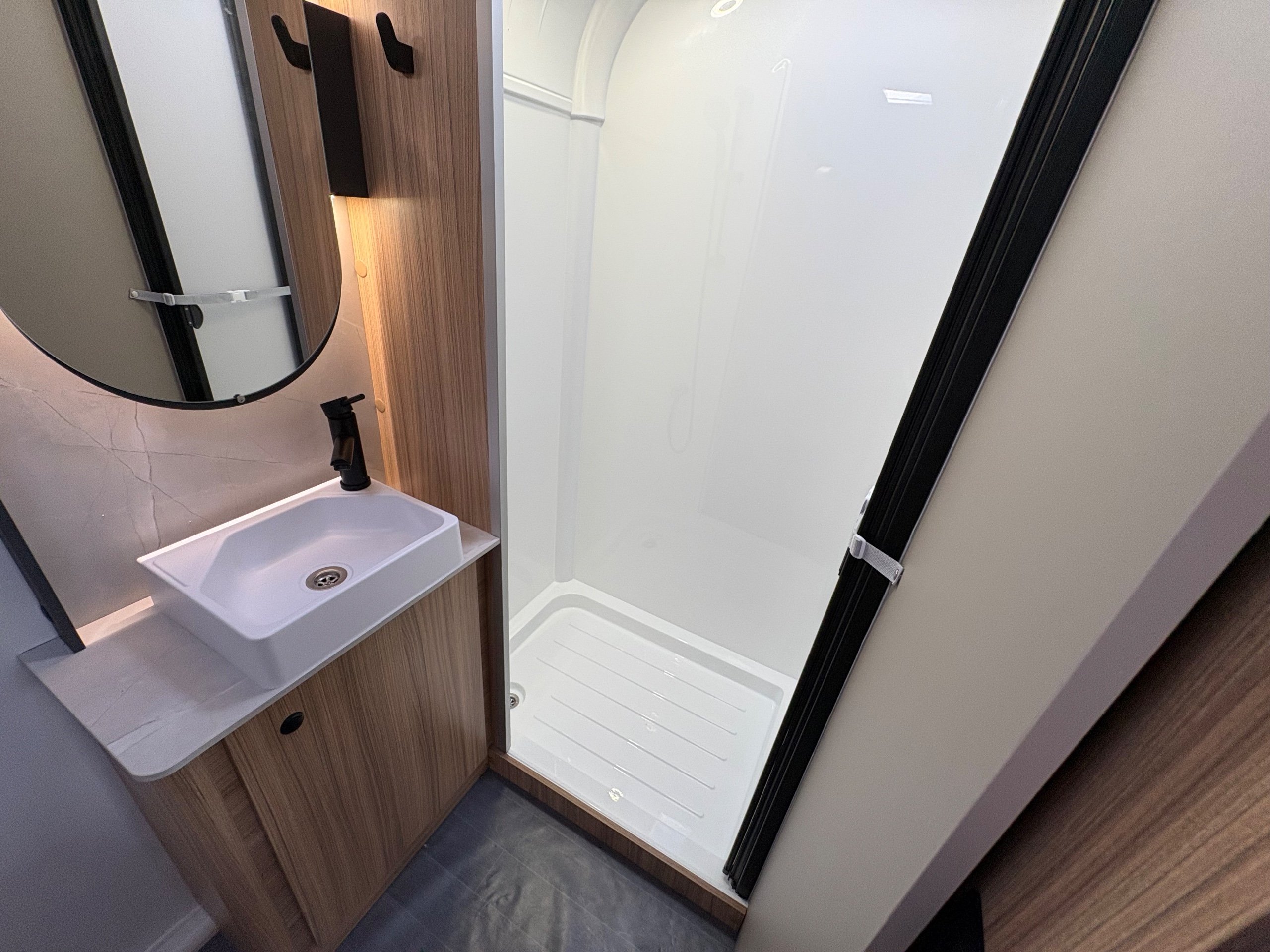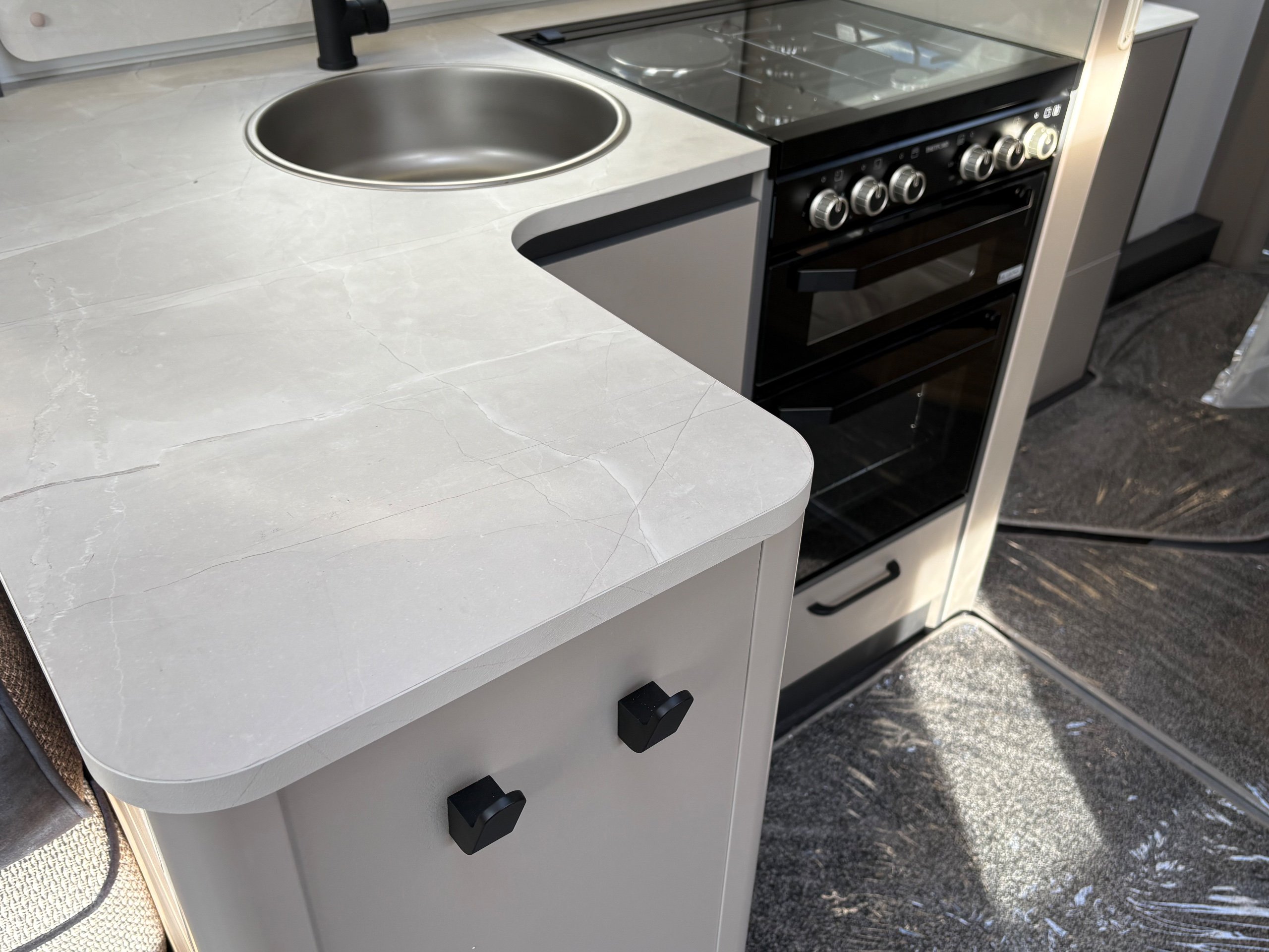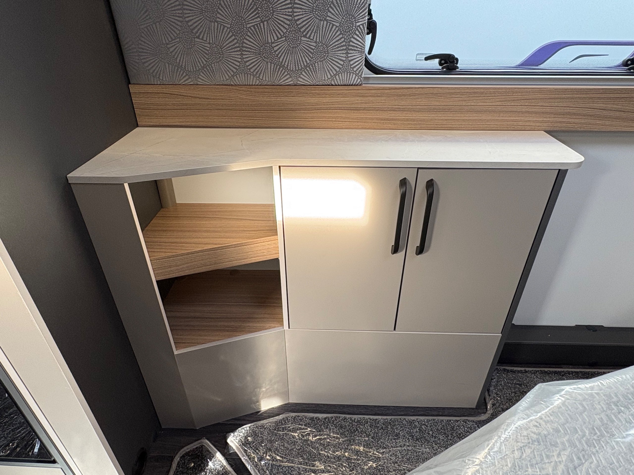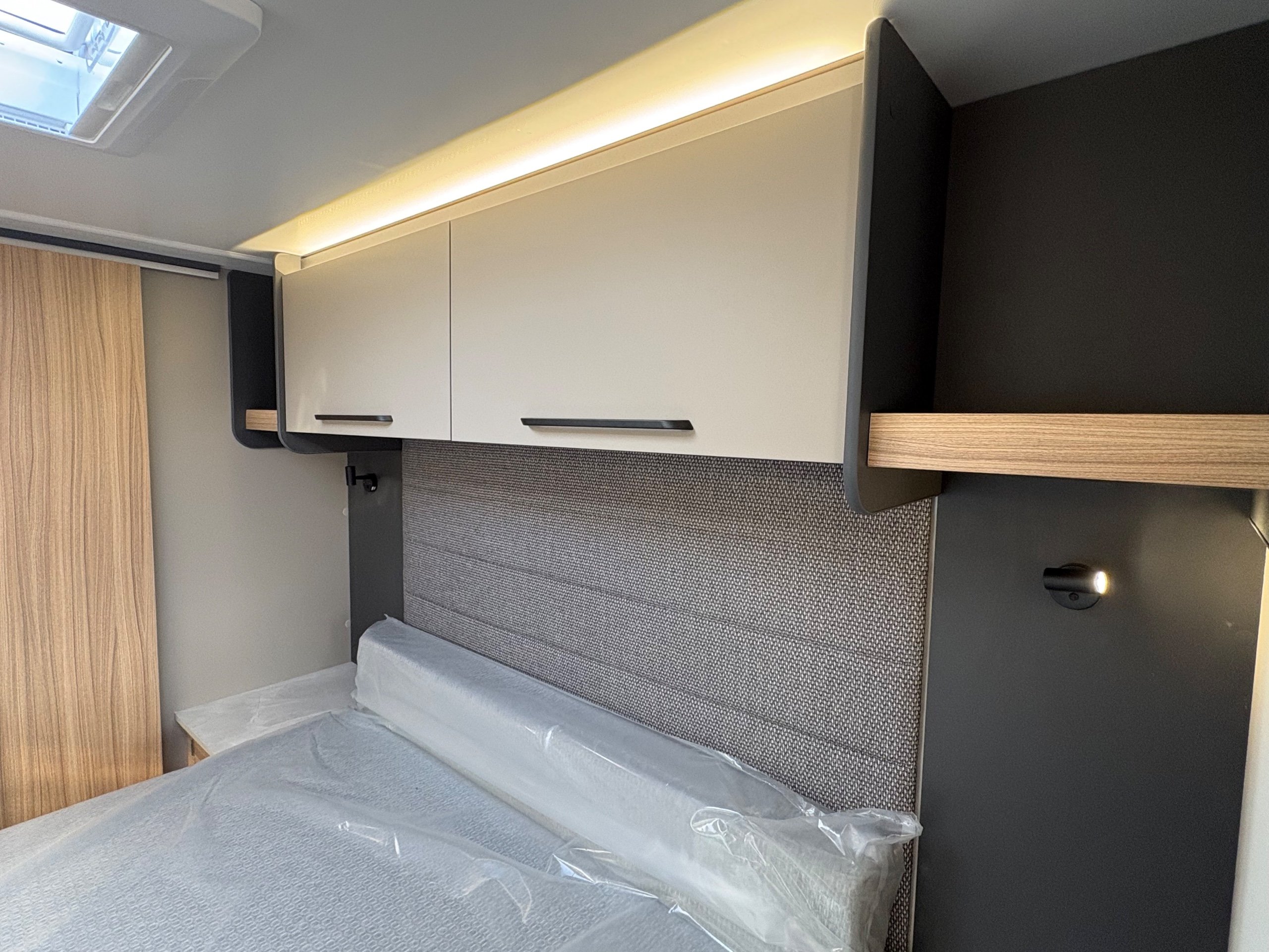 Year: 2026, Berth: 4, Internal length: 6.33m / 20'9", External length: 7.91m / 25'11", Width: 2.43m / 8', Unladen weight: 1529kg, MTPLM: 1689kg ( Awning size: 1800kg ), Awning size: 10.89m, Warranty: 3 years major components, 6 years bodyshell ( subject to terms and conditions ). This eight feet wide twin axle model, gives plenty of room to relax and enjoy this caravan. The C shaped lounge provides plenty of floor space ideal for pets as well as their owners, along with a dedicated television bracket and wireless phone charging. The bedroom has a five foot wide mattress for extra comfort, generous wardrobe space and a large rear washroom. Solar panels, alko ATC braking and external gas and mains points are just some of the features on this model. -