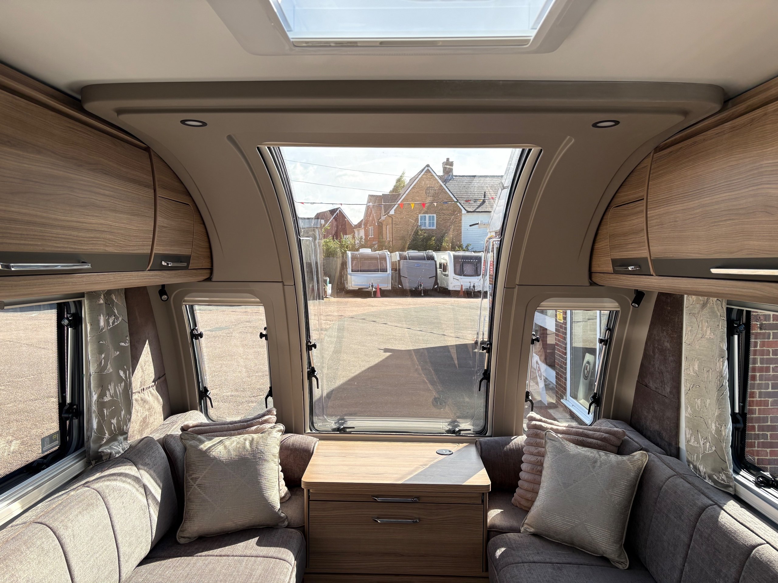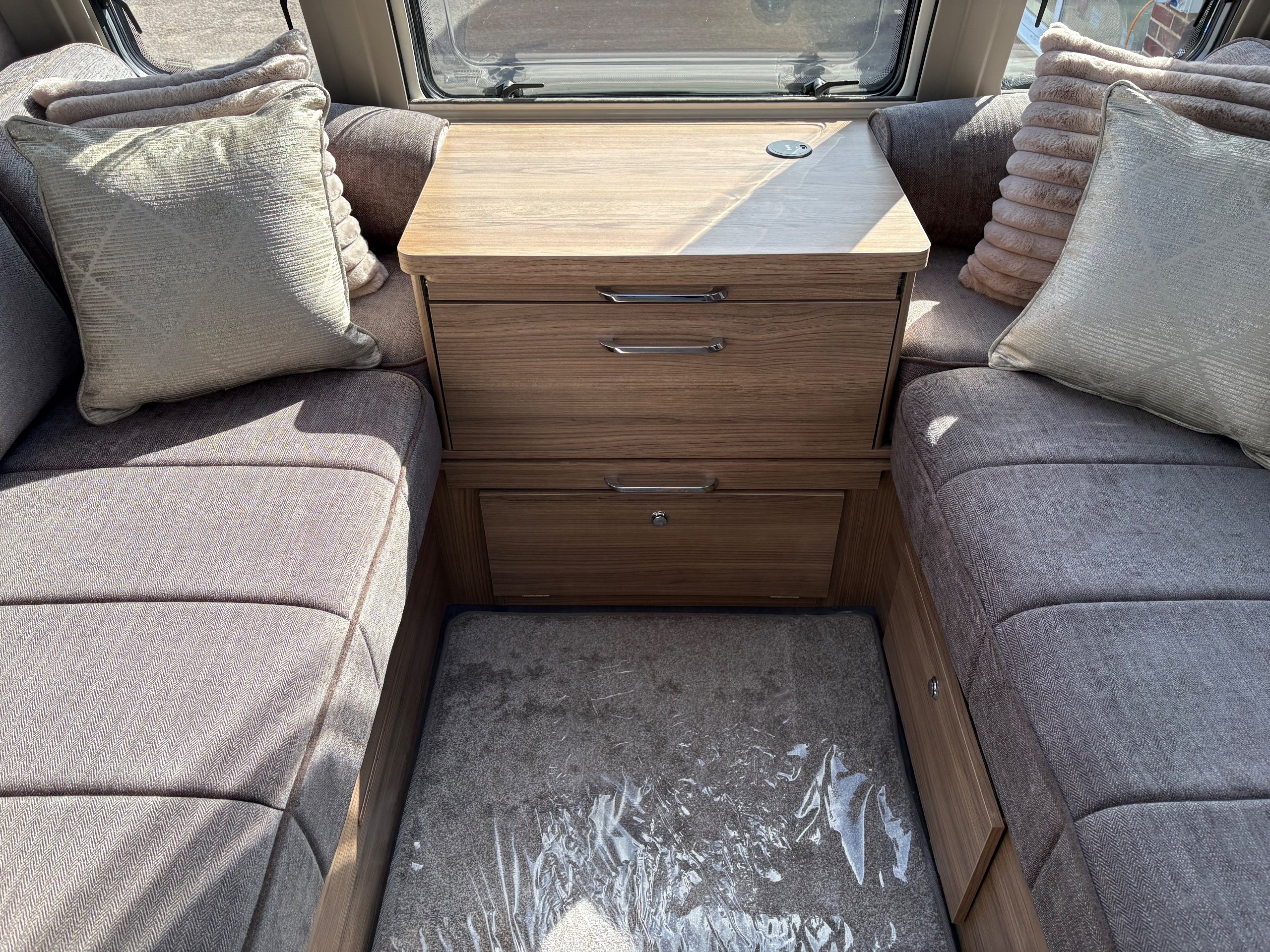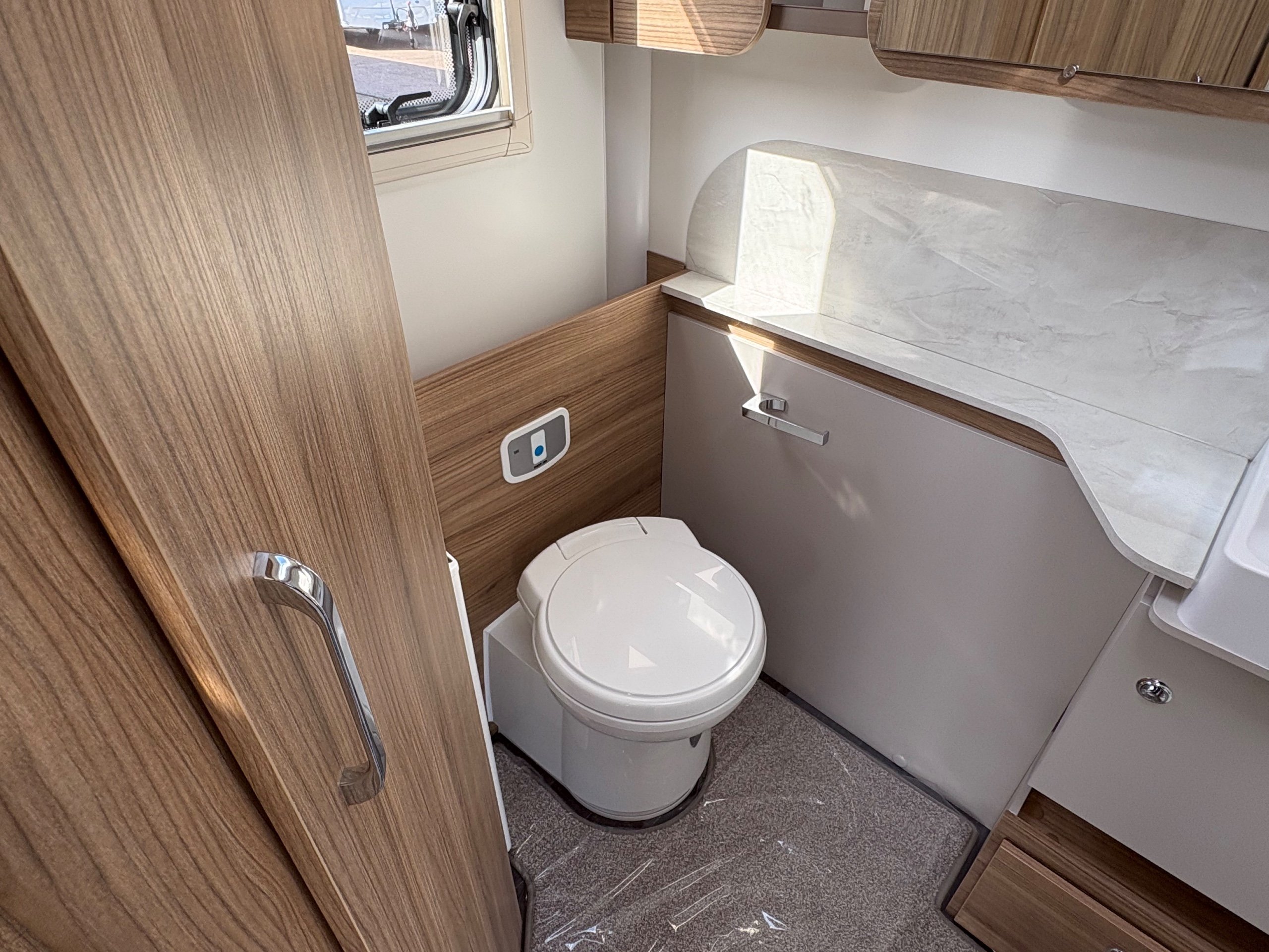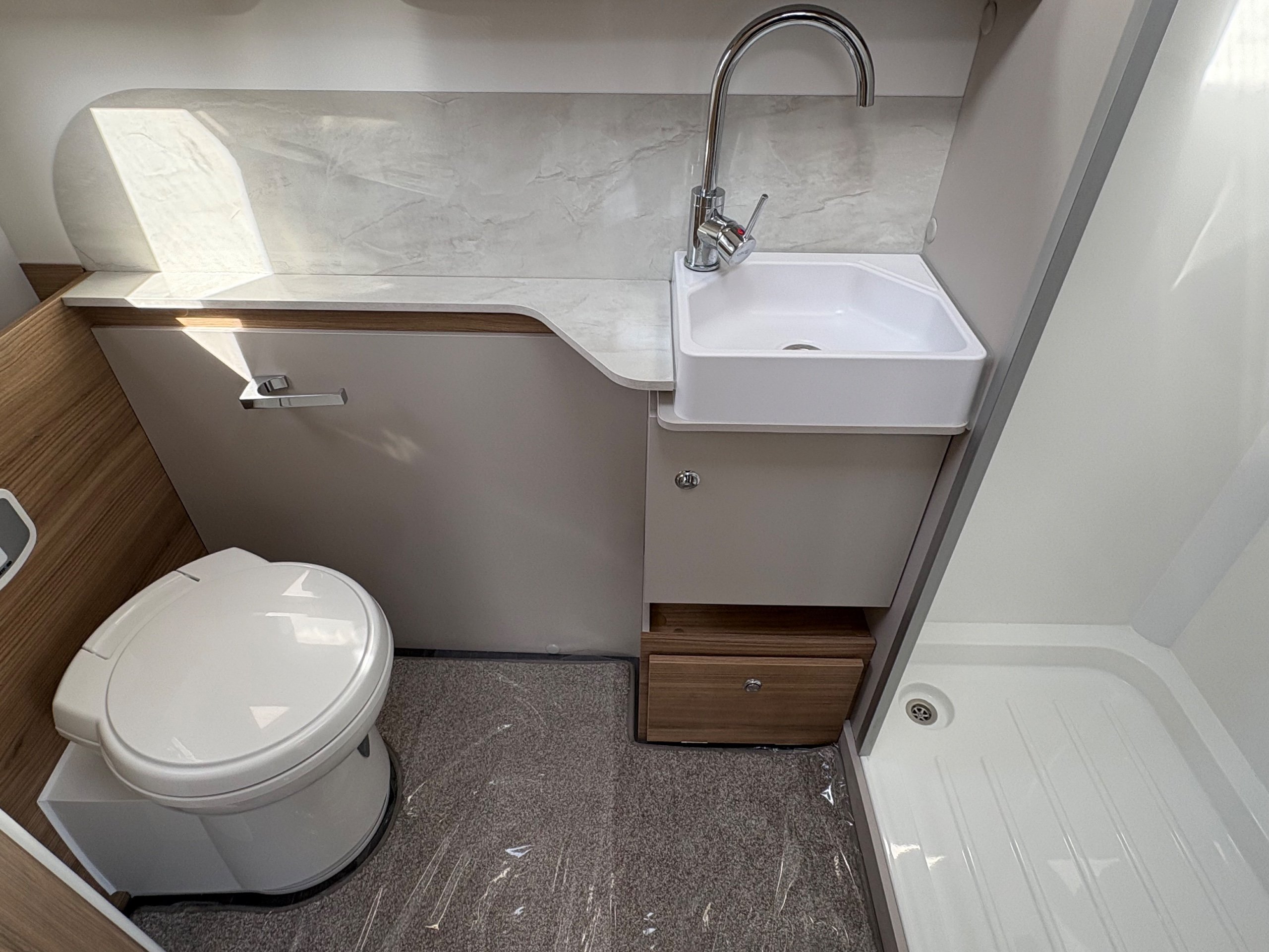 Year: 2025, Berth: 2, Internal length: 5.21m / 17;1", External length: 6.47m / 21'3", Width: 2.24m / 7'5", Unladen weight: 1324kg, MTPLM: 1450kg, Awning size: 9.44m, Warranty: 3 years major components, 6 years bodyshell ( subject to terms and conditions ). This two berth model gives a high level of equipment and comfort, in a smaller body perfect for those who want to keep a caravan at home, or have limited storage space. The front seats are long enough to be used as single beds or will make into a large double bed. Plenty of light comes into this van giving a bright spacious feel. Generous work space allow for food preparation, the kettle or television to be located. The rear end washroom allows for room to move, either for dressing or when using the shower etc. -