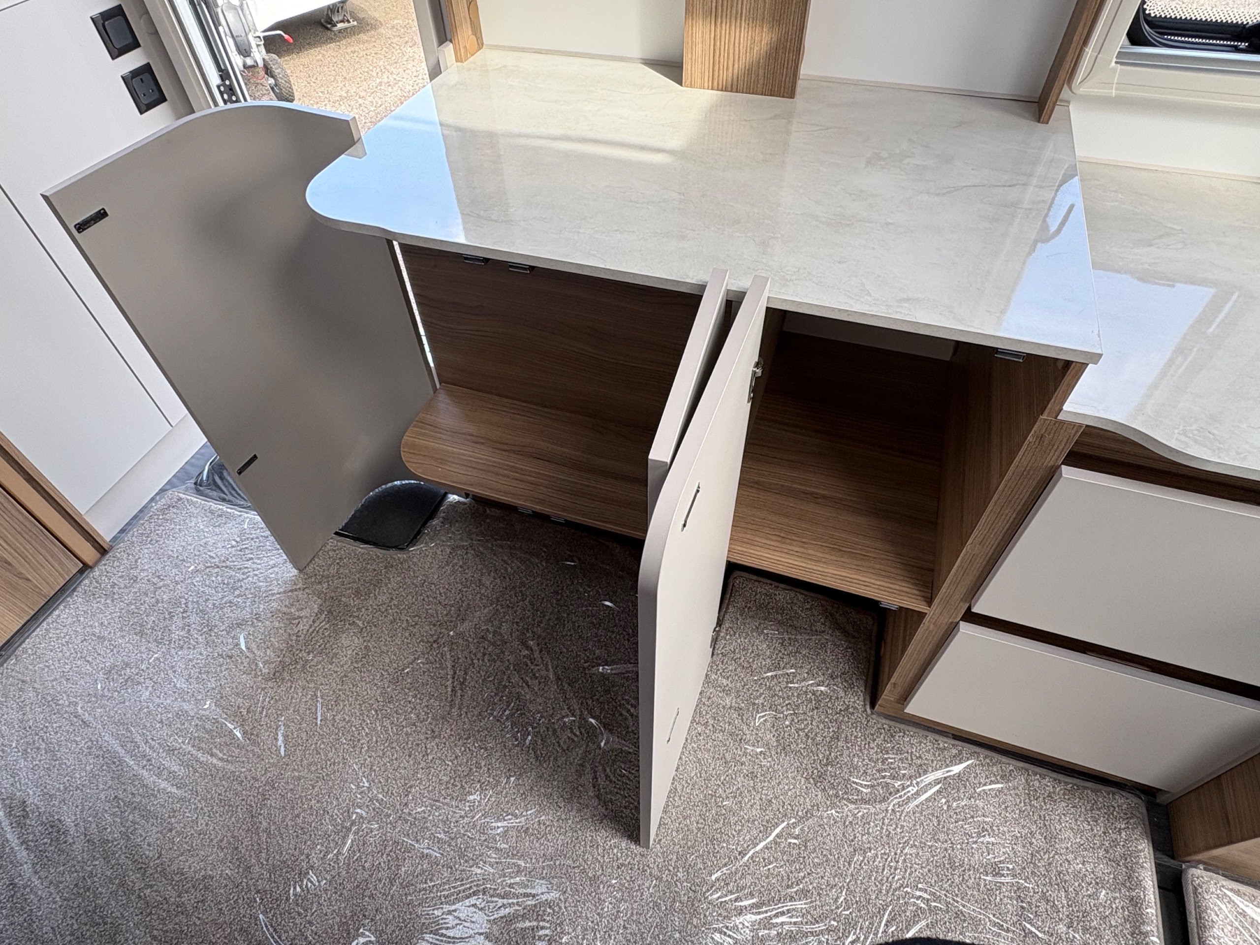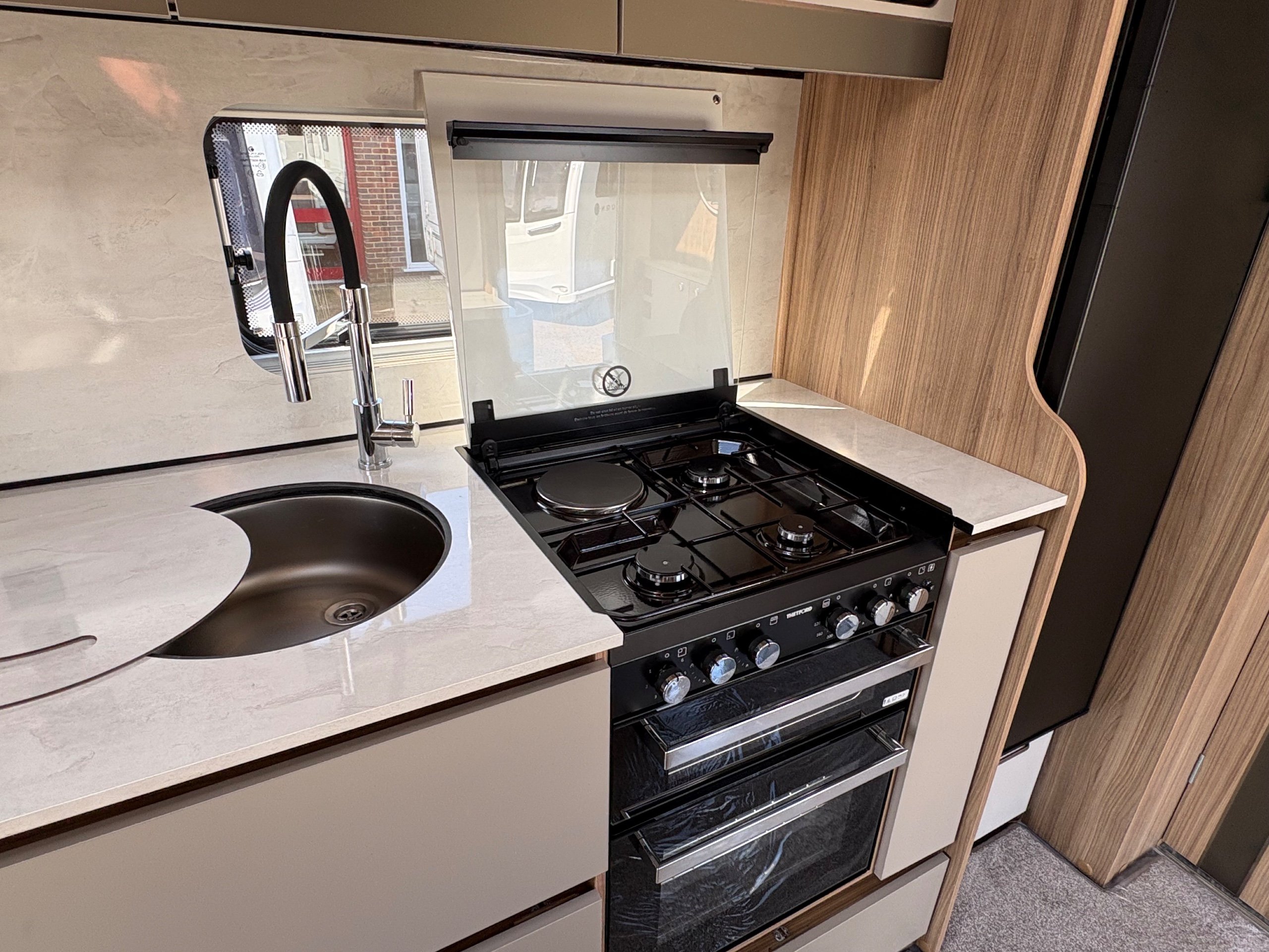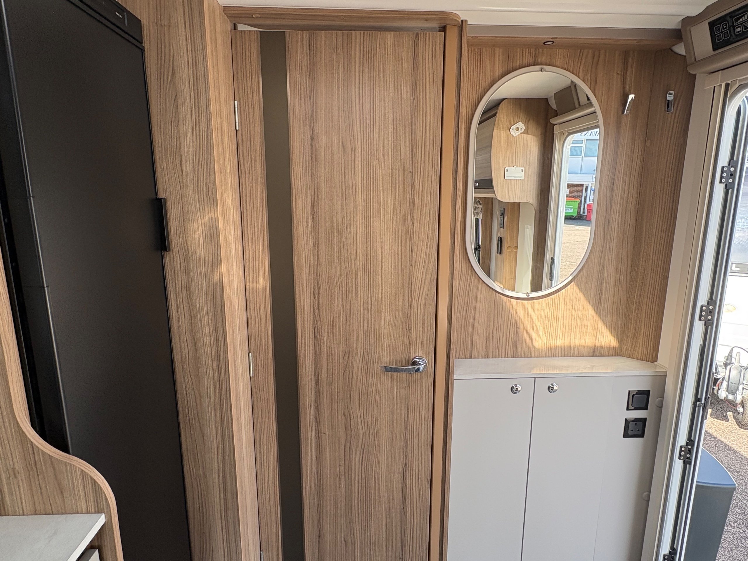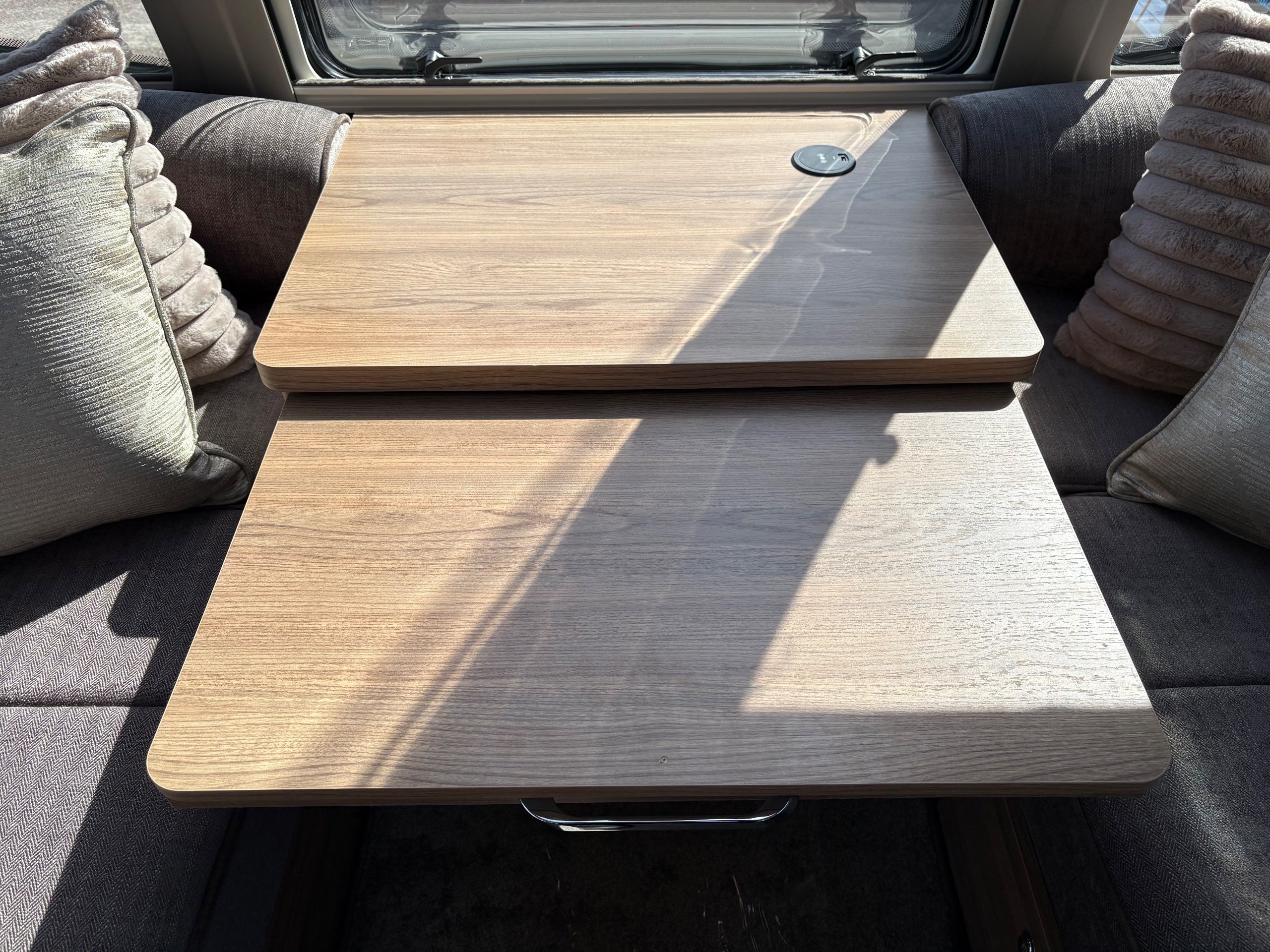 Year: 2025, Berth: 2, Internal length: 5.21m / 17;1", External length: 6.47m / 21'3", Width: 2.24m / 7'5", Unladen weight: 1324kg, MTPLM: 1450kg, Awning size: 9.44m, Warranty: 3 years major components, 6 years bodyshell ( subject to terms and conditions ). This two berth model gives a high level of equipment and comfort, in a smaller body perfect for those who want to keep a caravan at home, or have limited storage space. The front seats are long enough to be used as single beds or will make into a large double bed. Plenty of light comes into this van giving a bright spacious feel. Generous work space allow for food preparation, the kettle or television to be located. The rear end washroom allows for room to move, either for dressing or when using the shower etc. -