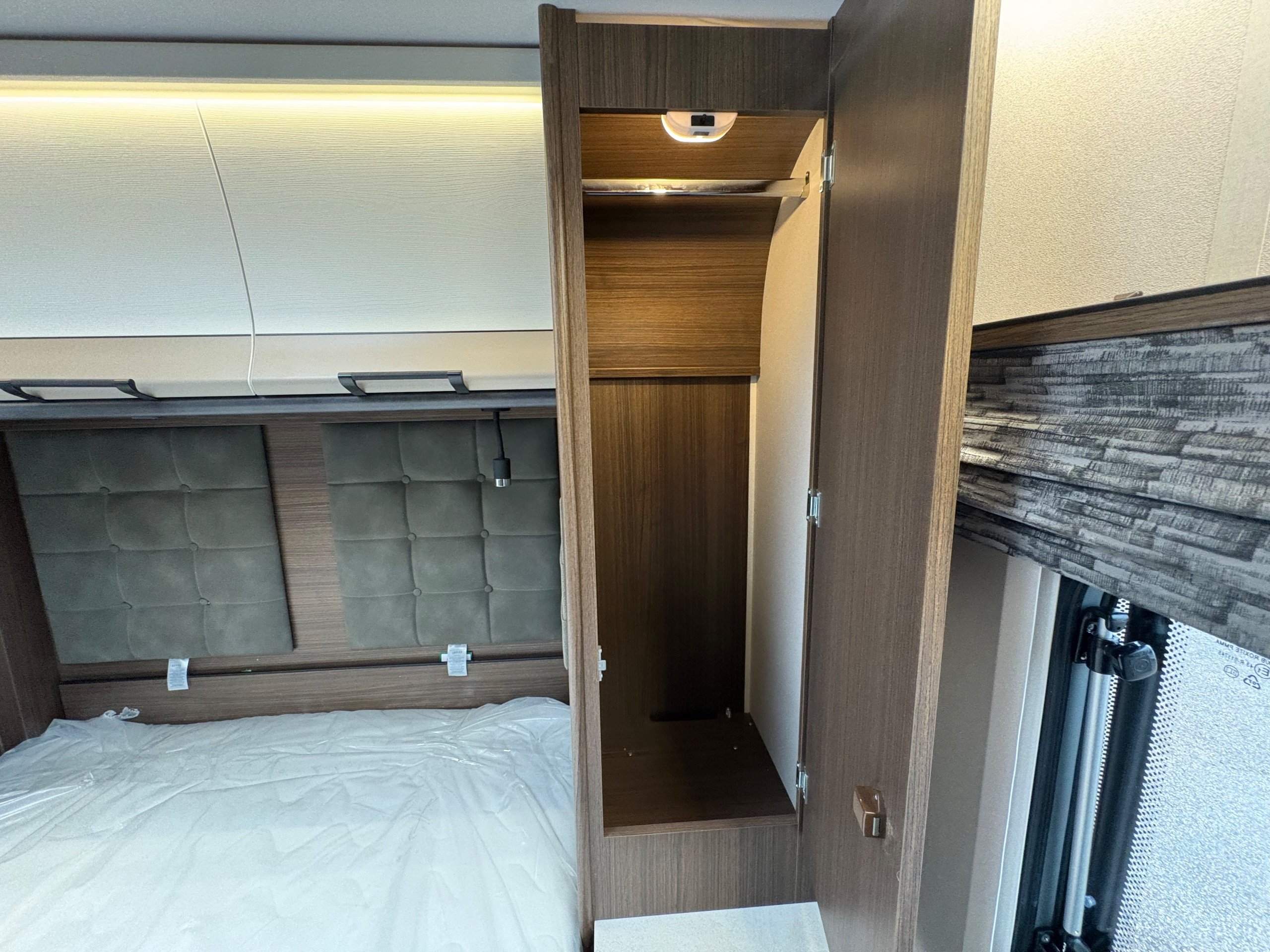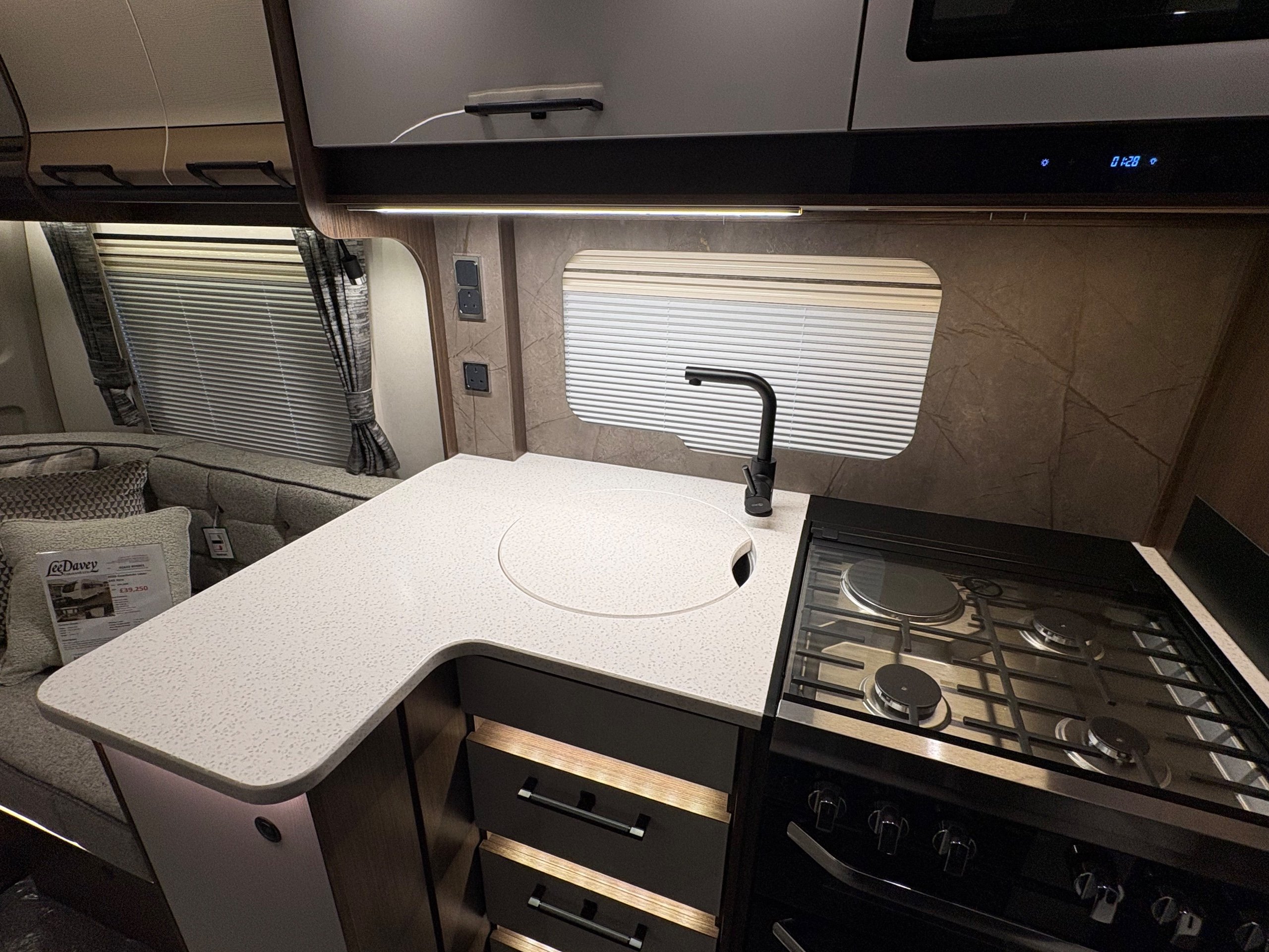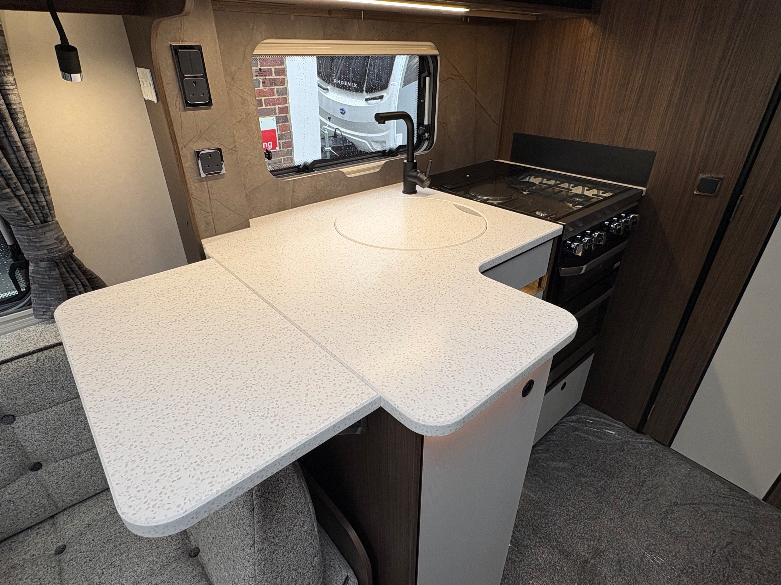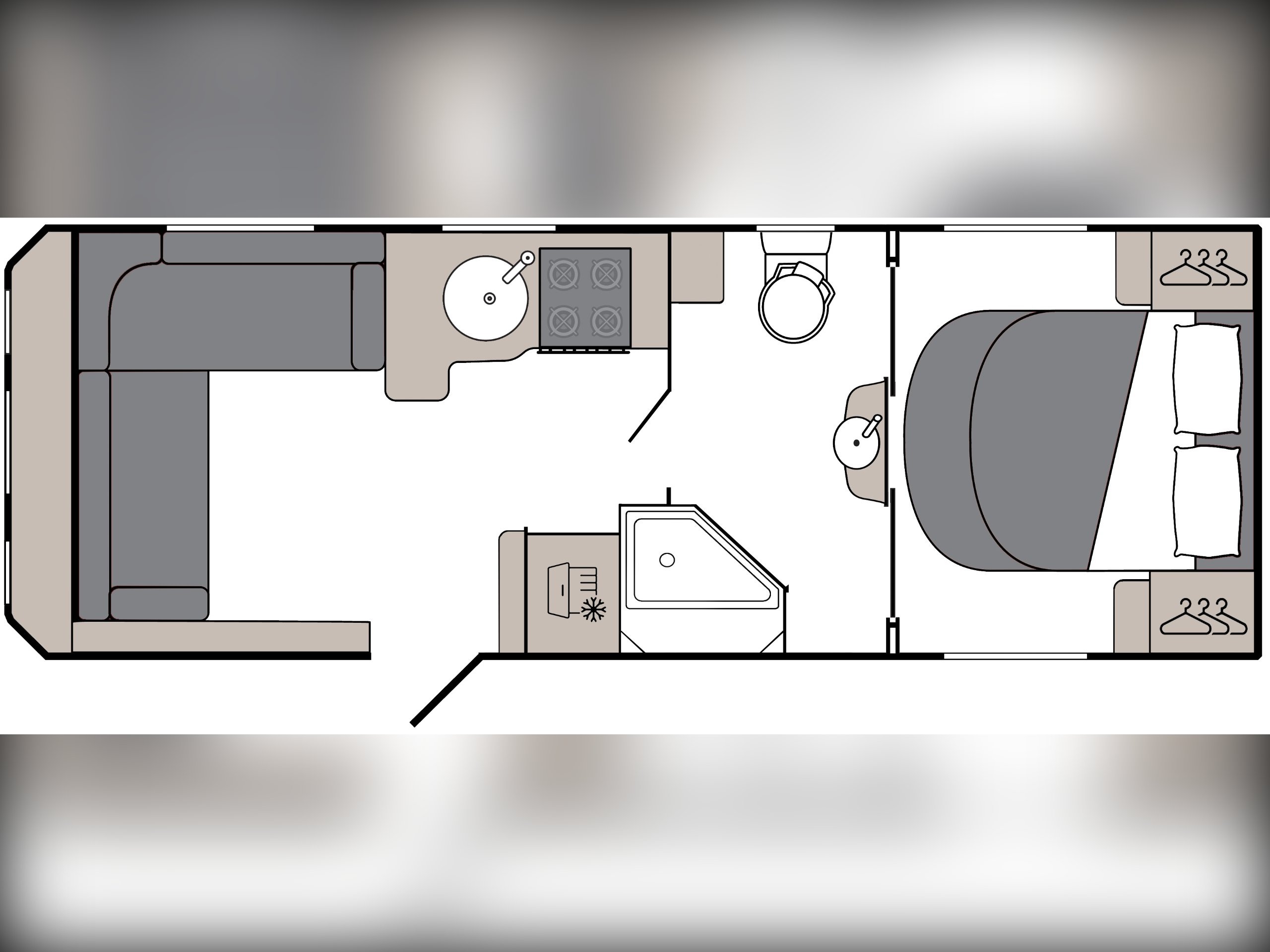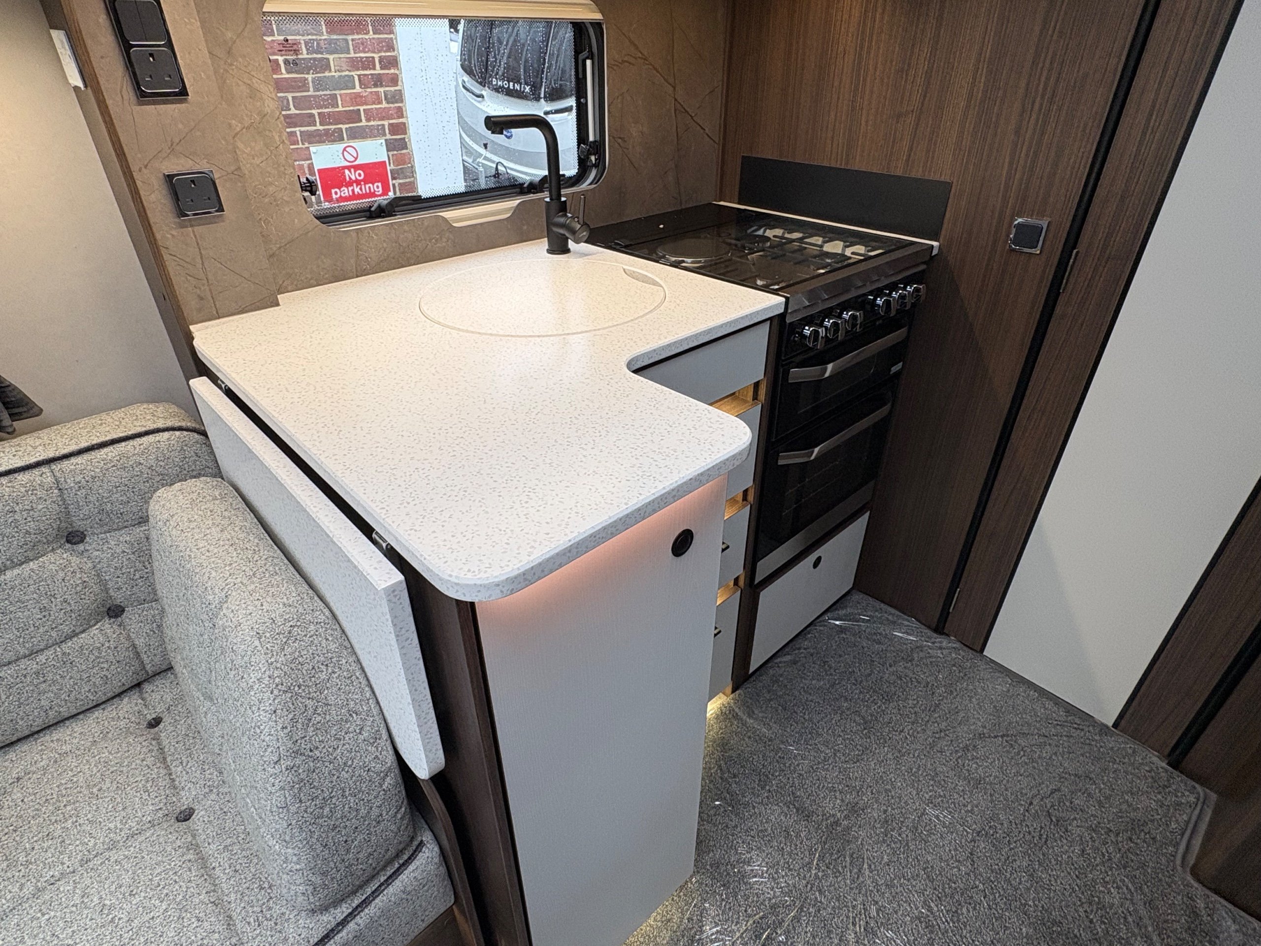 Year: 2026, Berth: 4, Internal length: 5.80m / 19', External length: 7.43m / 24'5", Width: 2.44m / 8', Unladen weight: 1595kg, MTPLM: 1770kg ( Upgraded MTPLM: 1800kg ), Awning size: 10.24m, Warranty: 3 years major components, 10 year bodyshell ( subject to terms and conditions ). This caravan features a L shaped front lounge, which in conjunction with caravans eight foot width, makes for a comfortable seating area. The mid washroom has been modified for the 2026 season, with a new shaped shower providing better access to the washroom. The handbasin is centrally fitted ahead of the bedroom, providing individual access to either side of the double bed. The alde heating system provides a true all year round performer. -