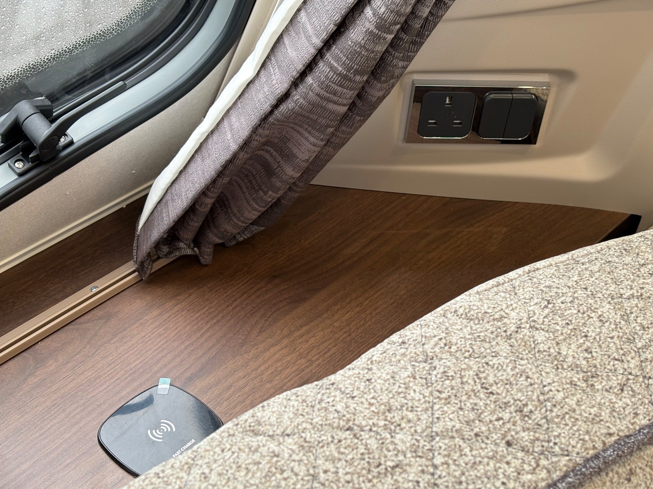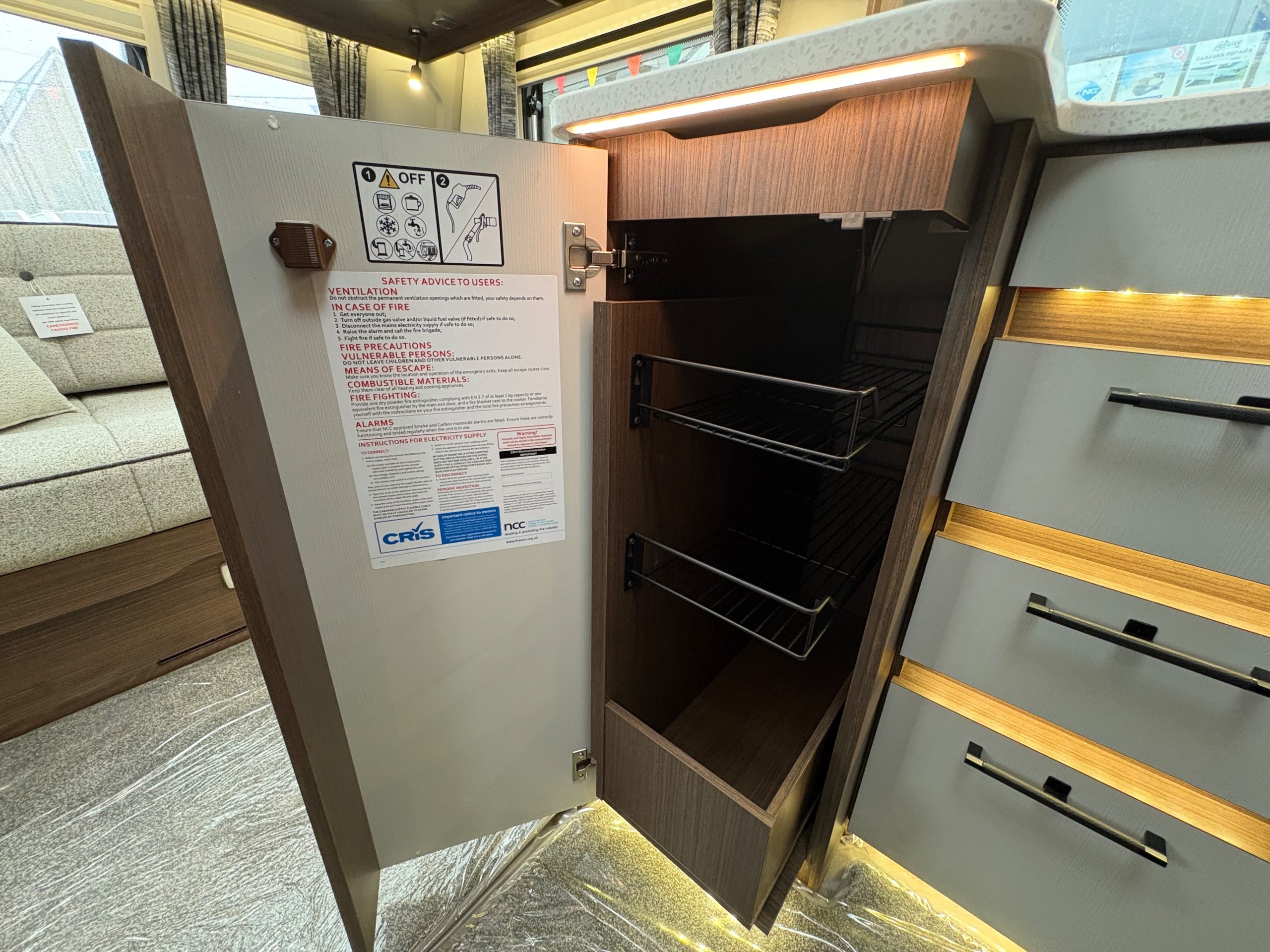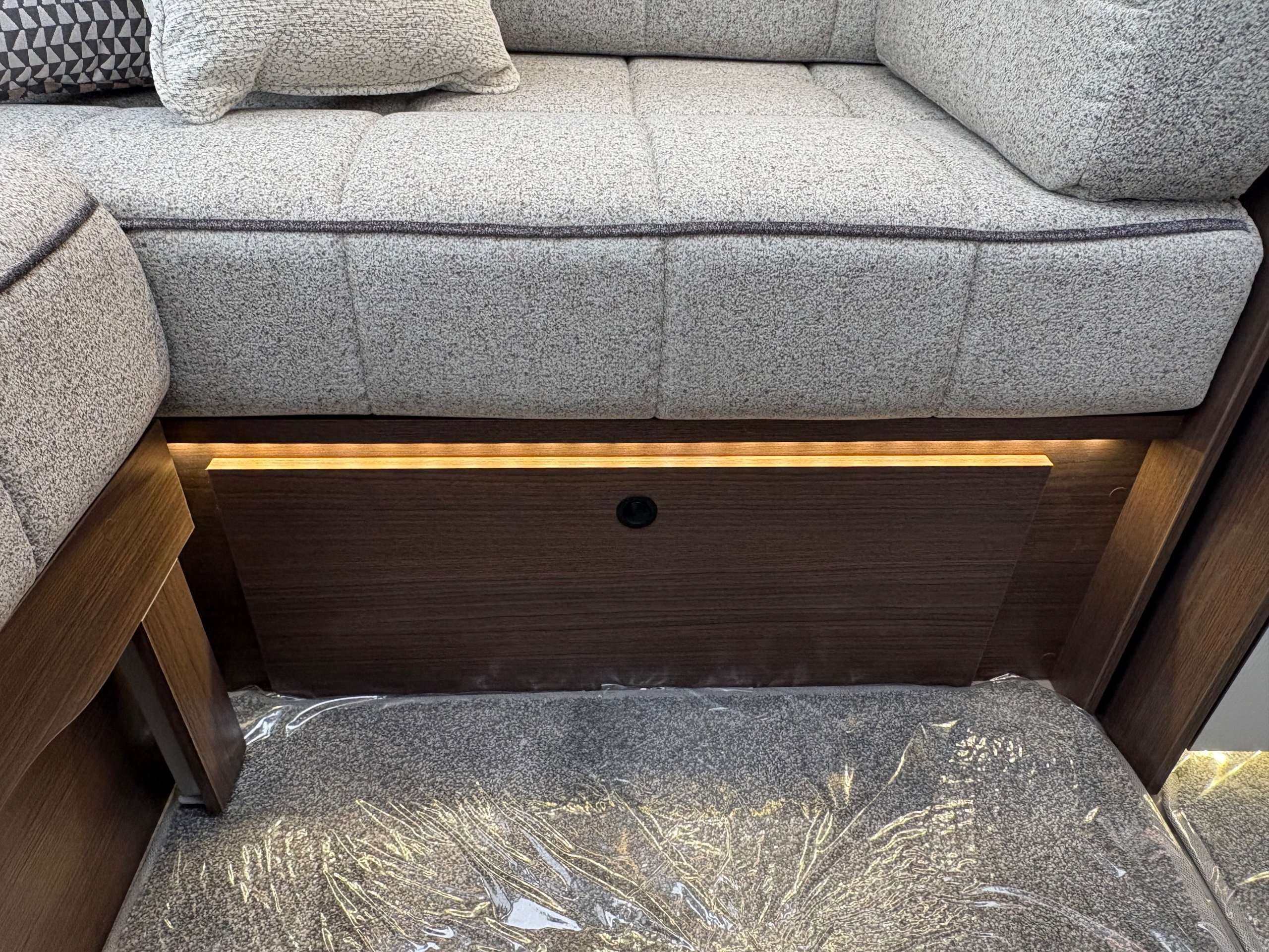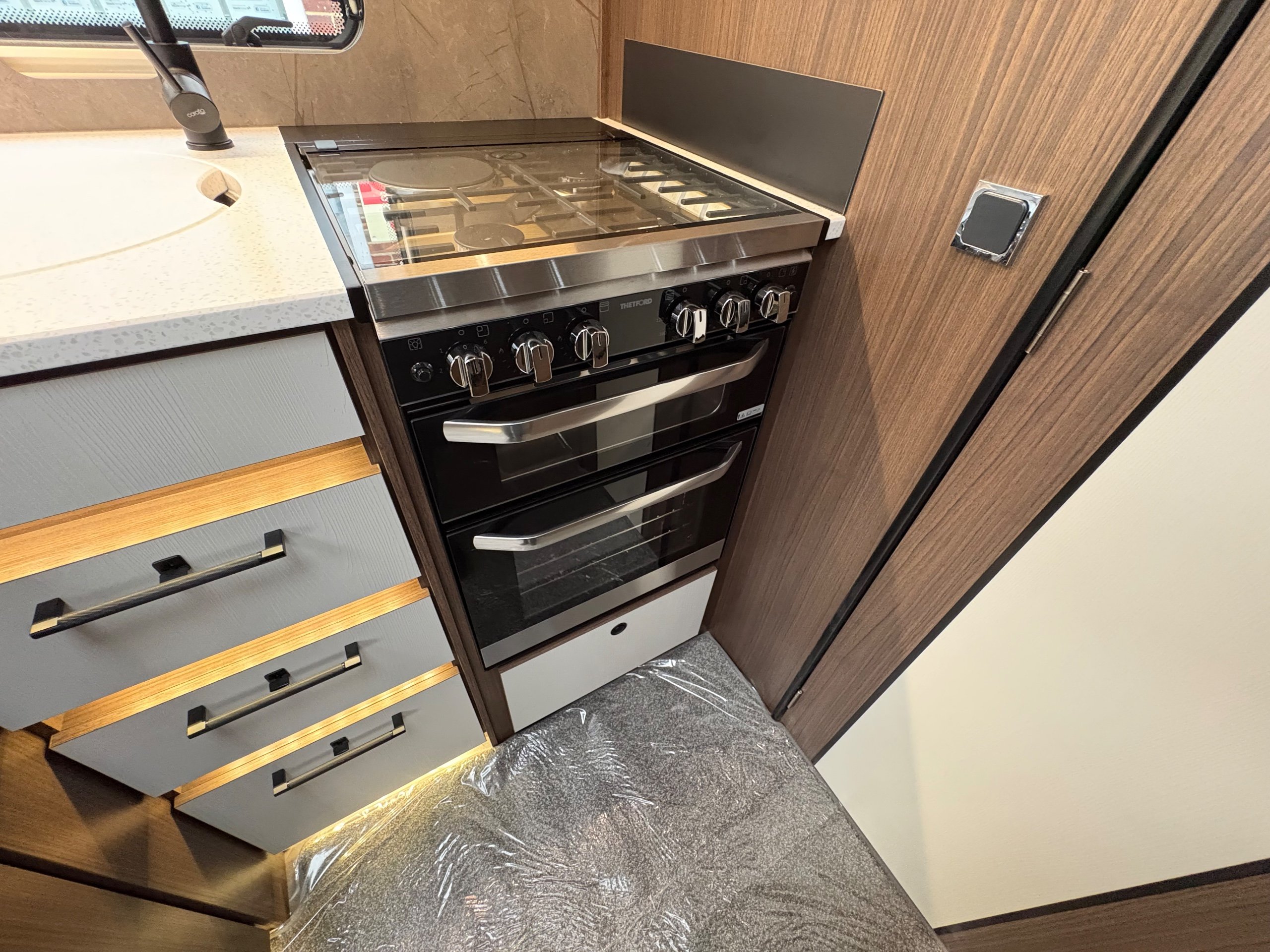 Year: 2026, Berth: 4, Internal length: 5.80m / 19', External length: 7.43m / 24'5", Width: 2.44m / 8', Unladen weight: 1595kg, MTPLM: 1770kg ( Upgraded MTPLM: 1800kg ), Awning size: 10.24m, Warranty: 3 years major components, 10 year bodyshell ( subject to terms and conditions ). This caravan features a L shaped front lounge, which in conjunction with caravans eight foot width, makes for a comfortable seating area. The mid washroom has been modified for the 2026 season, with a new shaped shower providing better access to the washroom. The handbasin is centrally fitted ahead of the bedroom, providing individual access to either side of the double bed. The alde heating system provides a true all year round performer. -