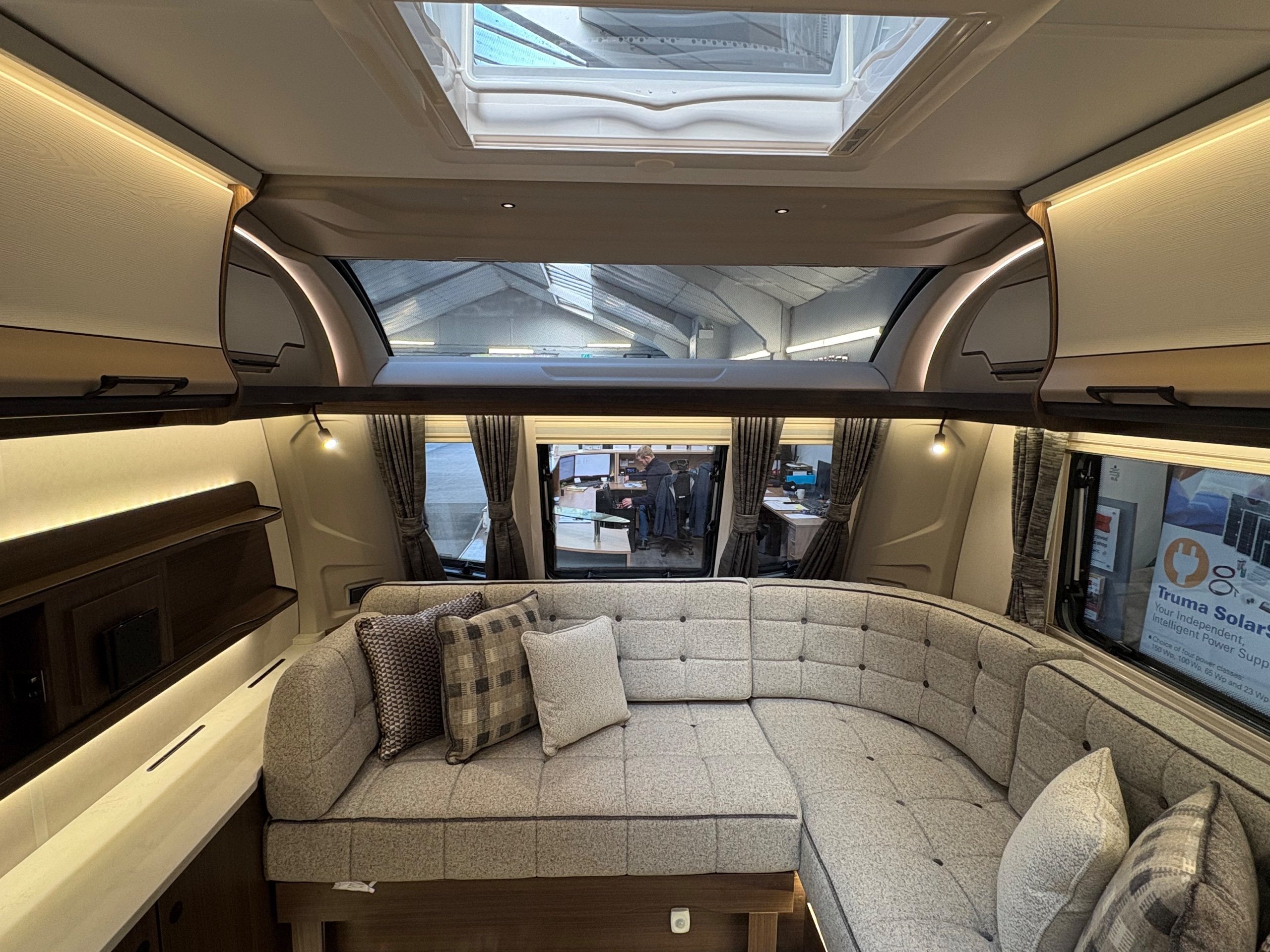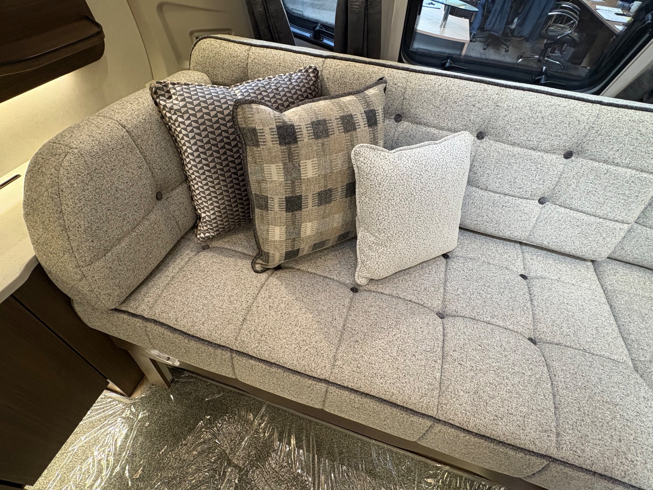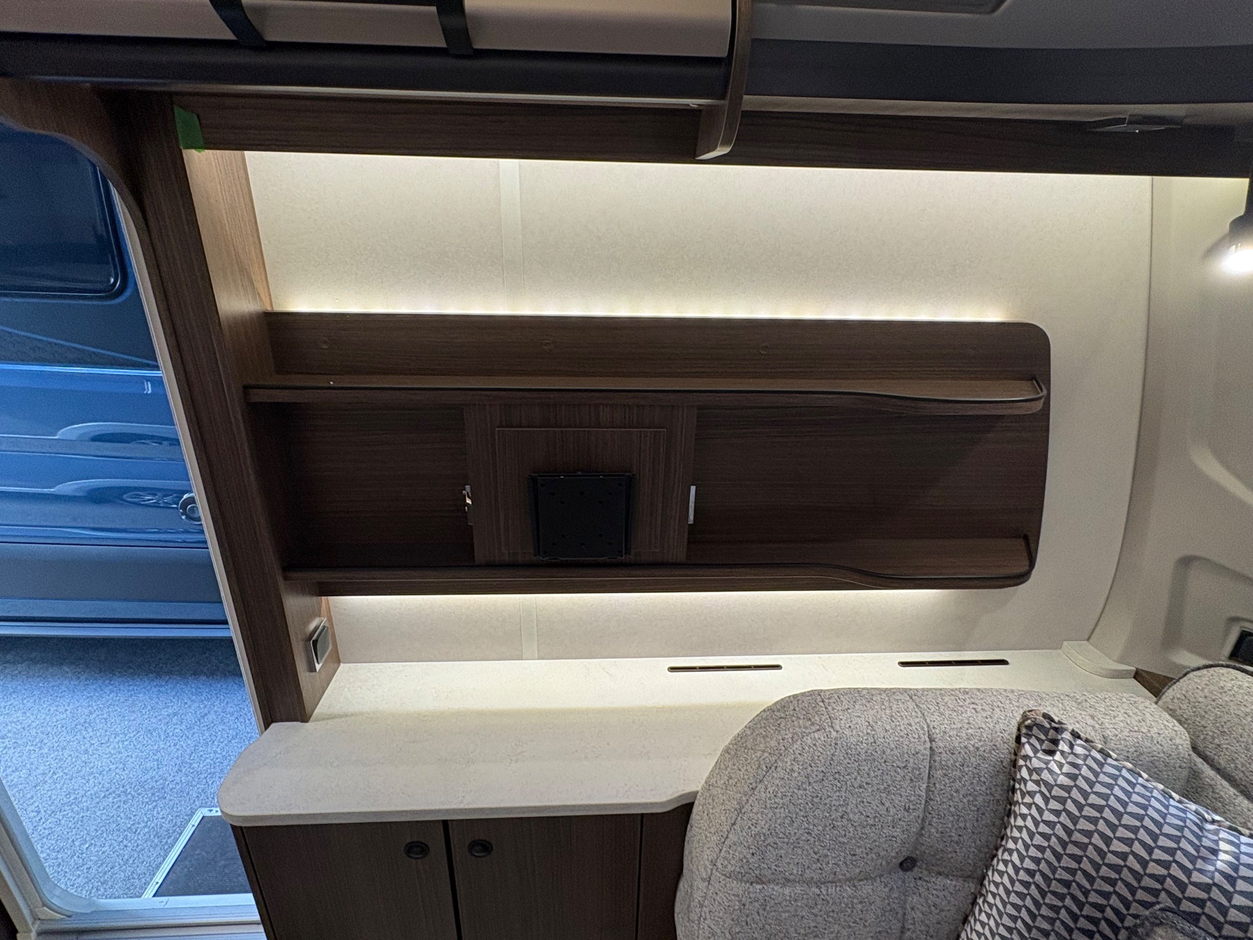 Year: 2026, Berth: 4, Internal length:6.27m / 20'7", External length: 7.90m / 25'11", Width: 2.44m / 8', Unladen weight: 1749kg, MTPLM: 1919kg ( Upgraded MTPLM: 2000kg ), Awning size: 10.62m, Warranty: 3 years major components, 10 year bodyshell ( subject to terms and conditions ). This twin axle caravan features a spacious L shaped front lounge, a mid washroom and a rear transverse double bed from the off side. The front lounge also features a dedicated television mounting and comes with a 32" Avtex television as standard. This can be moved and used on the identical mounting in the bedroom. The mid washroom allows privacy from either end of the caravan, allowing the early riser to do their own thing in the front lounge, without disturbing anyone still in the bedroom. -