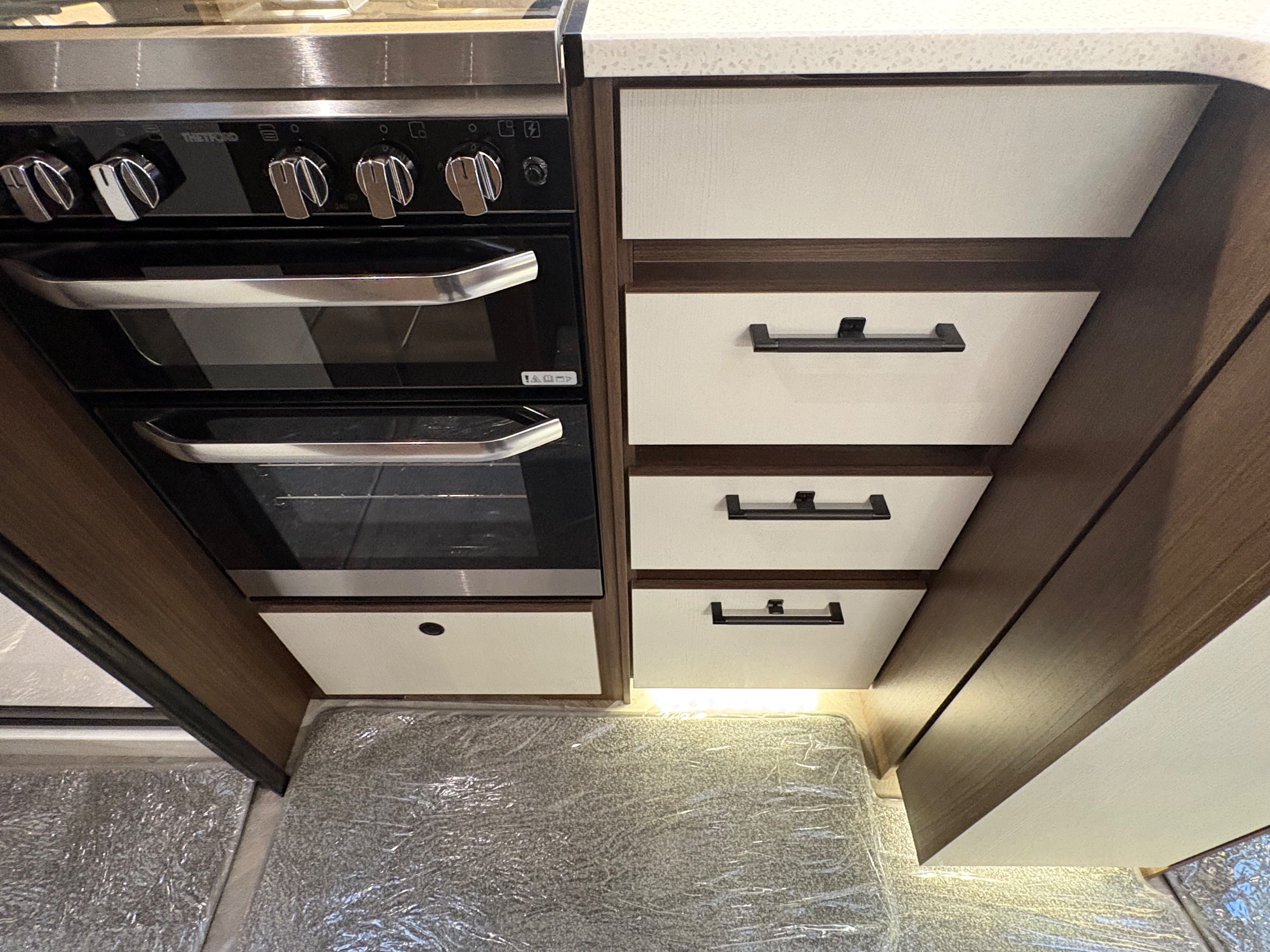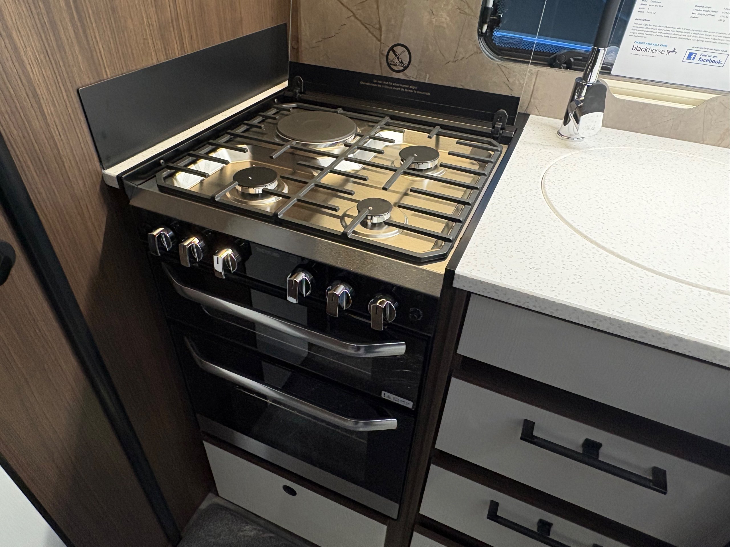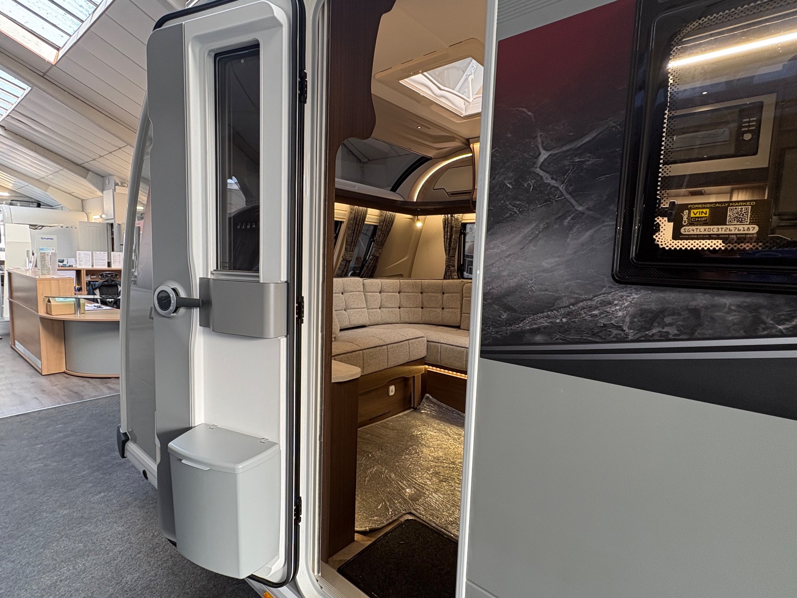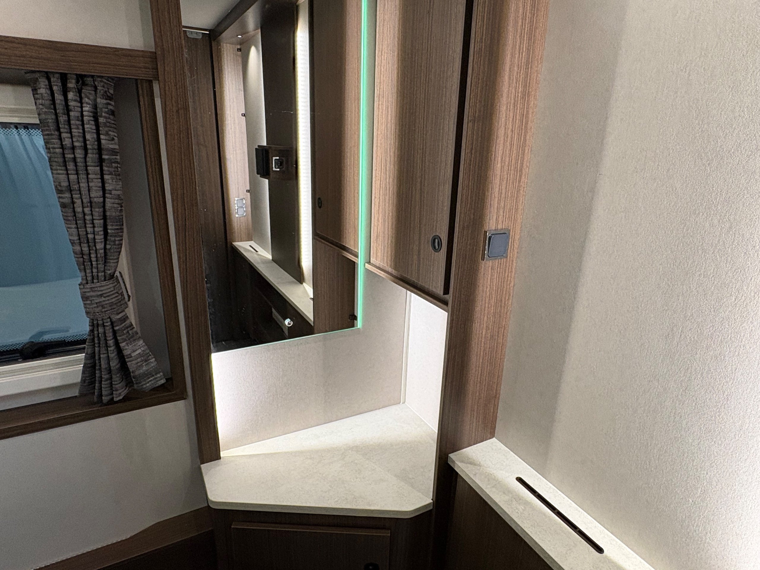 Year: 2026, Berth: 4, Internal length:6.27m / 20'7", External length: 7.90m / 25'11", Width: 2.44m / 8', Unladen weight: 1749kg, MTPLM: 1919kg ( Upgraded MTPLM: 2000kg ), Awning size: 10.62m, Warranty: 3 years major components, 10 year bodyshell ( subject to terms and conditions ). This twin axle caravan features a spacious L shaped front lounge, a mid washroom and a rear transverse double bed from the off side. The front lounge also features a dedicated television mounting and comes with a 32" Avtex television as standard. This can be moved and used on the identical mounting in the bedroom. The mid washroom allows privacy from either end of the caravan, allowing the early riser to do their own thing in the front lounge, without disturbing anyone still in the bedroom. -