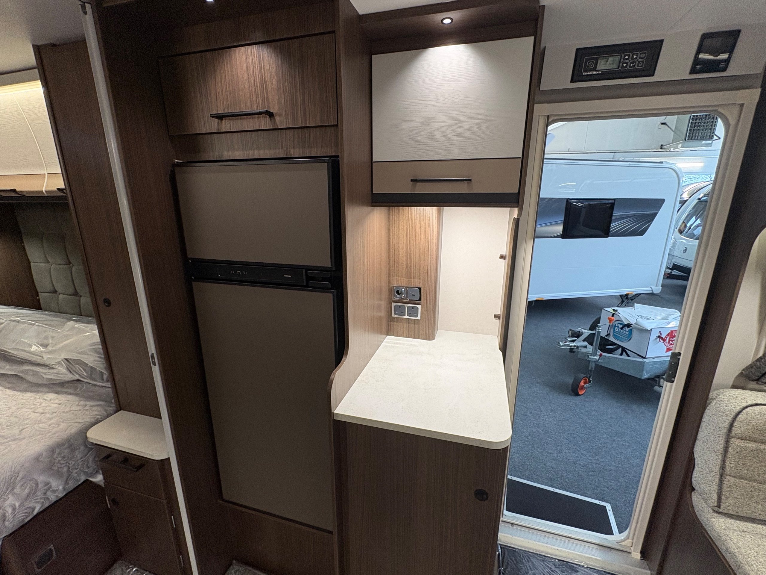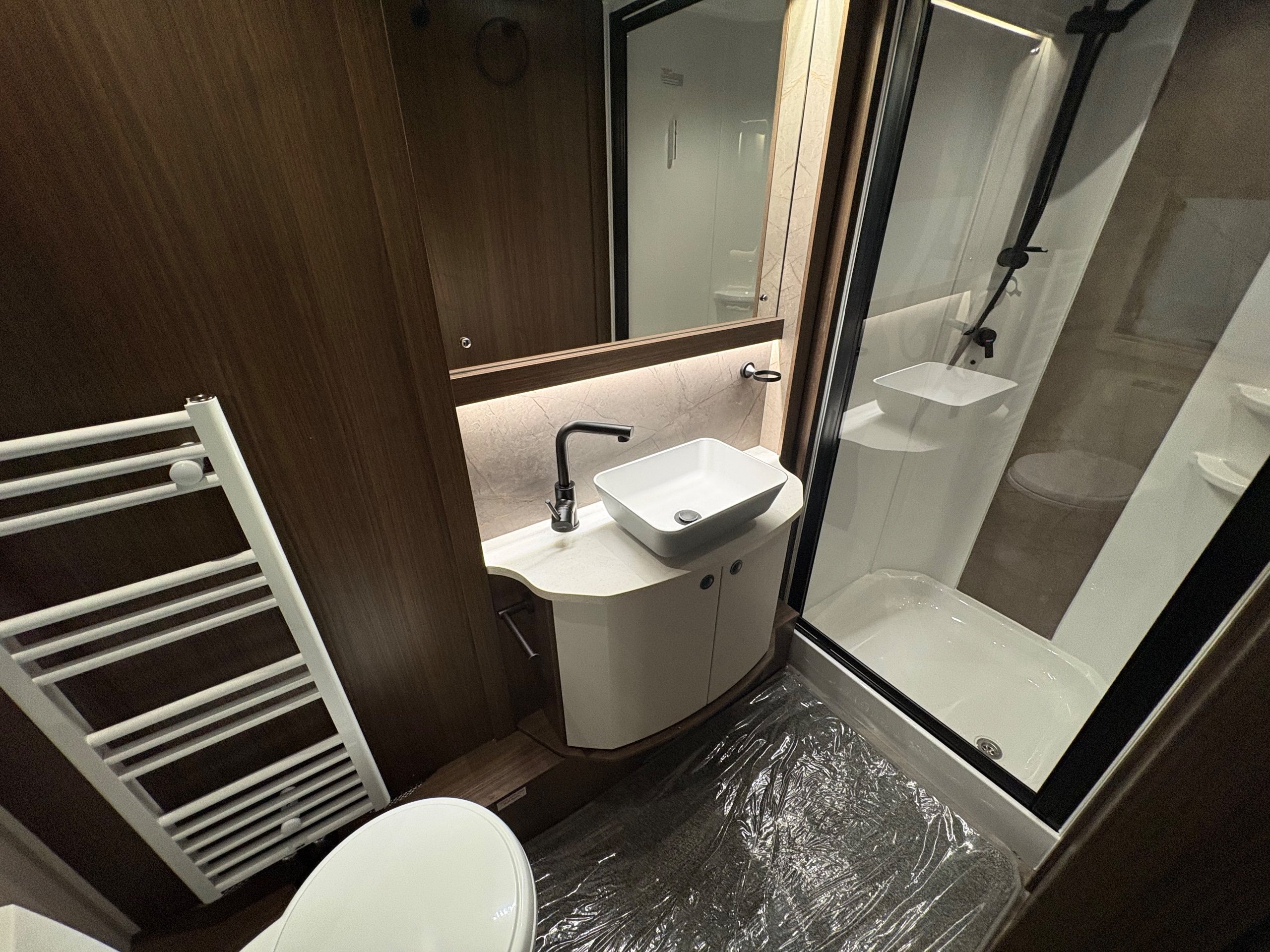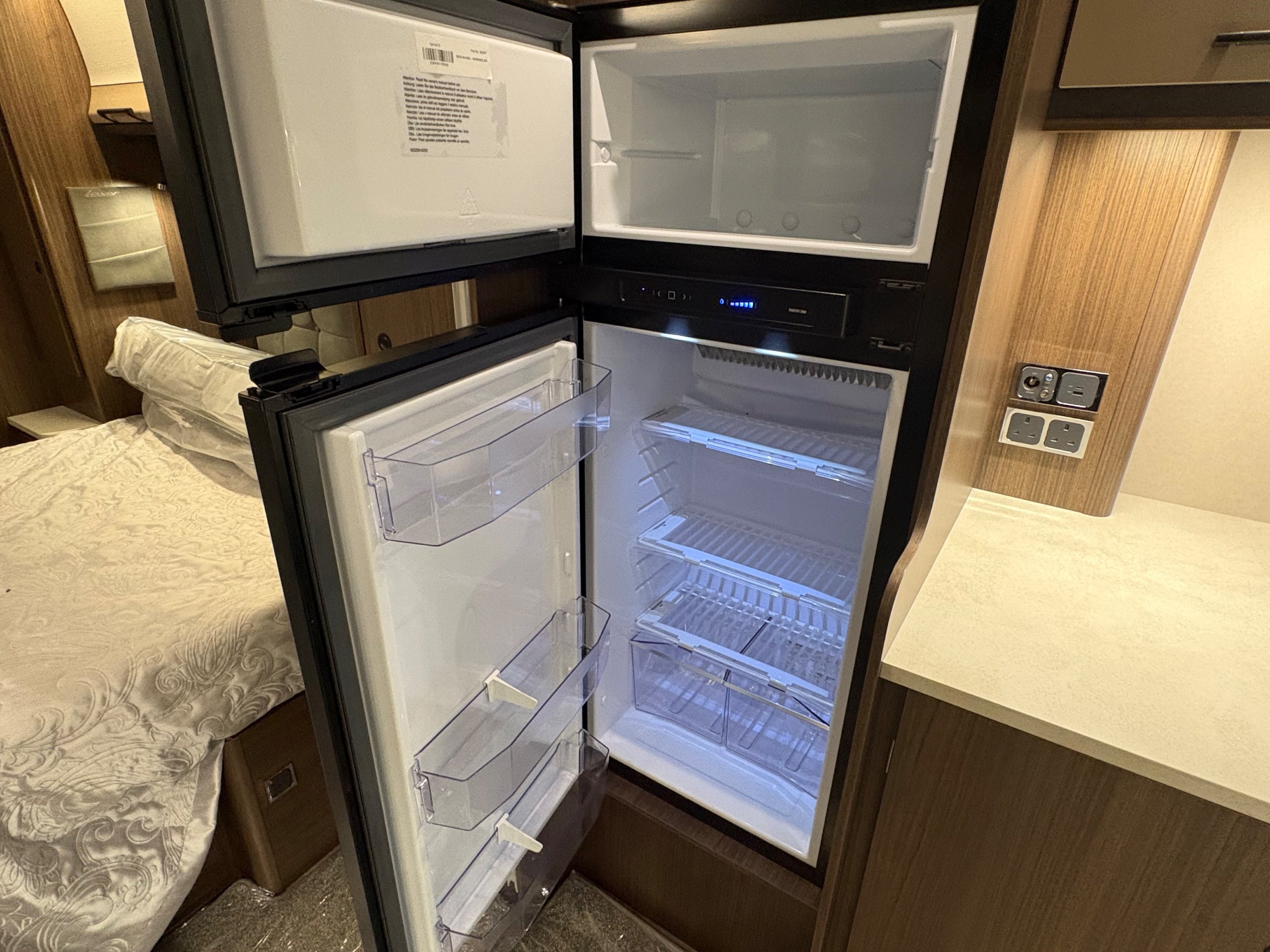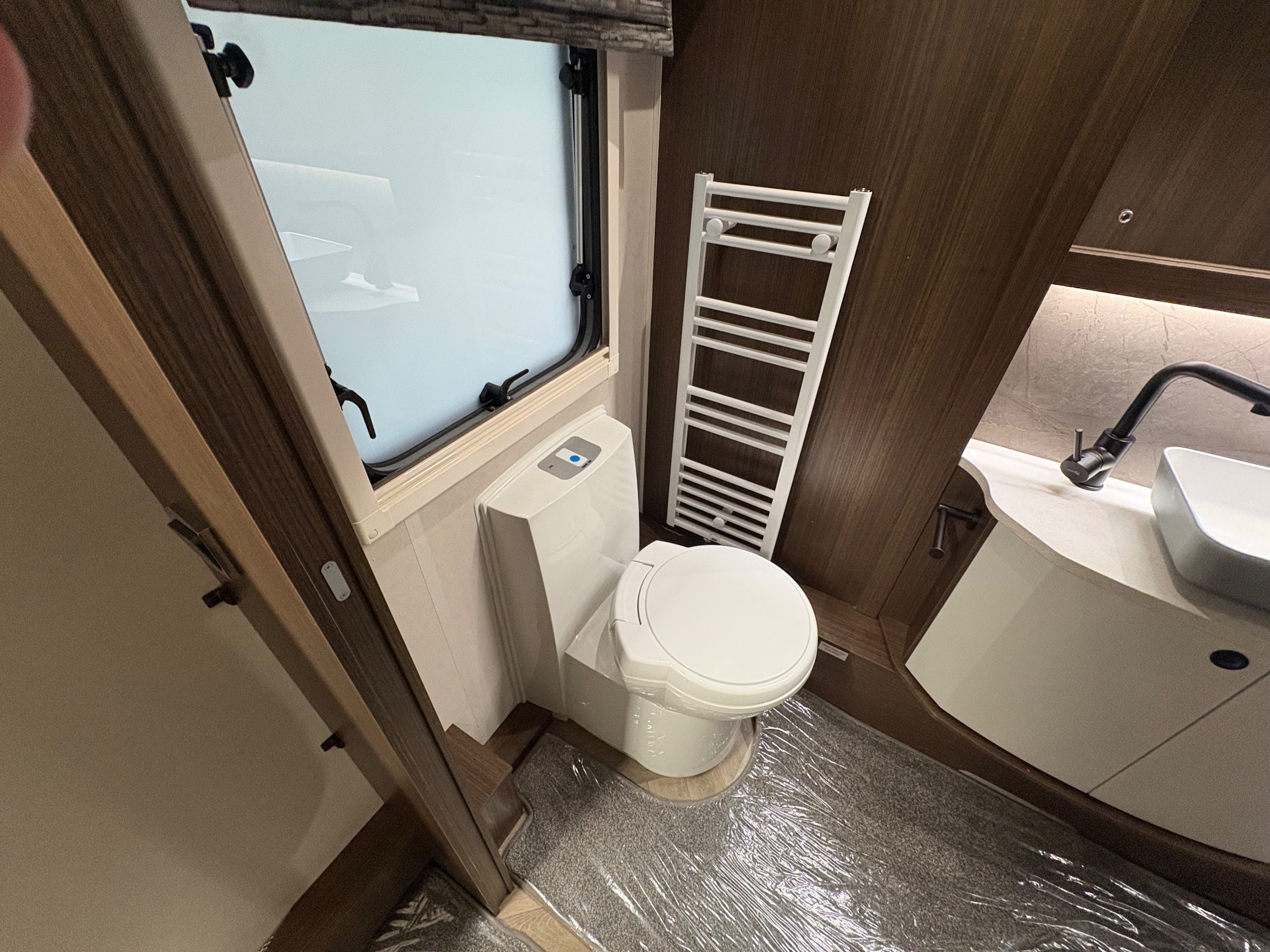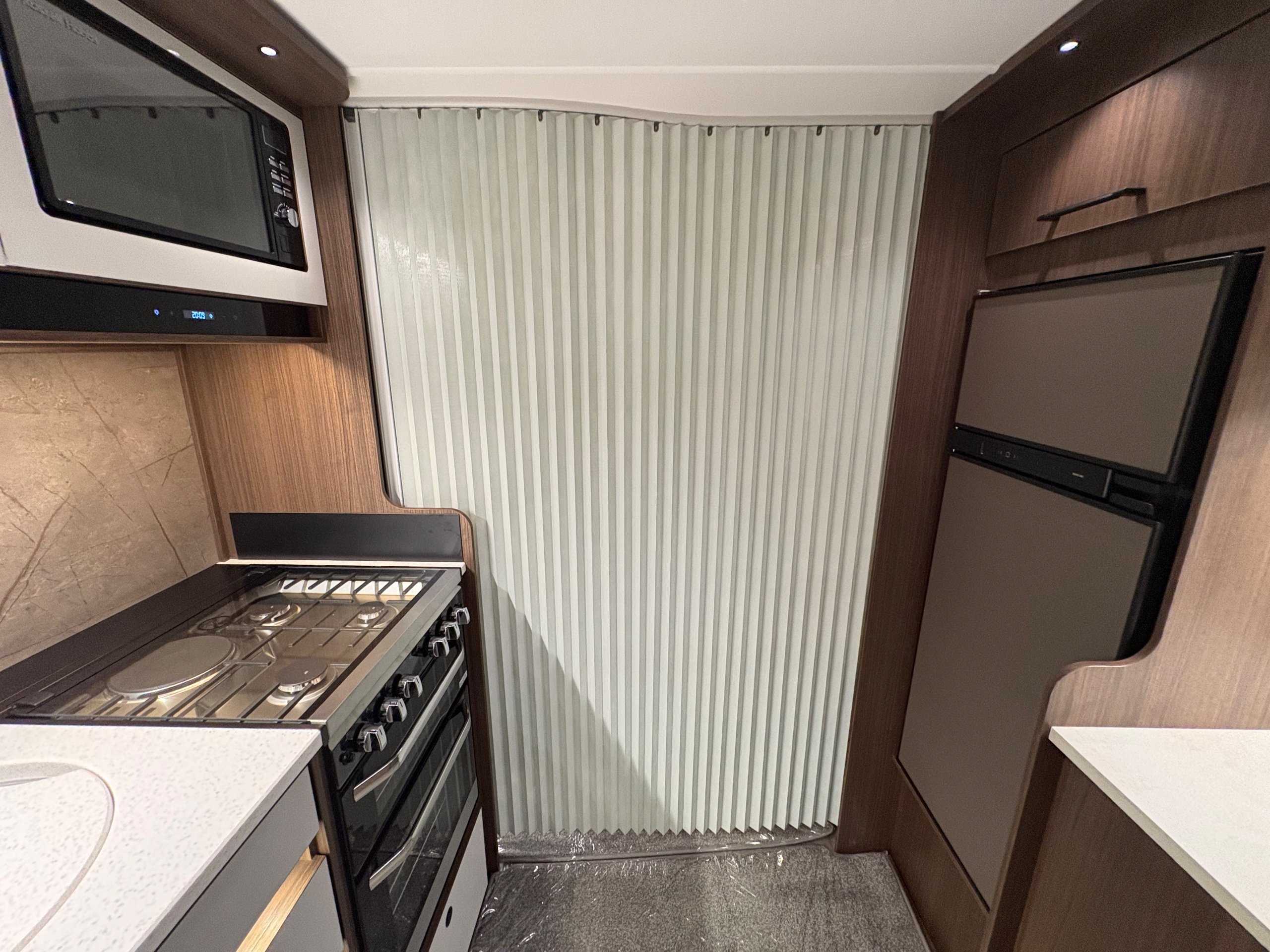 Year: 2026, Berth: 4, Internal length: 6.27m / 20'7", External length: 7.90m / 25'11", Width: 2.44m / 8', Unladen weight: 1736kg, MTPLM: 1896kg ( Upgraded MTPLM: 2000kg ), Awning size: 10.62m, Warranty: 3 years major components, 10 year bodyshell ( subject to terms and conditions ). This twin axle model features an eight foot width, a transverse double bed and a rear washroom. This caravan works as either a two or four berth. Due to the wide body, the double bed can be left extended while still leaving enough room to pass it to the washroom. A high level of equipment is standard on this level of product including alde heating and a large fridge freezer. -
