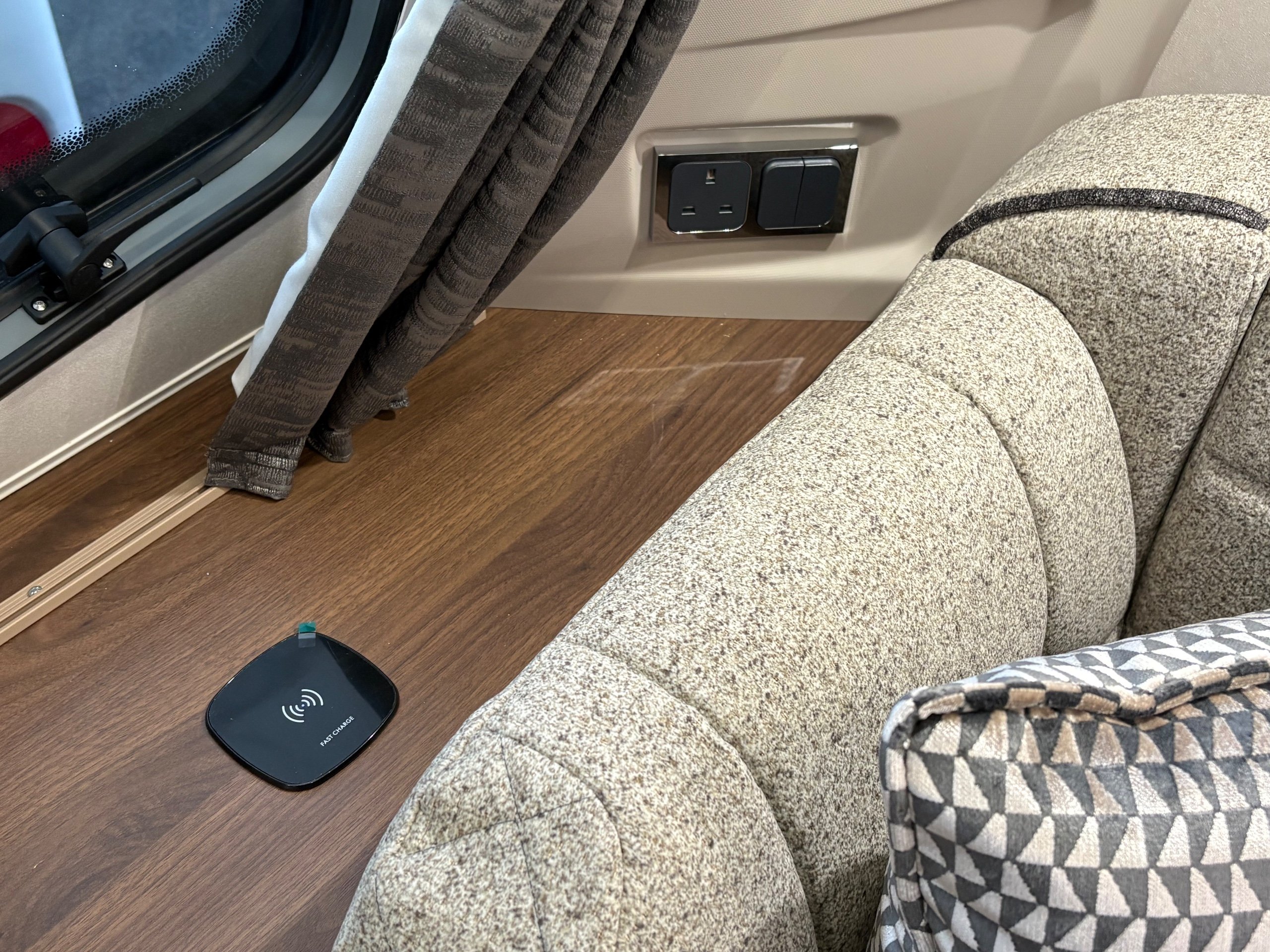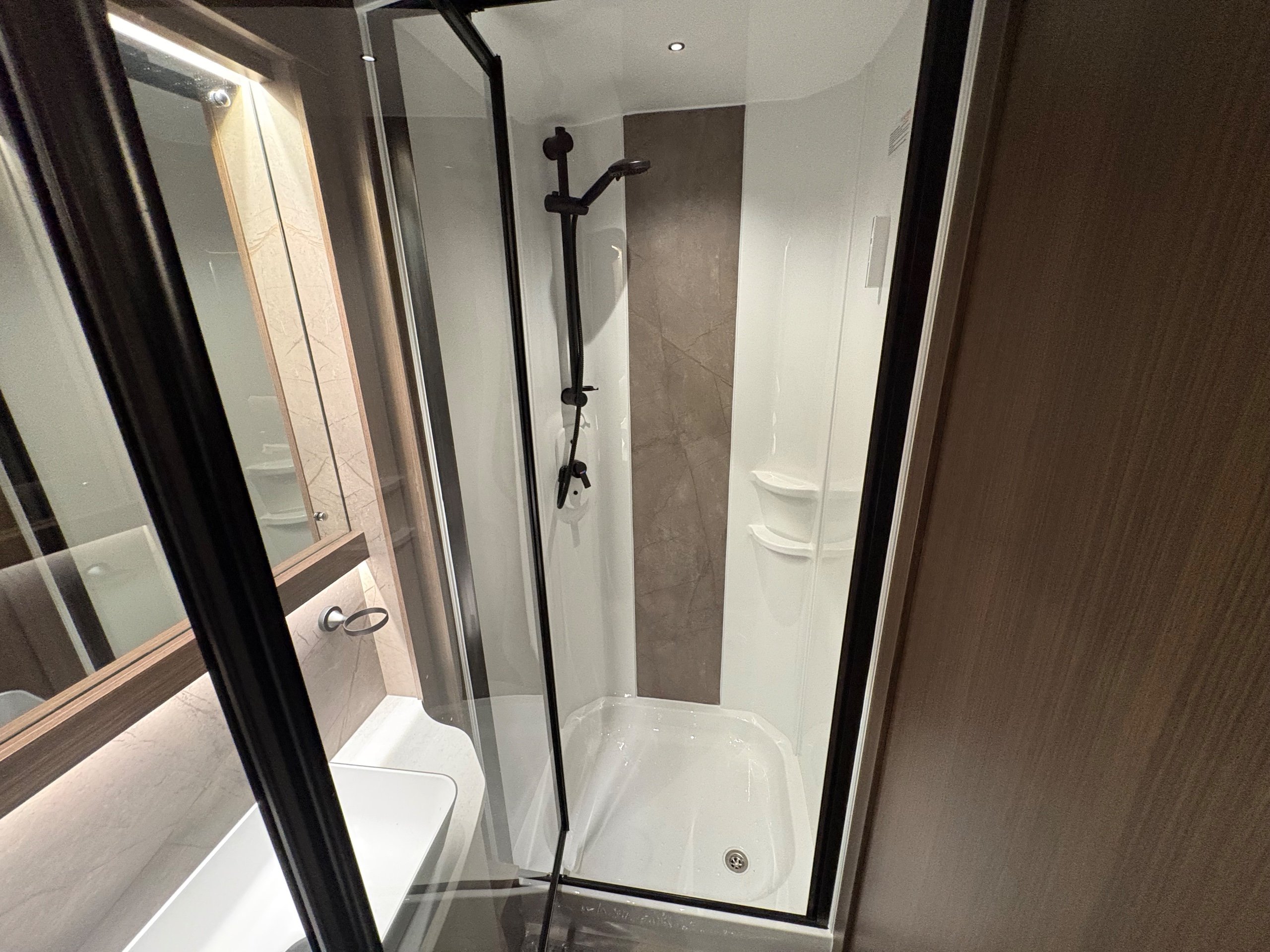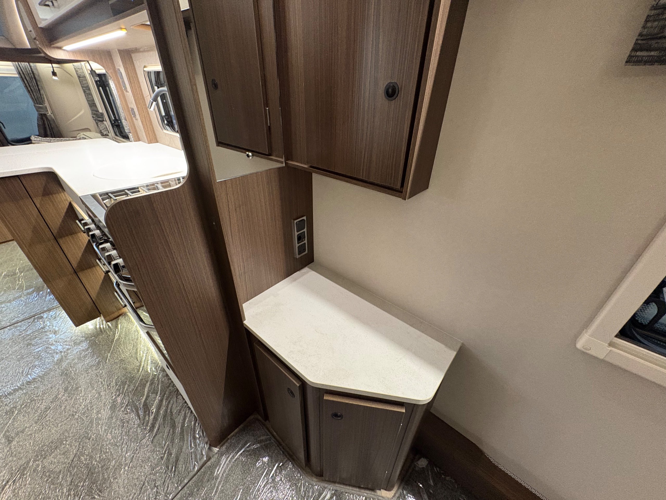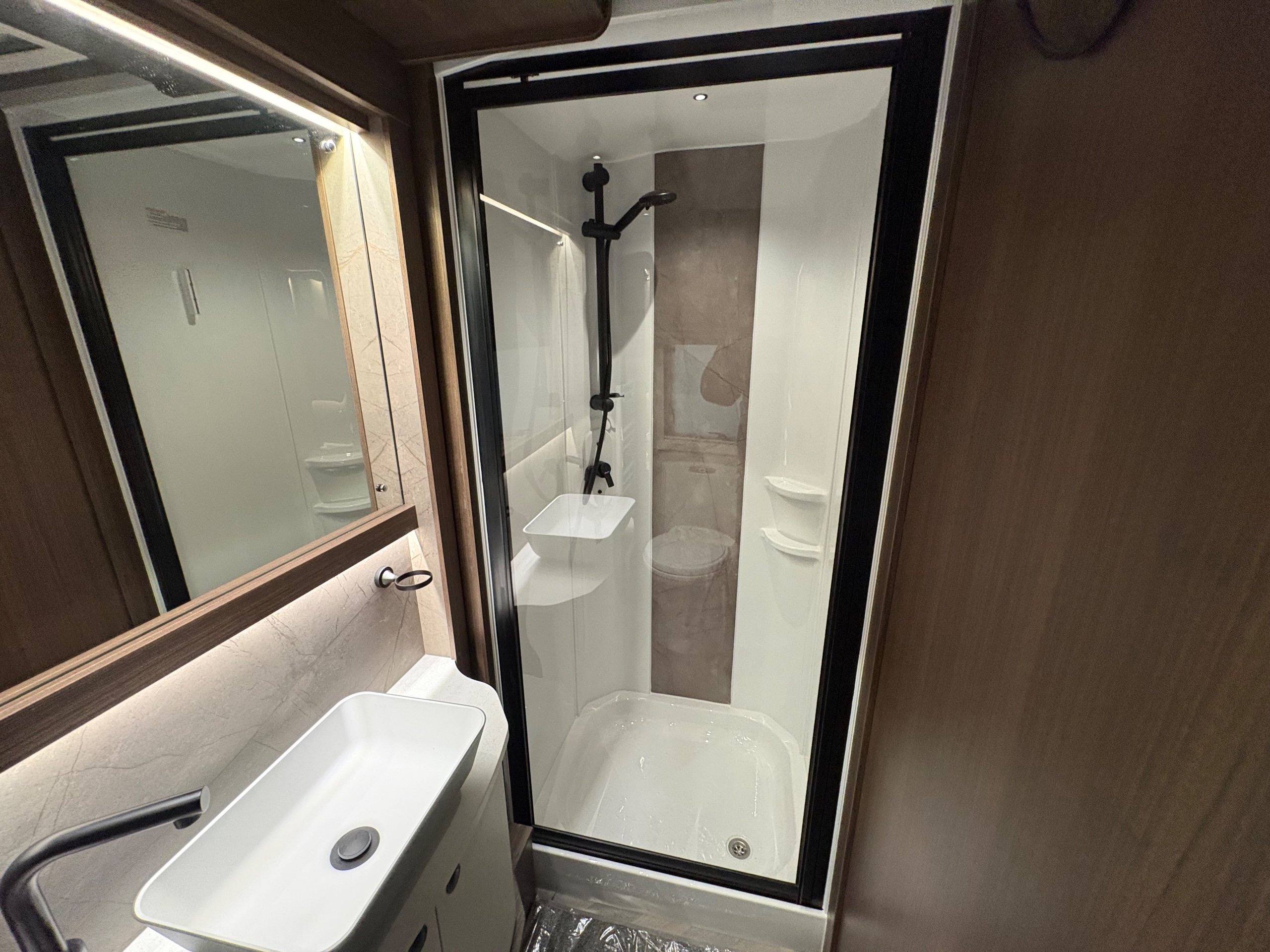 Year: 2026, Berth: 4, Internal length: 6.27m / 20'7", External length: 7.90m / 25'11", Width: 2.44m / 8', Unladen weight: 1736kg, MTPLM: 1896kg ( Upgraded MTPLM: 2000kg ), Awning size: 10.62m, Warranty: 3 years major components, 10 year bodyshell ( subject to terms and conditions ). This twin axle model features an eight foot width, a transverse double bed and a rear washroom. This caravan works as either a two or four berth. Due to the wide body, the double bed can be left extended while still leaving enough room to pass it to the washroom. A high level of equipment is standard on this level of product including alde heating and a large fridge freezer. -
