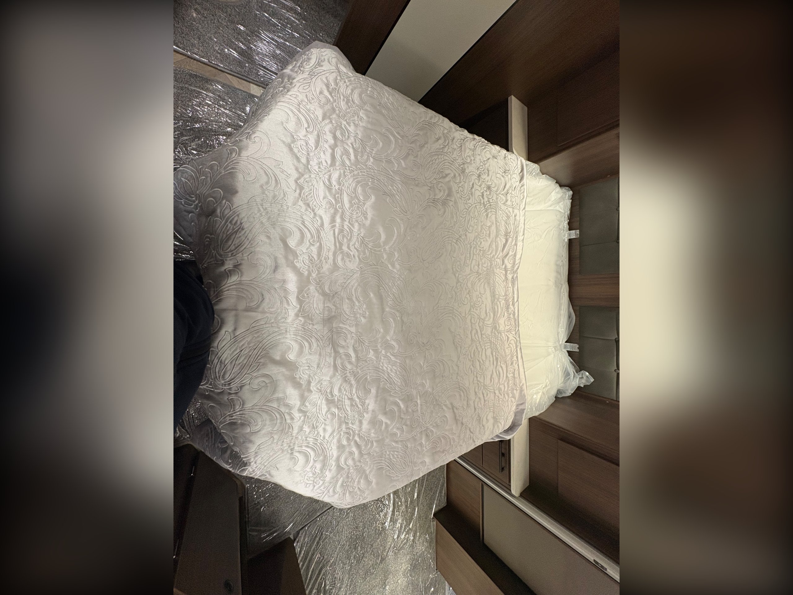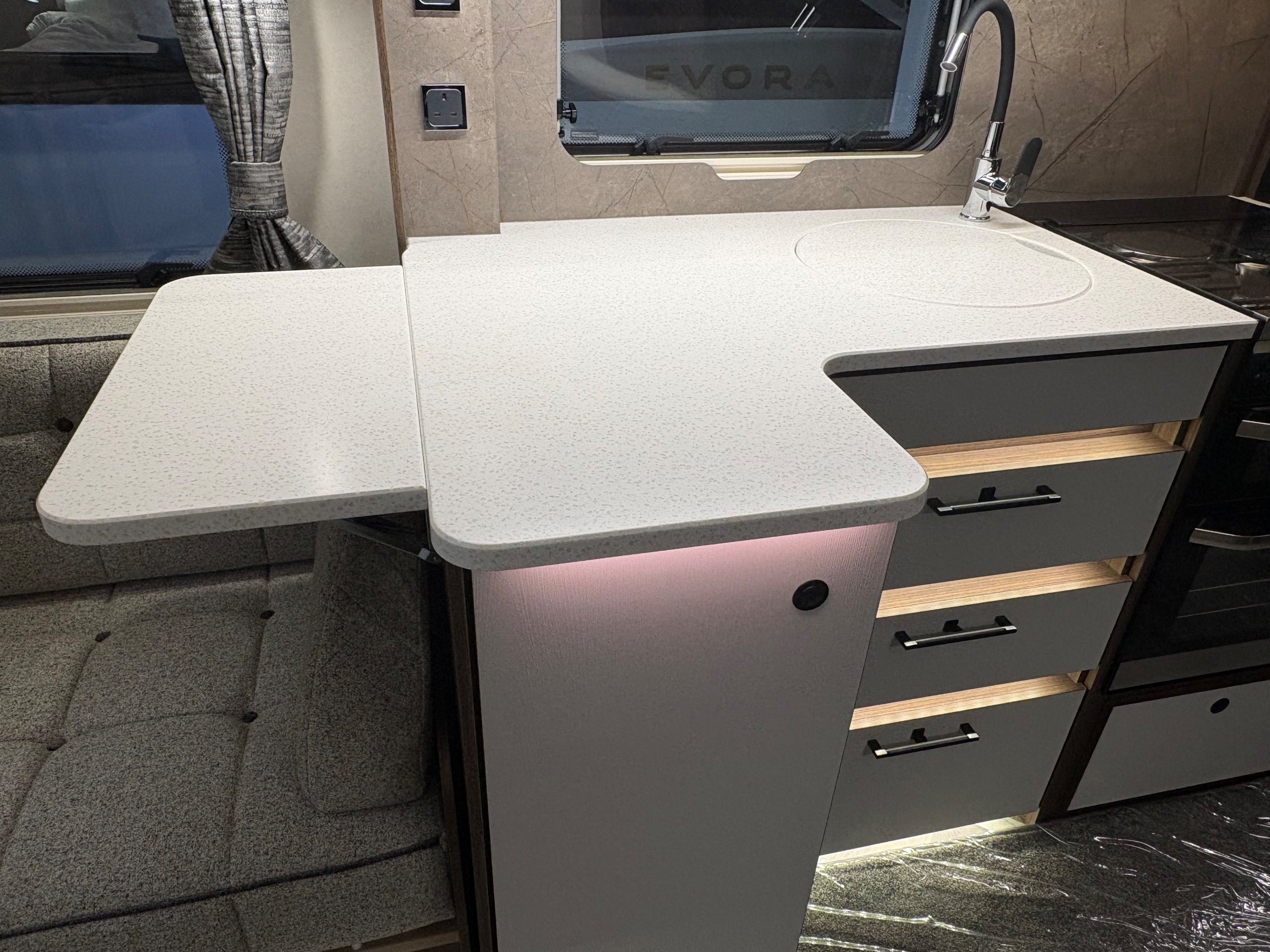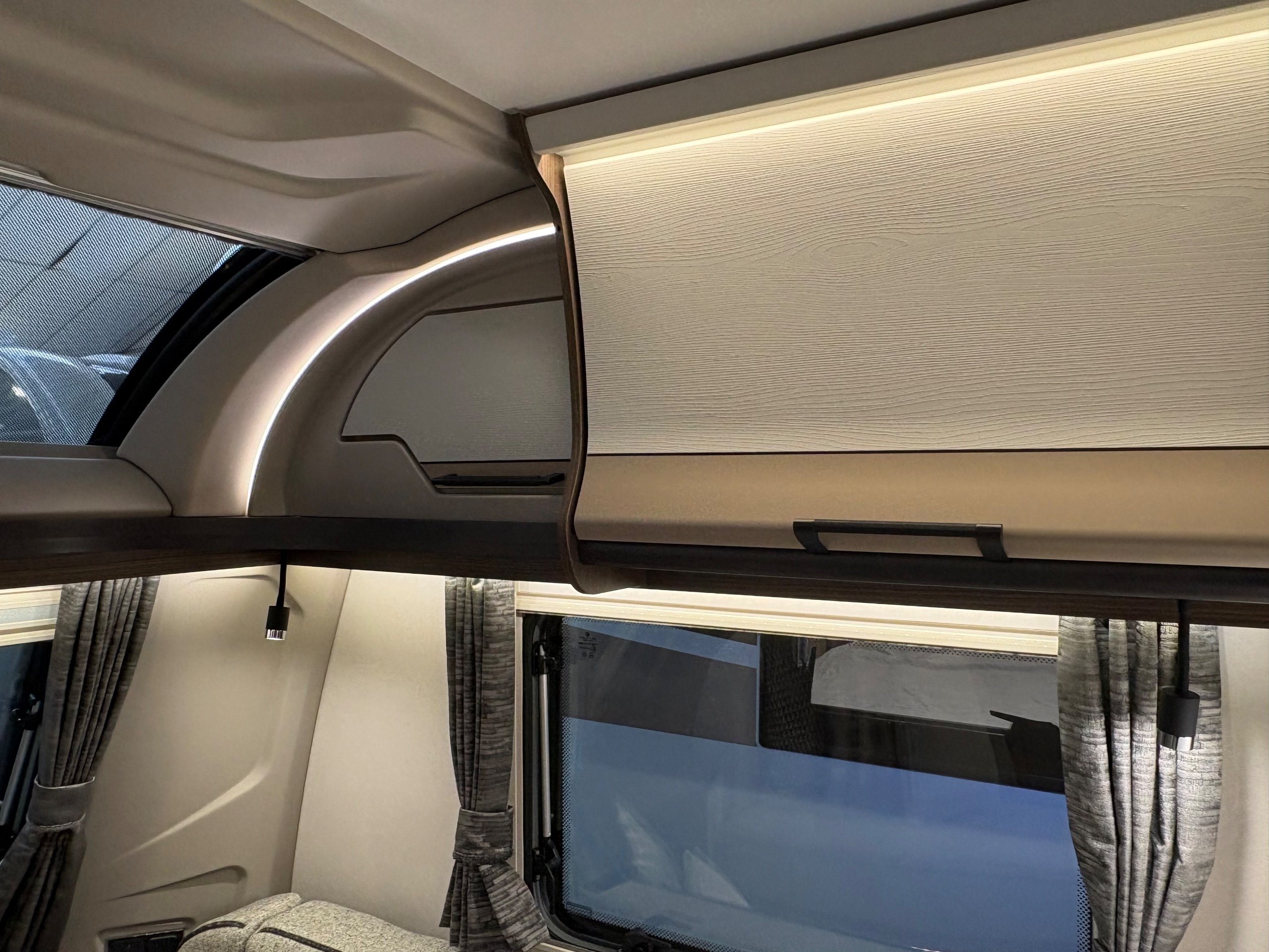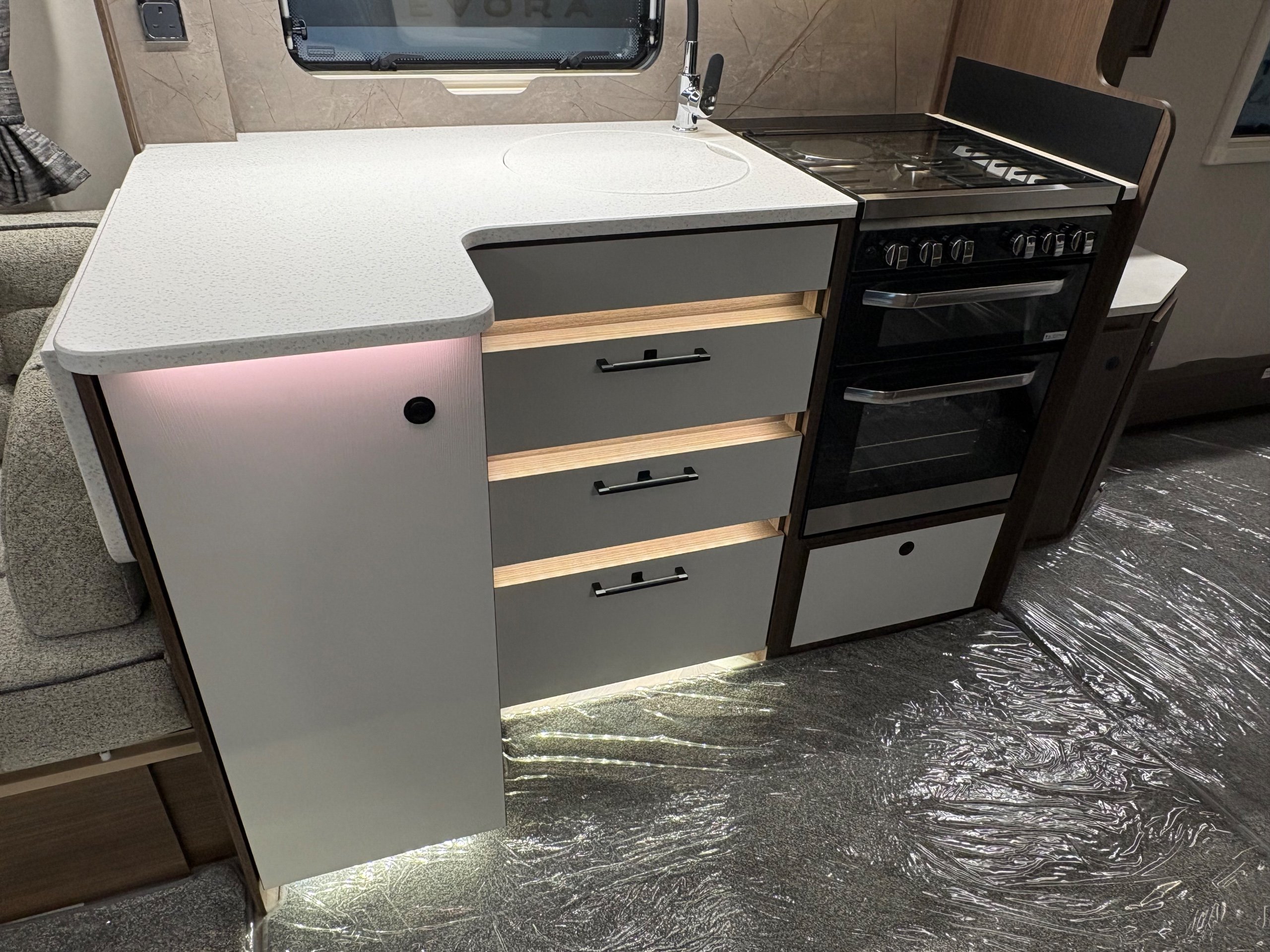 Year: 2026, Berth: 4, Internal length: 6.27m / 20'7", External length: 7.90m / 25'11", Width: 2.44m / 8', Unladen weight: 1736kg, MTPLM: 1896kg ( Upgraded MTPLM: 2000kg ), Awning size: 10.62m, Warranty: 3 years major components, 10 year bodyshell ( subject to terms and conditions ). This twin axle model features an eight foot width, a transverse double bed and a rear washroom. This caravan works as either a two or four berth. Due to the wide body, the double bed can be left extended while still leaving enough room to pass it to the washroom. A high level of equipment is standard on this level of product including alde heating and a large fridge freezer. -