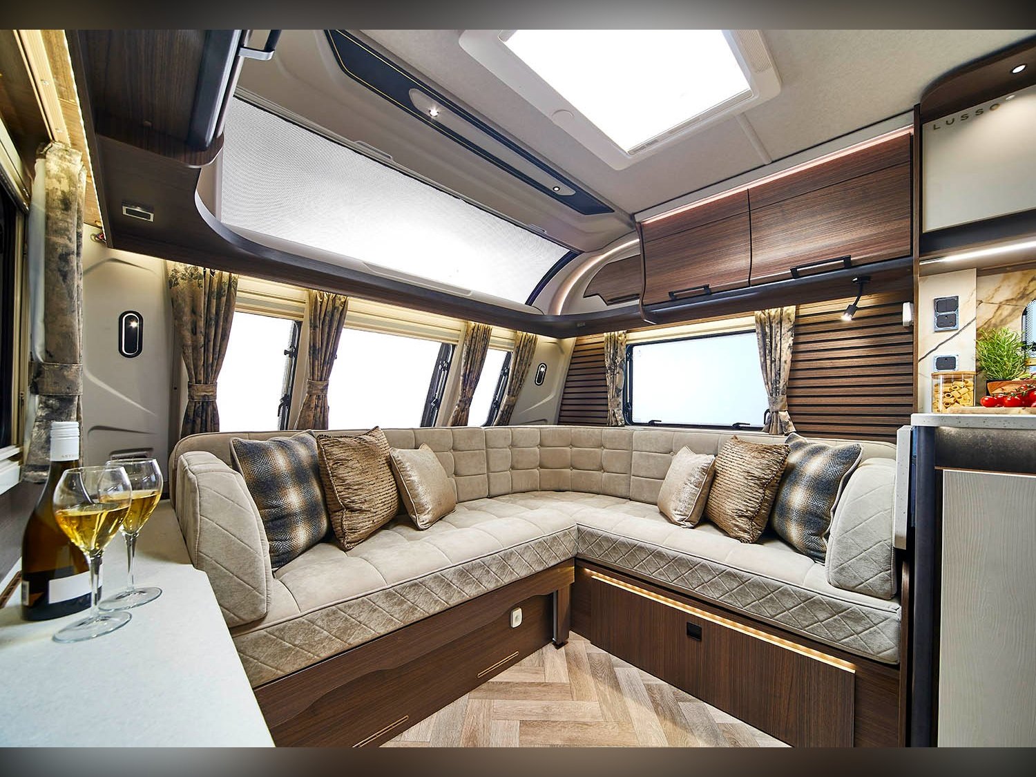 Year: 2026, Berth: 4, Internal length: 5.80m / 19', External length: 7.43m / 24'5", Width: 2.44m / 8', Unladen weight: 1705kg, MTPLM: 1860kg ( Upgraded MTPLM: 1900kg ), Awning size: 10.24m, Warranty: 3 years major components, 10 year bodyshell ( subject to terms and conditions ). For a single axle caravan that screams luxury, look no further than the Lusso 1. The wide body gives huge amounts of space in the front lounge, bedroom and washroom areas. Self levelling, wi-fi, large kitchen space, air conditioning, roof mounted solar panels, alko wheel locks, external gas/mains, the list goes on and on. If you want to spoil yourself to the best than here it is. -