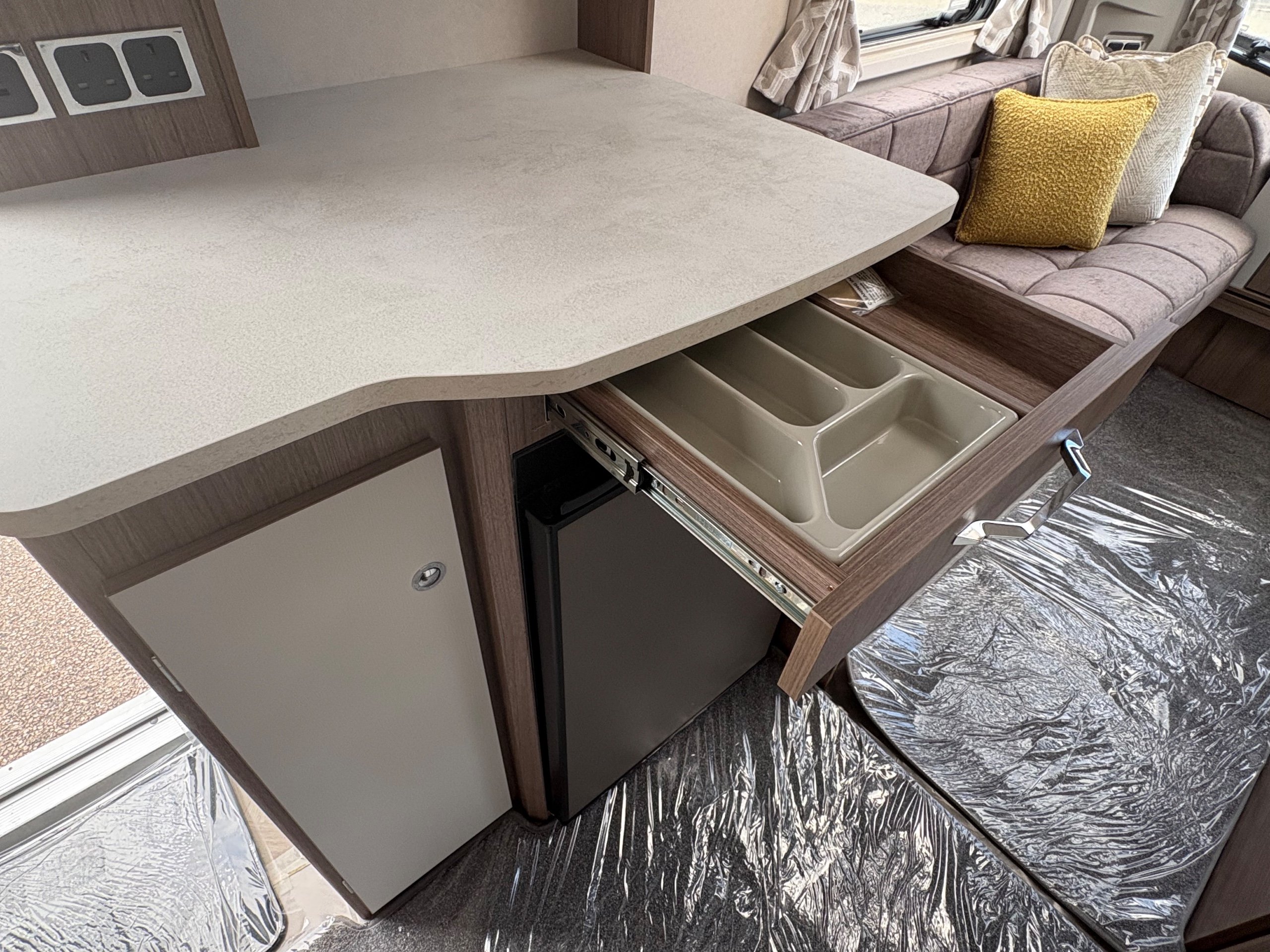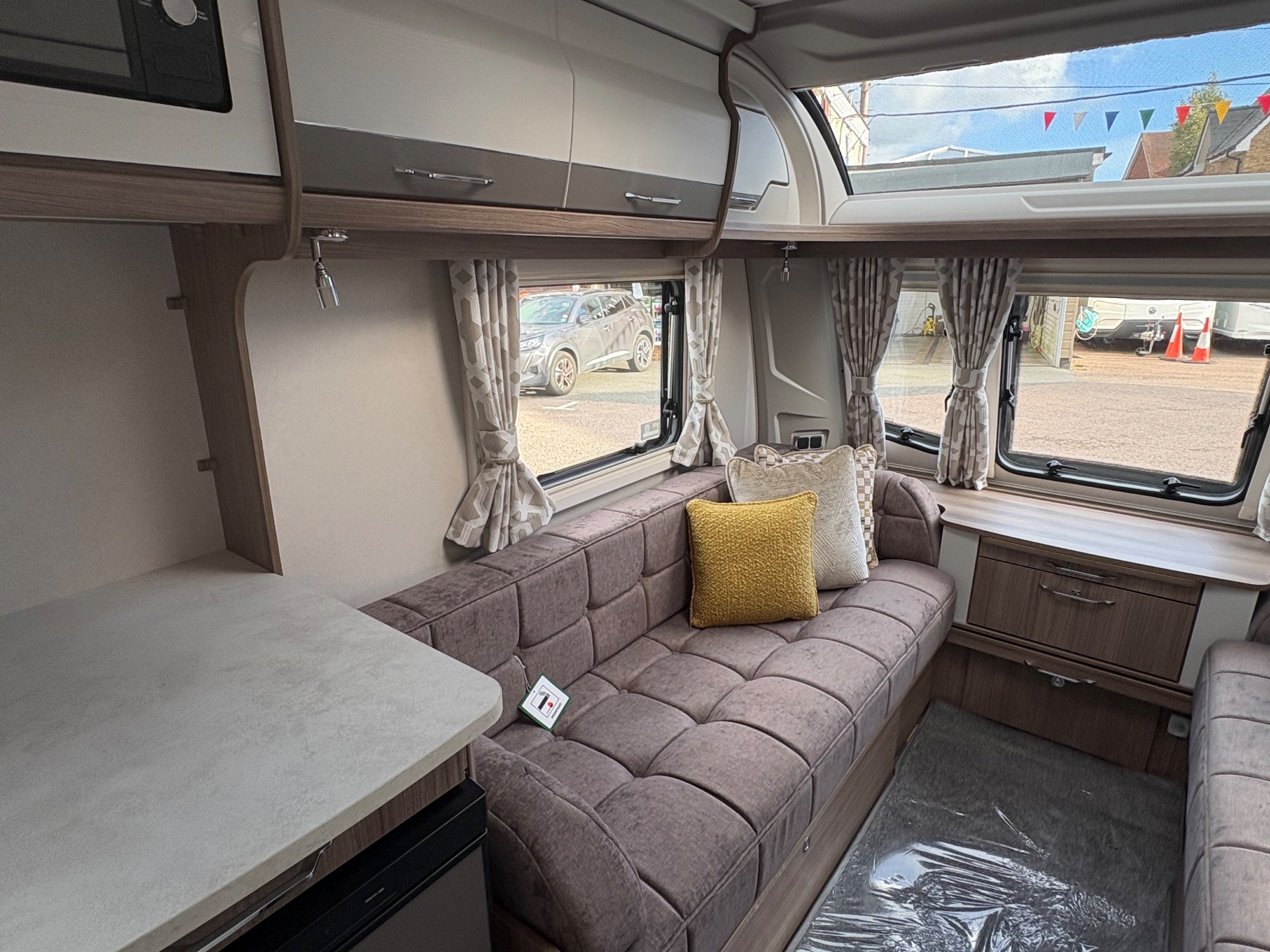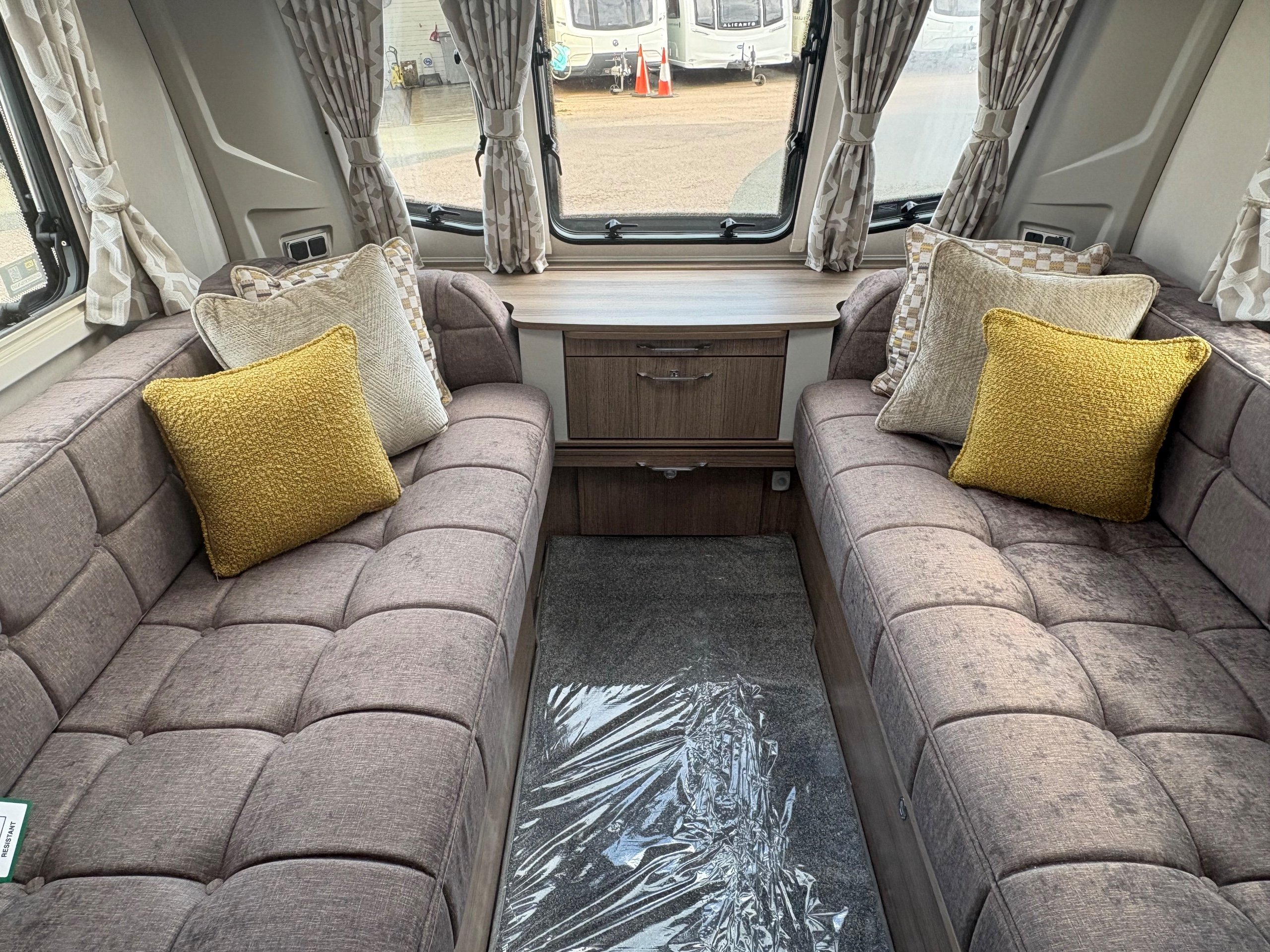 Year: 2026, Berth:4, Internal length: 4.75m / 15'7", External length: 6.38m / 20'11", Width: 2.31m / 7'7", Unladen weight: 1319kg, MTPLM: 1444kg ( Upgraded MTPLM: 1500kg ), Awning size: 9.13m, Warranty: 3 years major components, 10 year bodyshell ( subject to terms and conditions ). A great two berth caravan featuring generous amounts of living and kitchen space, along with a decent sized rear washroom. Alde heating, alko atc braking system, alko wheel locks, dual fuel hob and external gas and mains points are all standard on this model. Perfect for those who want something more manageable in terms of size but don't want to compromise on quality -