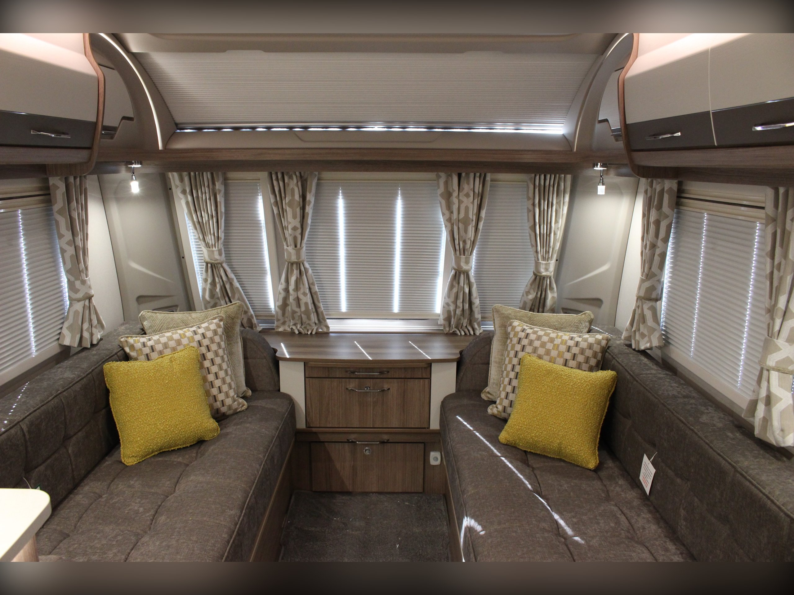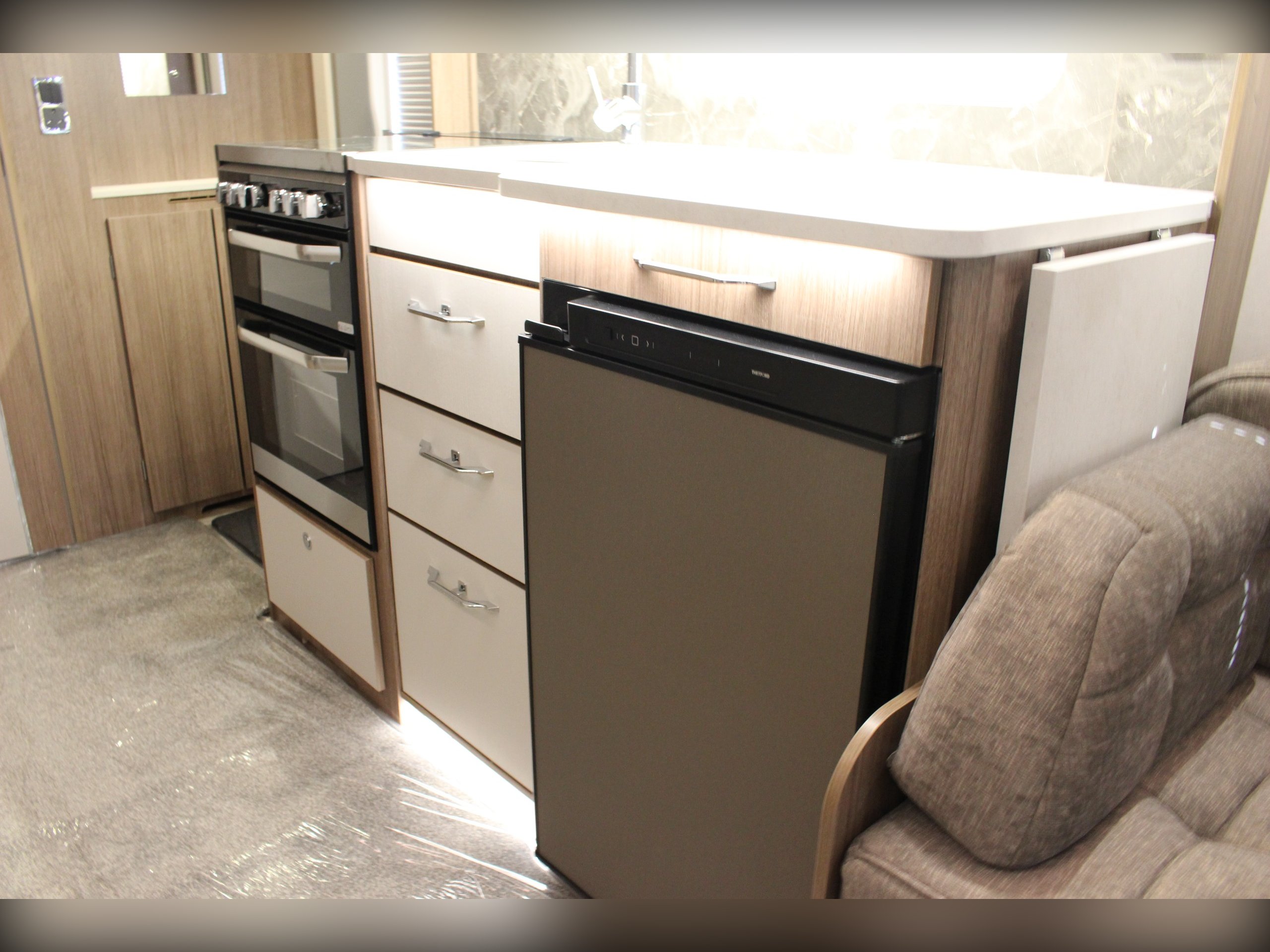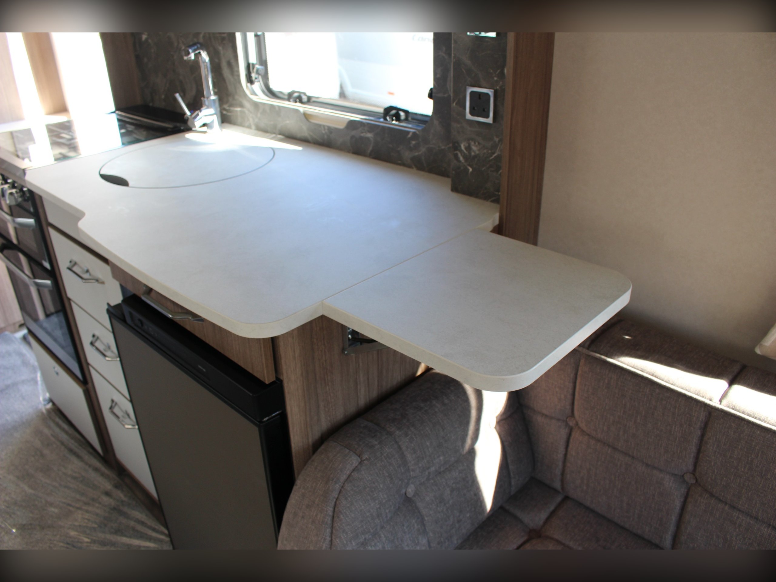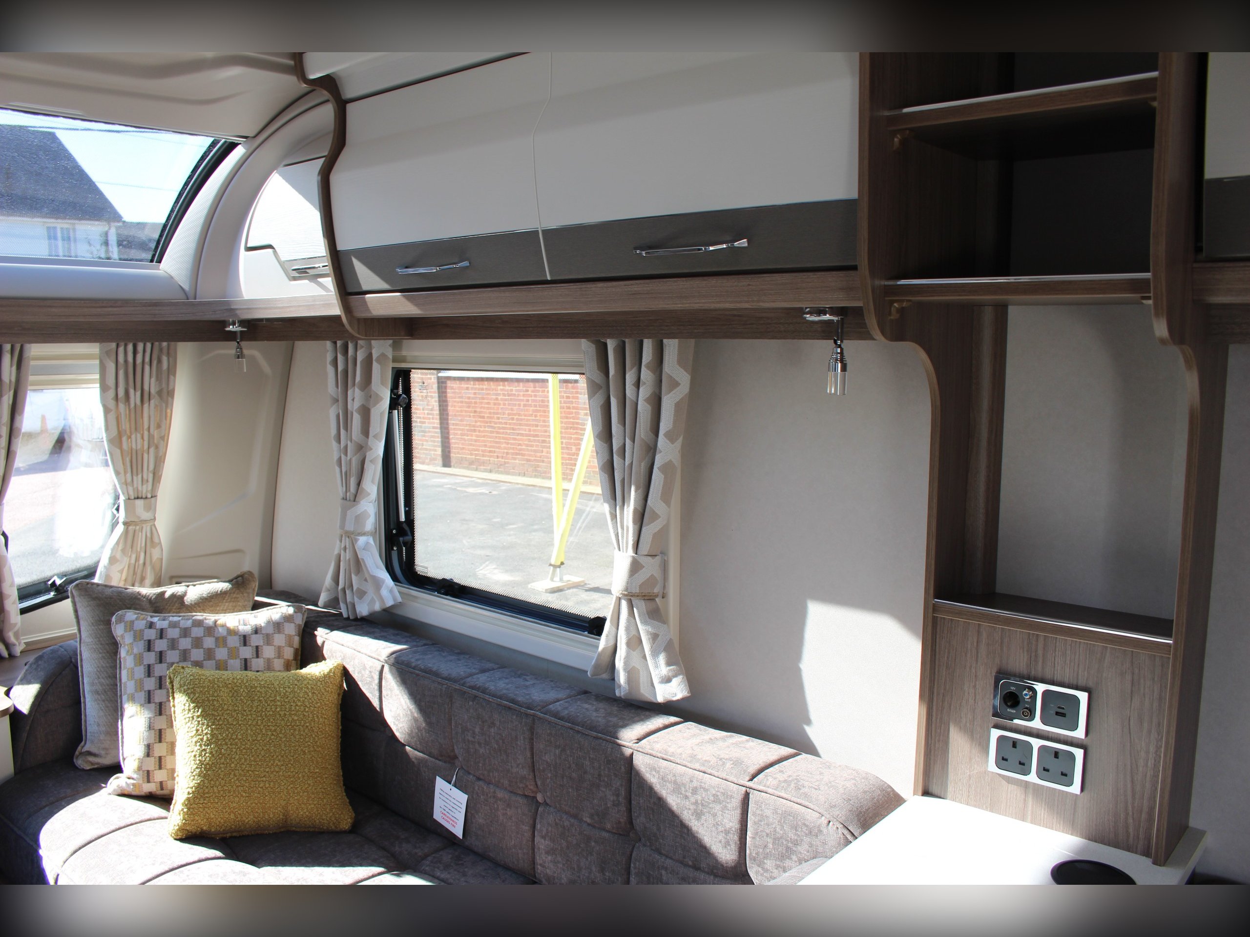 Year: 2026, Berth: 3, Internal length: 5.42m / 17'9", Width: 2.31m / 7'7", Unladen weight: 1398kg, MTPLM: 1540kg ( Upgraded MTPLM: 1550kg ), Awning size: 9.75m, Warranty: 3 years major components, 10 year bodyshell ( subject to terms and conditions ). The 520 is a truly flexible layout with the side dinette offering a single bed, dining area, extra work surface or just another seating area. Often favoured by customers who are looking at two berth, if you are prepared to go slightly larger in caravan, you gain a lot more more usable space. The kitchen is a good size offering lots of work top space, with the unit on the opposite side offering a place for the television. The large rear washroom offers plenty of room to move around when in use. -