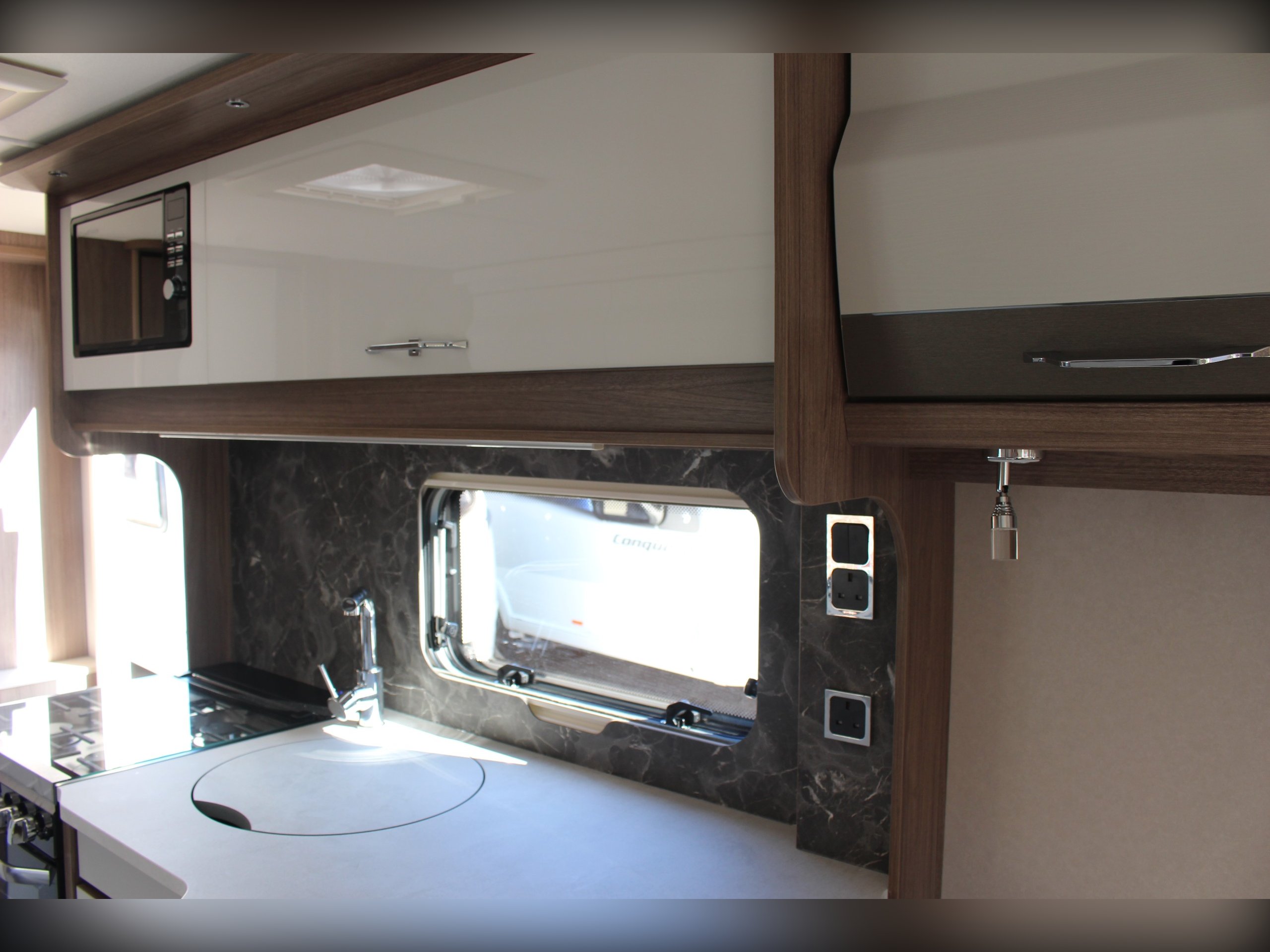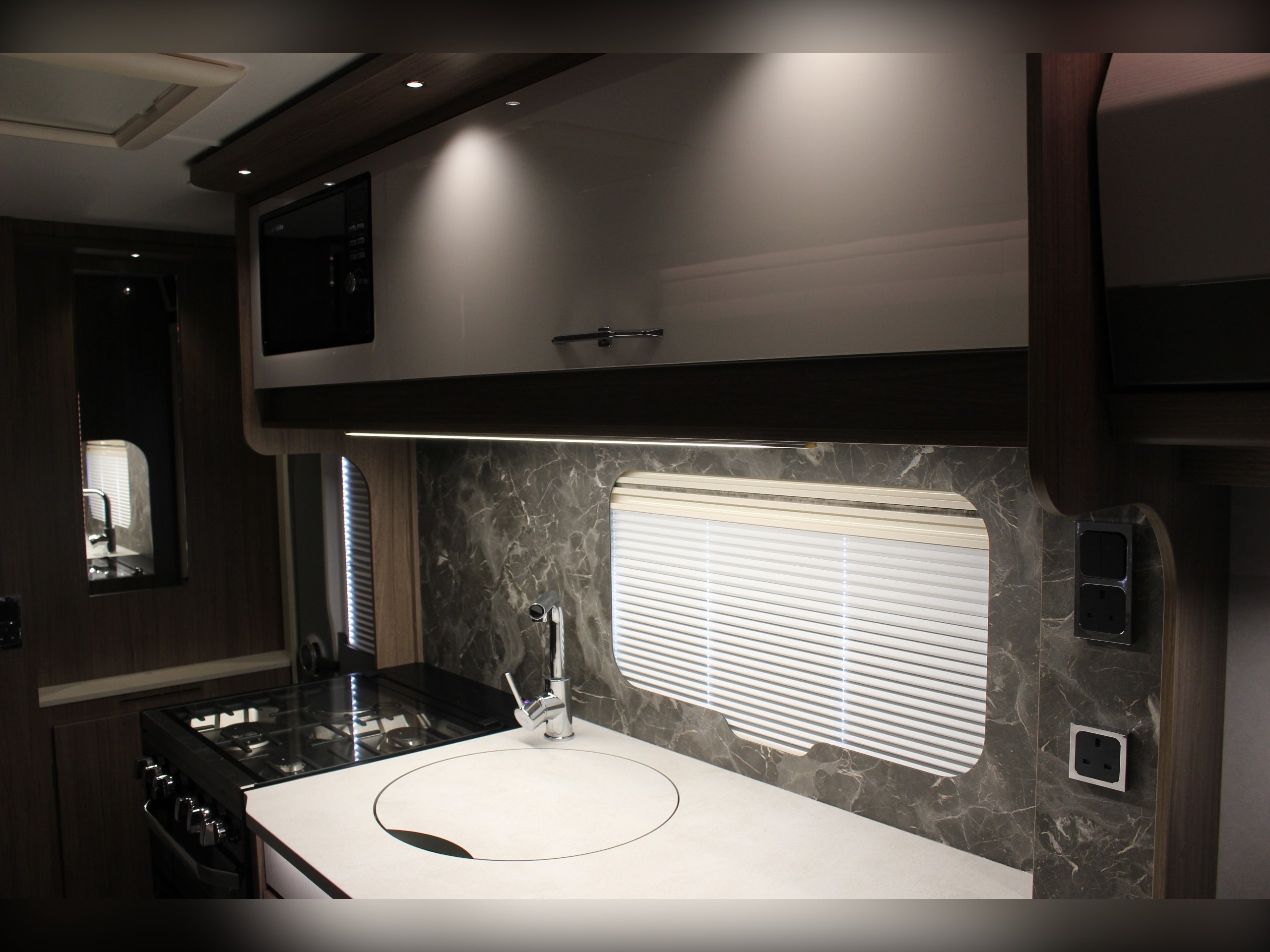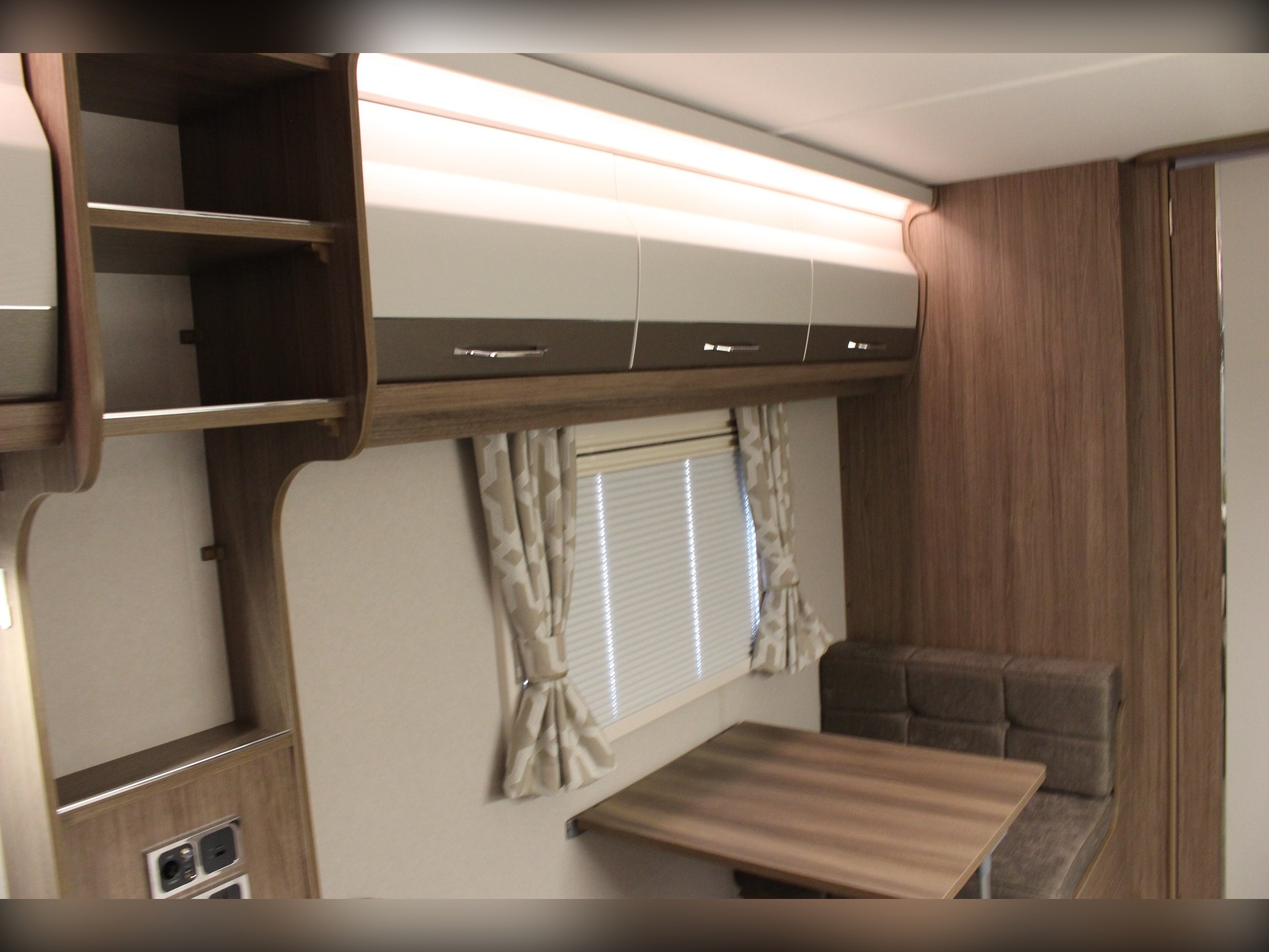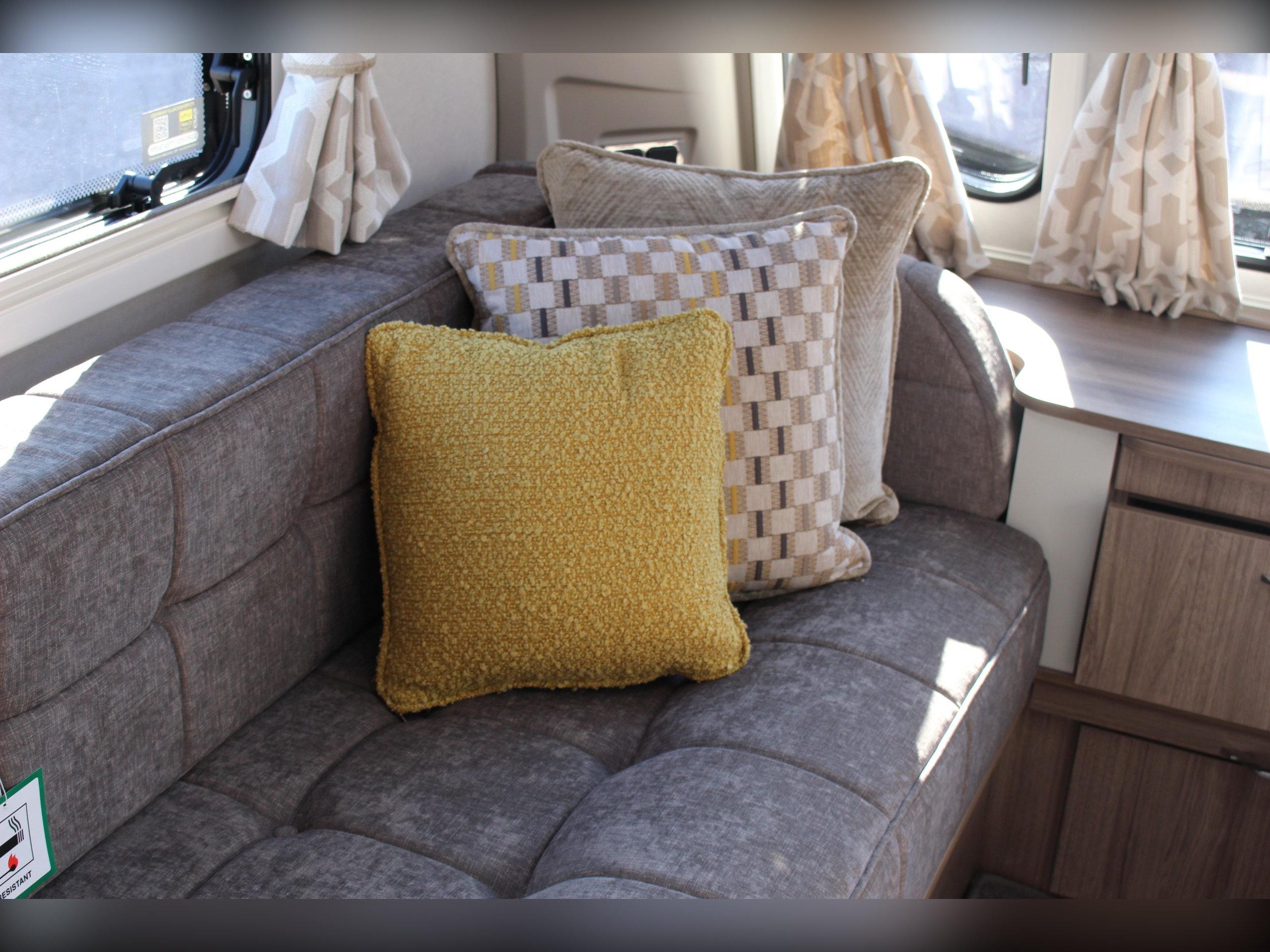 Year: 2026, Berth: 3, Internal length: 5.42m / 17'9", Width: 2.31m / 7'7", Unladen weight: 1398kg, MTPLM: 1540kg ( Upgraded MTPLM: 1550kg ), Awning size: 9.75m, Warranty: 3 years major components, 10 year bodyshell ( subject to terms and conditions ). The 520 is a truly flexible layout with the side dinette offering a single bed, dining area, extra work surface or just another seating area. Often favoured by customers who are looking at two berth, if you are prepared to go slightly larger in caravan, you gain a lot more more usable space. The kitchen is a good size offering lots of work top space, with the unit on the opposite side offering a place for the television. The large rear washroom offers plenty of room to move around when in use. -