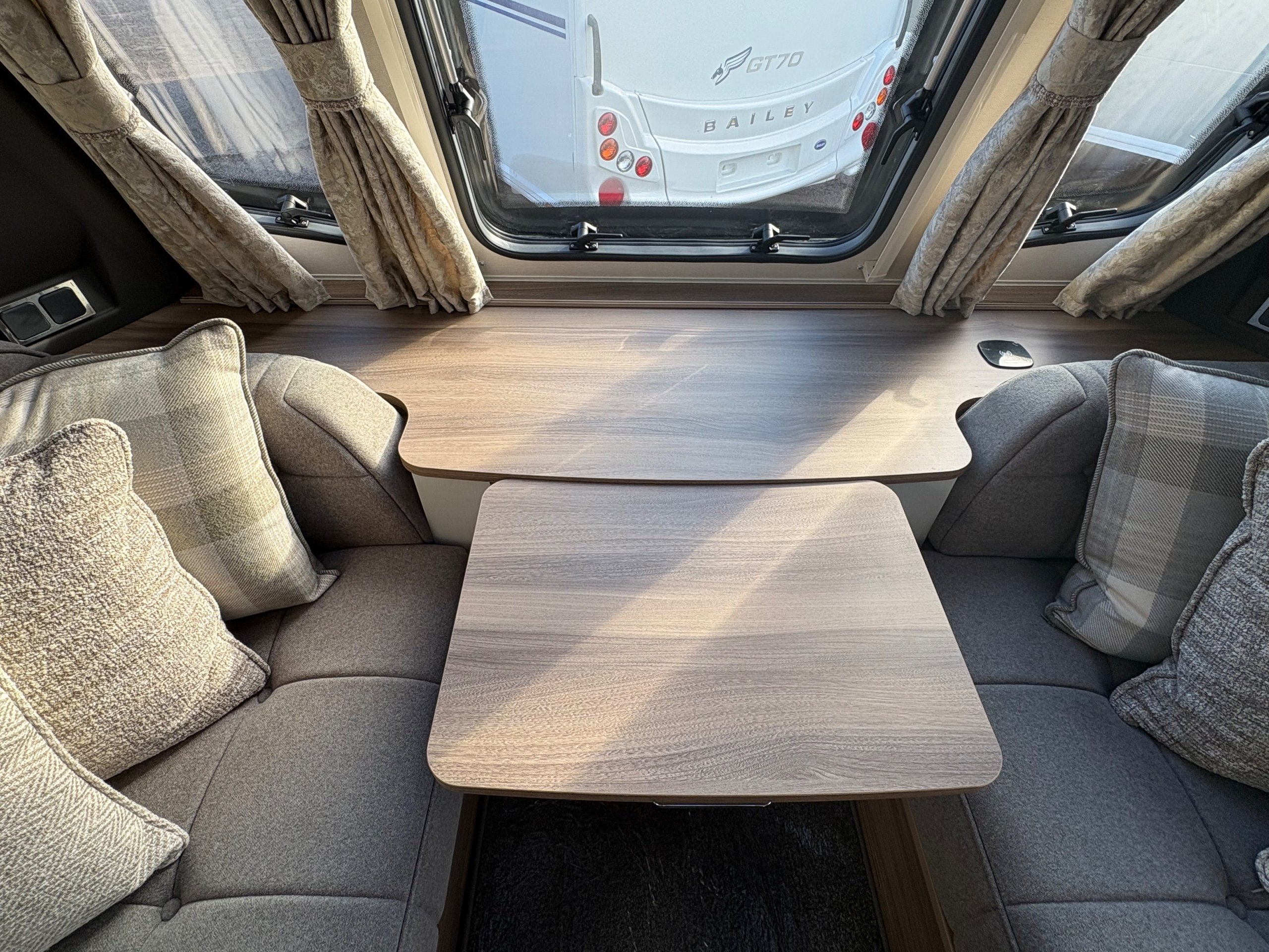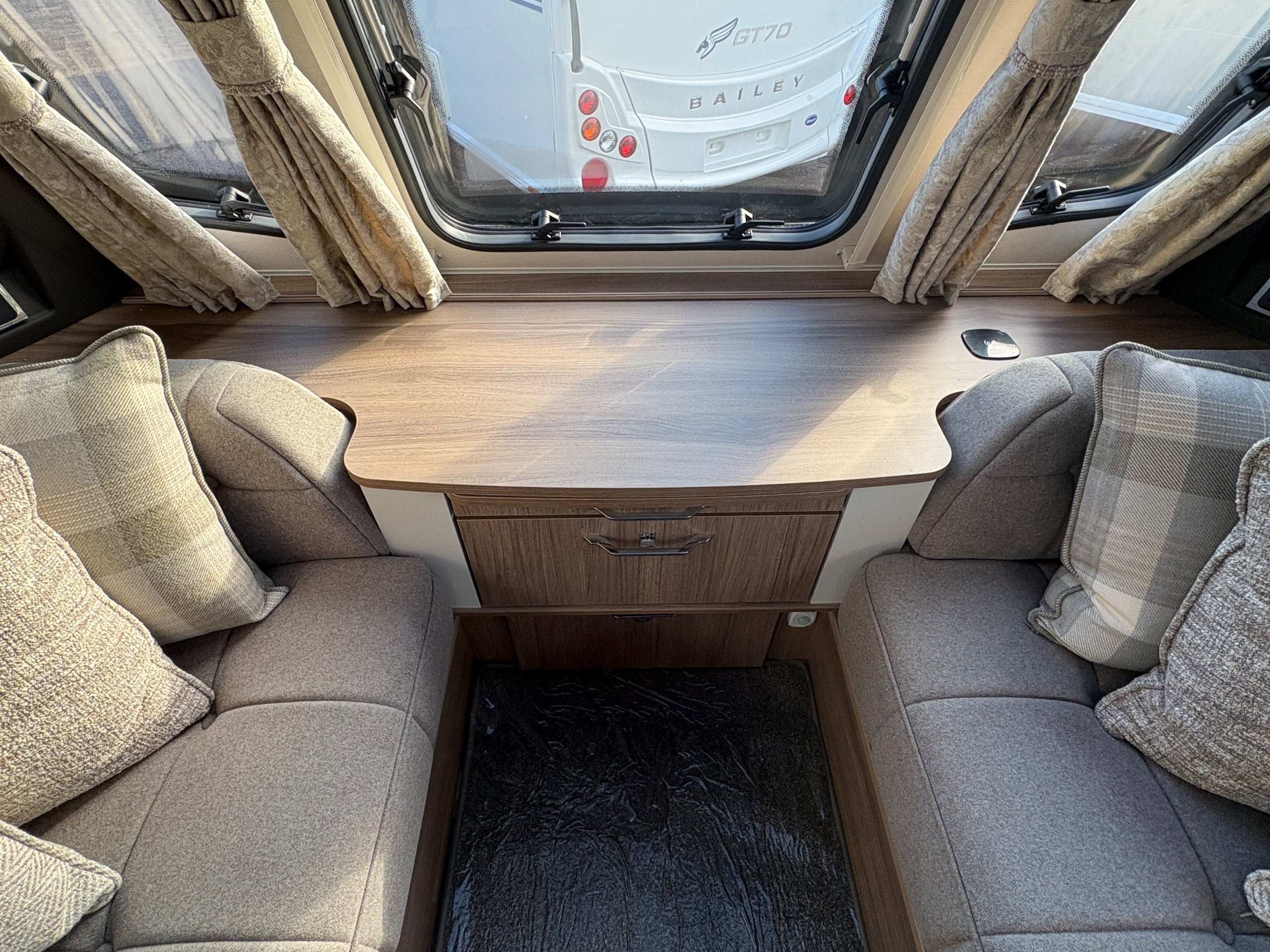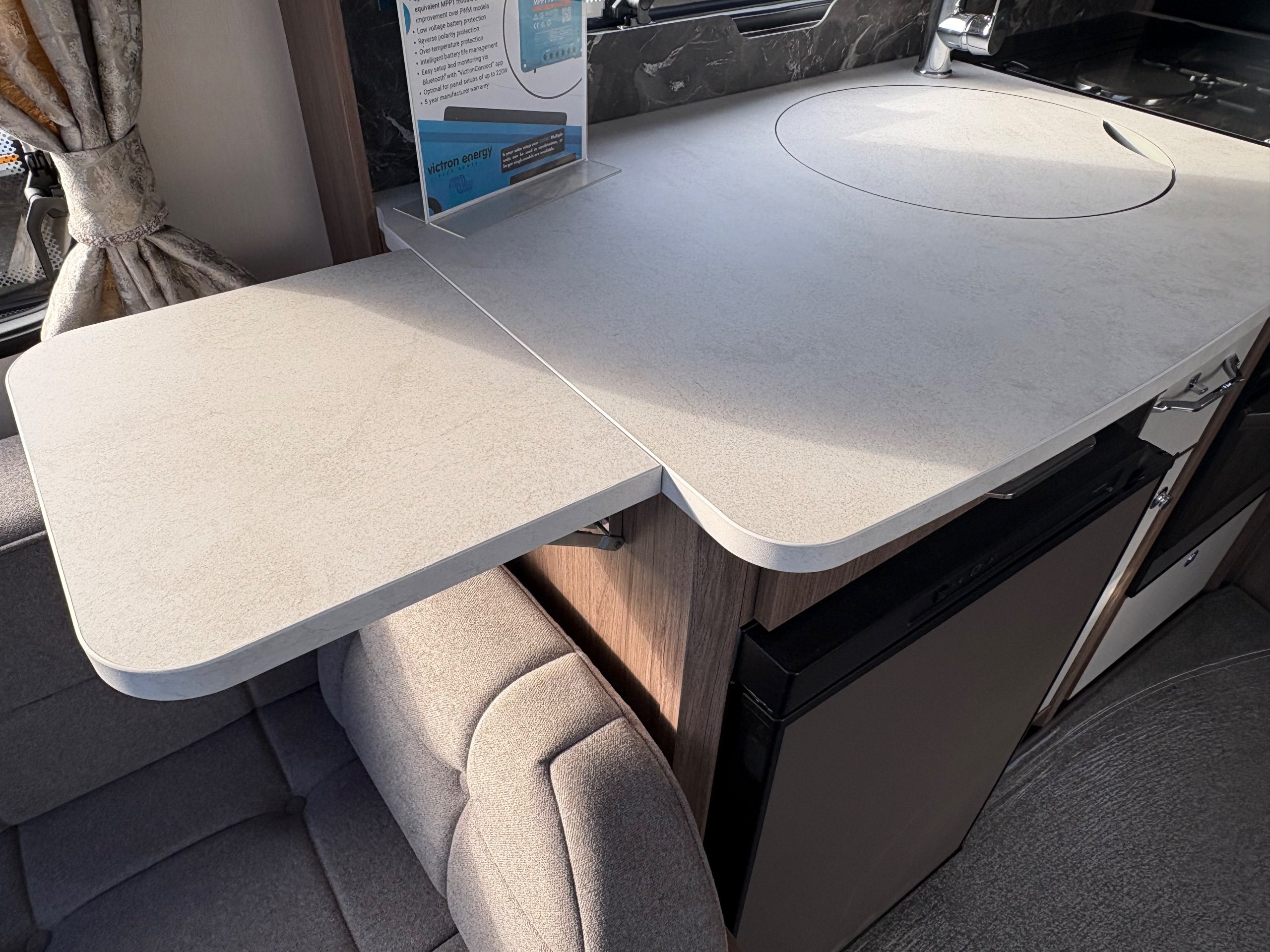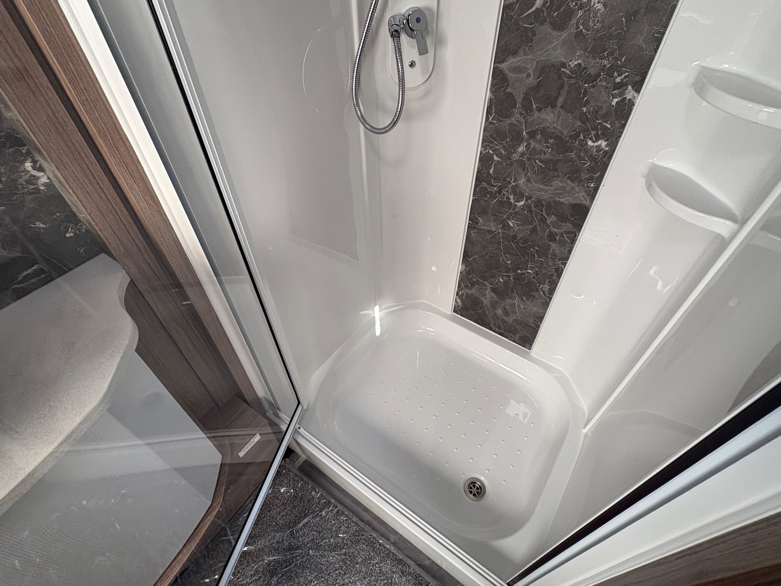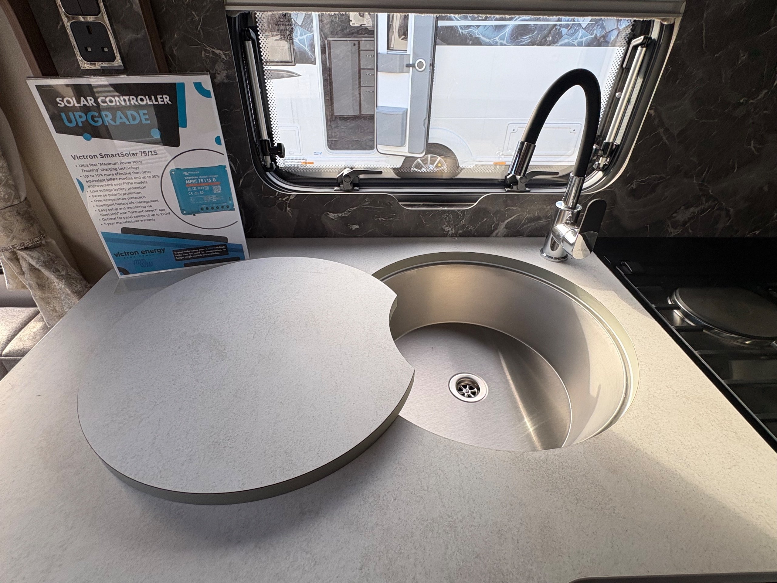 Year: 2025, Berth: 4, Internal length: 5.74m / 18'10", External length: 7.37m / 24'2", Width: 2.31m / 7'7", Unladen weight: 1483kg, MTPLM: 1638kg, Awning size: 10.20m, Warranty: 3 years major components, 10 year bodyshell ( terms and conditions apply ). Twin rear fixed single beds and an end washroom are featured in this model. With the wardrobe midships, it frees up more space in the washroom providing freedom of movement. Mainly used as a two berth it will sleep up to four dependant on requirements, allowing for individual access to either bed, perfect for those who are up in the night! Being on the 7'7" bodyshell and with the help of the big front sunroof, this model always feel bright and airy with a nice open plan feel. -