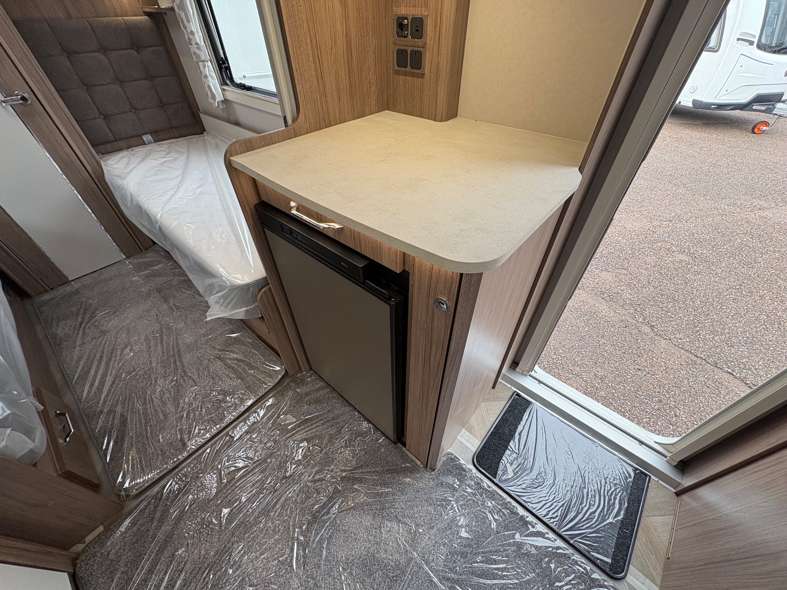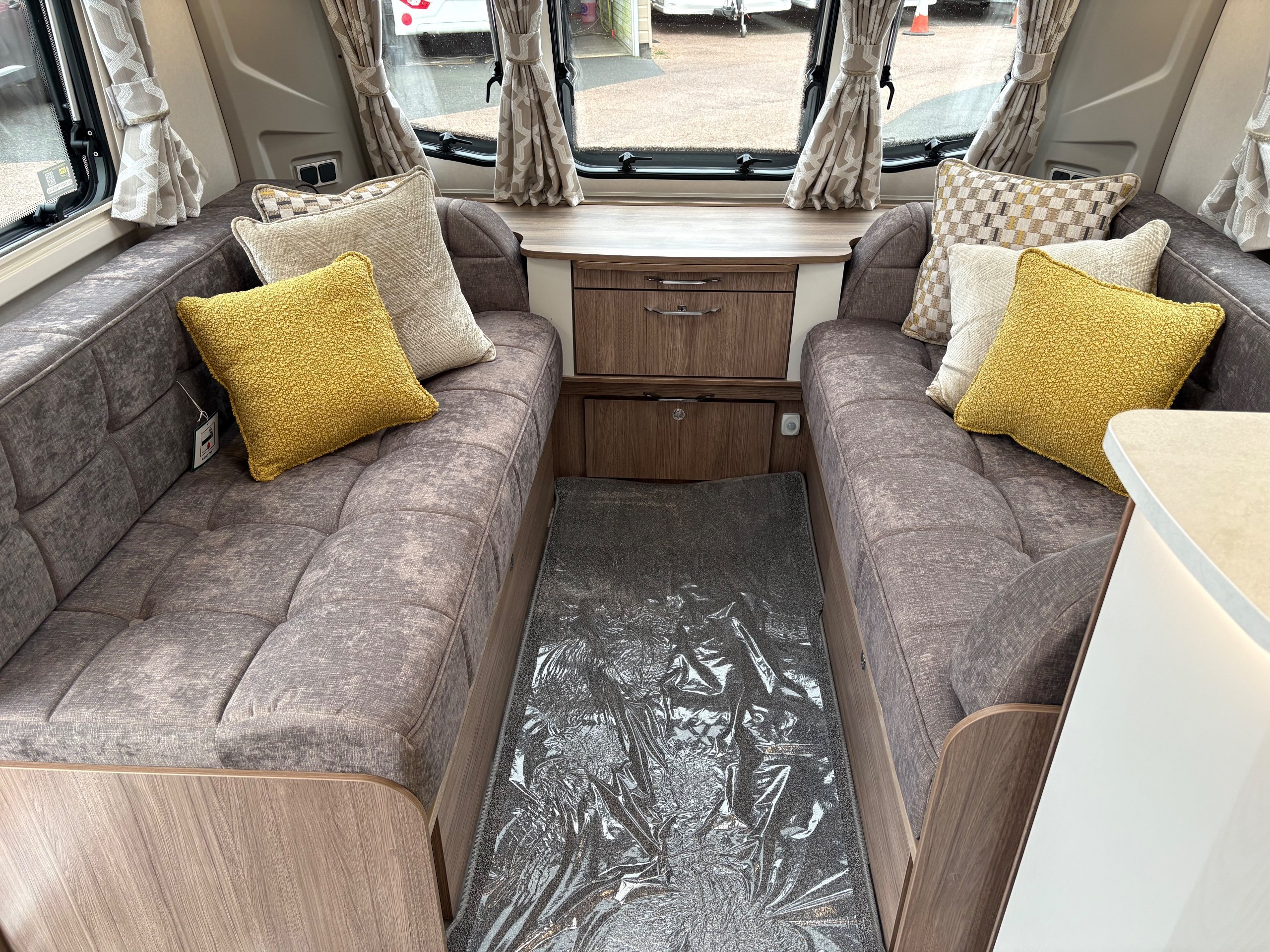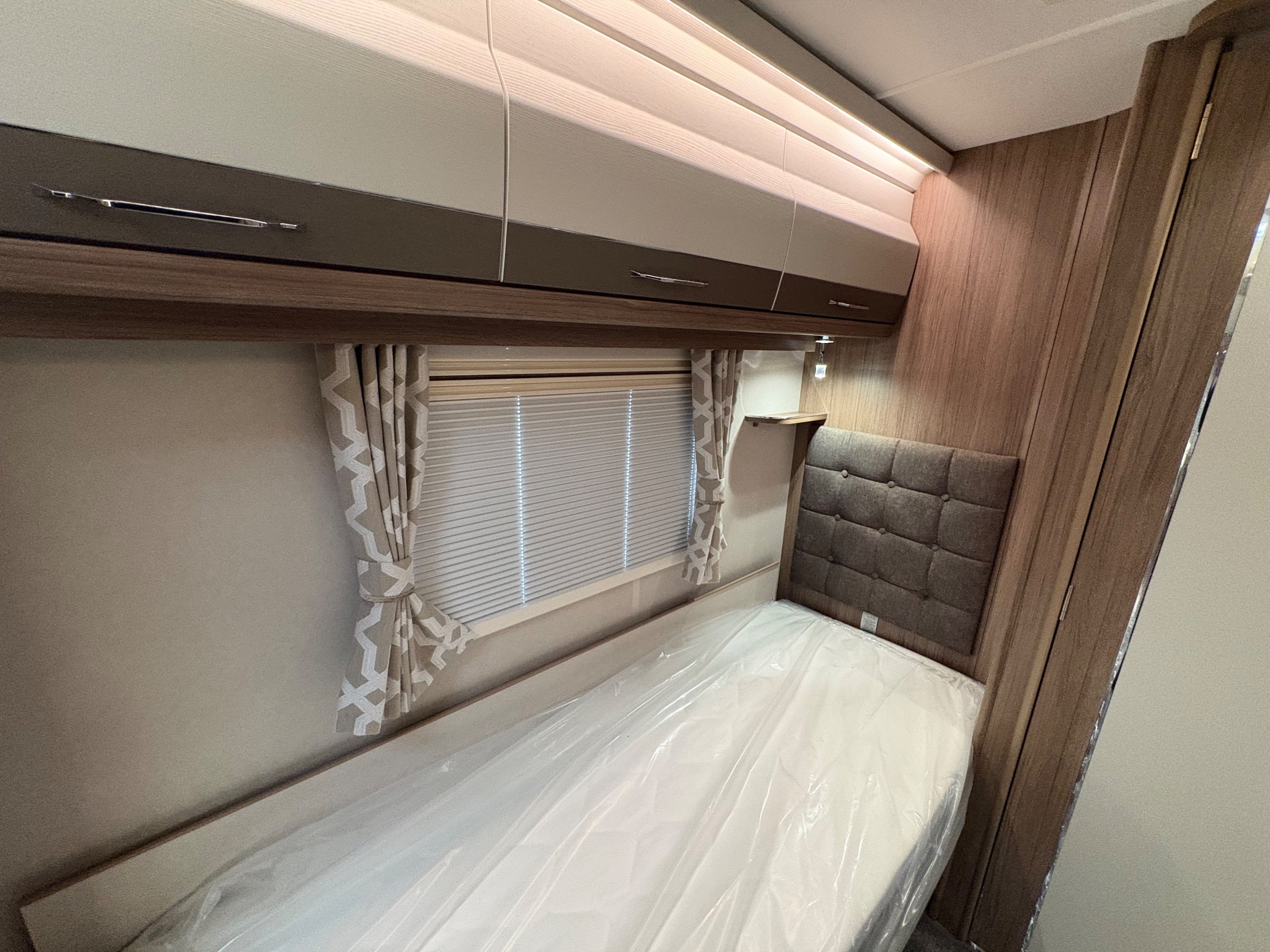 Year: 2026, Berth: 4, Internal length: 5.74m / 18'10", External length: 7.37m / 24'2", Width: 2.31m / 7'7", Unladen weight: 1483kg ( Upgraded MTPLM: 1700kg ), MTPLM: 1638kg, Awning size: 10.20m, Warranty: 3 years major components, 10 year bodyshell ( subject to terms and conditions ). This model features twin rear fixed single beds, and a rear washroom. Alde heating , atc braking, alko wheel locks and external mains and gas points are just a few of the items supplied with this caravan as standard. A bright and spacious lounge with sprung seats, provide a pleasant environment in which to spend your day. The single beds offer convenience of not disturbing others when getting in and out of bed. The square shower in the washroom provides plenty of room to use your own facilities if you wish, along with enough room to access the toilet etc. -