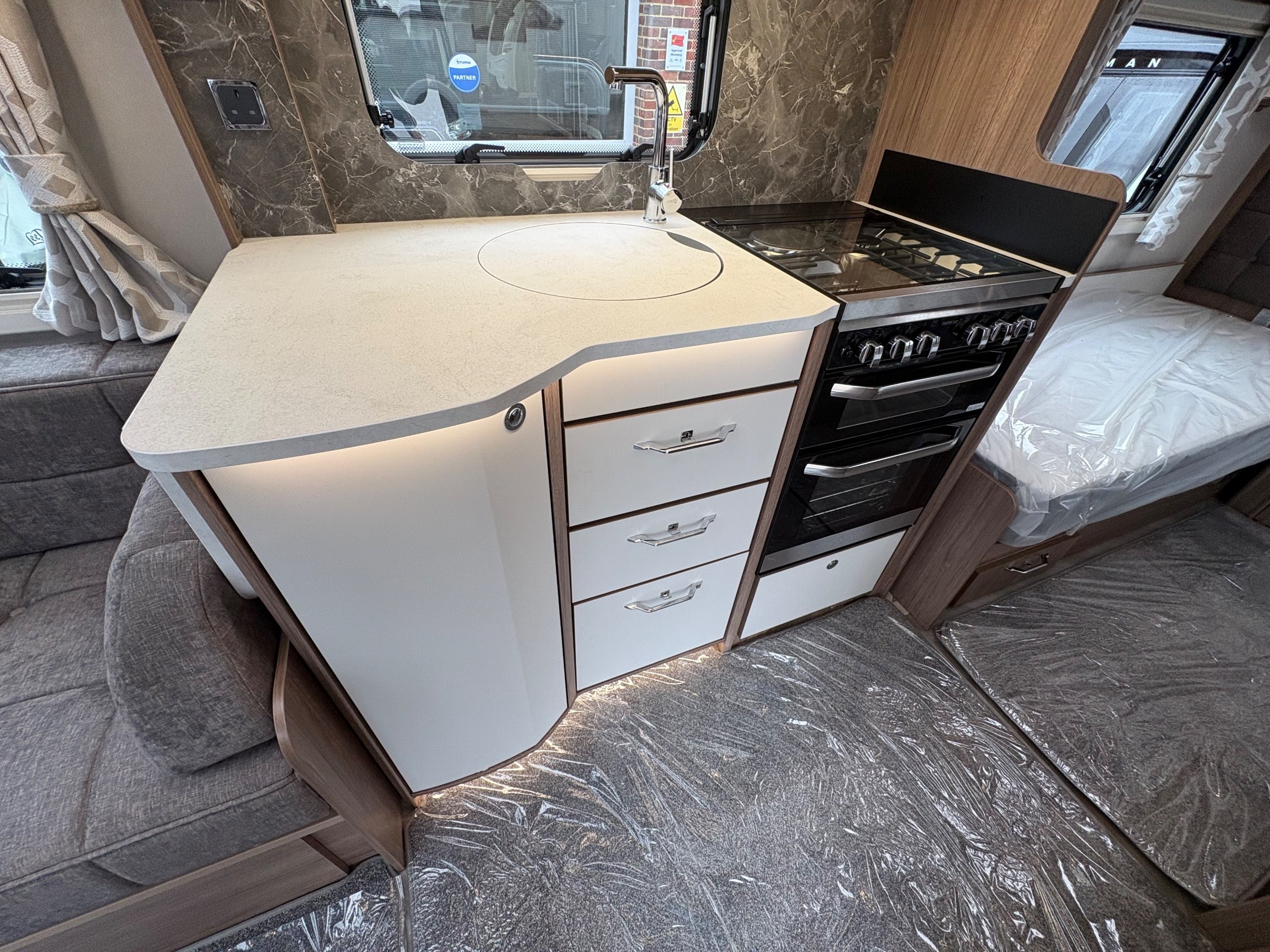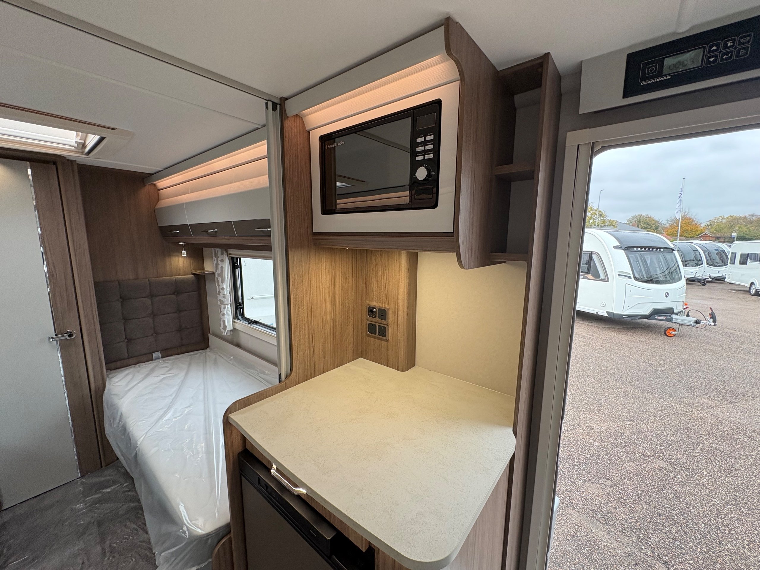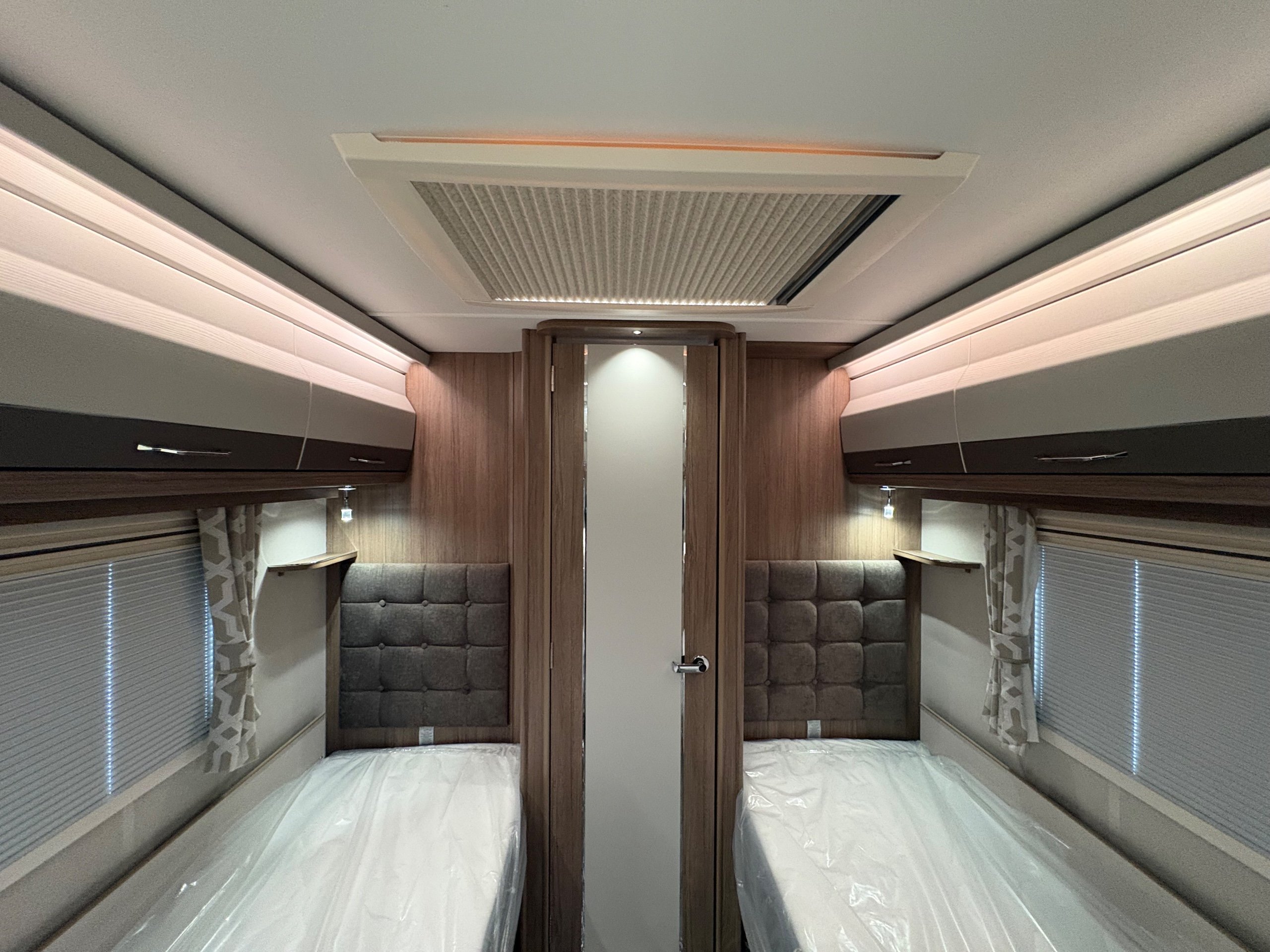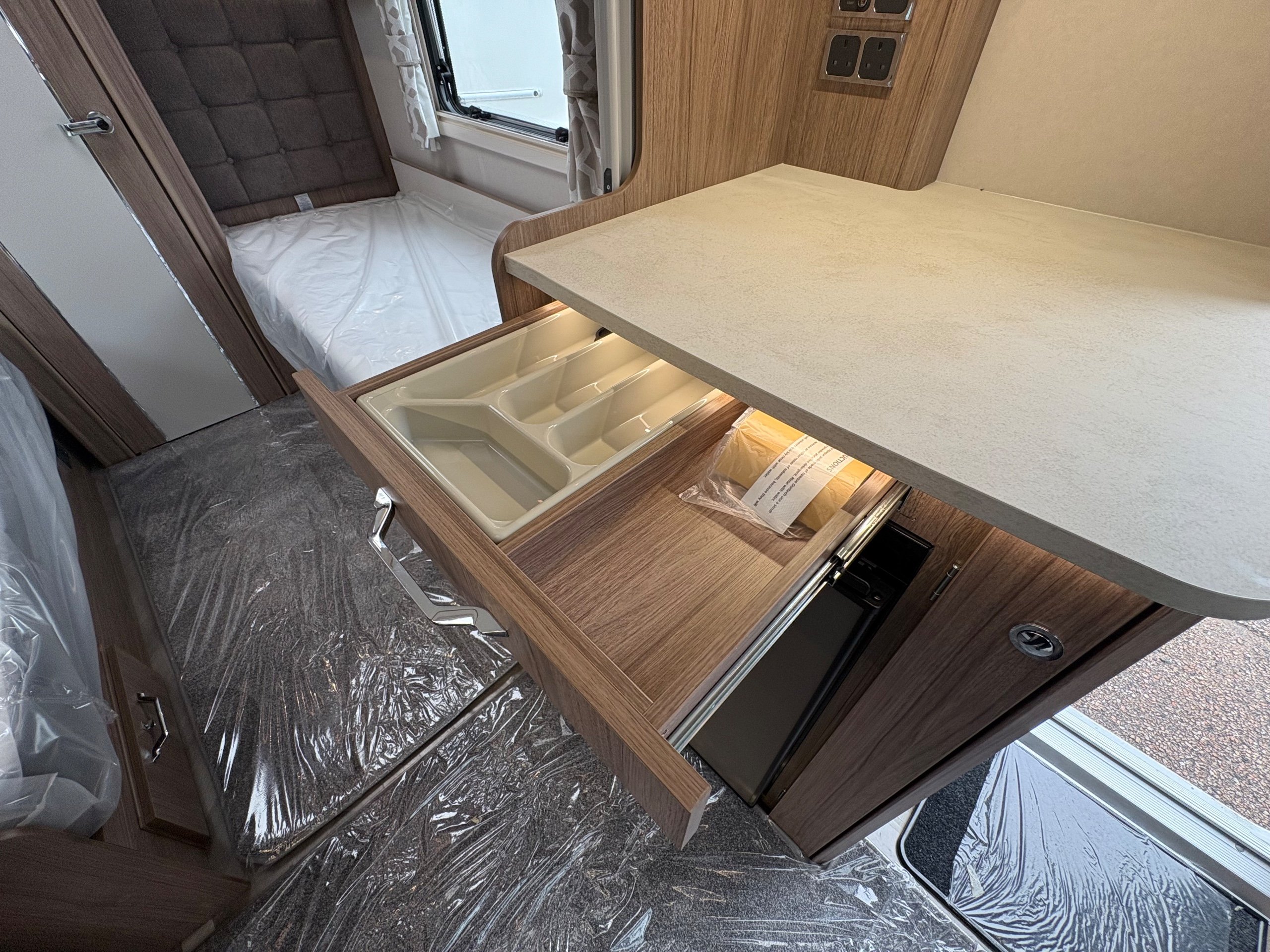 Year: 2026, Berth: 4, Internal length: 5.74m / 18'10", External length: 7.37m / 24'2", Width: 2.31m / 7'7", Unladen weight: 1483kg ( Upgraded MTPLM: 1700kg ), MTPLM: 1638kg, Awning size: 10.20m, Warranty: 3 years major components, 10 year bodyshell ( subject to terms and conditions ). This model features twin rear fixed single beds, and a rear washroom. Alde heating , atc braking, alko wheel locks and external mains and gas points are just a few of the items supplied with this caravan as standard. A bright and spacious lounge with sprung seats, provide a pleasant environment in which to spend your day. The single beds offer convenience of not disturbing others when getting in and out of bed. The square shower in the washroom provides plenty of room to use your own facilities if you wish, along with enough room to access the toilet etc. -