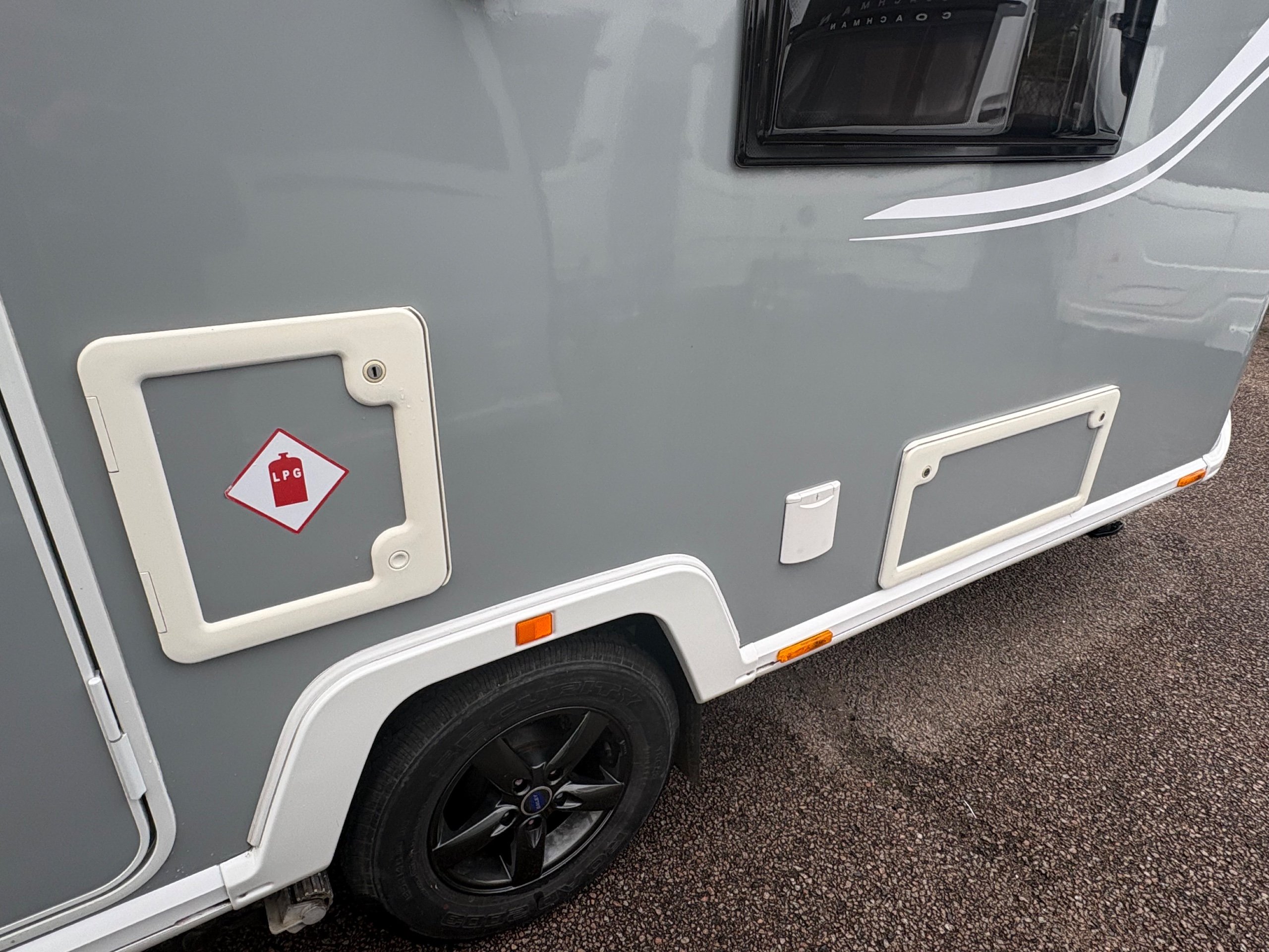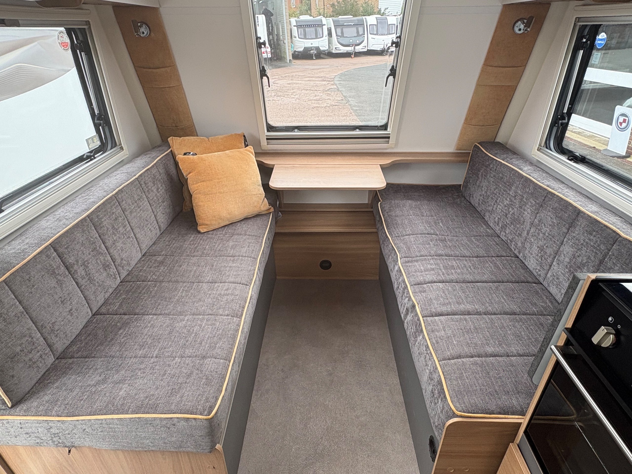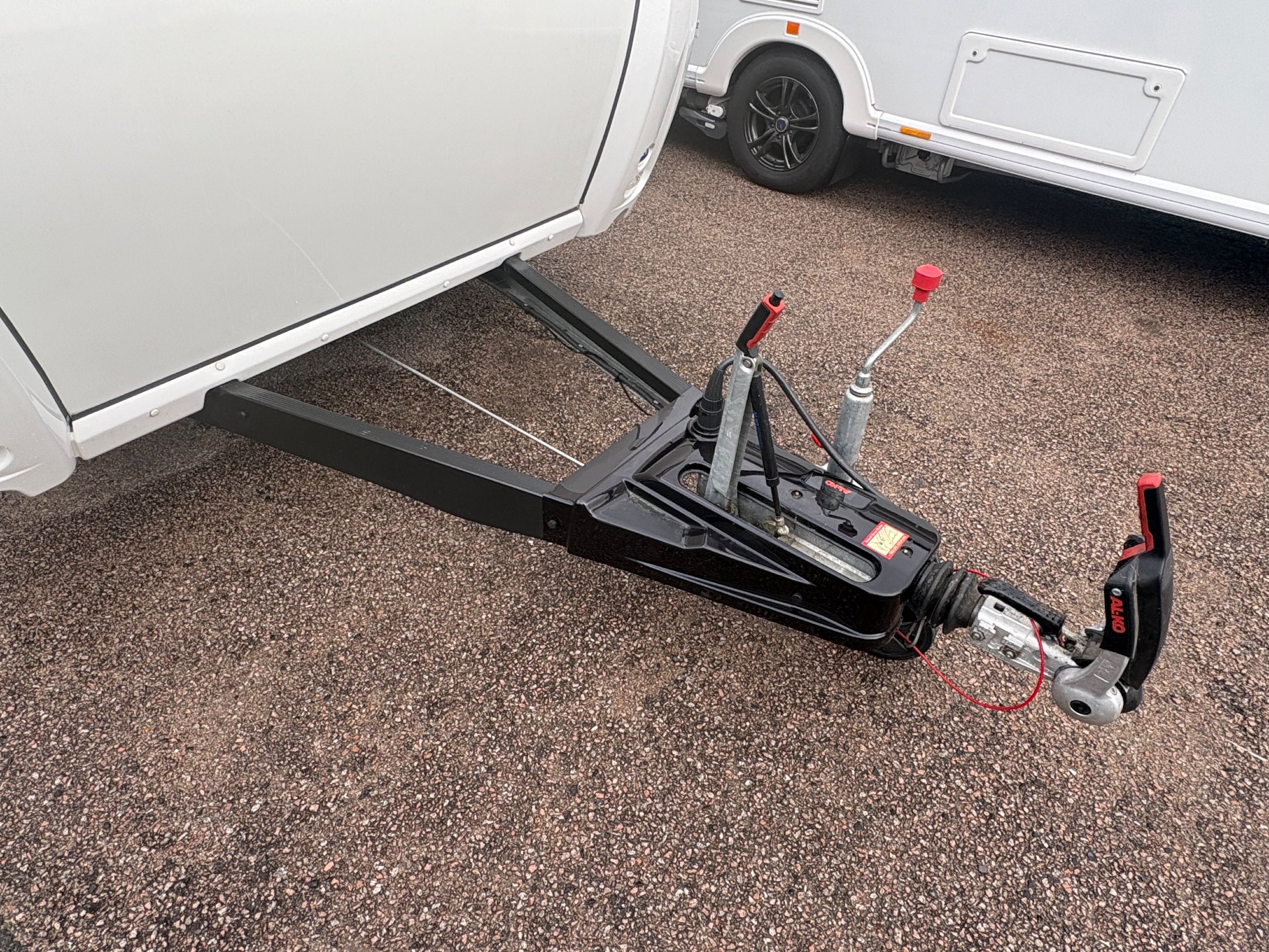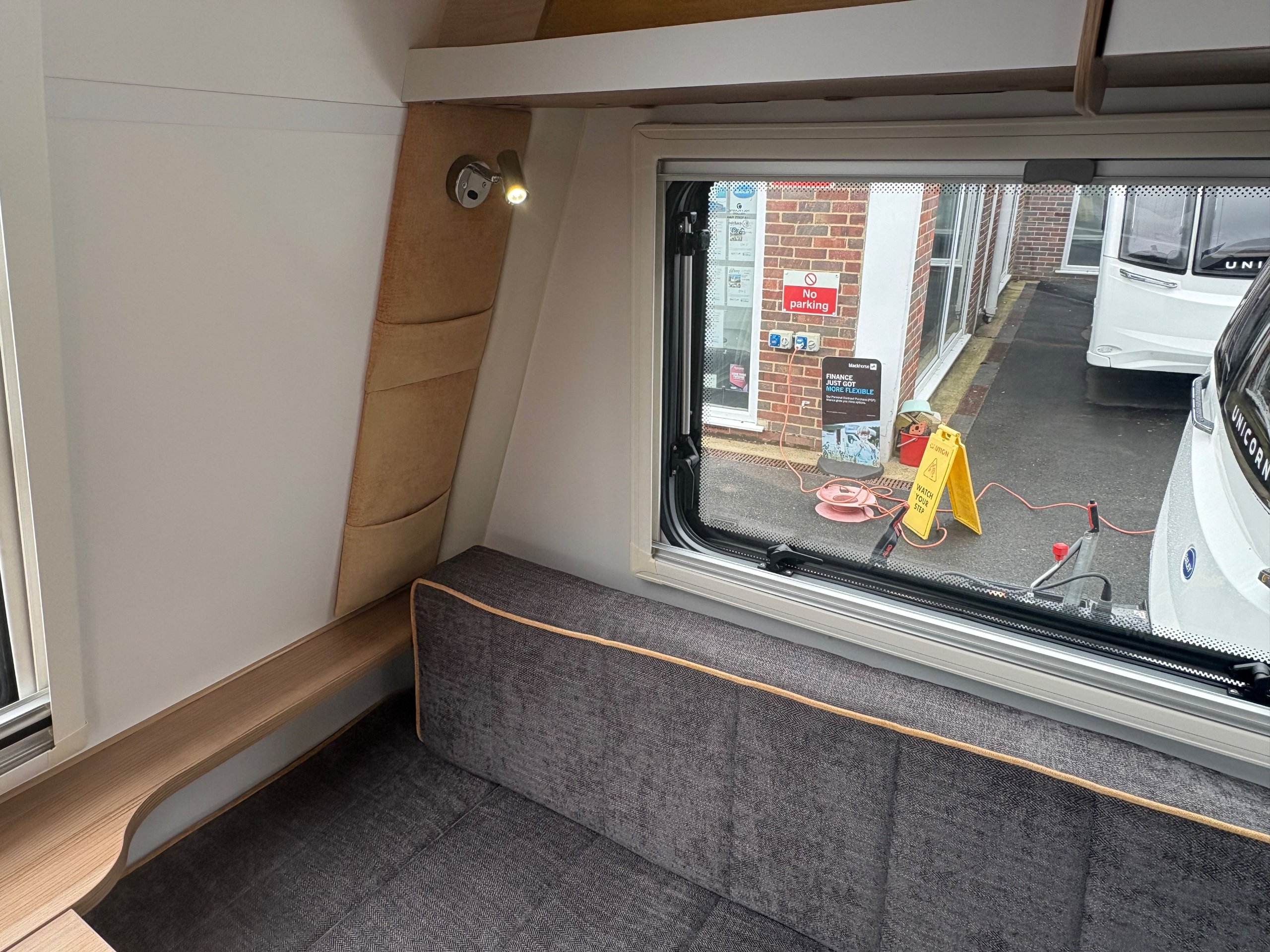 Year: 2021, Berth: 4, Internal length: 5.31m / 17'4", External length: 7.15m / 23'5", Width: 2.28m / 7'4", Unladen weight: 1059kg, MTPLM: 1206kg, Warranty: 12 months. This light weight caravan is perfect for customers looking to use lighter or hybrid vehicles, who still want a fixed bed caravan. The truma heater and full end washroom, allow customers to be self contained if they wish, whenever they want to use their caravan. The long euro A frame provides space for a cycle carrier to be fitted, with enough space to keep the bicycles safe when towing. -