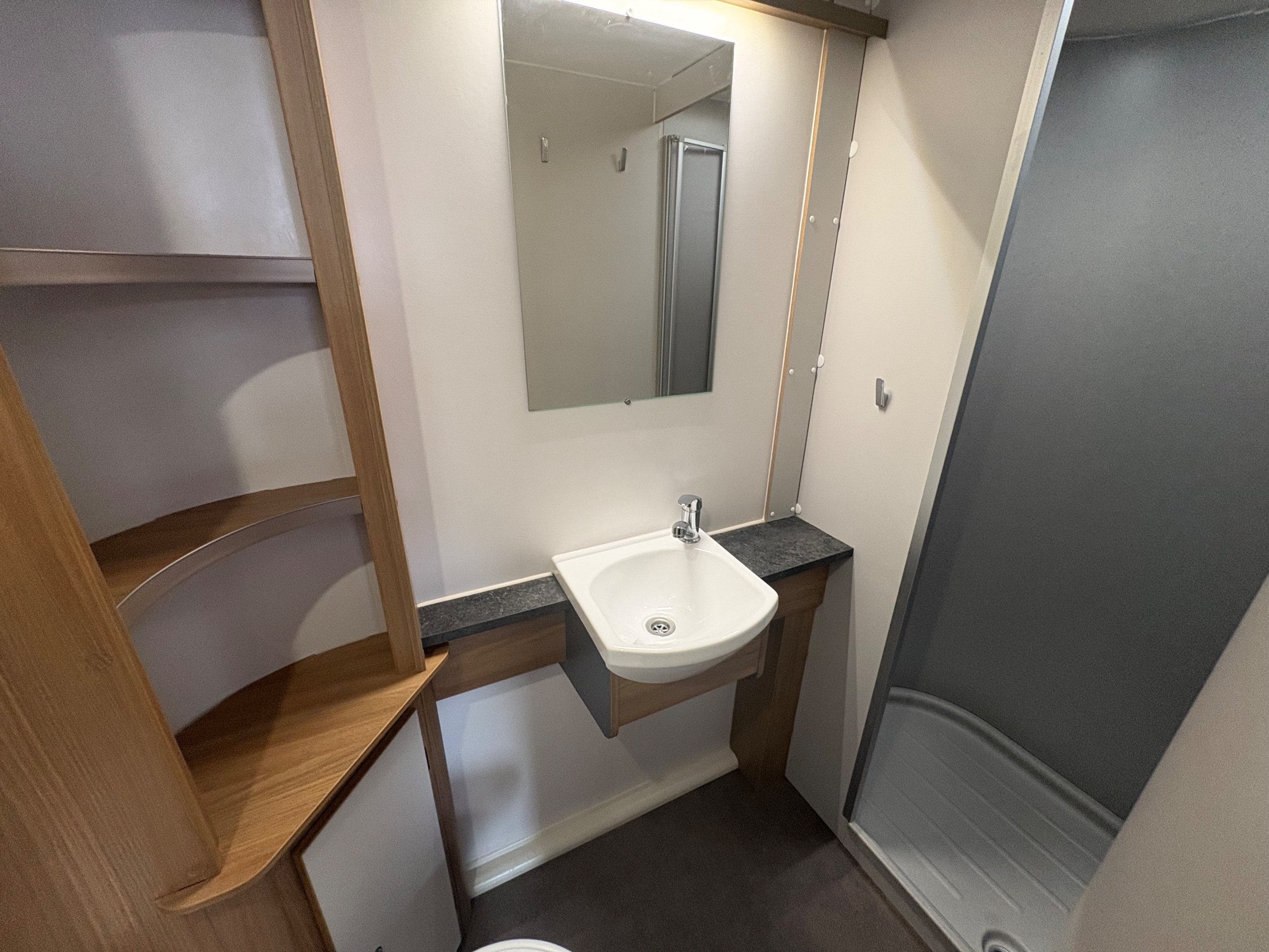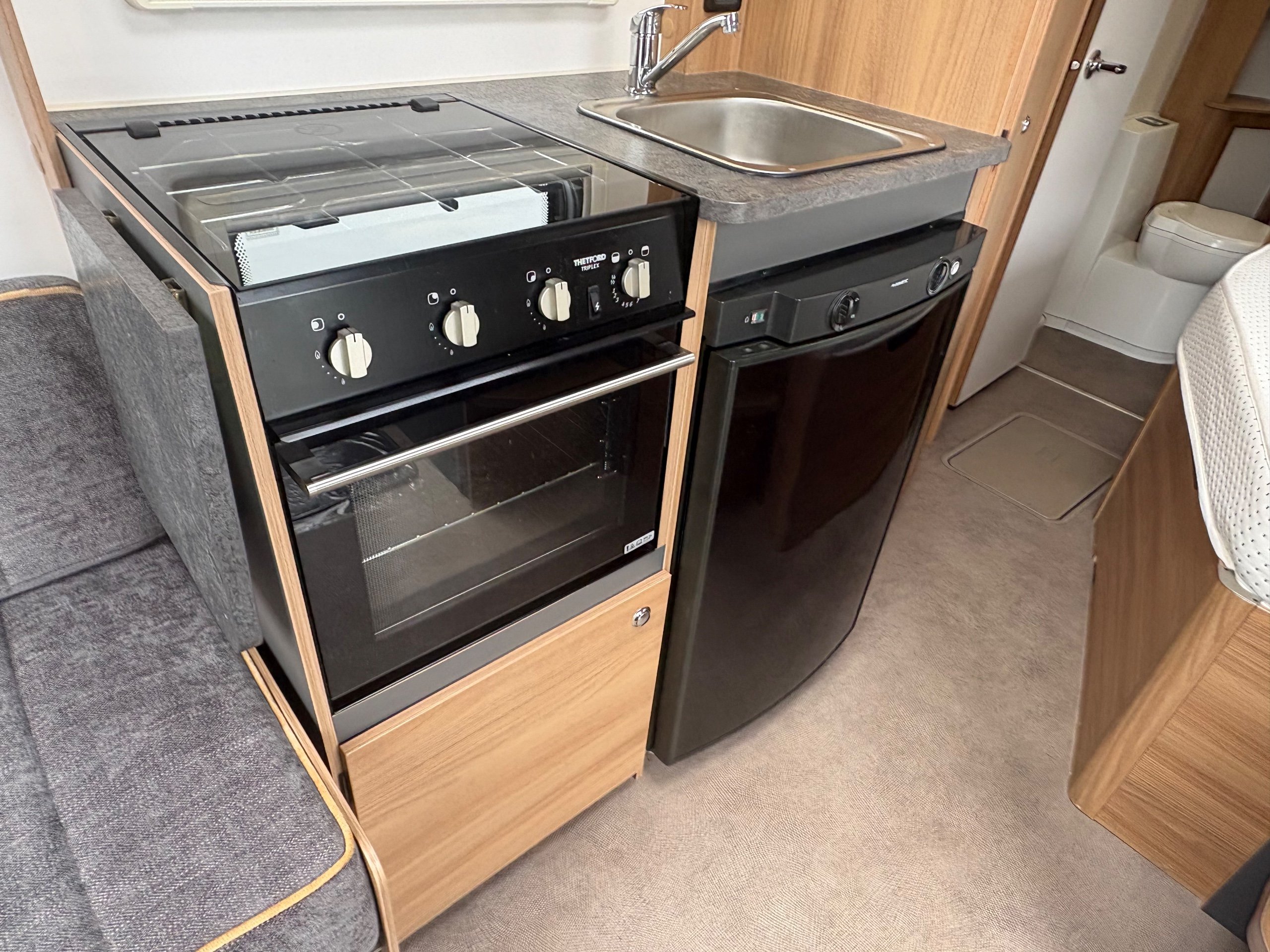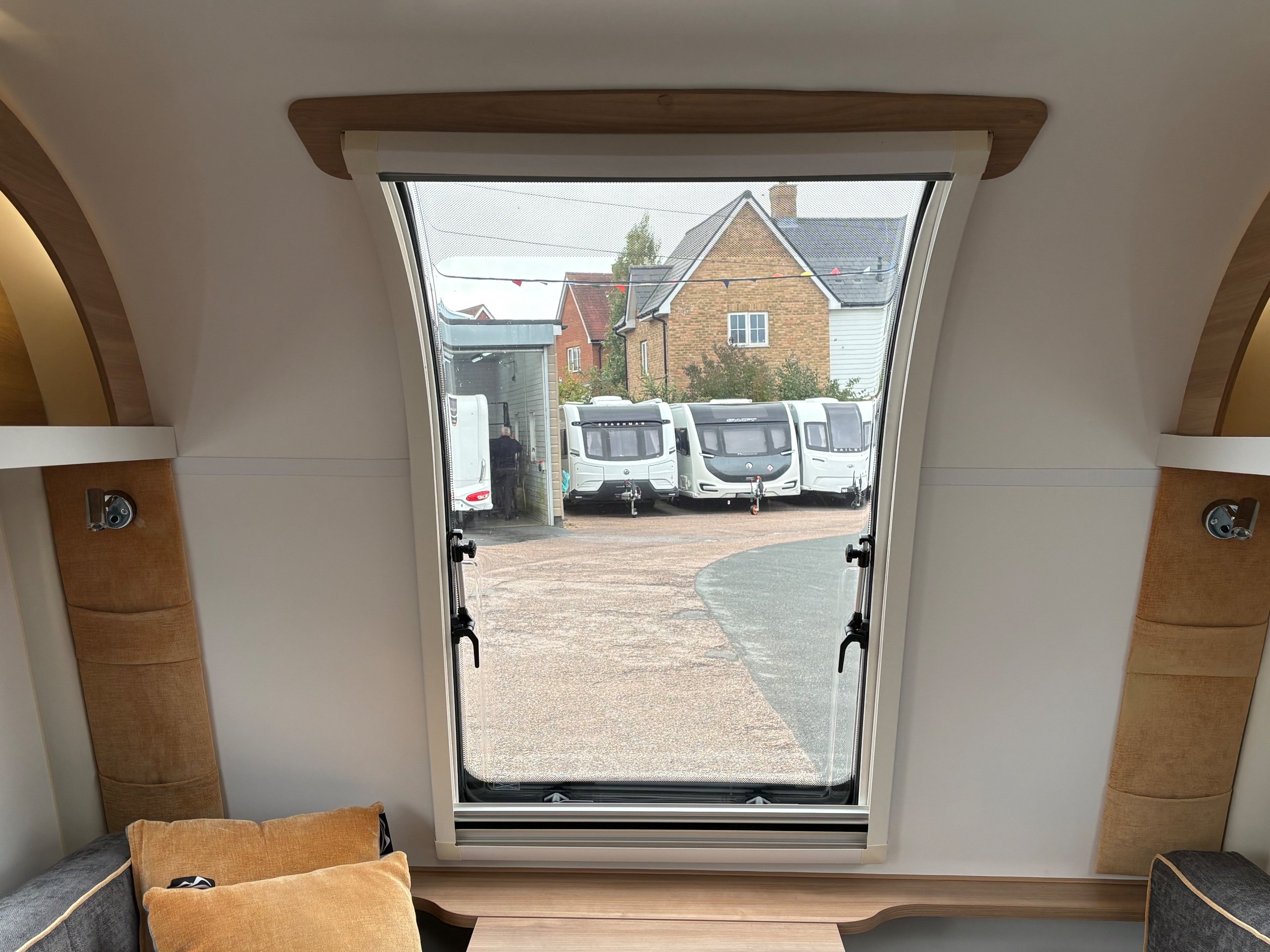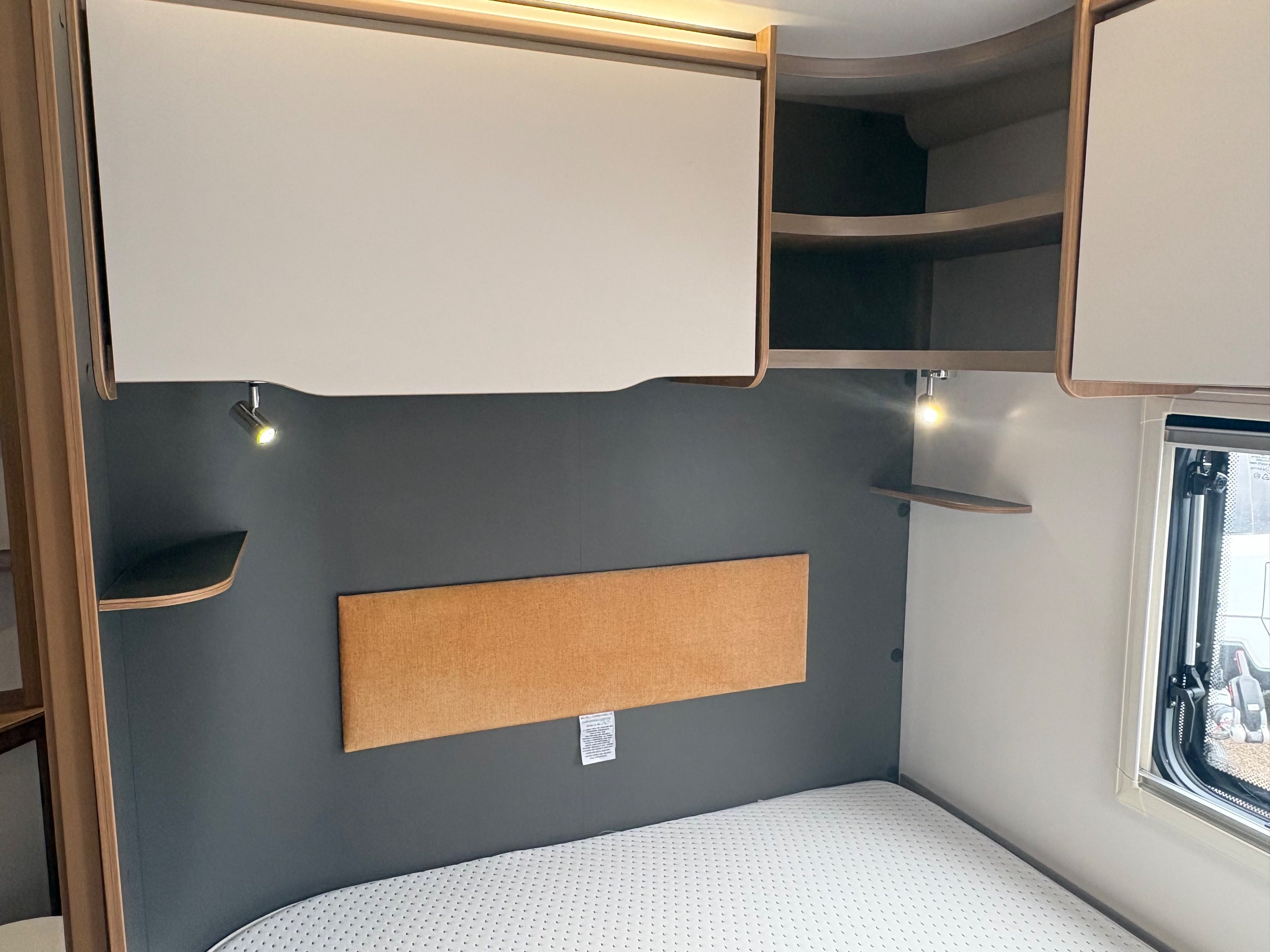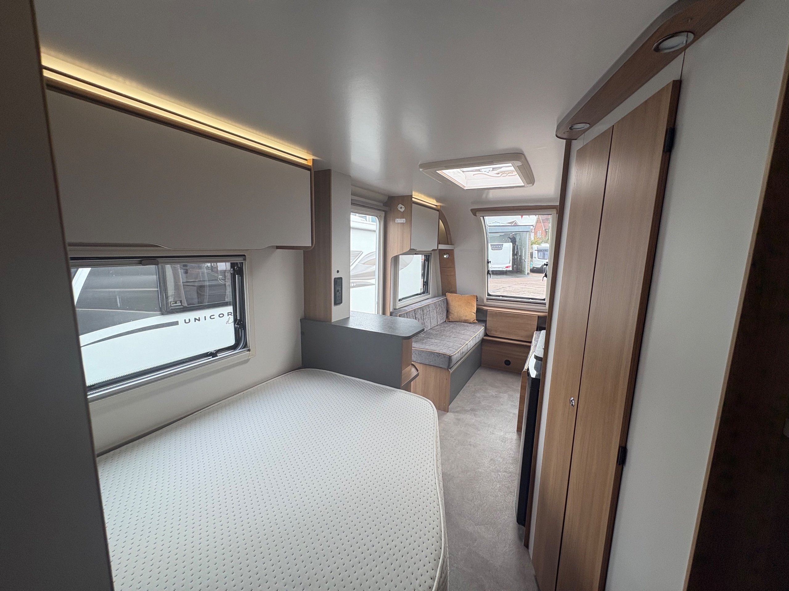 Year: 2021, Berth: 4, Internal length: 5.31m / 17'4", External length: 7.15m / 23'5", Width: 2.28m / 7'4", Unladen weight: 1059kg, MTPLM: 1206kg, Warranty: 12 months. This light weight caravan is perfect for customers looking to use lighter or hybrid vehicles, who still want a fixed bed caravan. The truma heater and full end washroom, allow customers to be self contained if they wish, whenever they want to use their caravan. The long euro A frame provides space for a cycle carrier to be fitted, with enough space to keep the bicycles safe when towing. -