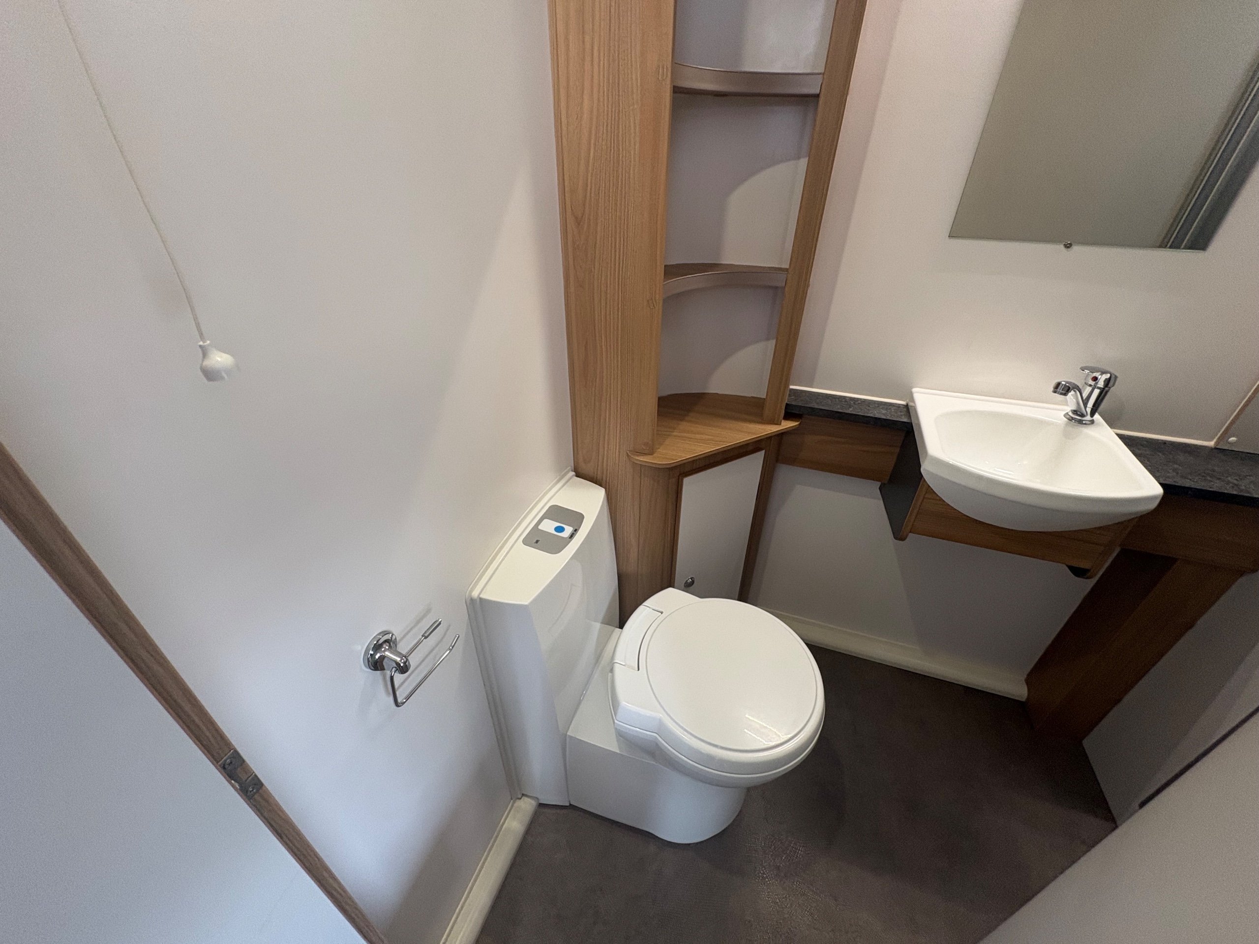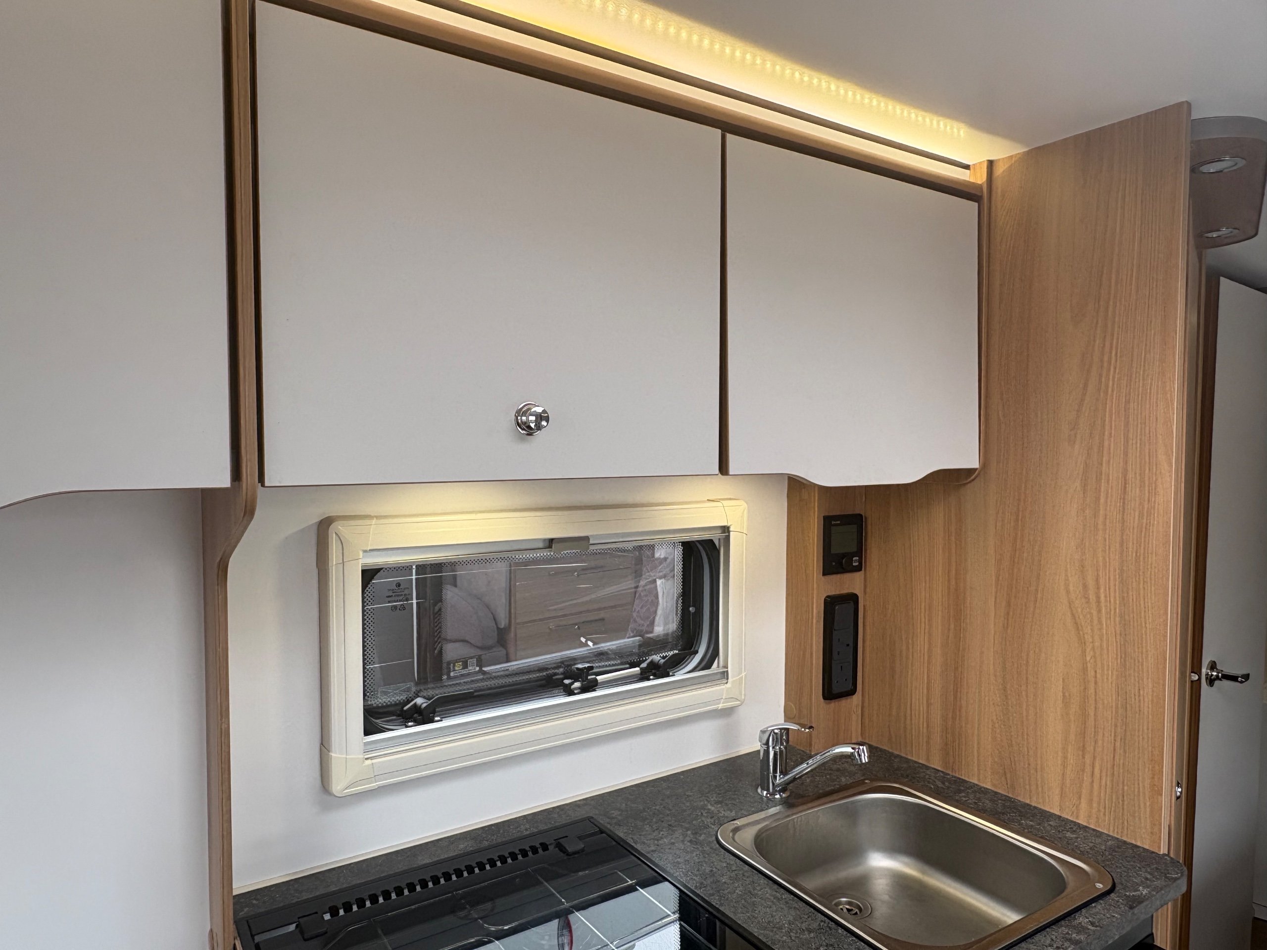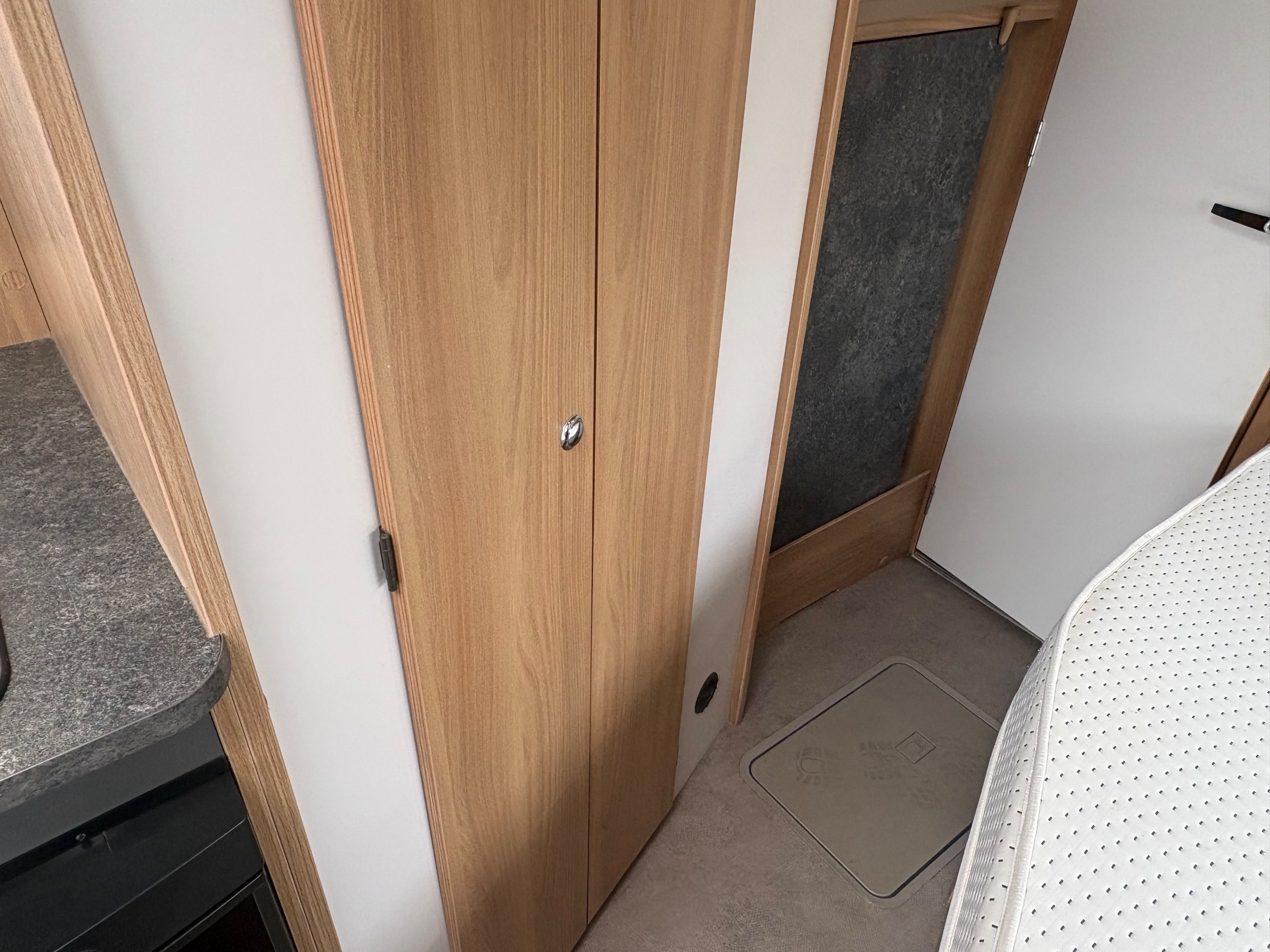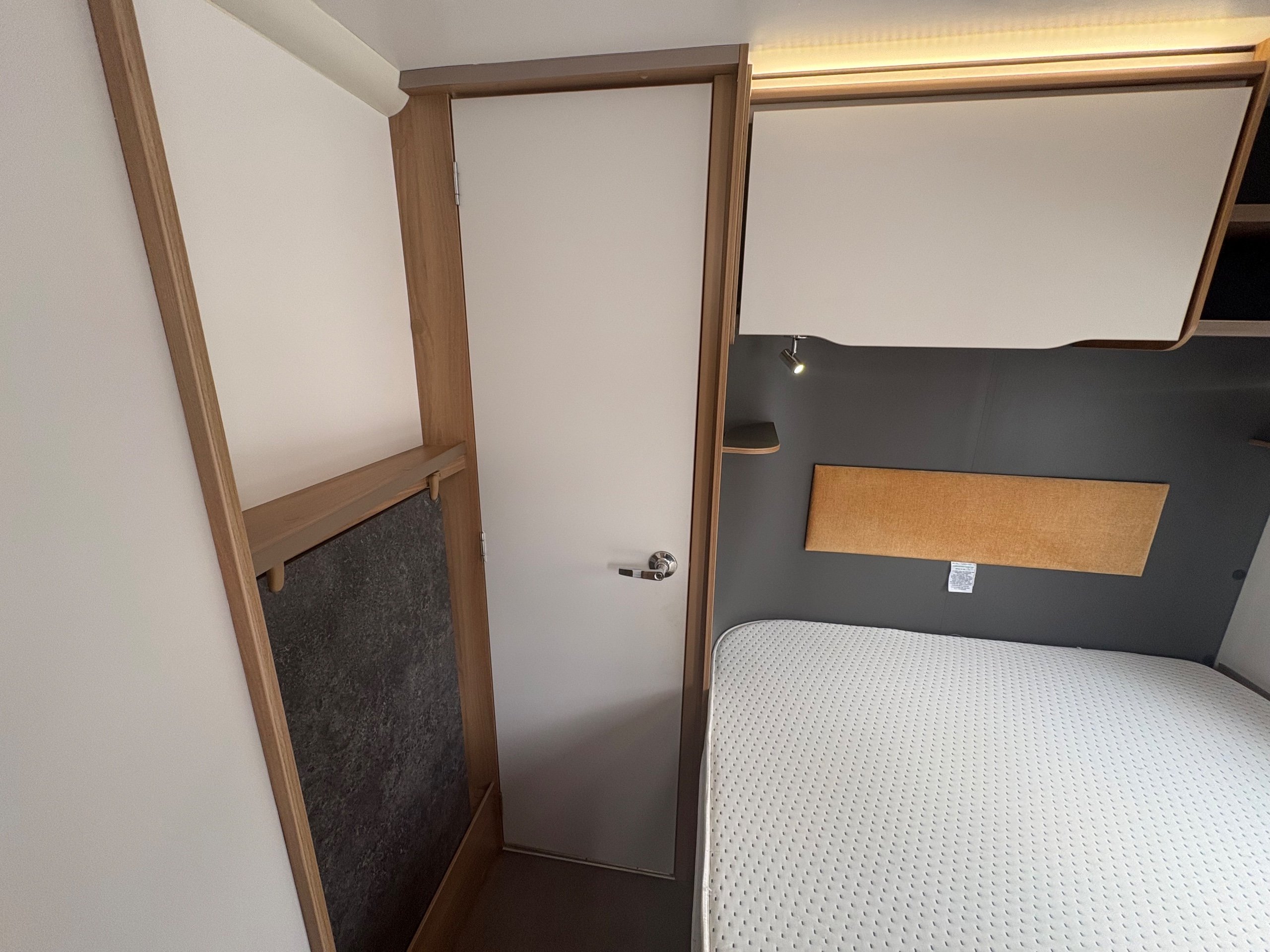 Year: 2021, Berth: 4, Internal length: 5.31m / 17'4", External length: 7.15m / 23'5", Width: 2.28m / 7'4", Unladen weight: 1059kg, MTPLM: 1206kg, Warranty: 12 months. This light weight caravan is perfect for customers looking to use lighter or hybrid vehicles, who still want a fixed bed caravan. The truma heater and full end washroom, allow customers to be self contained if they wish, whenever they want to use their caravan. The long euro A frame provides space for a cycle carrier to be fitted, with enough space to keep the bicycles safe when towing. -