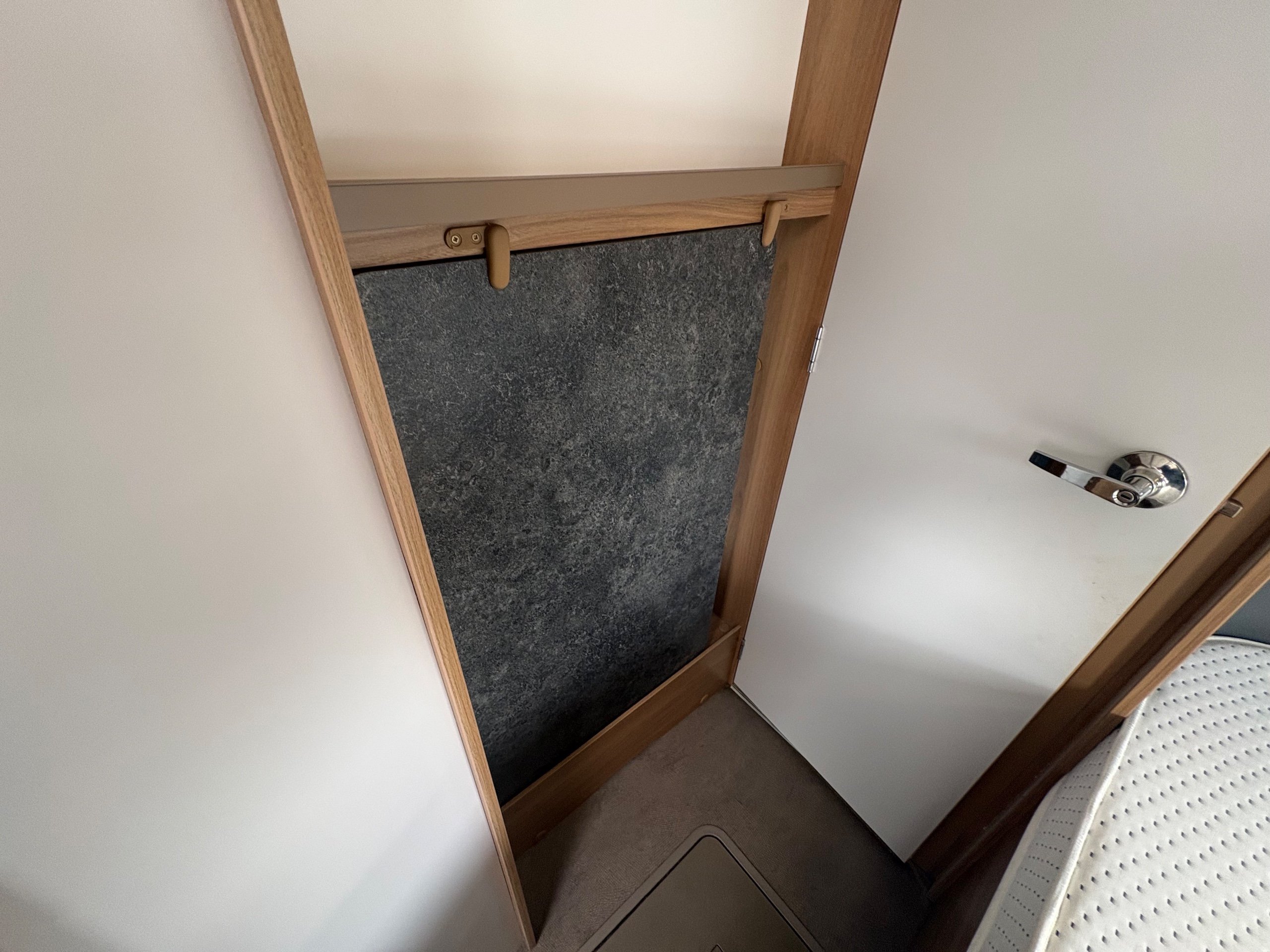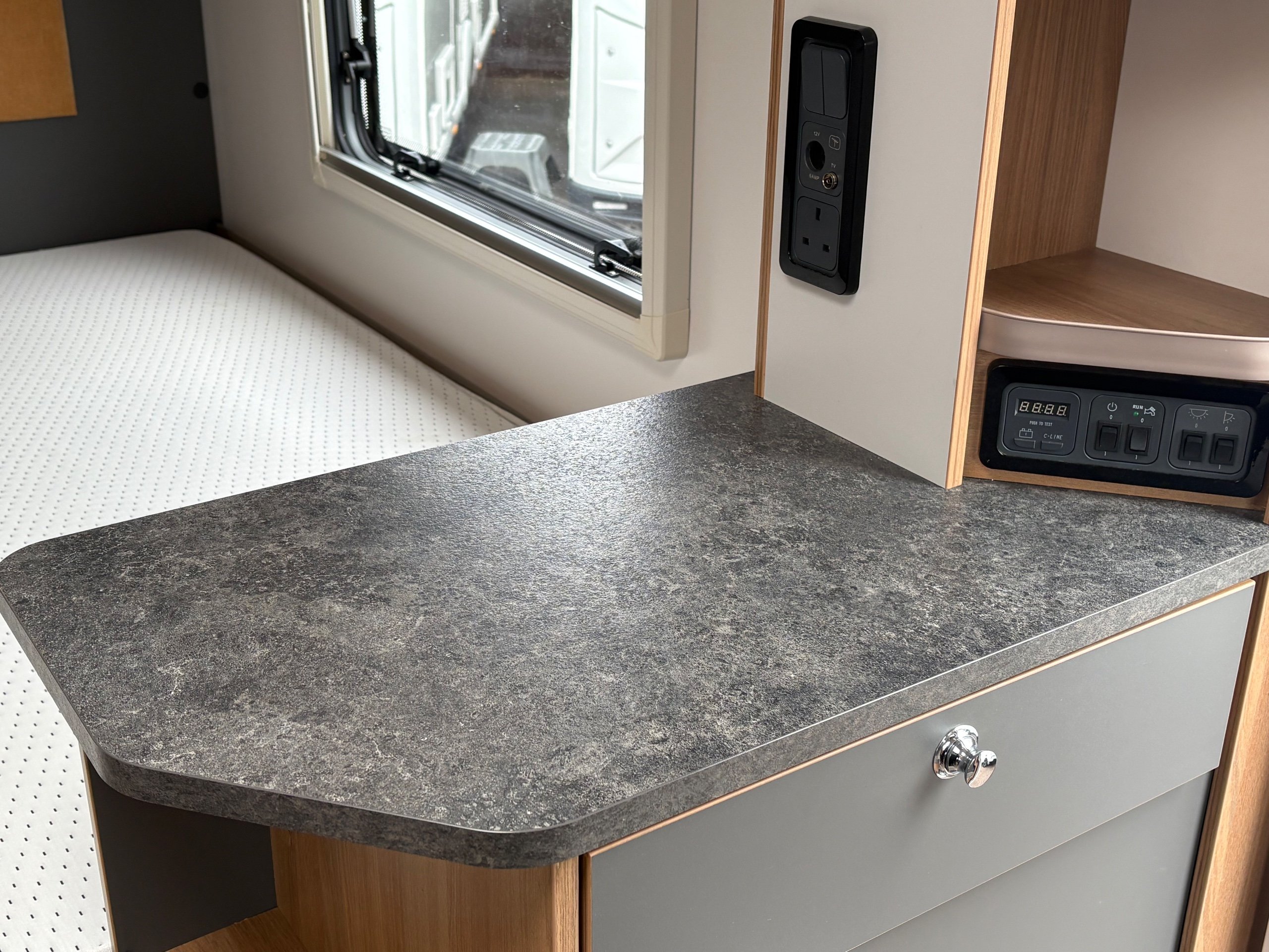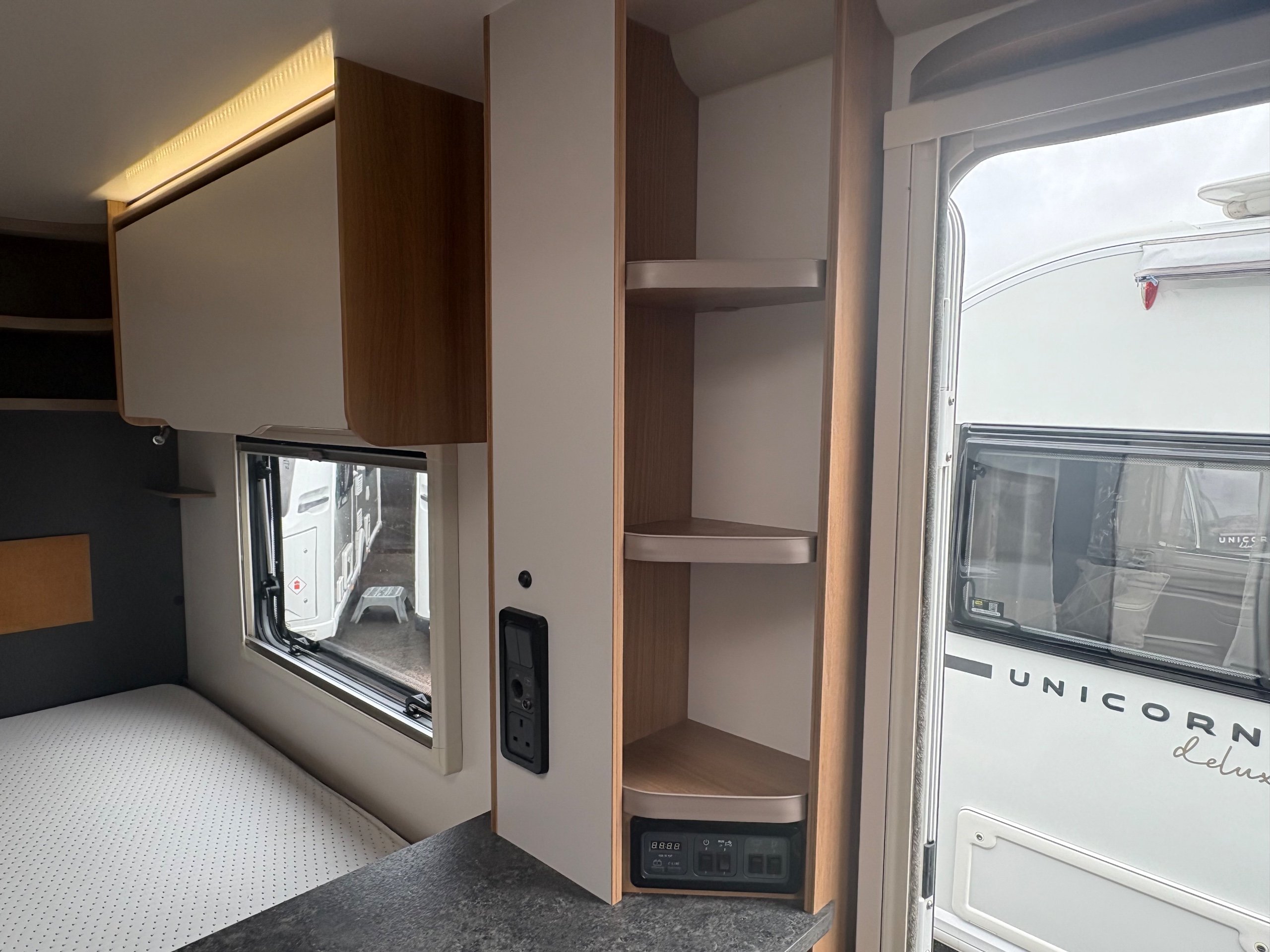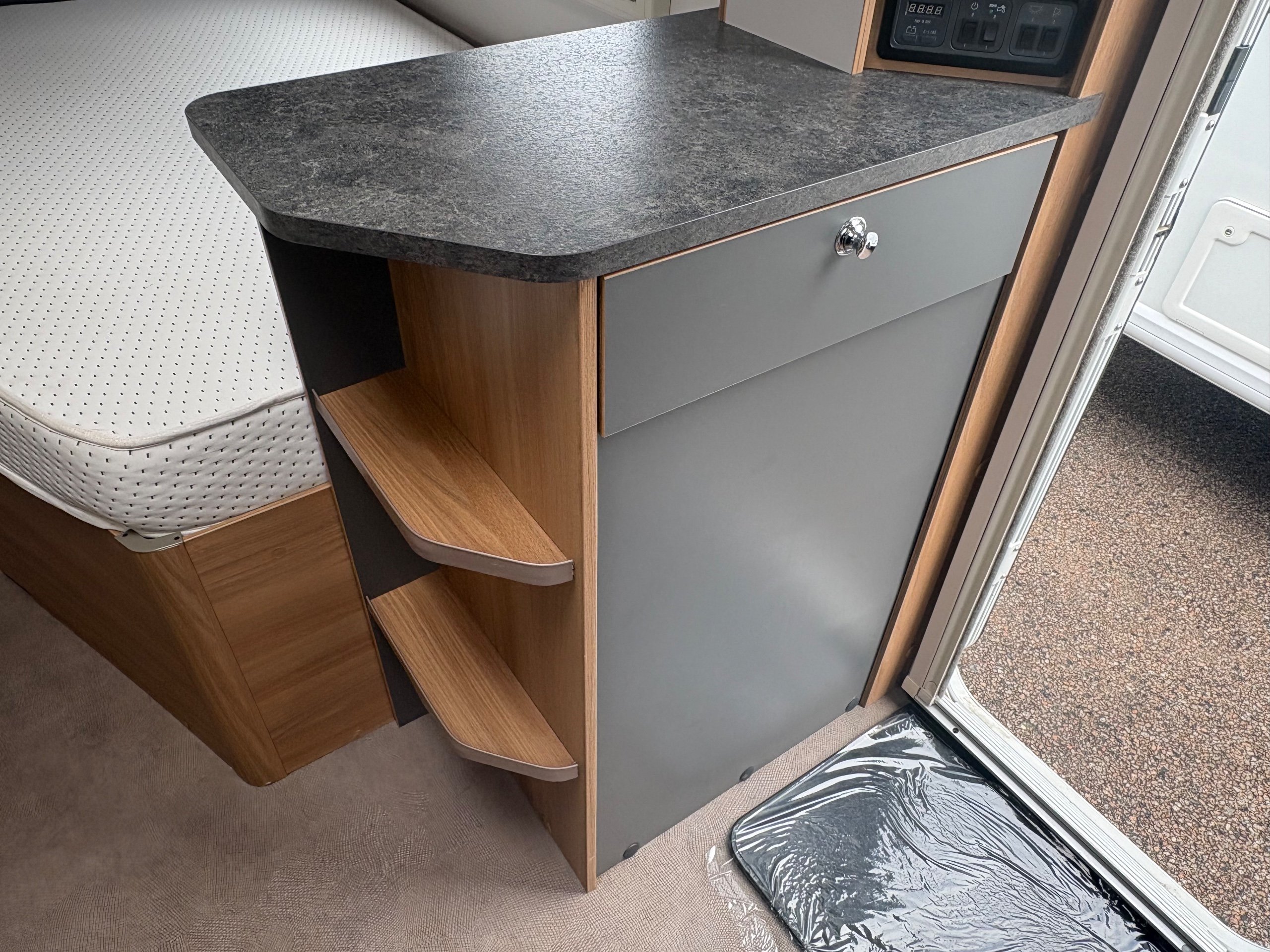 Year: 2021, Berth: 4, Internal length: 5.31m / 17'4", External length: 7.15m / 23'5", Width: 2.28m / 7'4", Unladen weight: 1059kg, MTPLM: 1206kg, Warranty: 12 months. This light weight caravan is perfect for customers looking to use lighter or hybrid vehicles, who still want a fixed bed caravan. The truma heater and full end washroom, allow customers to be self contained if they wish, whenever they want to use their caravan. The long euro A frame provides space for a cycle carrier to be fitted, with enough space to keep the bicycles safe when towing. -