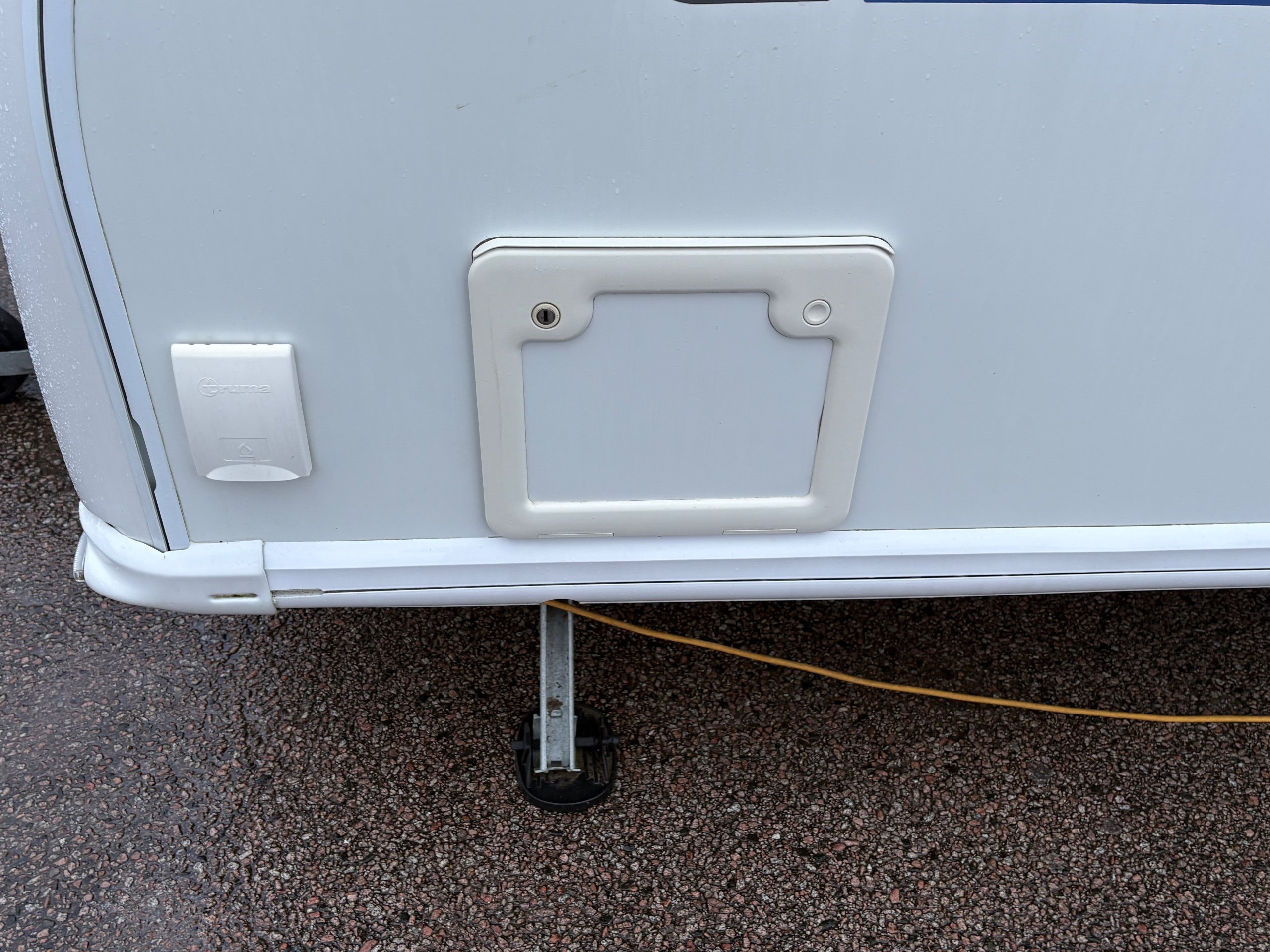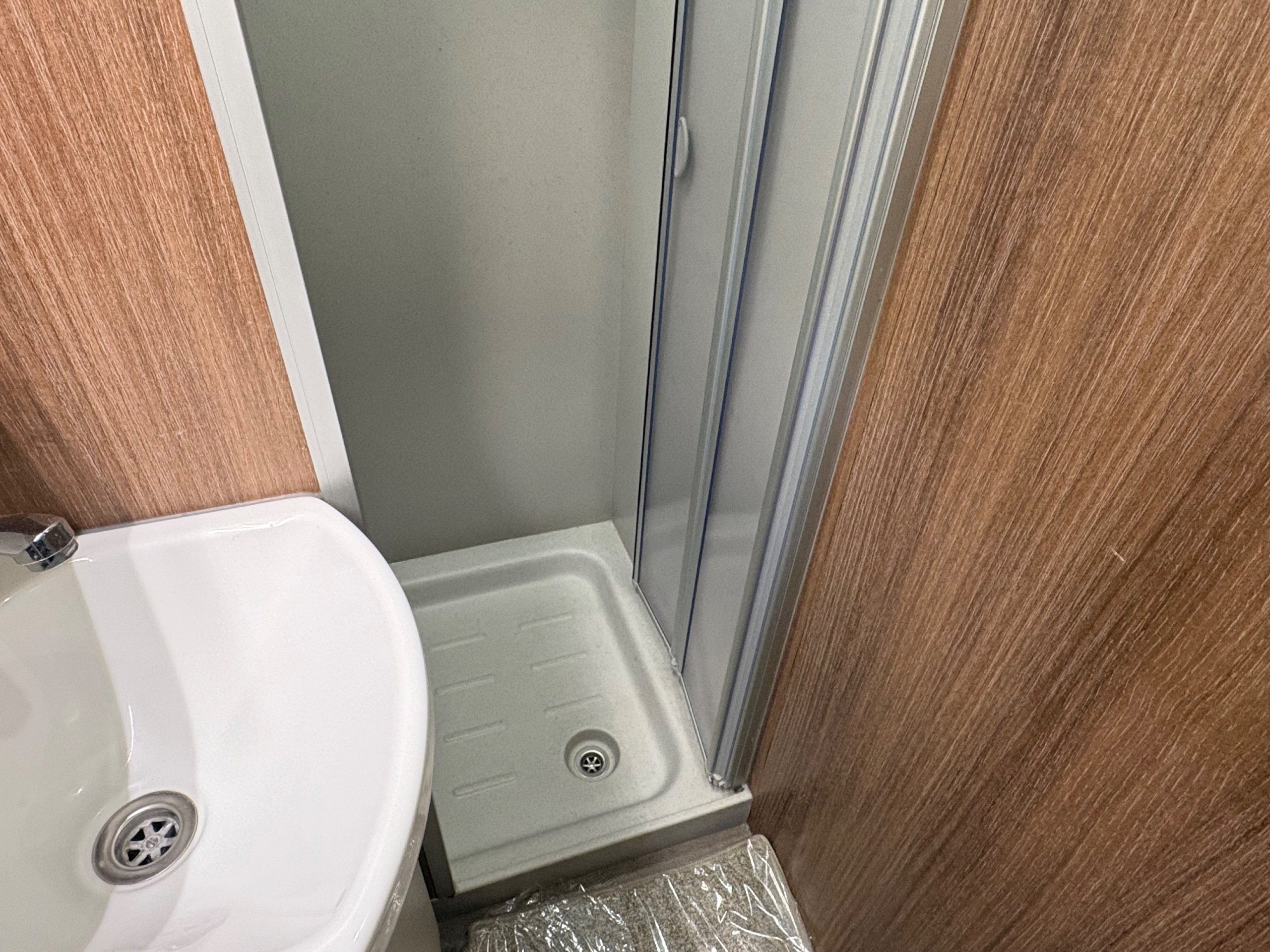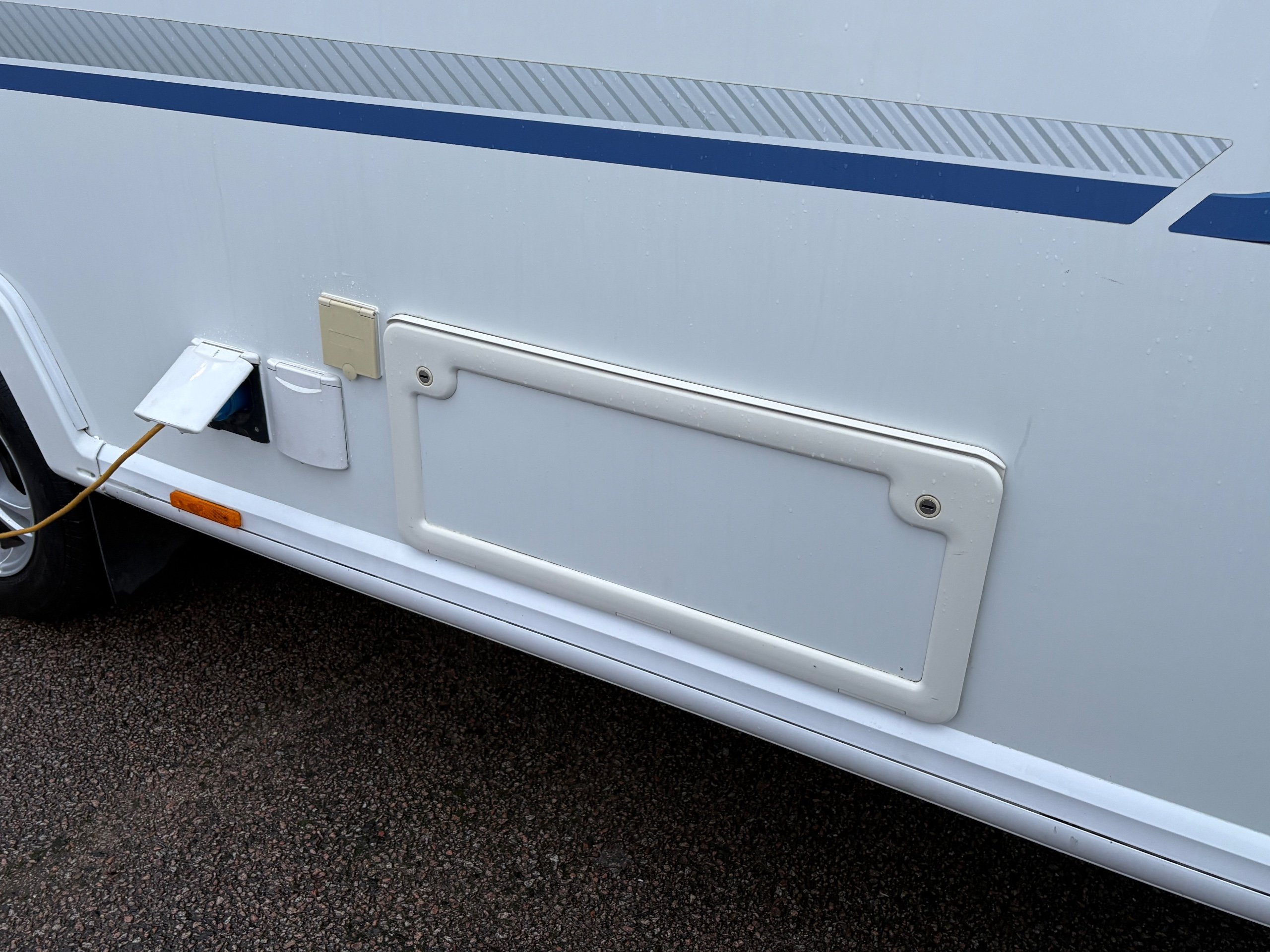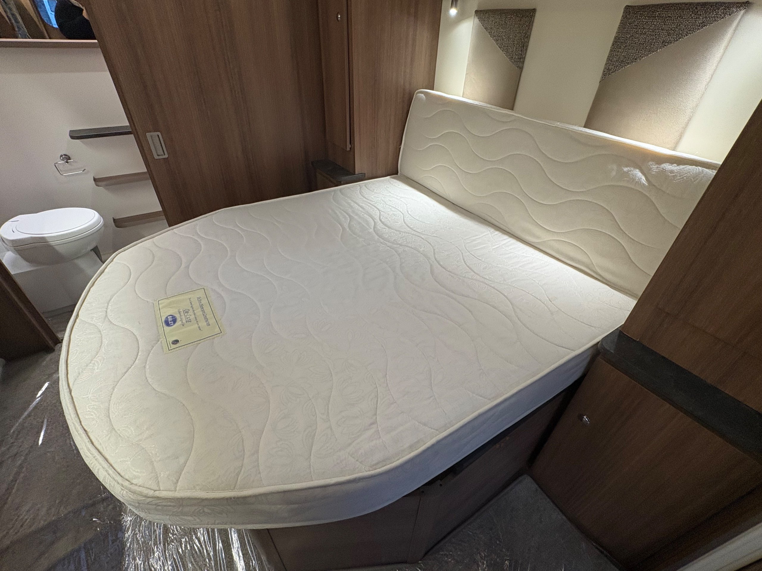 Year: 2020, Berth: 4, Internal length: 5.90m / 19'4", External length: 7.38m / 24'2", Width: 2.45m / 8', Unladen weight: 1350kg, MTPLM: 1499kg, Awning size: 10.33m, Warranty: 12 months. The Brindisi provides plenty of living space through its eight foot wide bodyshell, This is very noticeable where in conjunction with the G shaped front lounge, it provides lots of room for numerous people to sit together around a table, or just to chill out and watch the world go by. The transverse double bed slides back during the day to improve access to the rear washroom during the day, and then extending to provide a double bed at night. The rear washroom has a roomy corner shower, and enough space to use as a dressing room should you wish to. This model also comes with a caravan mover to assist in positioning the caravan. -