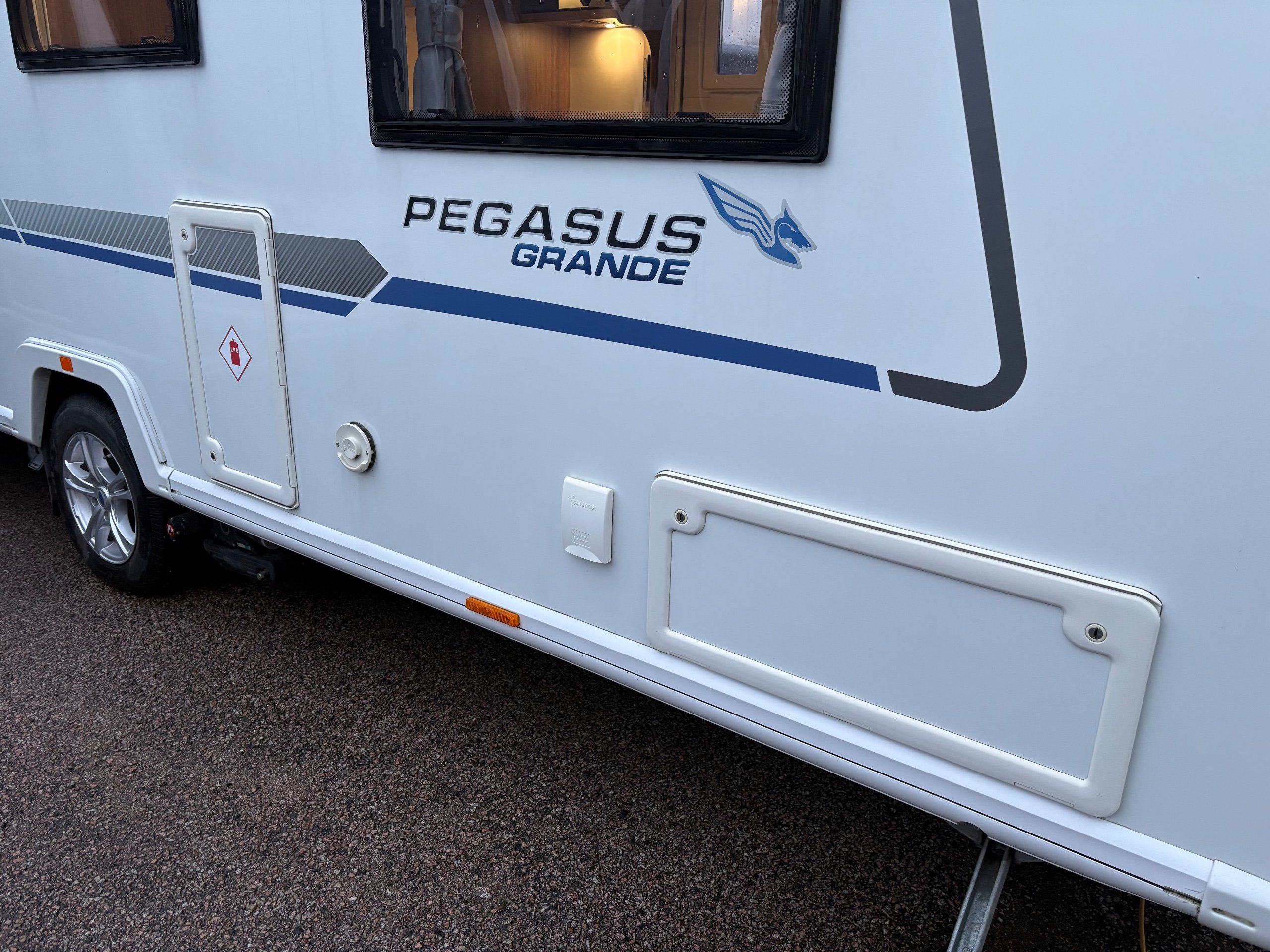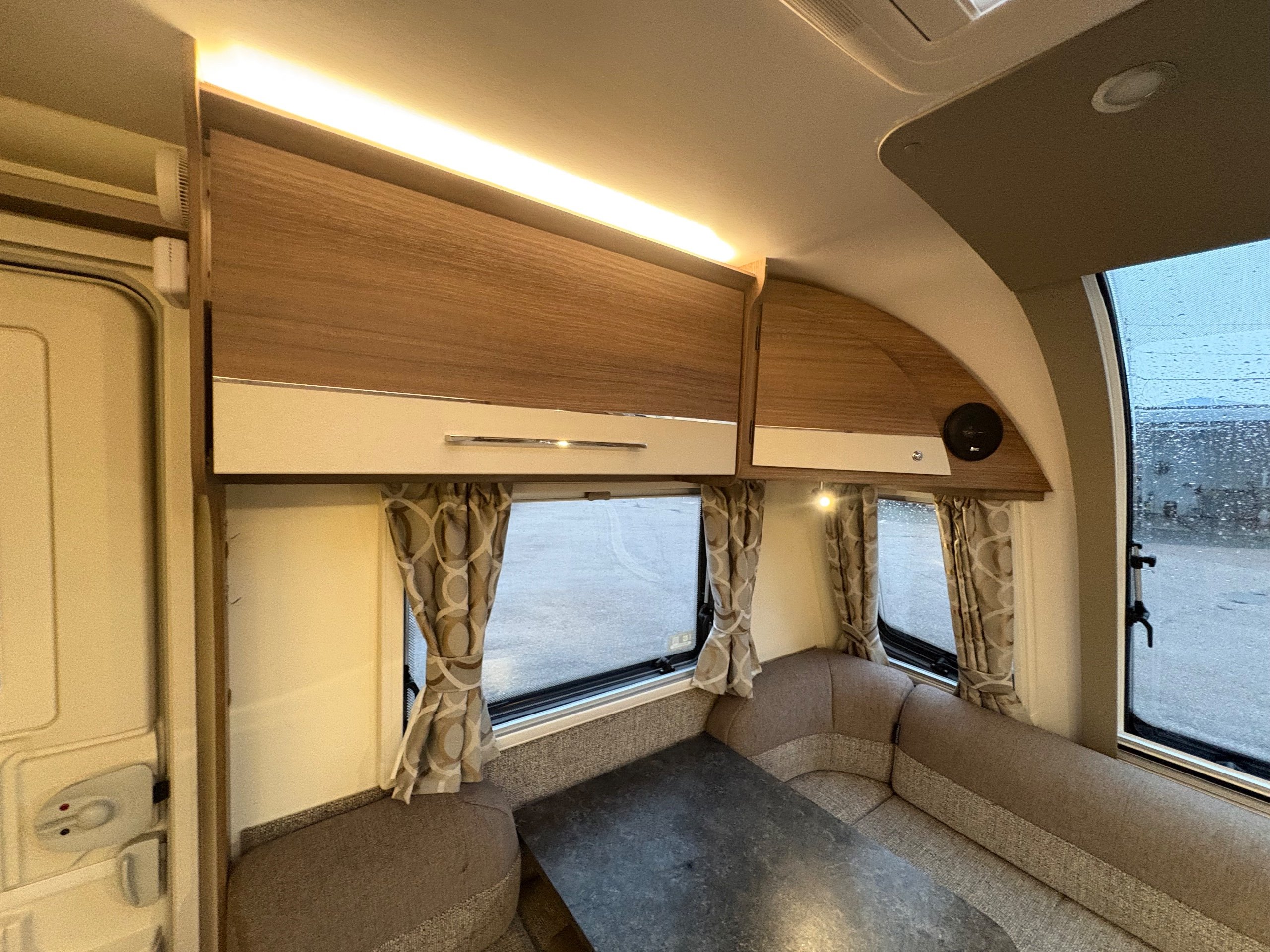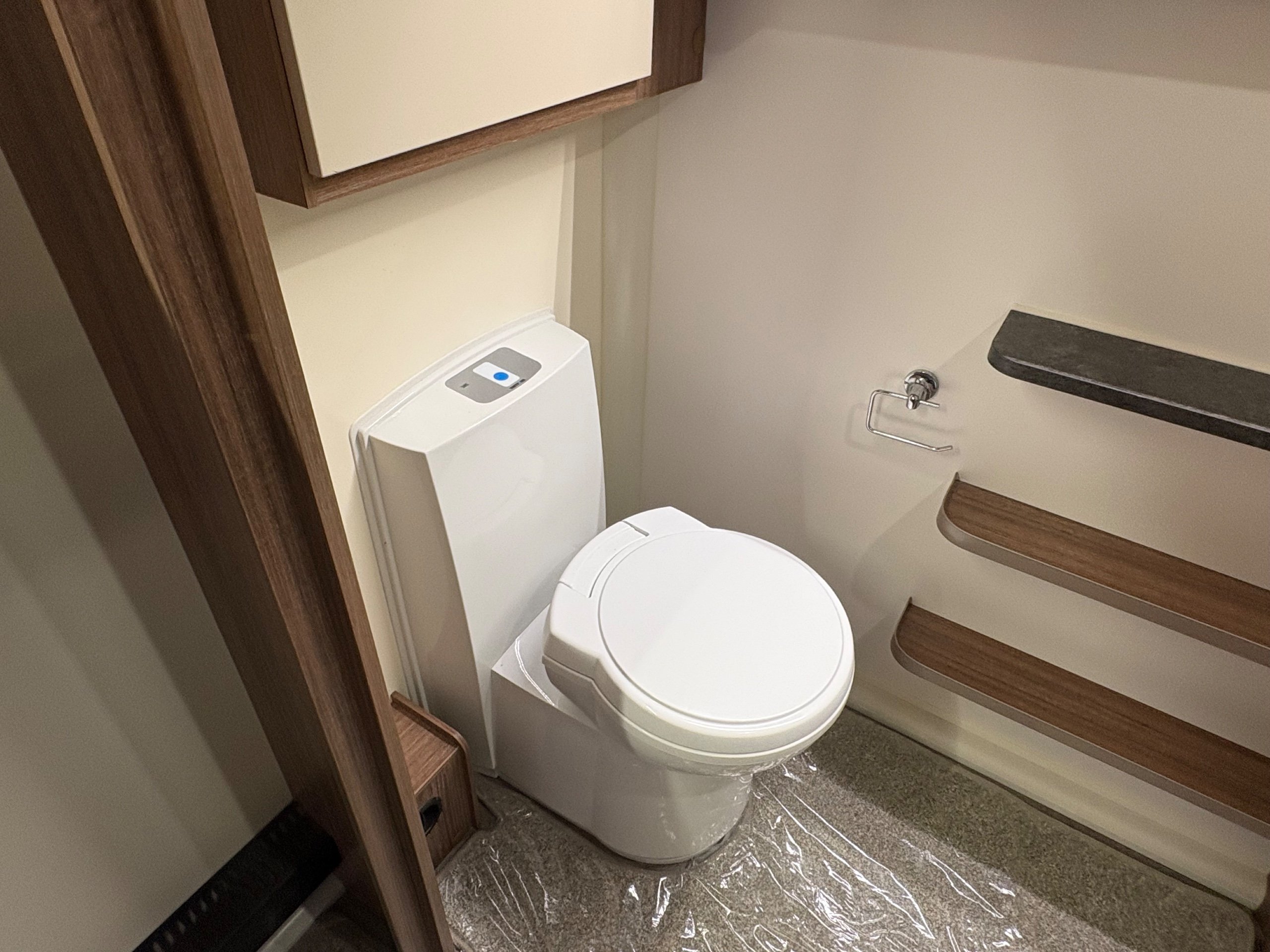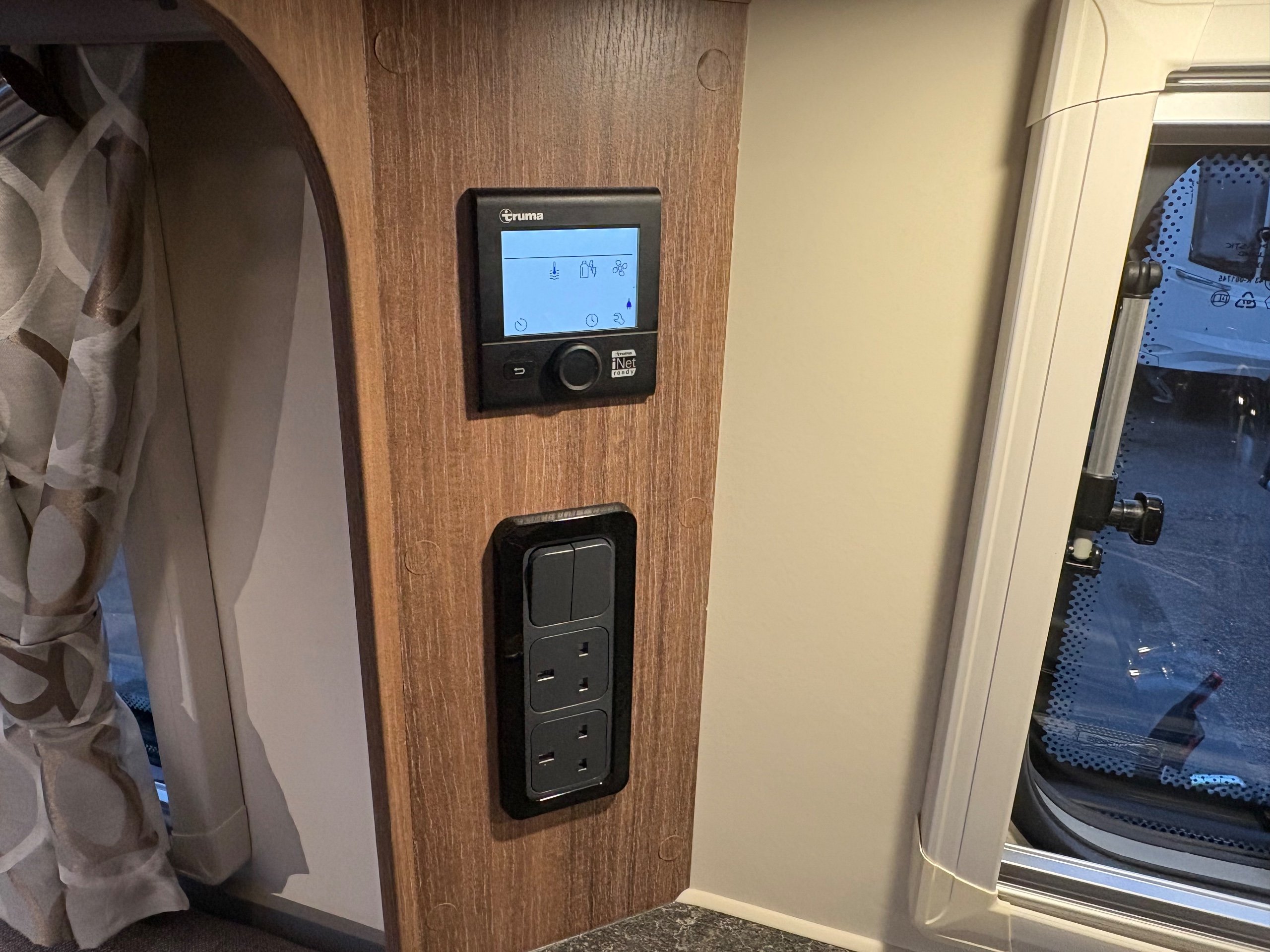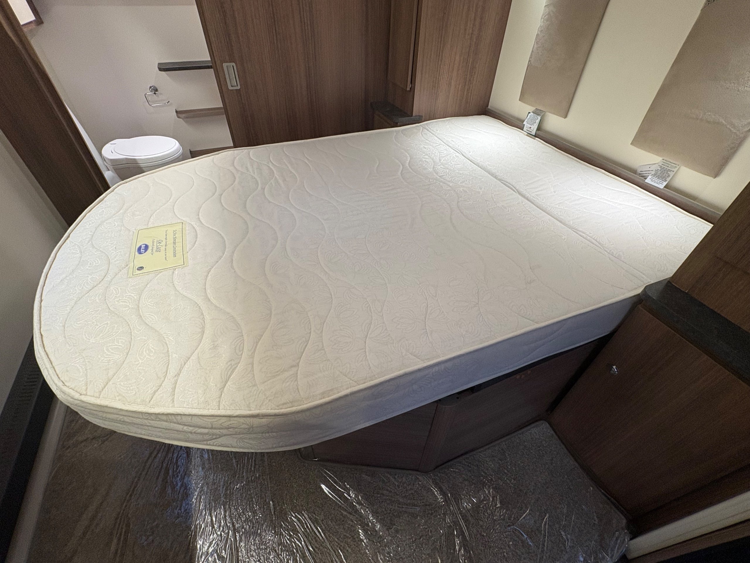 Year: 2020, Berth: 4, Internal length: 5.90m / 19'4", External length: 7.38m / 24'2", Width: 2.45m / 8', Unladen weight: 1350kg, MTPLM: 1499kg, Awning size: 10.33m, Warranty: 12 months. The Brindisi provides plenty of living space through its eight foot wide bodyshell, This is very noticeable where in conjunction with the G shaped front lounge, it provides lots of room for numerous people to sit together around a table, or just to chill out and watch the world go by. The transverse double bed slides back during the day to improve access to the rear washroom during the day, and then extending to provide a double bed at night. The rear washroom has a roomy corner shower, and enough space to use as a dressing room should you wish to. This model also comes with a caravan mover to assist in positioning the caravan. -