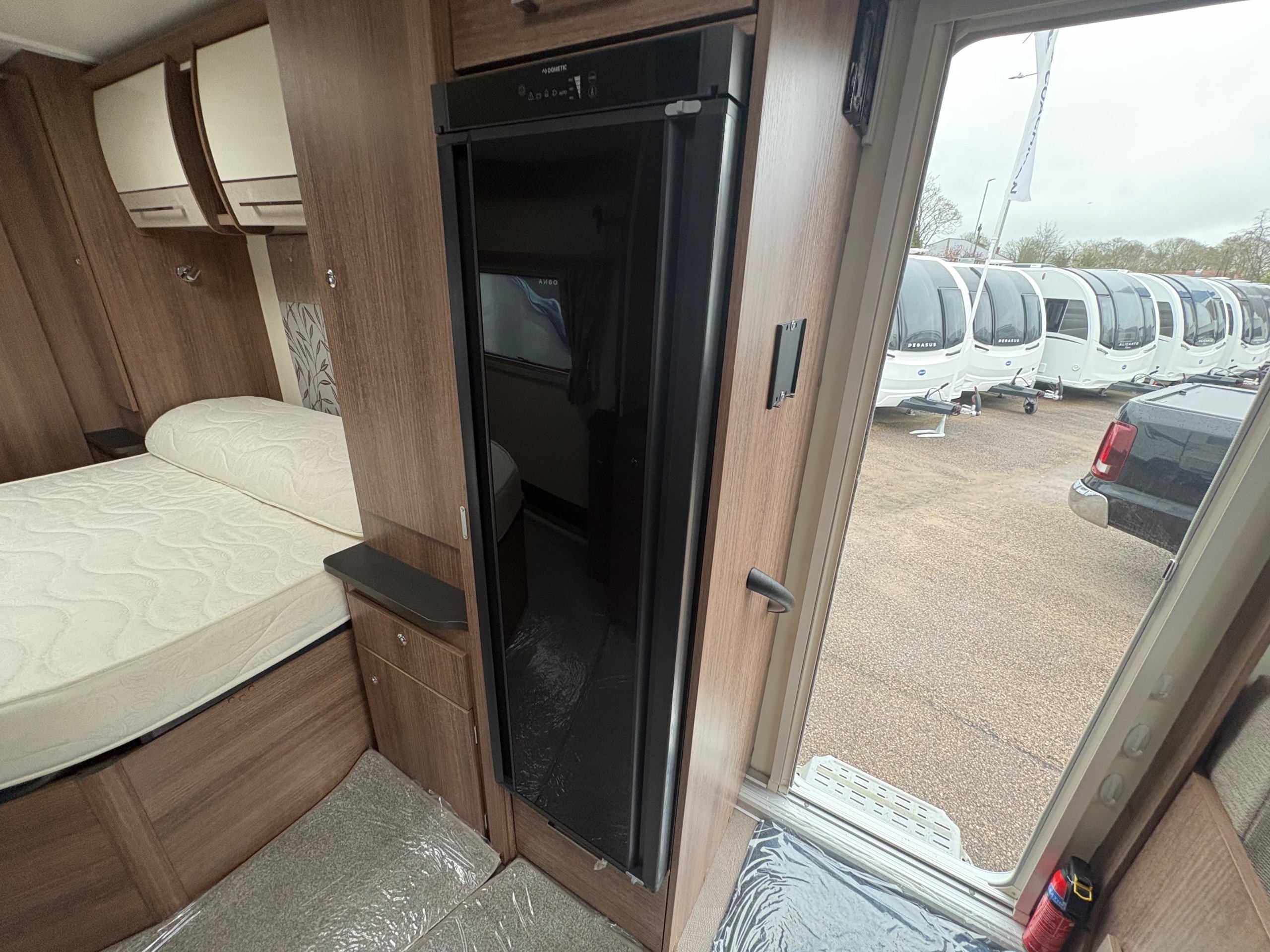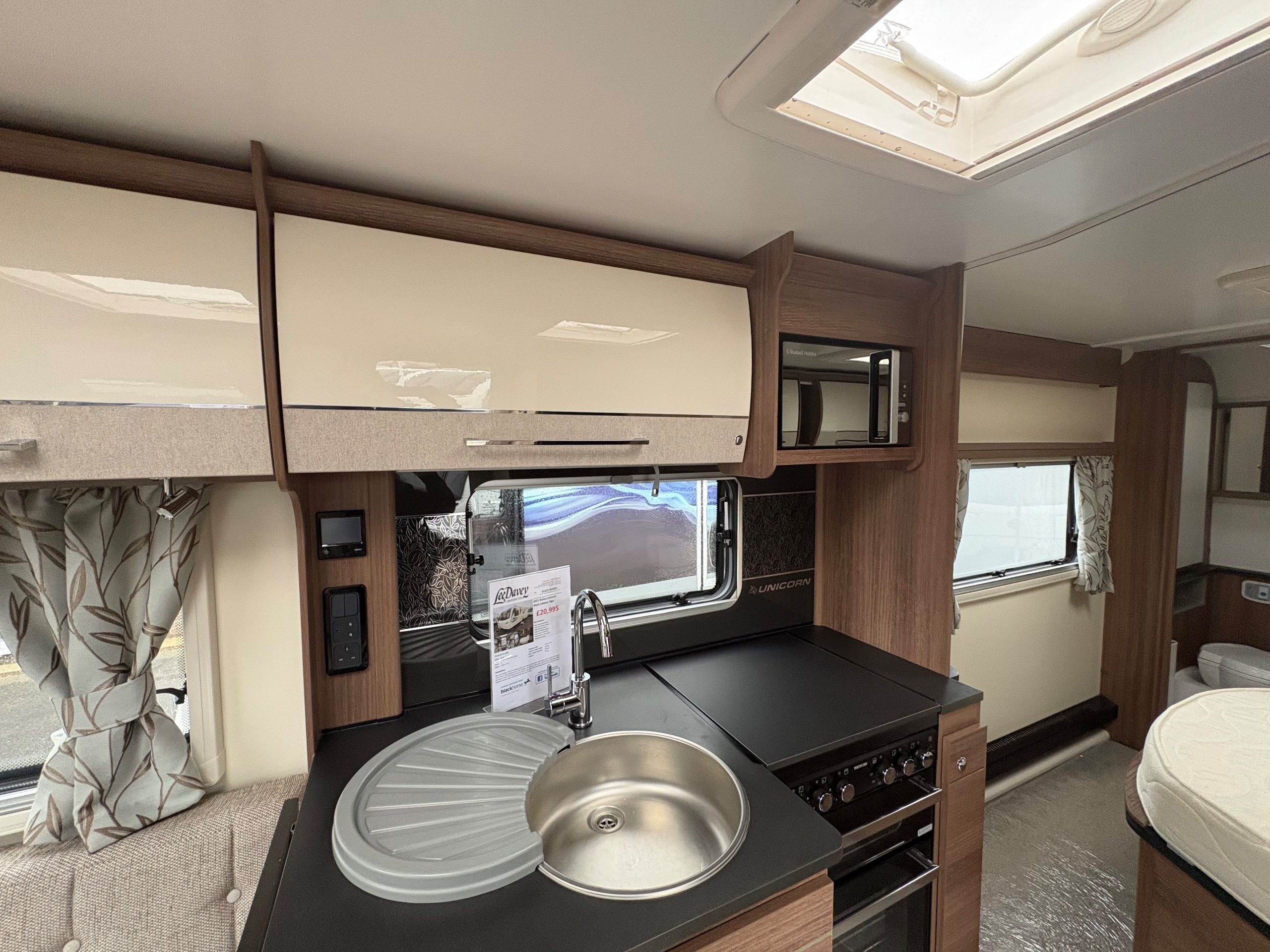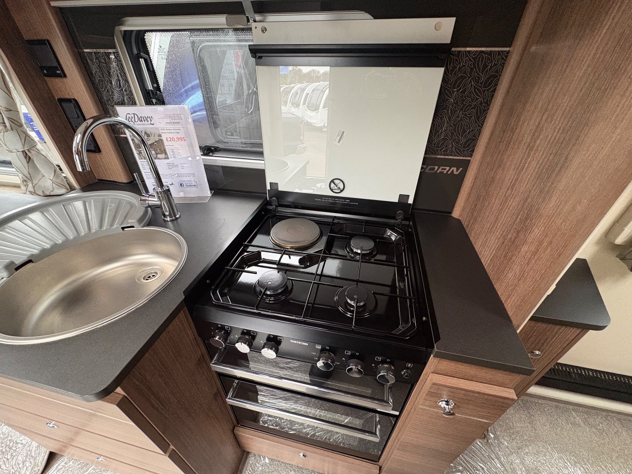 Year: 2021, Berth: 4, Internal length: 5.83m / 19'1", External length: 7.36m / 24'1", Width: 2.28m / 7'5", Unladen weight: 1344kg, MTPLM: 1499kg, Awning size: 10.27m, Warranty: 12 months. The Unicorn Black Vigo features a transverse bed with a rear washroom. Being from the Unicorn range it comes with a high level of specification, such as alde heating, alko atc braking and wheel lock, dual fuel hob, solar panel, DAB radio, external gas and mains points to name but a few. This model also comes with a Powrtouch Evolution caravan mover to it, to make moving the caravan around even easier. This caravan makes a great two berth caravan, however the front will convert into a double bed if needed. -