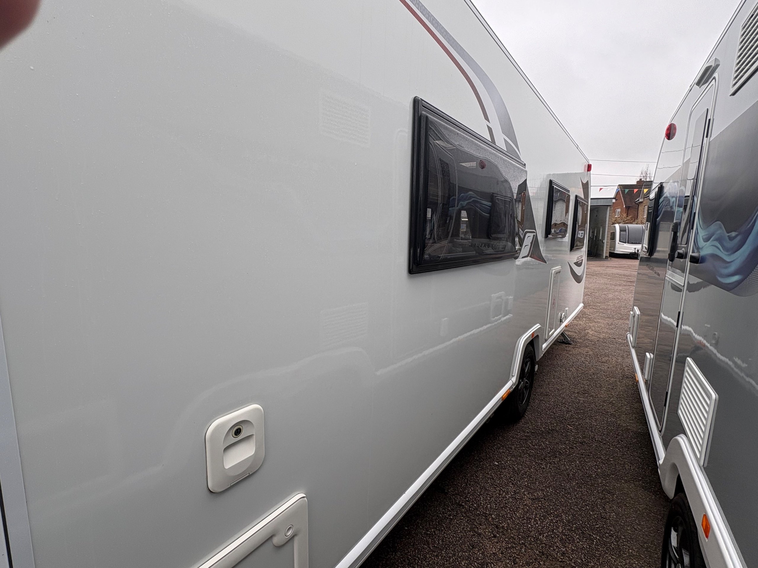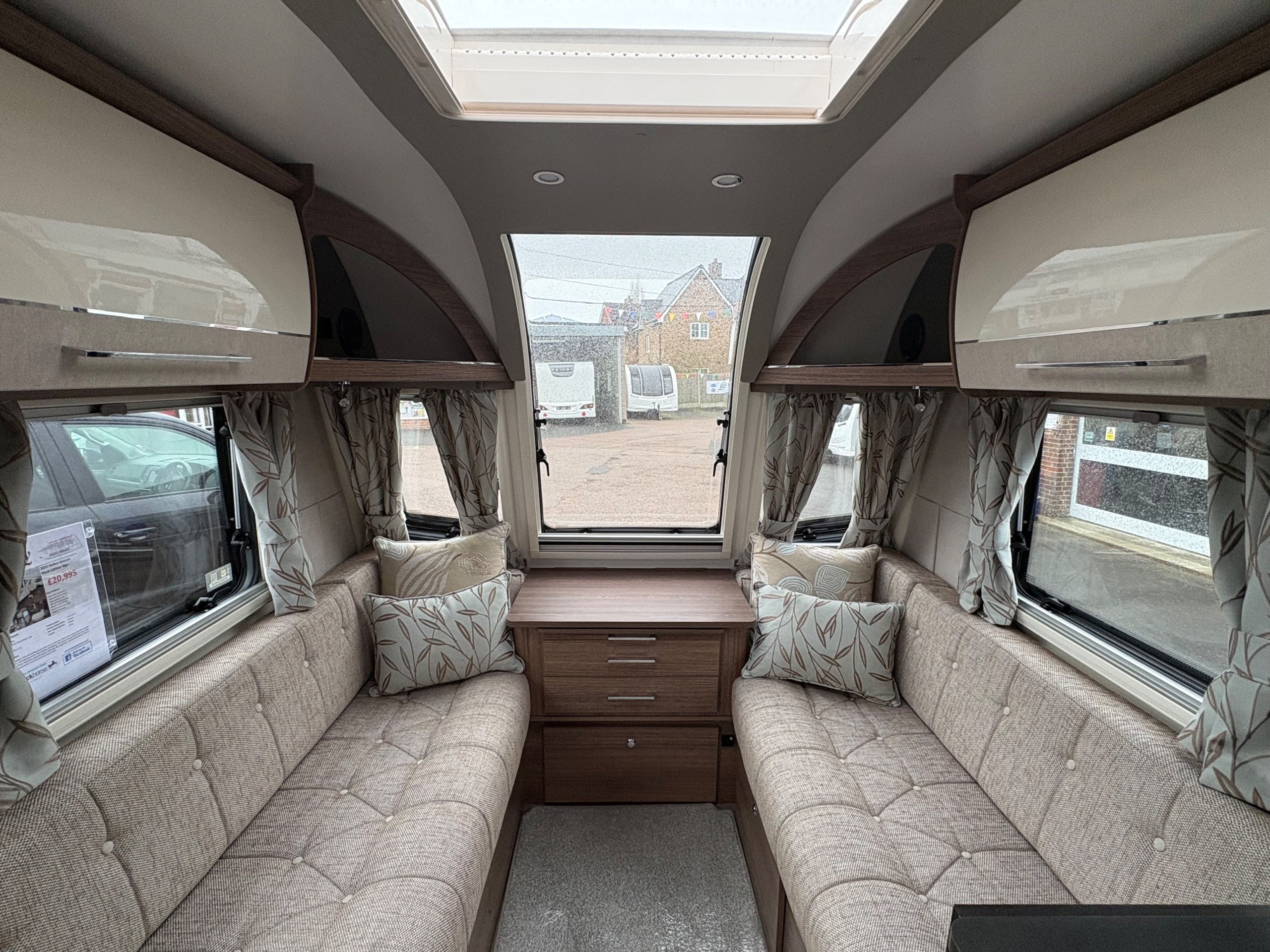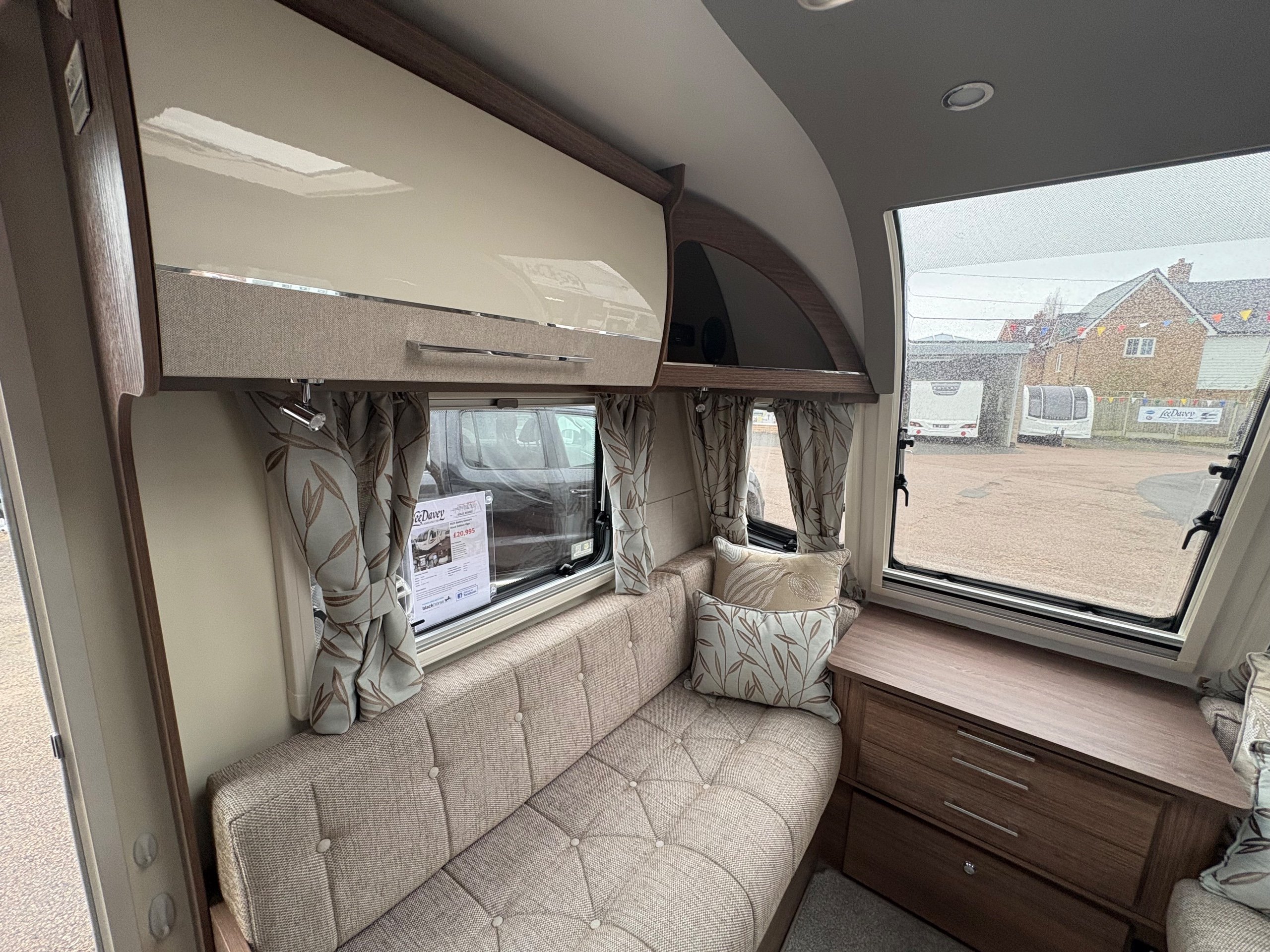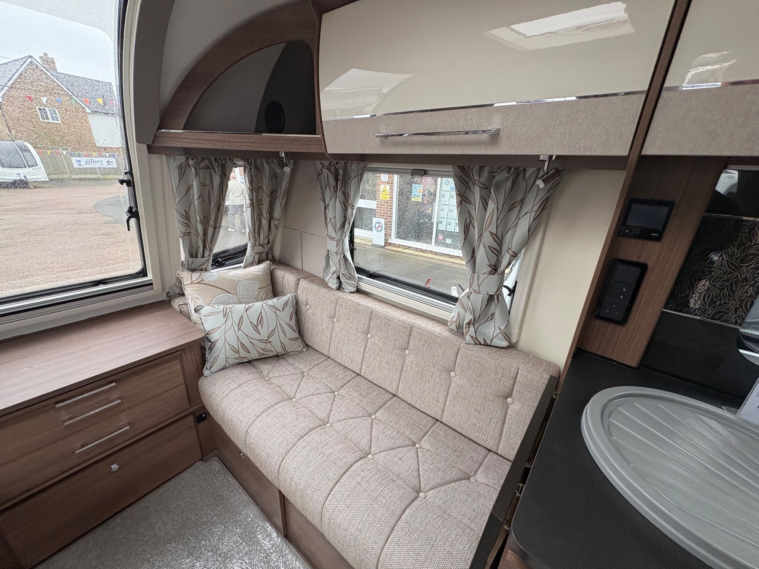 Year: 2021, Berth: 4, Internal length: 5.83m / 19'1", External length: 7.36m / 24'1", Width: 2.28m / 7'5", Unladen weight: 1344kg, MTPLM: 1499kg, Awning size: 10.27m, Warranty: 12 months. The Unicorn Black Vigo features a transverse bed with a rear washroom. Being from the Unicorn range it comes with a high level of specification, such as alde heating, alko atc braking and wheel lock, dual fuel hob, solar panel, DAB radio, external gas and mains points to name but a few. This model also comes with a Powrtouch Evolution caravan mover to it, to make moving the caravan around even easier. This caravan makes a great two berth caravan, however the front will convert into a double bed if needed. -