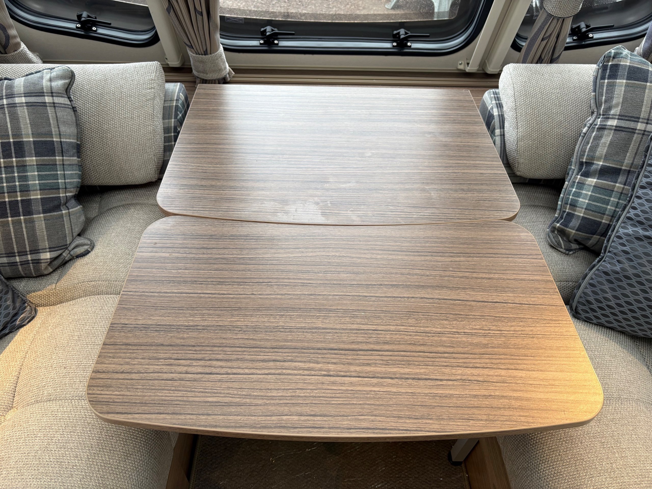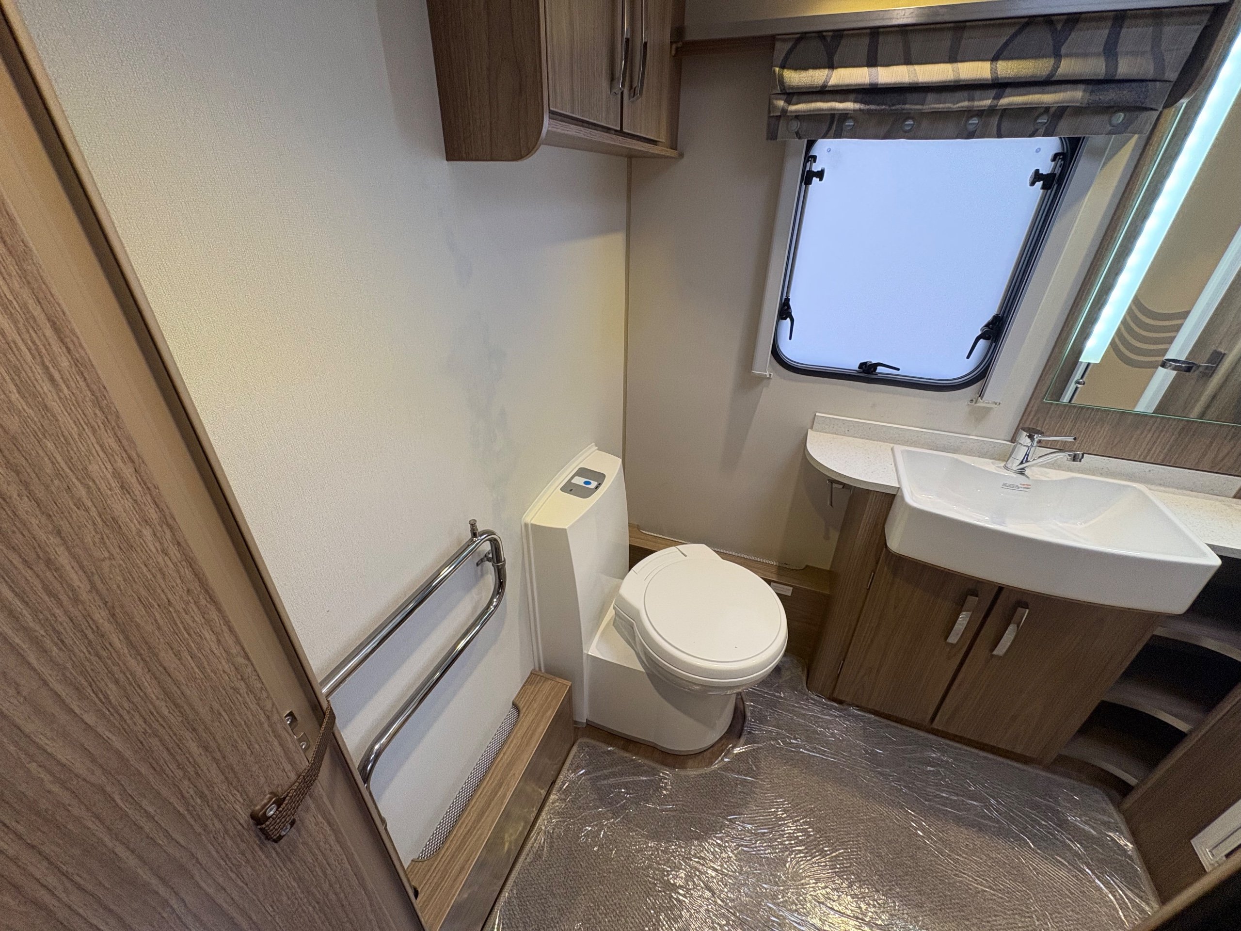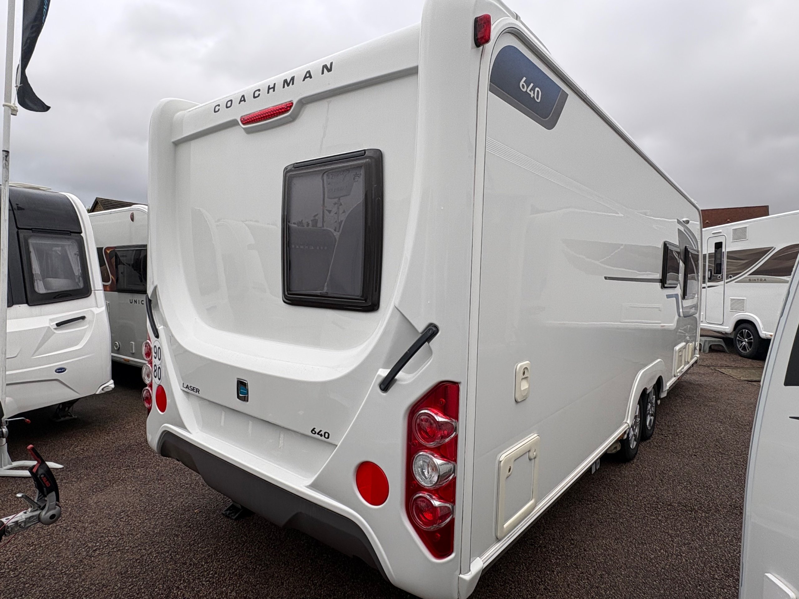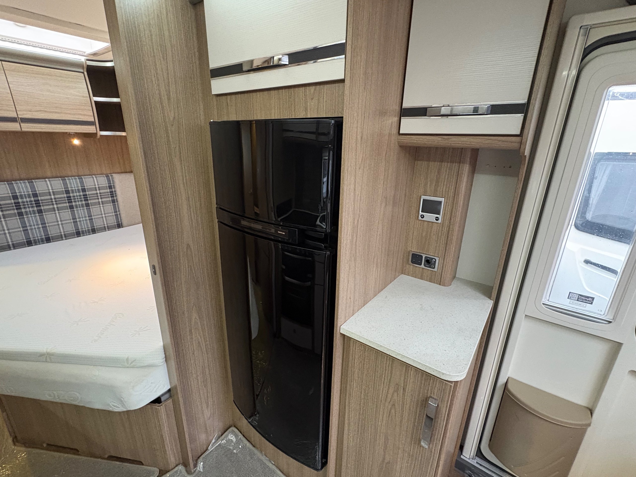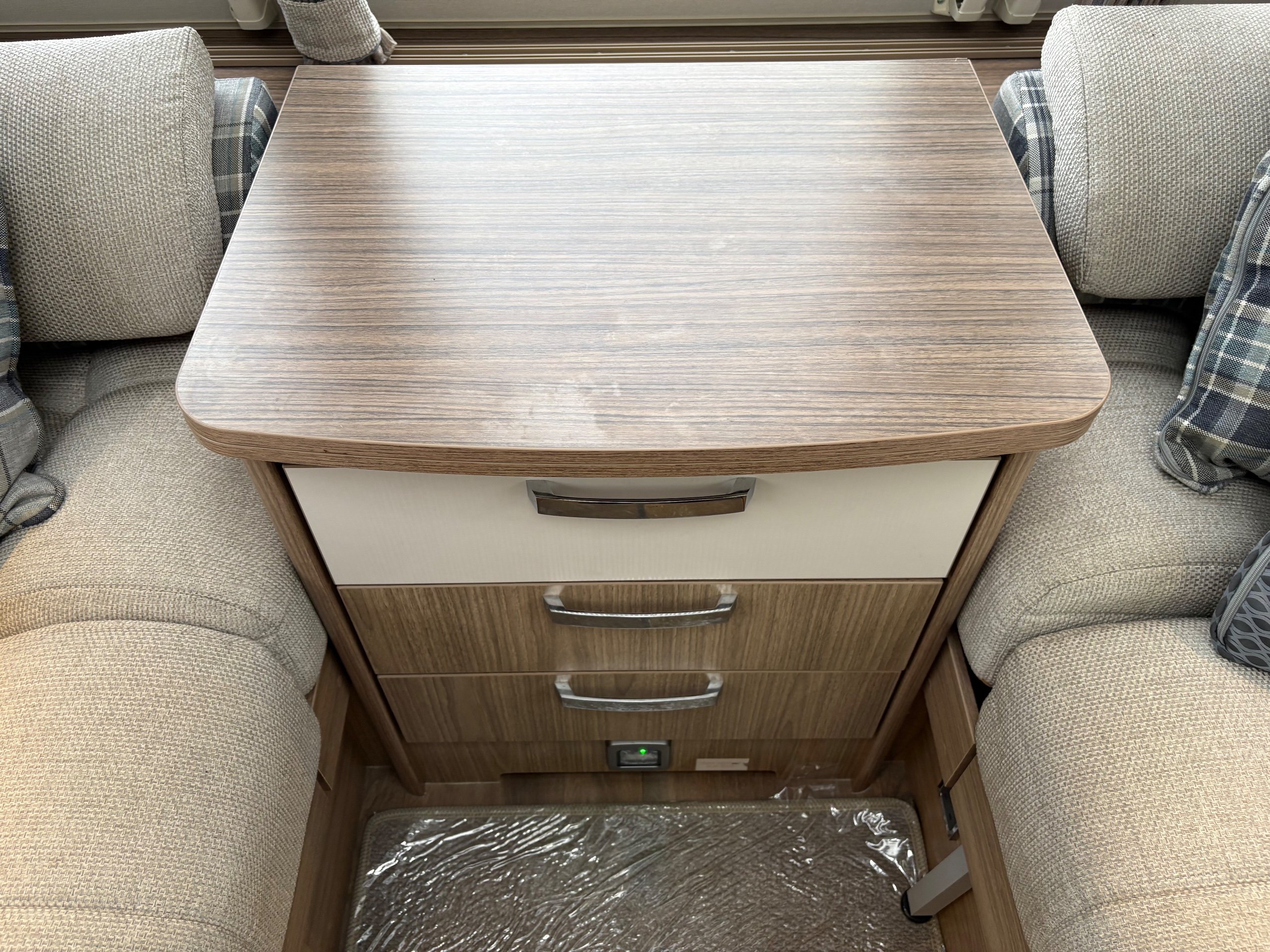 Year: 2916, Berth: 4, Internal length: 6.22m / 20'5", External length: 7.87m / 25'10", Width: 2.32m / 7'7", Unladen weight: 1642kg, MTPLM: 1800kg, Awning size: 10.70m, Warranty: 6 months. The Laser 640 is a twin axle caravan, featuring a fixed near side double bed and an end washroom. This top of the range has many features such as alde heating, external gas and mains points, alarms, wheel locks etc, and also featuring a powered caravan mover to help to position the caravan. Being four berth it has a lot of storage space inside the caravan as well as under the double bed, which can accessed via an external door for convenience. This model also features a generous payload, perfect for those longer trips as a couple or with the family. -
