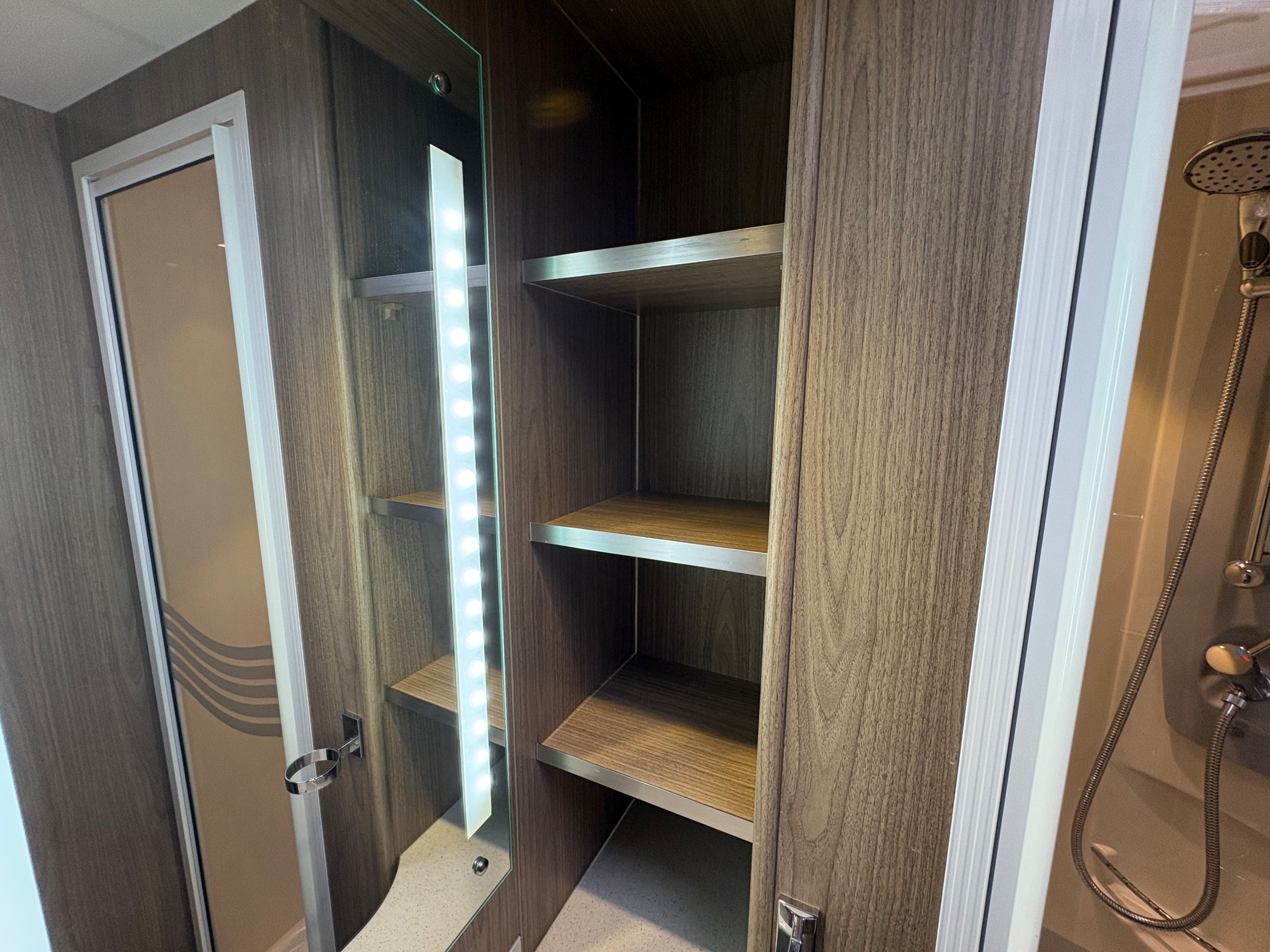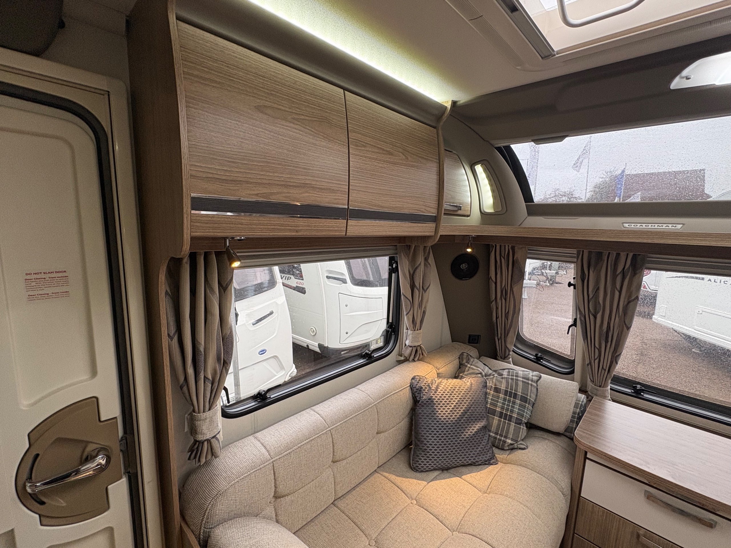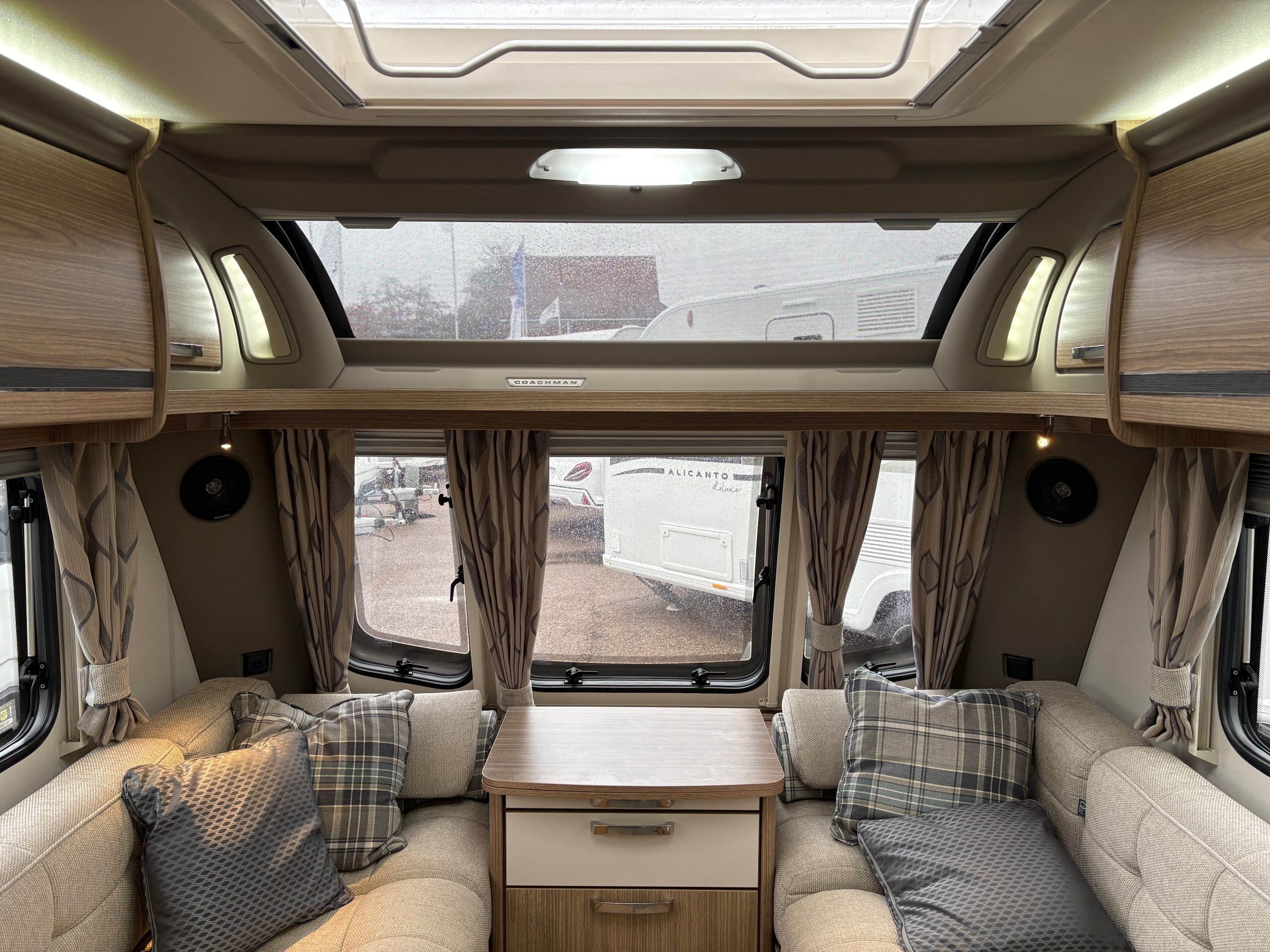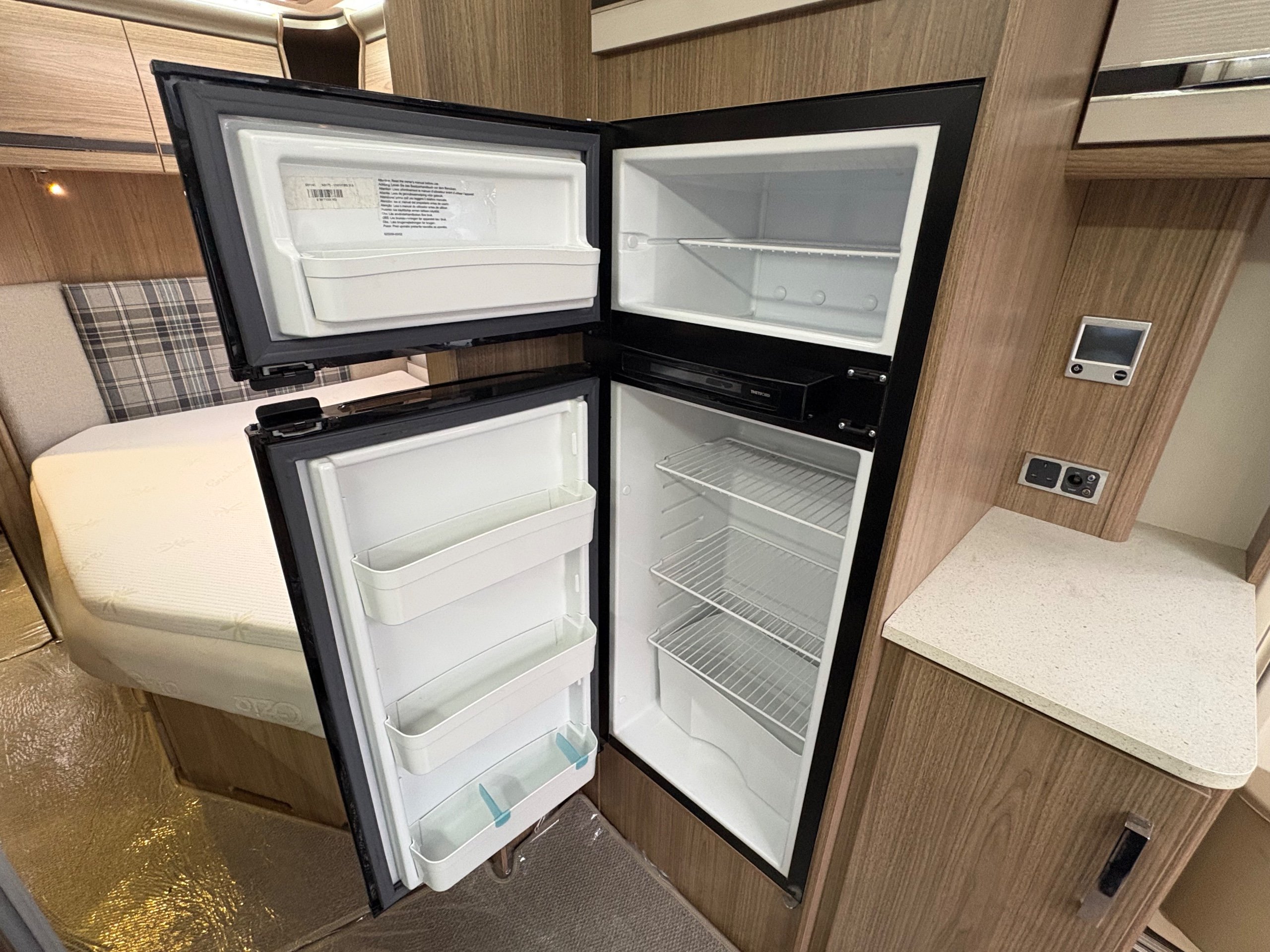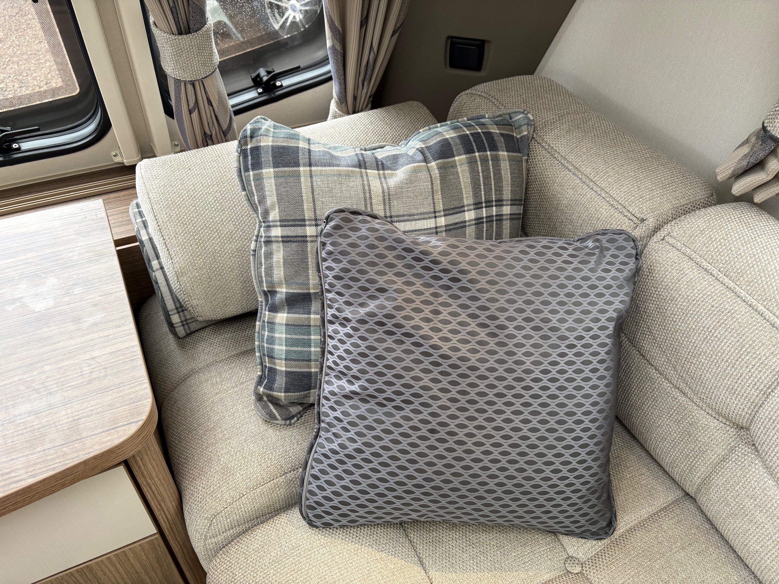 Year: 2916, Berth: 4, Internal length: 6.22m / 20'5", External length: 7.87m / 25'10", Width: 2.32m / 7'7", Unladen weight: 1642kg, MTPLM: 1800kg, Awning size: 10.70m, Warranty: 6 months. The Laser 640 is a twin axle caravan, featuring a fixed near side double bed and an end washroom. This top of the range has many features such as alde heating, external gas and mains points, alarms, wheel locks etc, and also featuring a powered caravan mover to help to position the caravan. Being four berth it has a lot of storage space inside the caravan as well as under the double bed, which can accessed via an external door for convenience. This model also features a generous payload, perfect for those longer trips as a couple or with the family. -