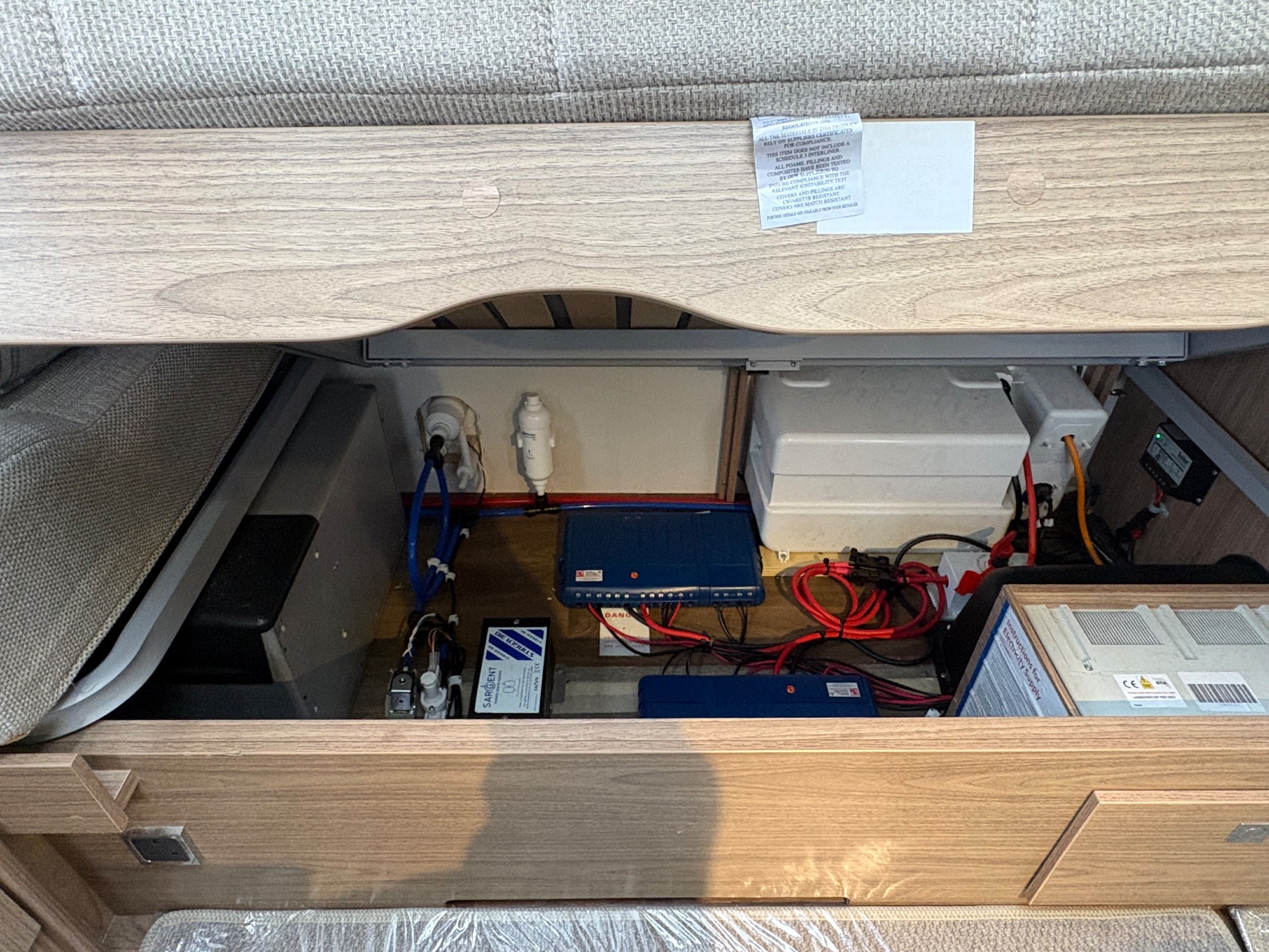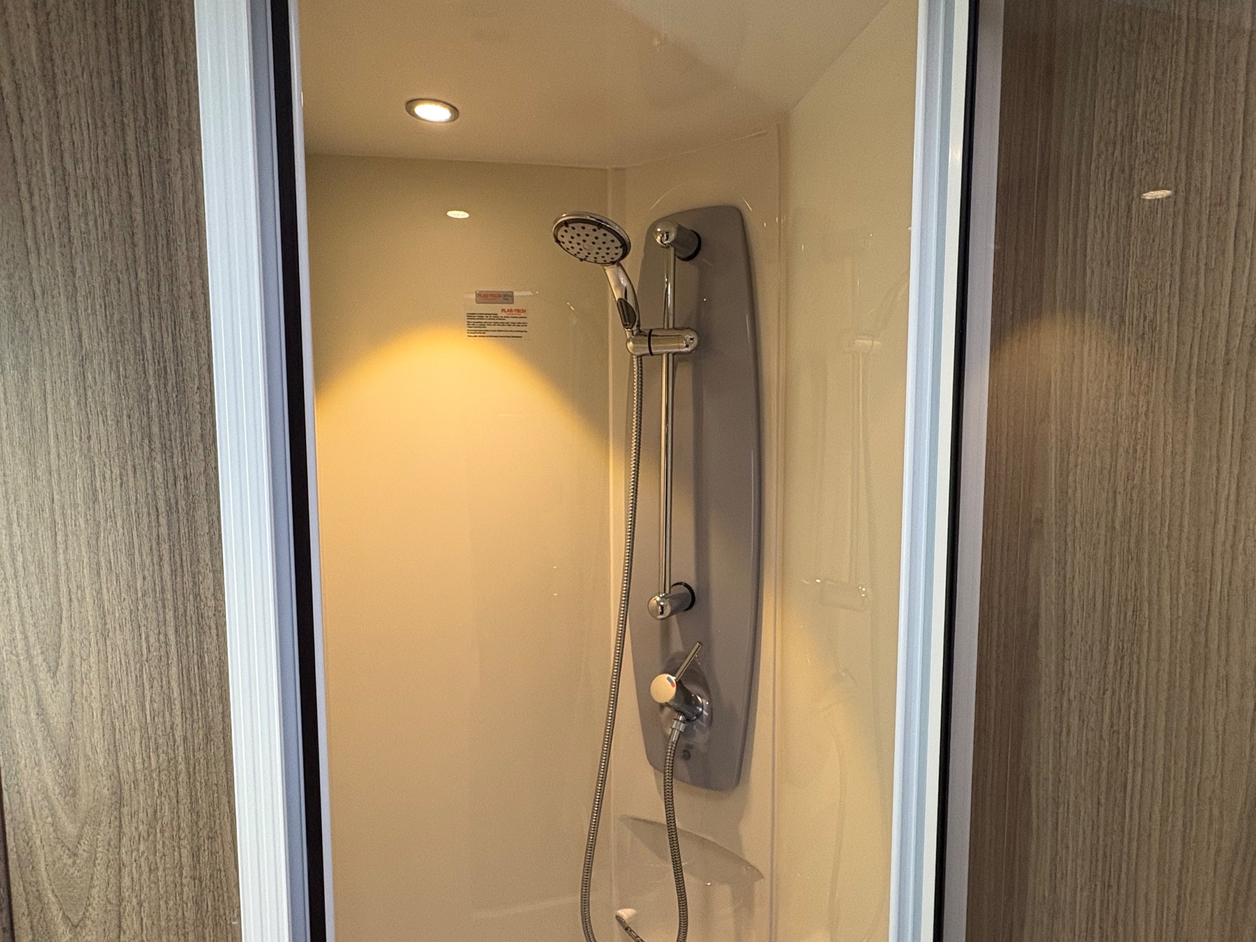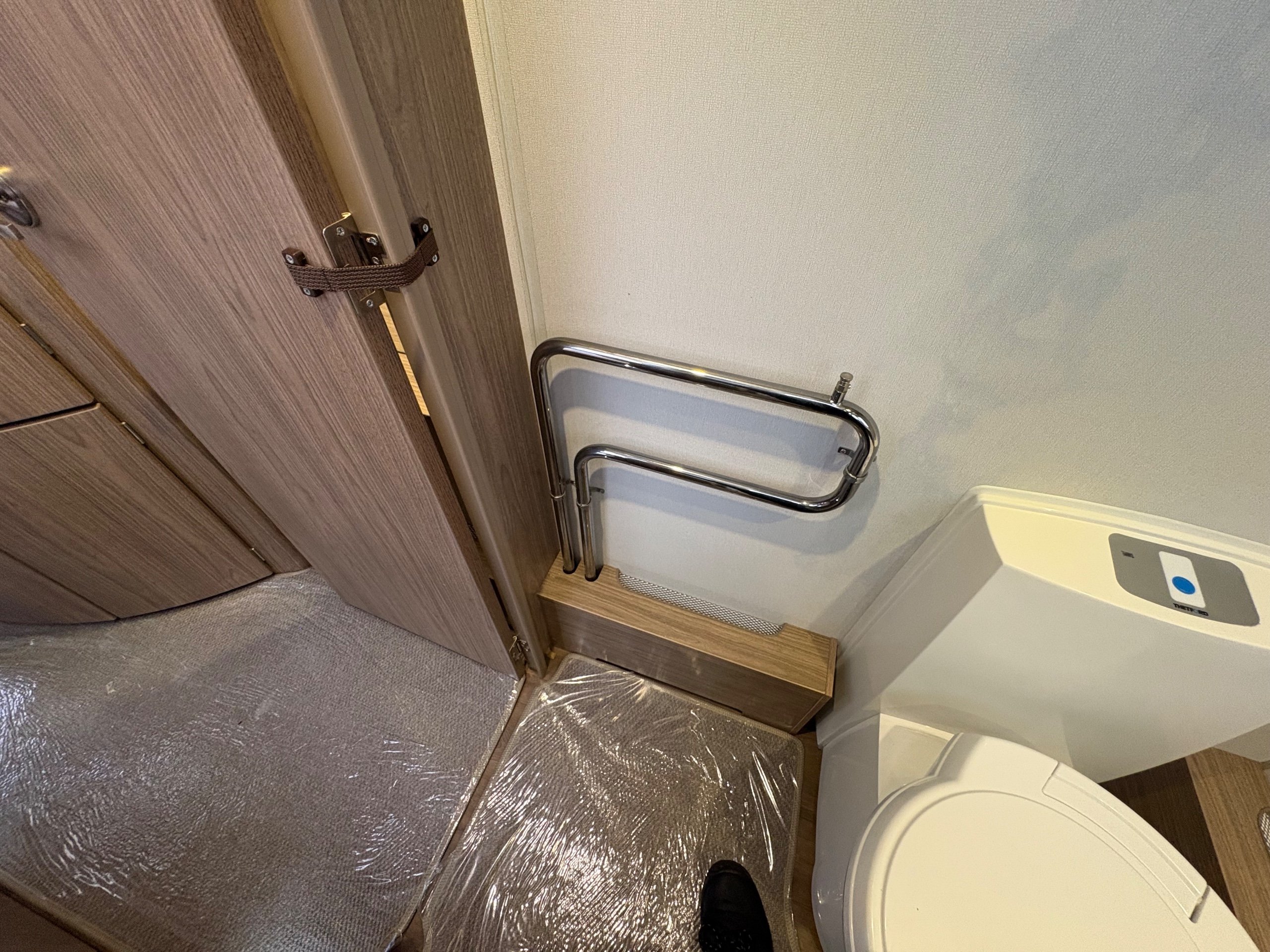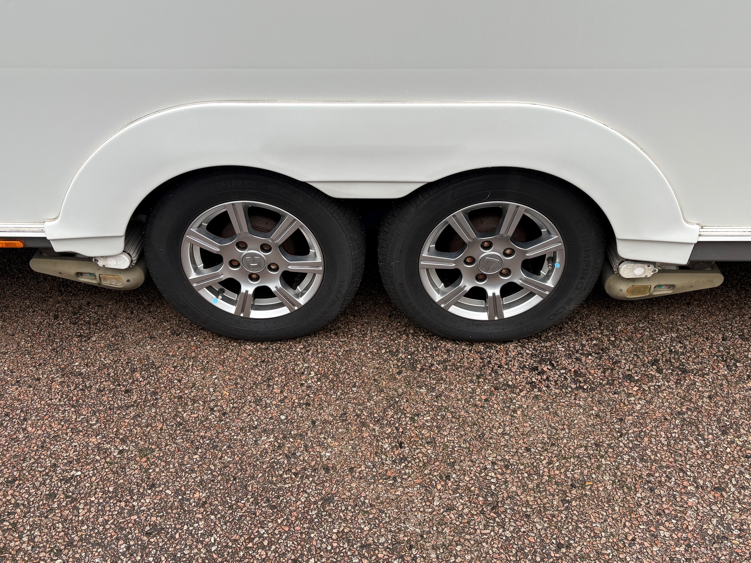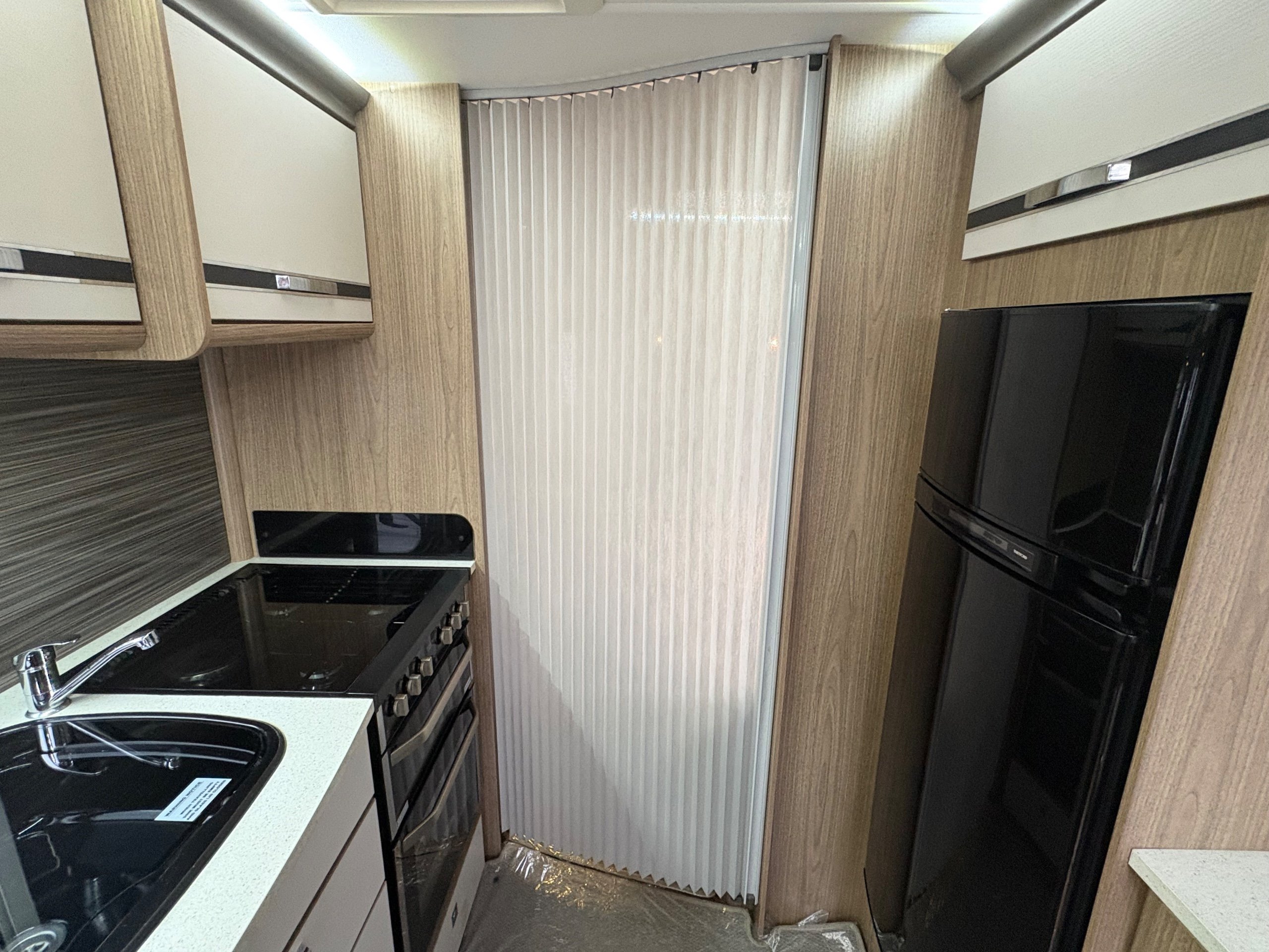 Year: 2916, Berth: 4, Internal length: 6.22m / 20'5", External length: 7.87m / 25'10", Width: 2.32m / 7'7", Unladen weight: 1642kg, MTPLM: 1800kg, Awning size: 10.70m, Warranty: 6 months. The Laser 640 is a twin axle caravan, featuring a fixed near side double bed and an end washroom. This top of the range has many features such as alde heating, external gas and mains points, alarms, wheel locks etc, and also featuring a powered caravan mover to help to position the caravan. Being four berth it has a lot of storage space inside the caravan as well as under the double bed, which can accessed via an external door for convenience. This model also features a generous payload, perfect for those longer trips as a couple or with the family. -