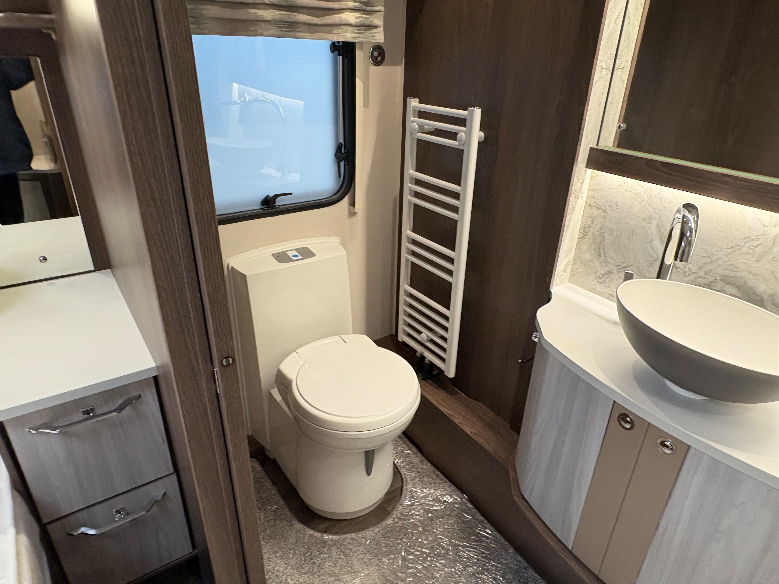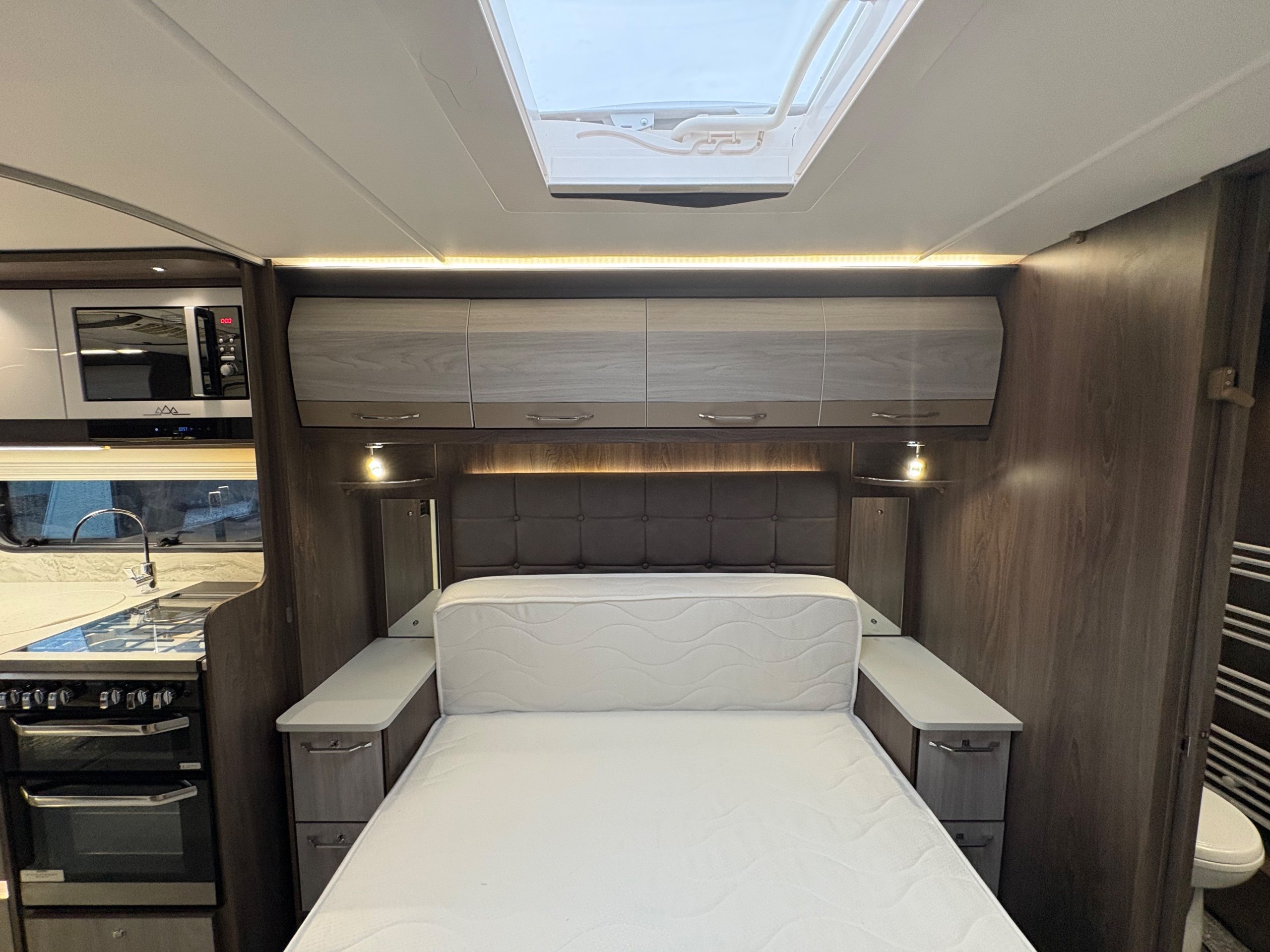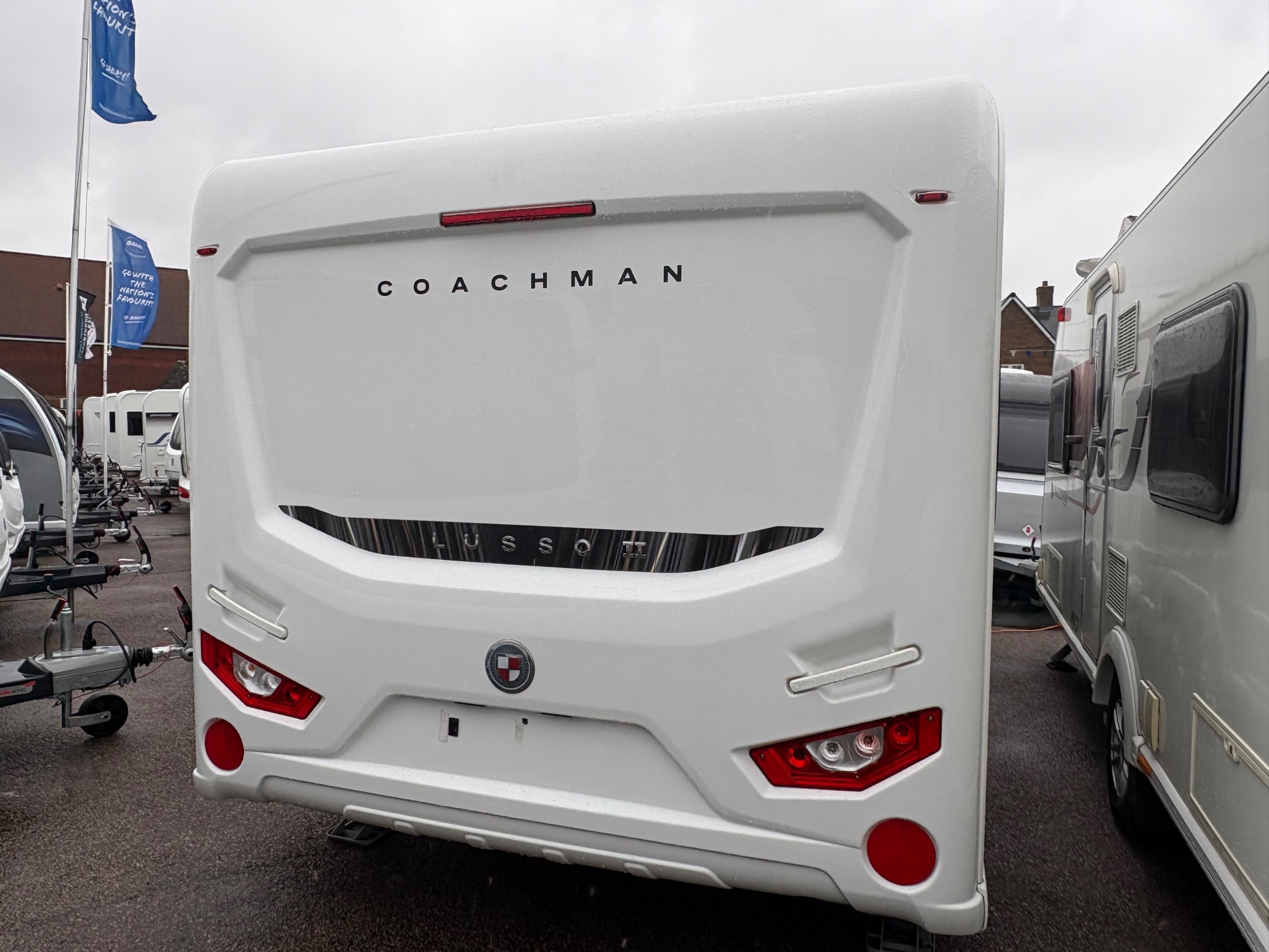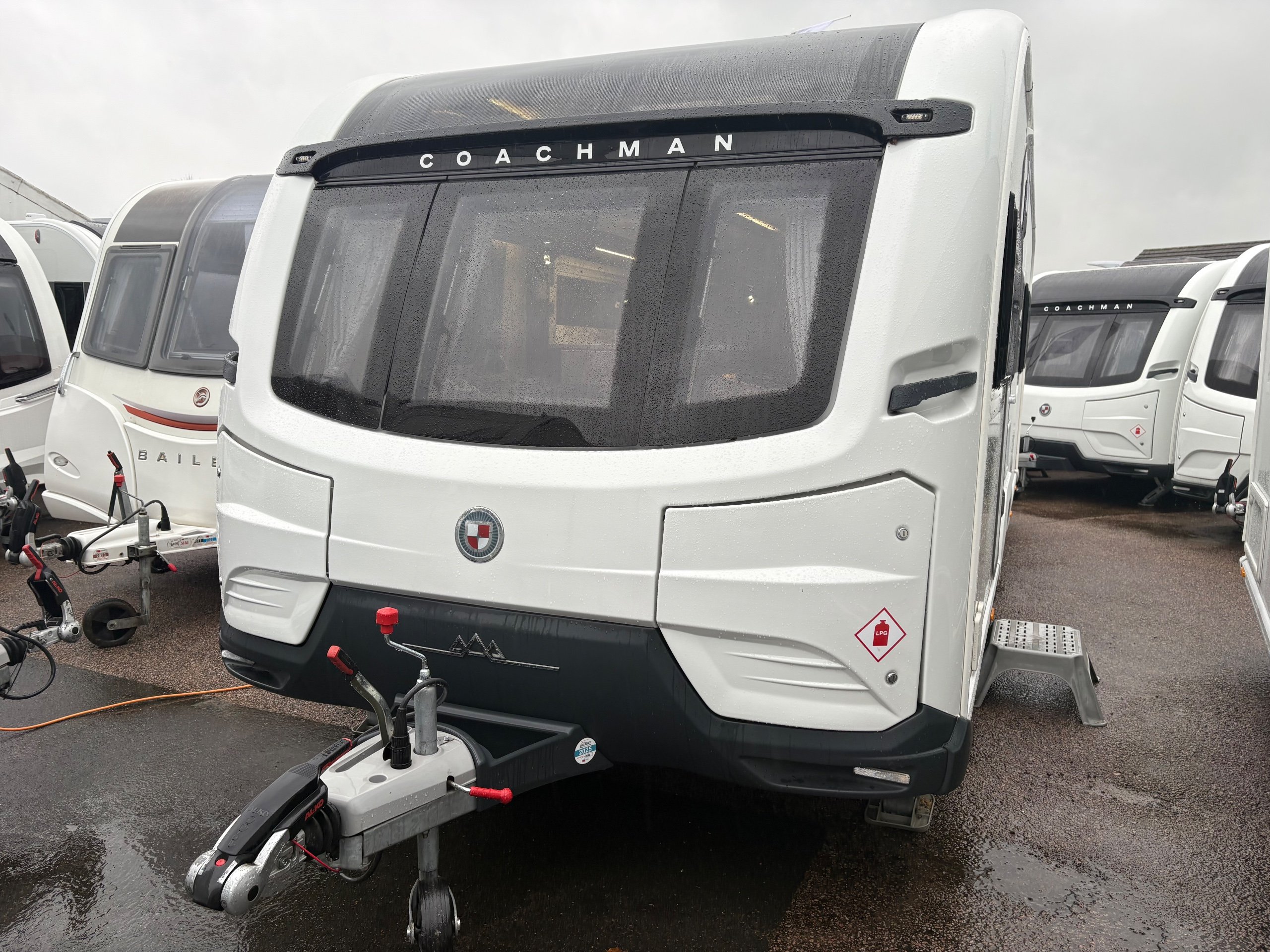 Year: 2023, Berth: 4, Internal length: 6.27m / 20/7", External length: 7.90m / 25'11", Width: 2.44m / 8', Unladen weight: 1800kg, MTPLM: 2000kg, Awning size: 10.85m, Warranty: 12 months. This caravan is the flagship of the Coachman range of caravans. It features a exceptionally high level of equipment such as alde heating with the alde flow system, E&P self levelling, wi-fi, air conditioning, roof mounted solar panel, USB sockets, on board fresh water tank to mention just a few, all fitted neatly within the eight foot wide bodyshell. Being a twin axle you get a generous payload, along with plenty of internal space. The rear washroom provides generous amounts of room, making this area perfect for being used as a dressing space. The front L shaped lounge provides lots of comfortable living space to relax in, but will also turn into a double bed if required. If you are looking for a luxurious caravan to use whenever you want come rain or shine, then this is the perfect caravan to use. -