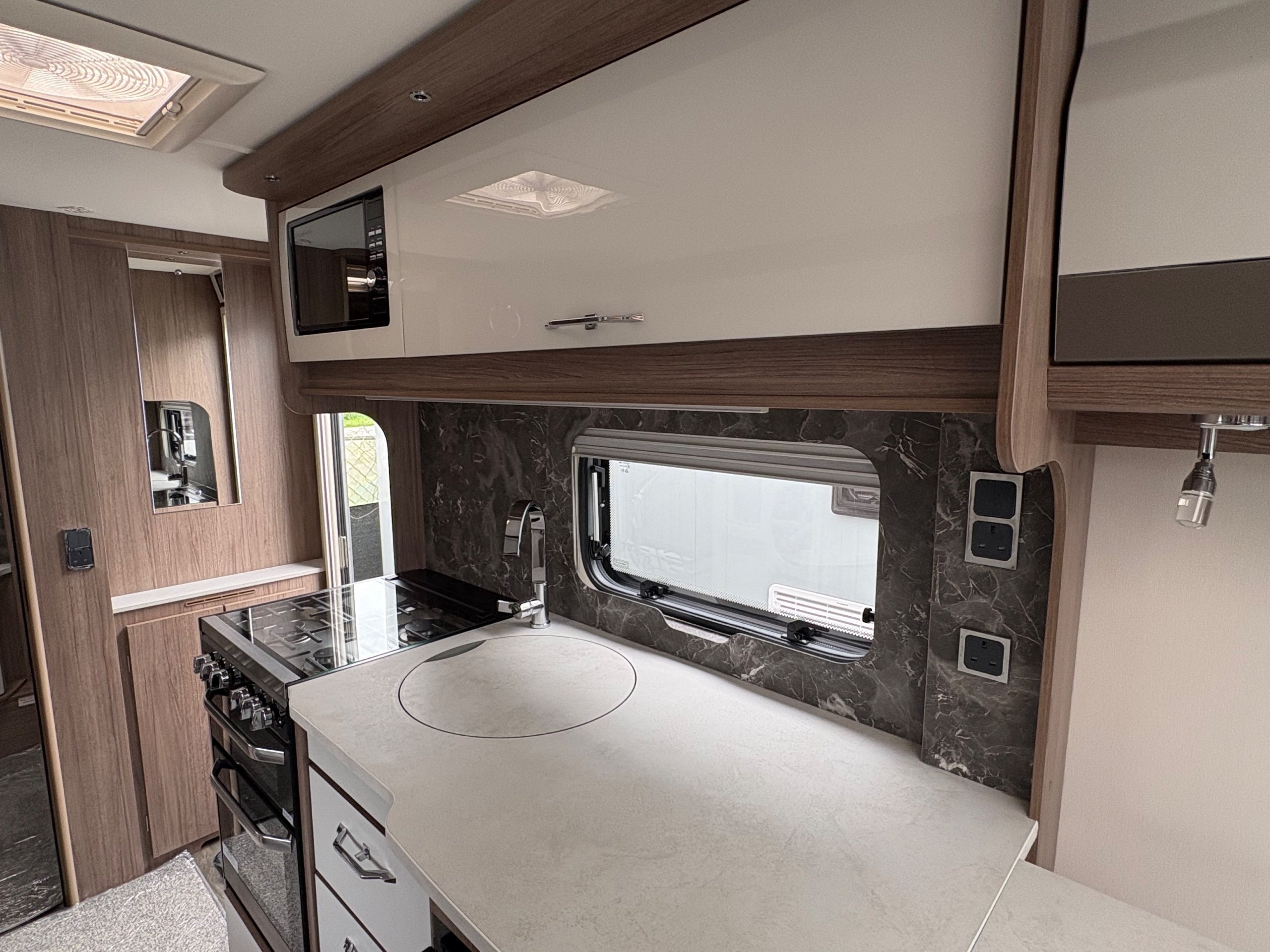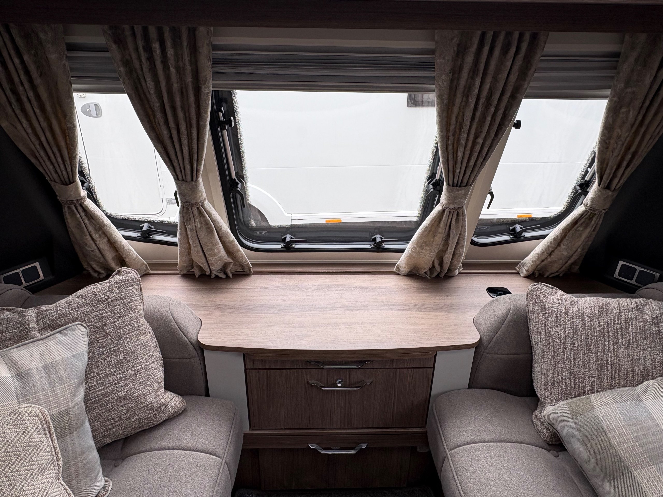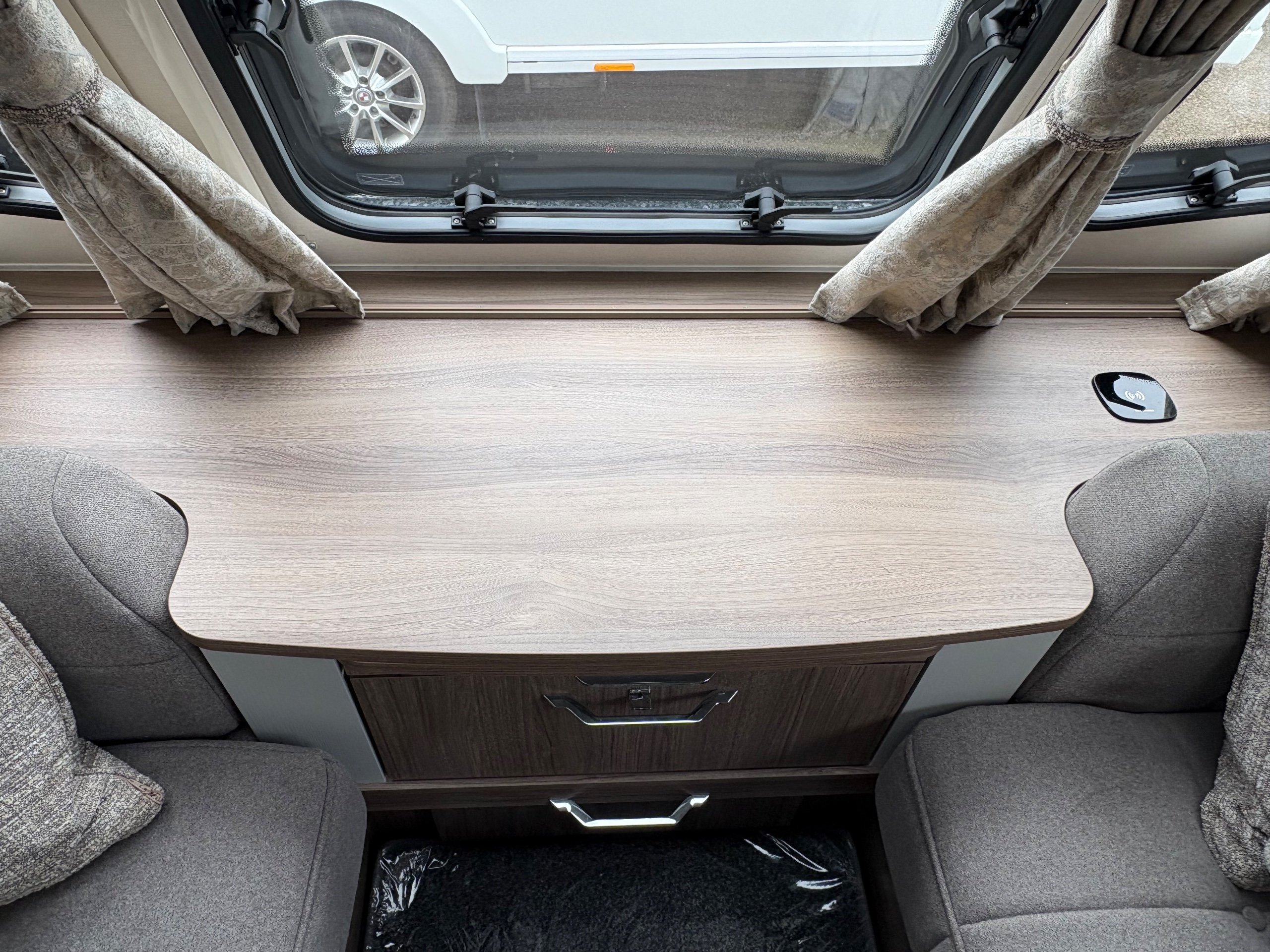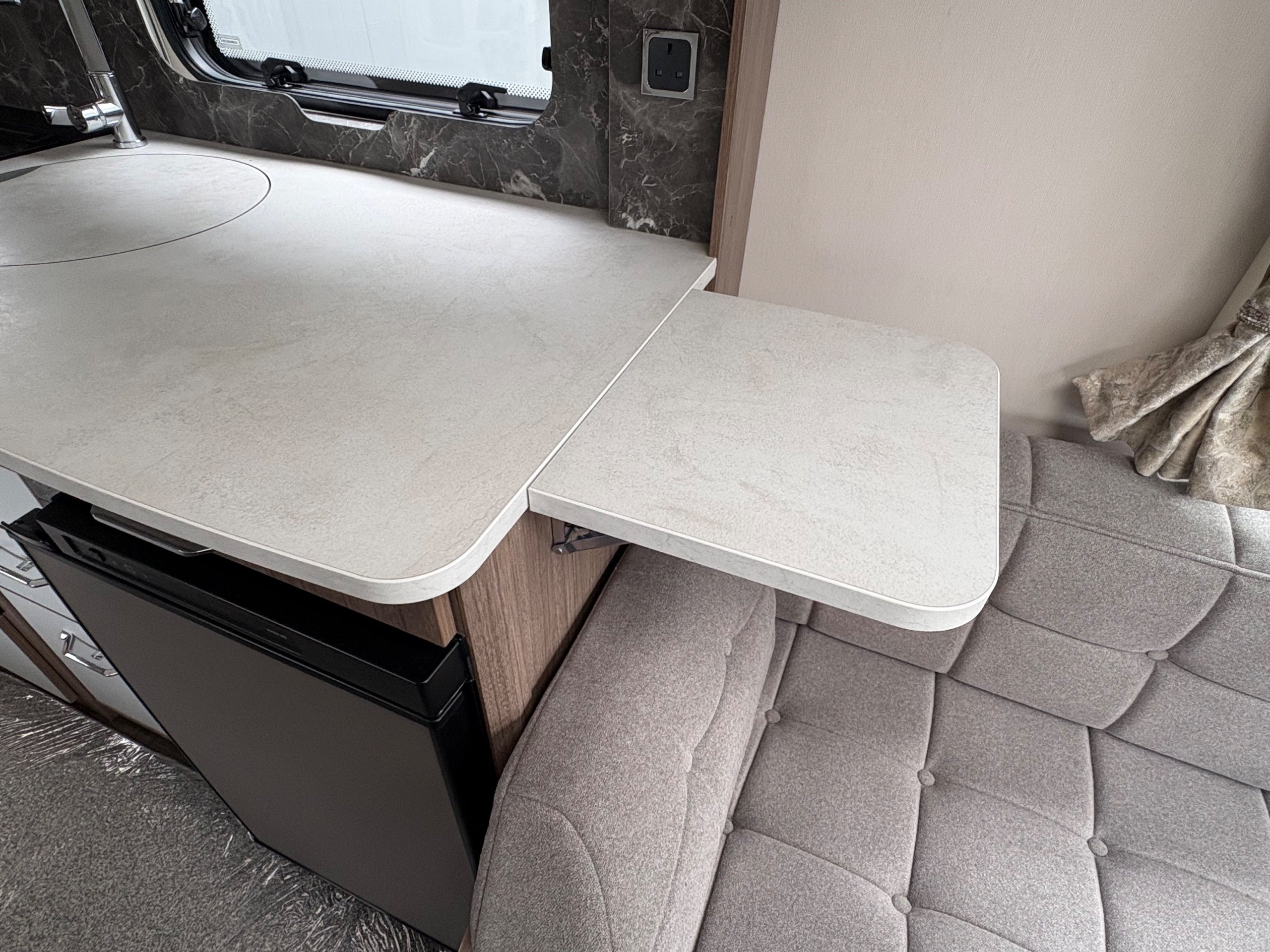 Year: 2024, Berth: 3, Internal length: 5.42m / 17'9", External length: 7.05m / 23'2", Width: 2.31m / 7'7", Unladen weight: 1403kg, MTPLM: 1545kg, Awning size: 9.90m, Warranty: 12 months. The Vip 520 provides lots of living space within its body length, with the flexibility of the side dinette providing a single bed or additional sitting / dining area. Shorter and therefore lighter than similar vans, the interior has a very bright airy feel , due to the many windows fitted to this model. The kitchen provides a generous amount or work surface, perfect for those who like to cook while away. The rear washroom features a separate shower cubicle and space suitable for drying off after a shower or for dressing. Being a VIOP model there is a good level of specification from alde heating, external gas and mains points, alko atc and wheel lock, to name just a few of the standard items. This model is perfect for a couple who are looking for something other than a fixed bed caravan, providing lots of usable space. -