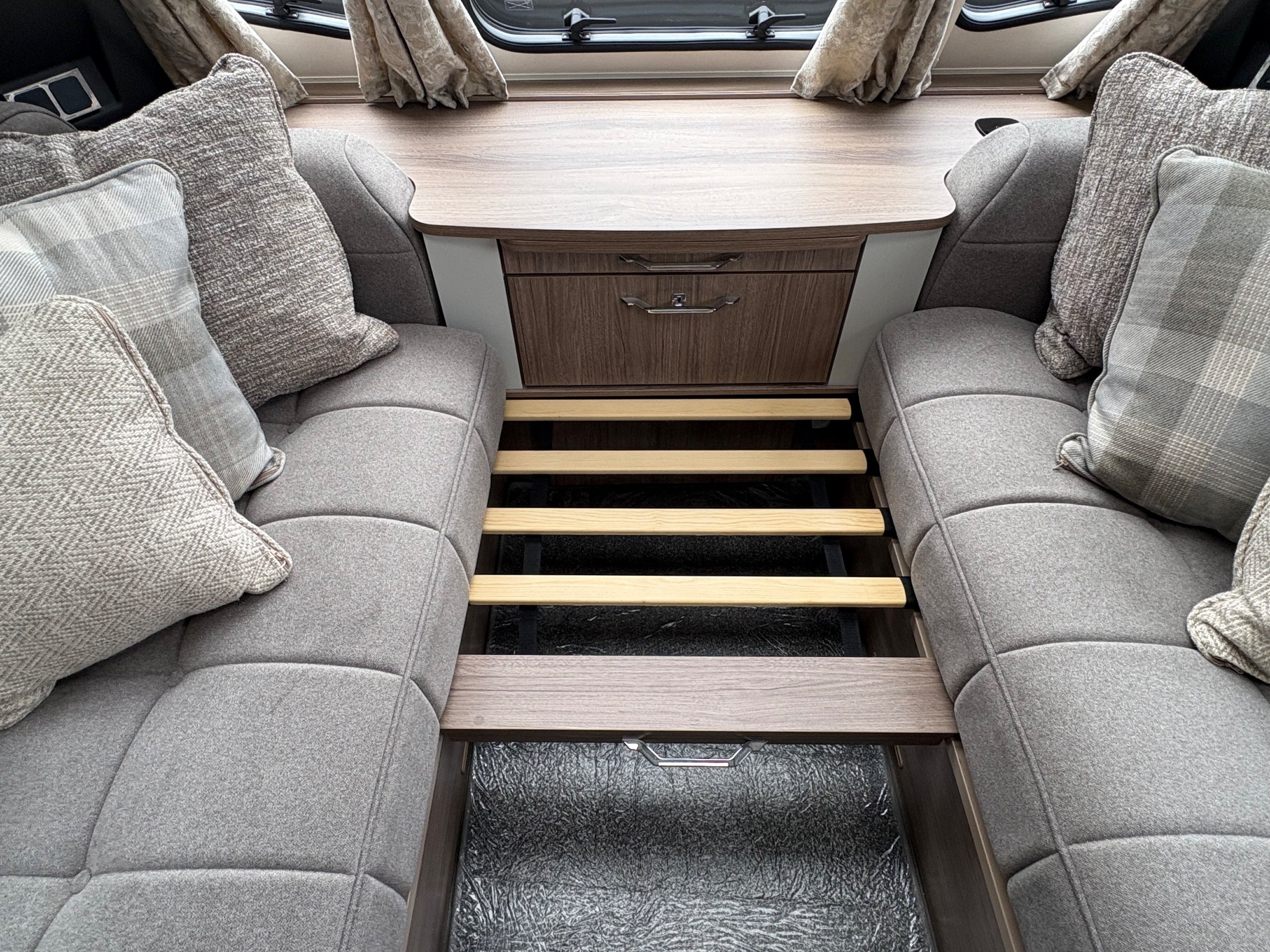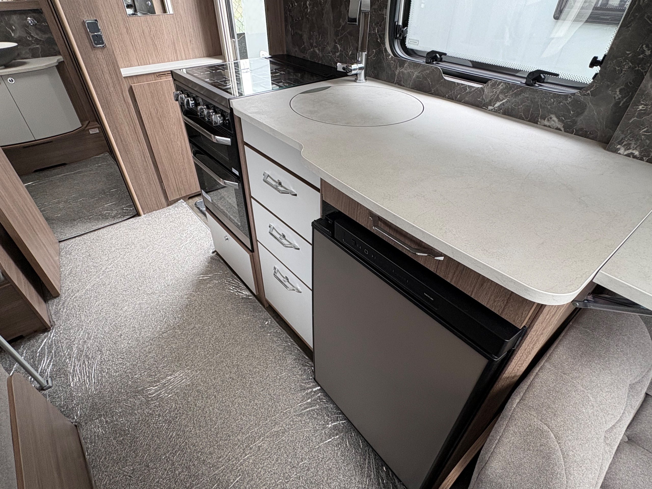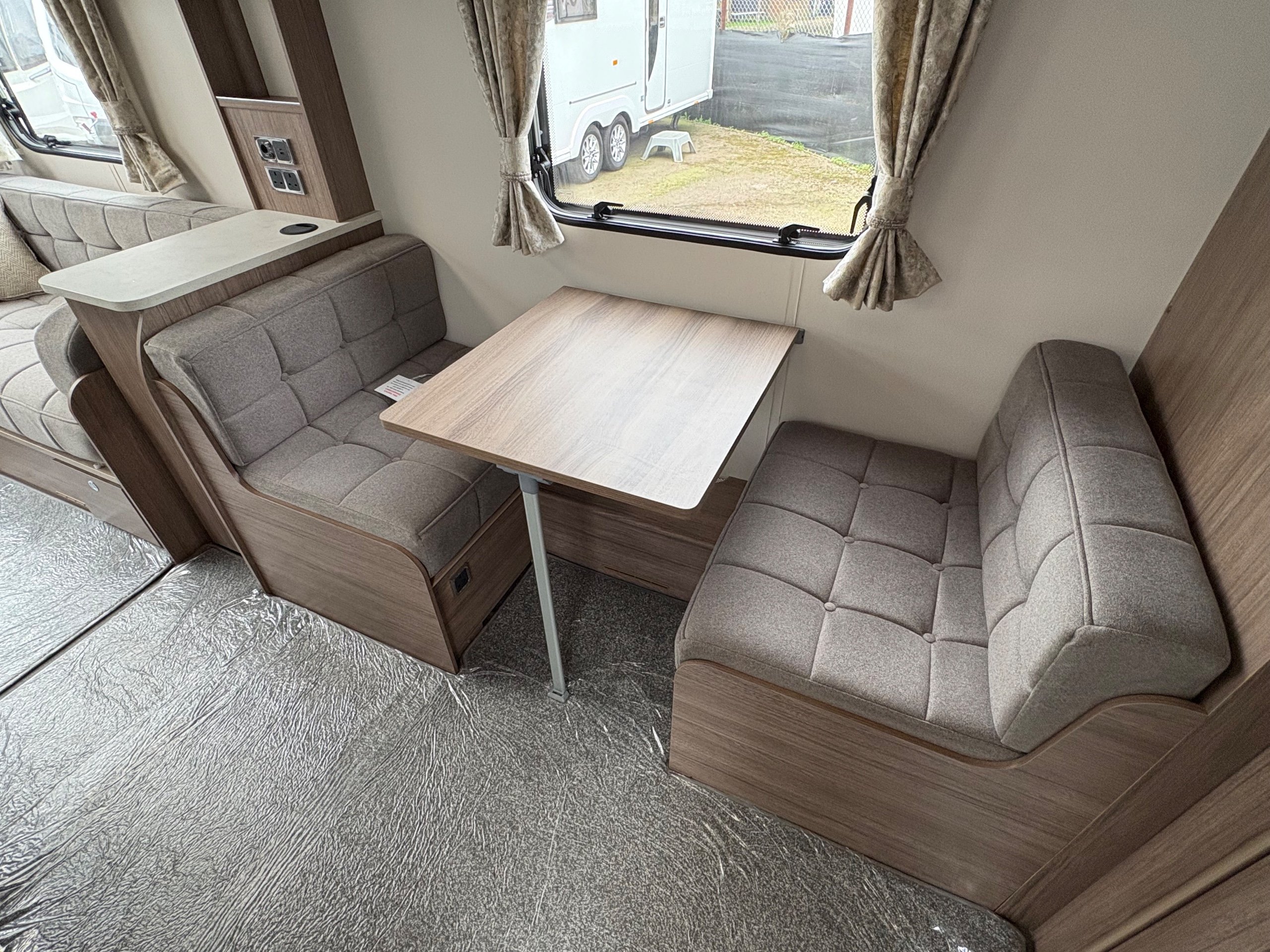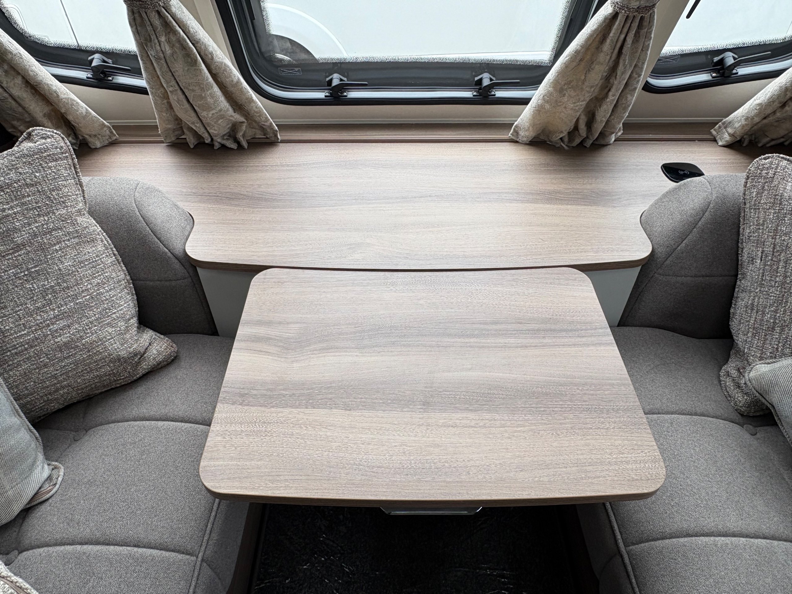 Year: 2024, Berth: 3, Internal length: 5.42m / 17'9", External length: 7.05m / 23'2", Width: 2.31m / 7'7", Unladen weight: 1403kg, MTPLM: 1545kg, Awning size: 9.90m, Warranty: 12 months. The Vip 520 provides lots of living space within its body length, with the flexibility of the side dinette providing a single bed or additional sitting / dining area. Shorter and therefore lighter than similar vans, the interior has a very bright airy feel , due to the many windows fitted to this model. The kitchen provides a generous amount or work surface, perfect for those who like to cook while away. The rear washroom features a separate shower cubicle and space suitable for drying off after a shower or for dressing. Being a VIOP model there is a good level of specification from alde heating, external gas and mains points, alko atc and wheel lock, to name just a few of the standard items. This model is perfect for a couple who are looking for something other than a fixed bed caravan, providing lots of usable space. -