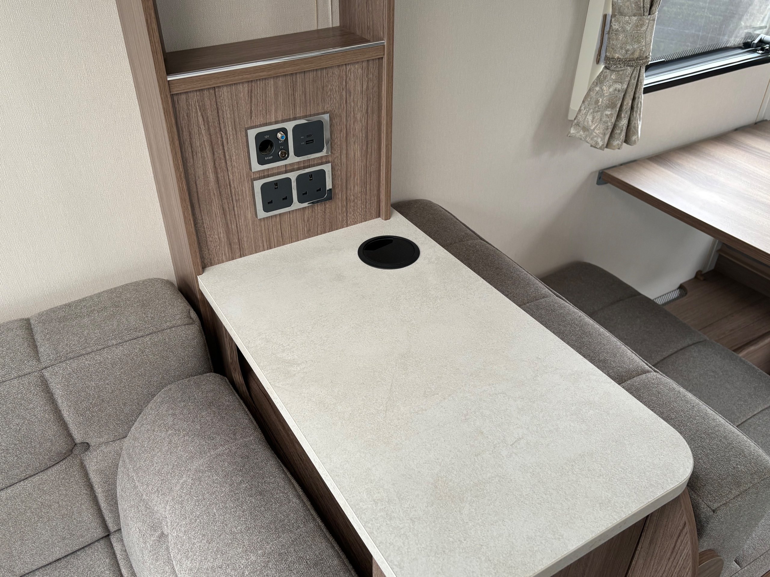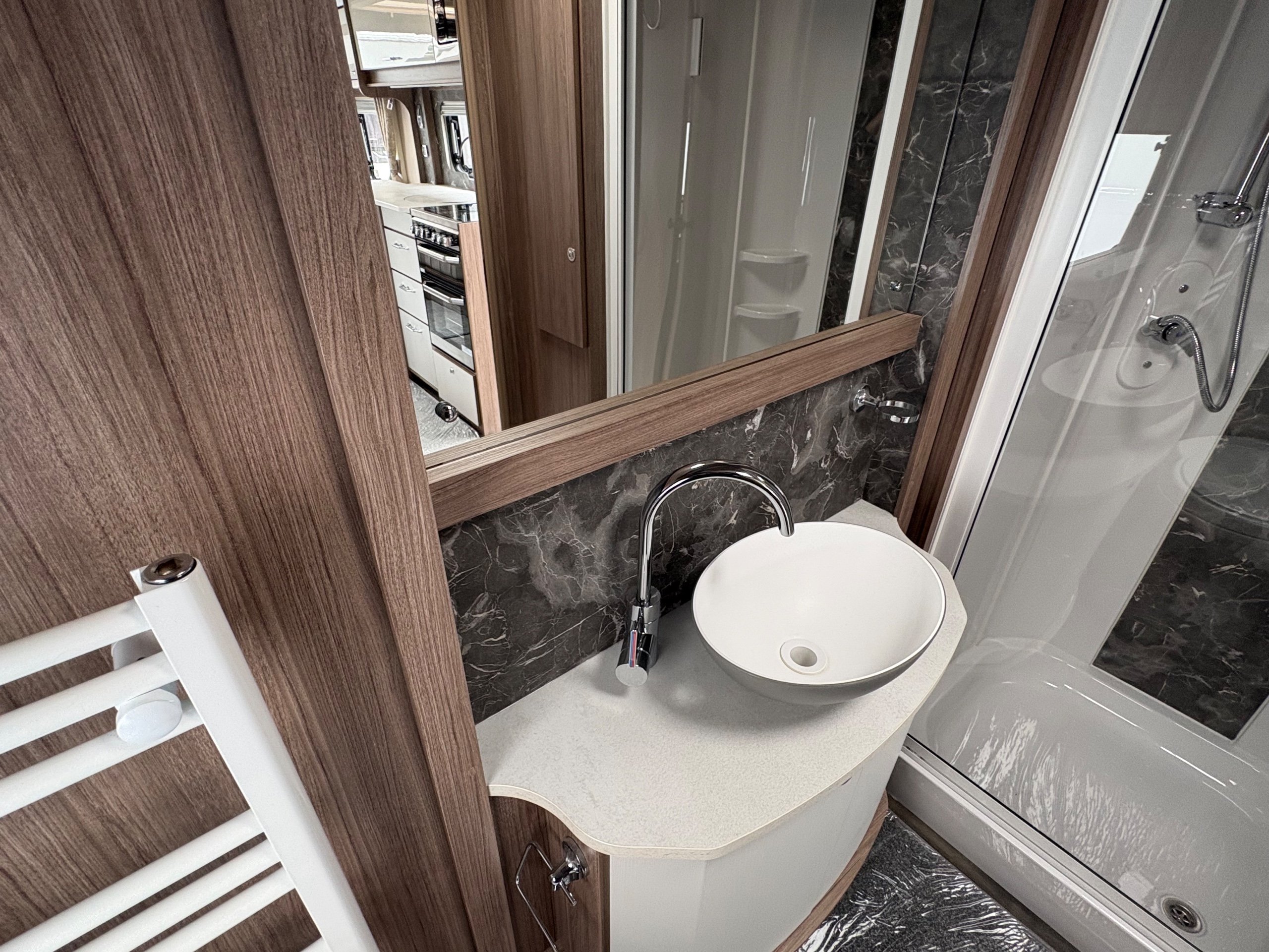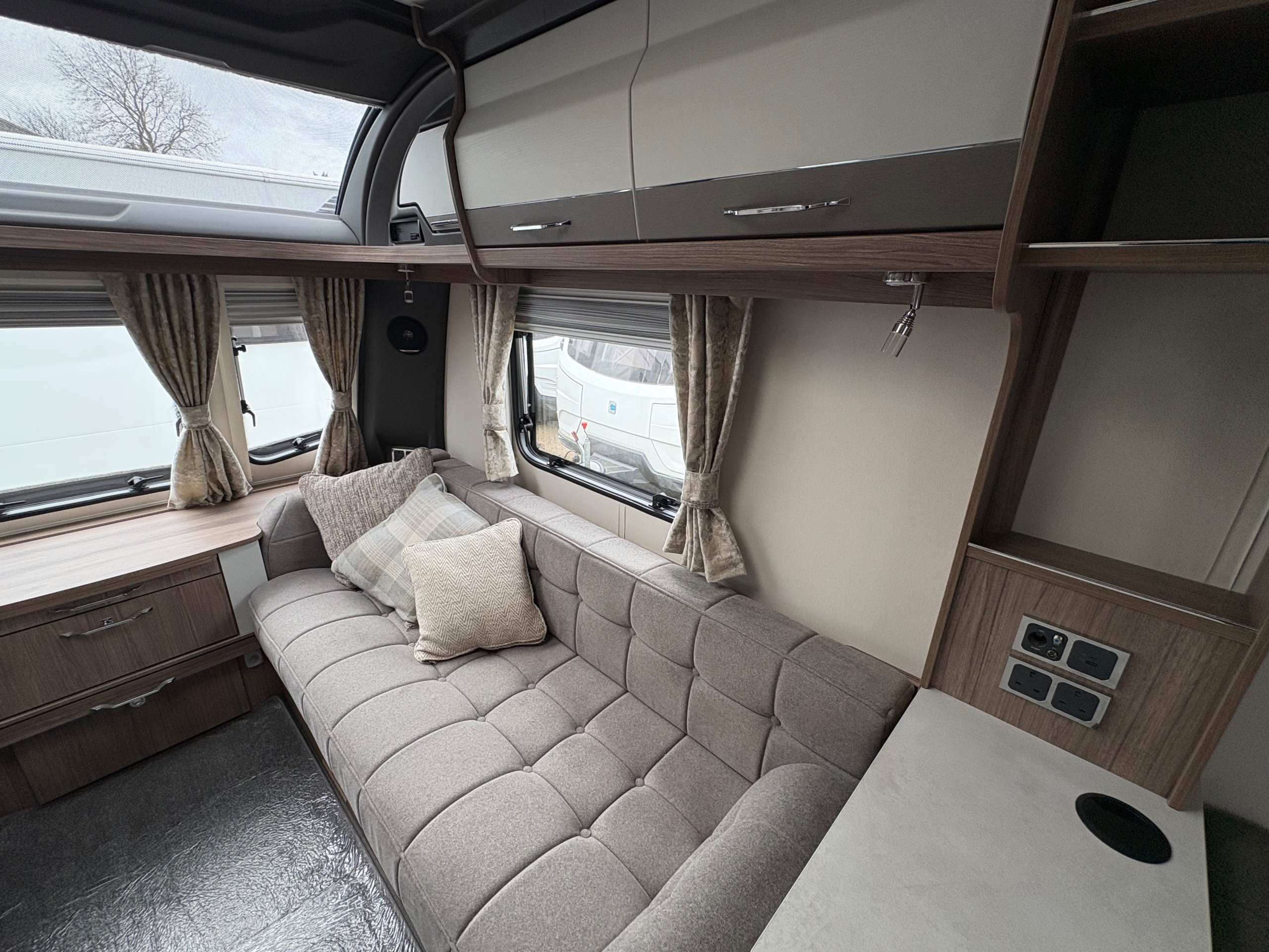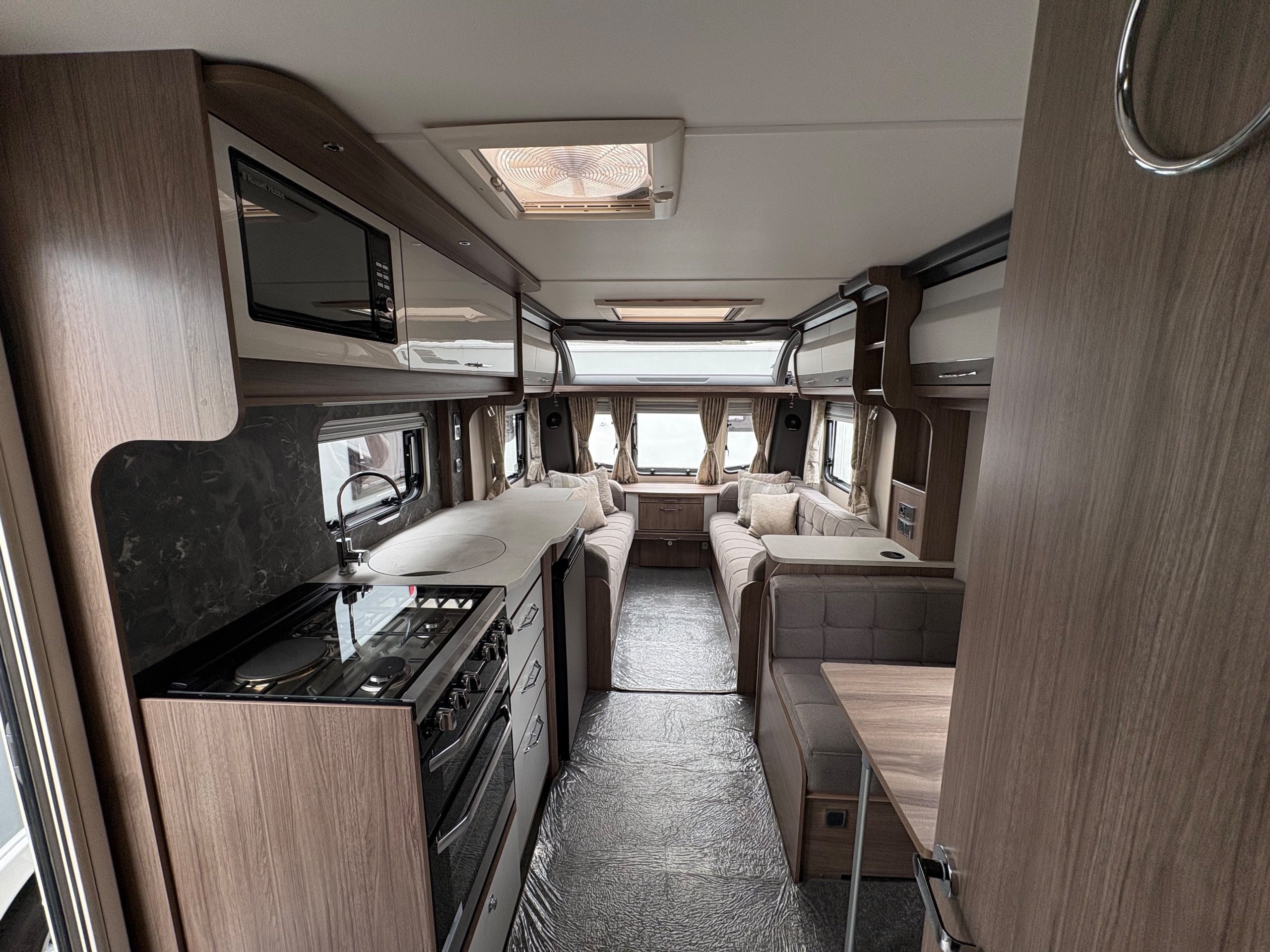 Year: 2024, Berth: 3, Internal length: 5.42m / 17'9", External length: 7.05m / 23'2", Width: 2.31m / 7'7", Unladen weight: 1403kg, MTPLM: 1545kg, Awning size: 9.90m, Warranty: 12 months. The Vip 520 provides lots of living space within its body length, with the flexibility of the side dinette providing a single bed or additional sitting / dining area. Shorter and therefore lighter than similar vans, the interior has a very bright airy feel , due to the many windows fitted to this model. The kitchen provides a generous amount or work surface, perfect for those who like to cook while away. The rear washroom features a separate shower cubicle and space suitable for drying off after a shower or for dressing. Being a VIOP model there is a good level of specification from alde heating, external gas and mains points, alko atc and wheel lock, to name just a few of the standard items. This model is perfect for a couple who are looking for something other than a fixed bed caravan, providing lots of usable space. -