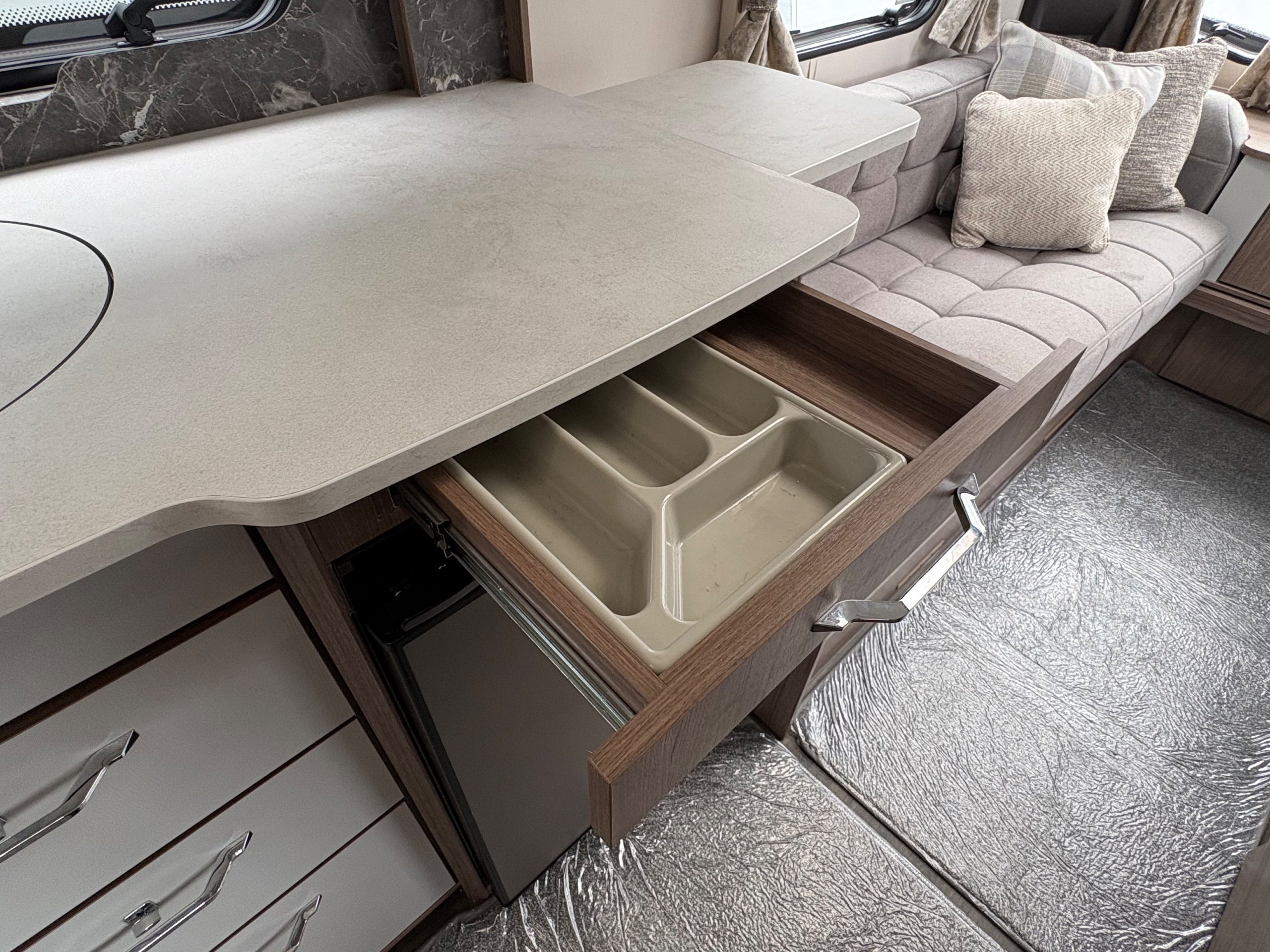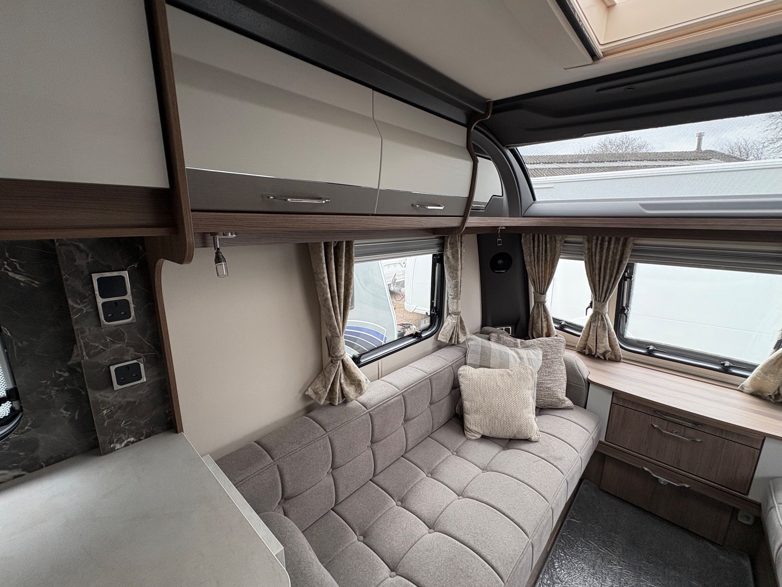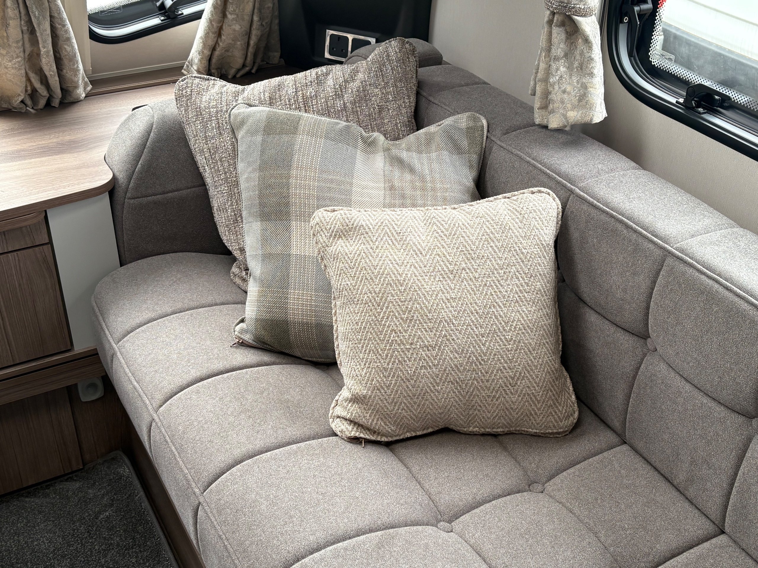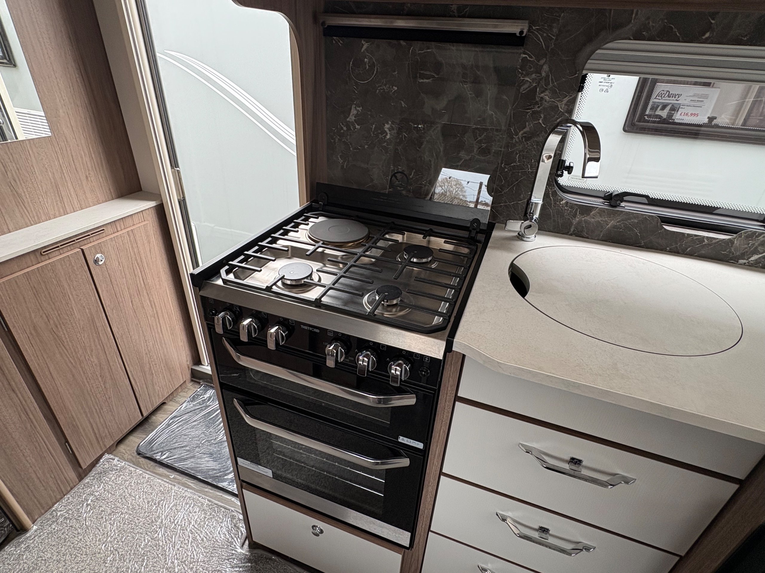 Year: 2024, Berth: 3, Internal length: 5.42m / 17'9", External length: 7.05m / 23'2", Width: 2.31m / 7'7", Unladen weight: 1403kg, MTPLM: 1545kg, Awning size: 9.90m, Warranty: 12 months. The Vip 520 provides lots of living space within its body length, with the flexibility of the side dinette providing a single bed or additional sitting / dining area. Shorter and therefore lighter than similar vans, the interior has a very bright airy feel , due to the many windows fitted to this model. The kitchen provides a generous amount or work surface, perfect for those who like to cook while away. The rear washroom features a separate shower cubicle and space suitable for drying off after a shower or for dressing. Being a VIOP model there is a good level of specification from alde heating, external gas and mains points, alko atc and wheel lock, to name just a few of the standard items. This model is perfect for a couple who are looking for something other than a fixed bed caravan, providing lots of usable space. -