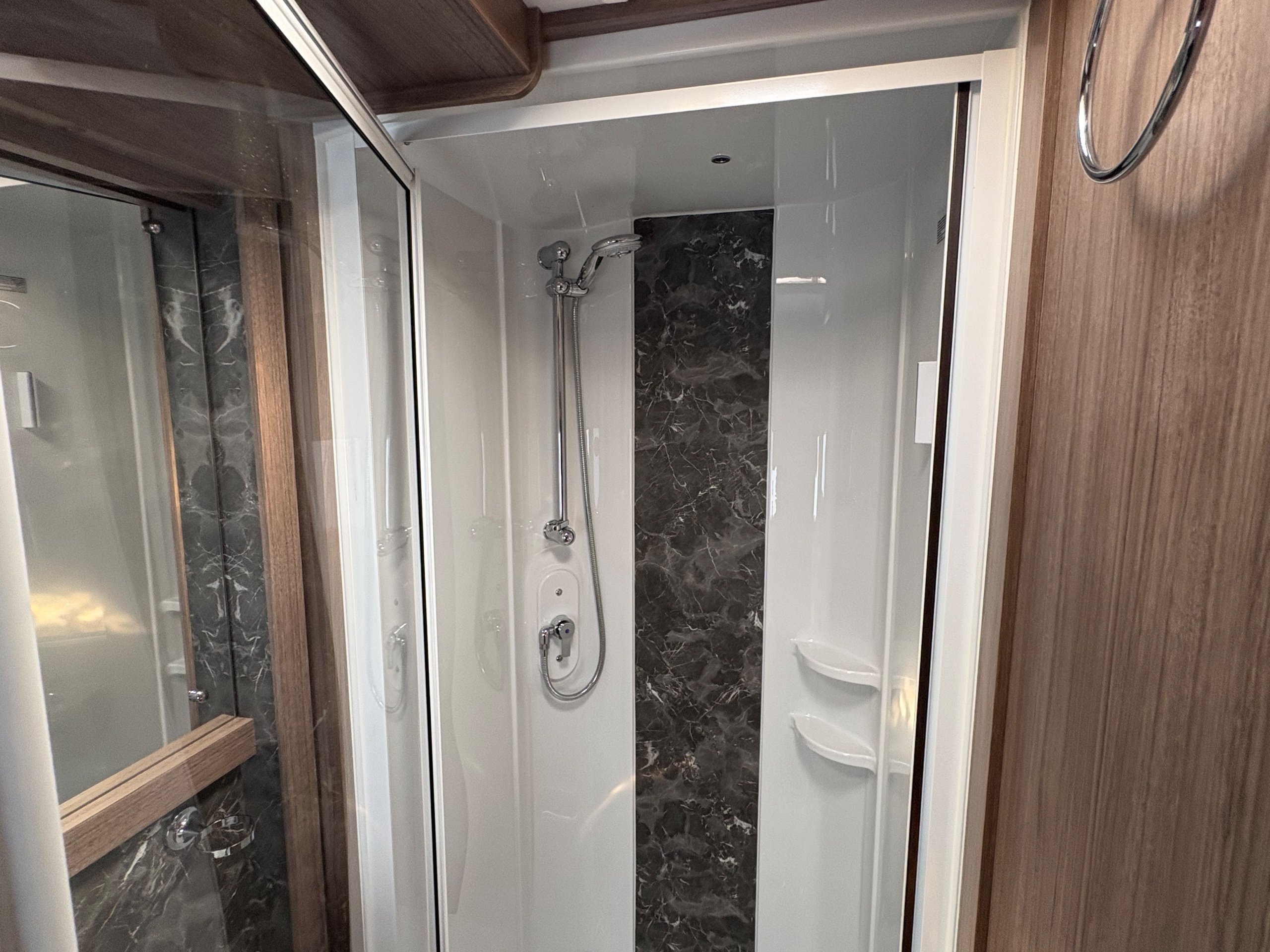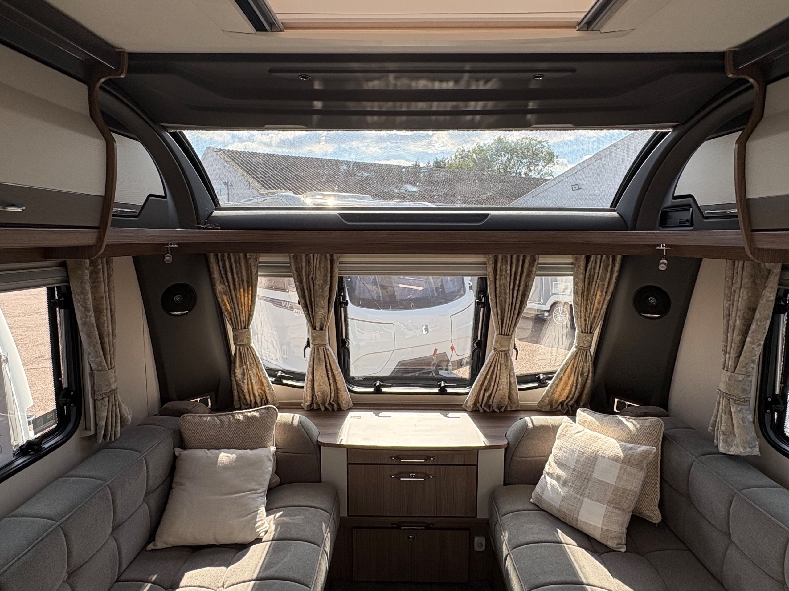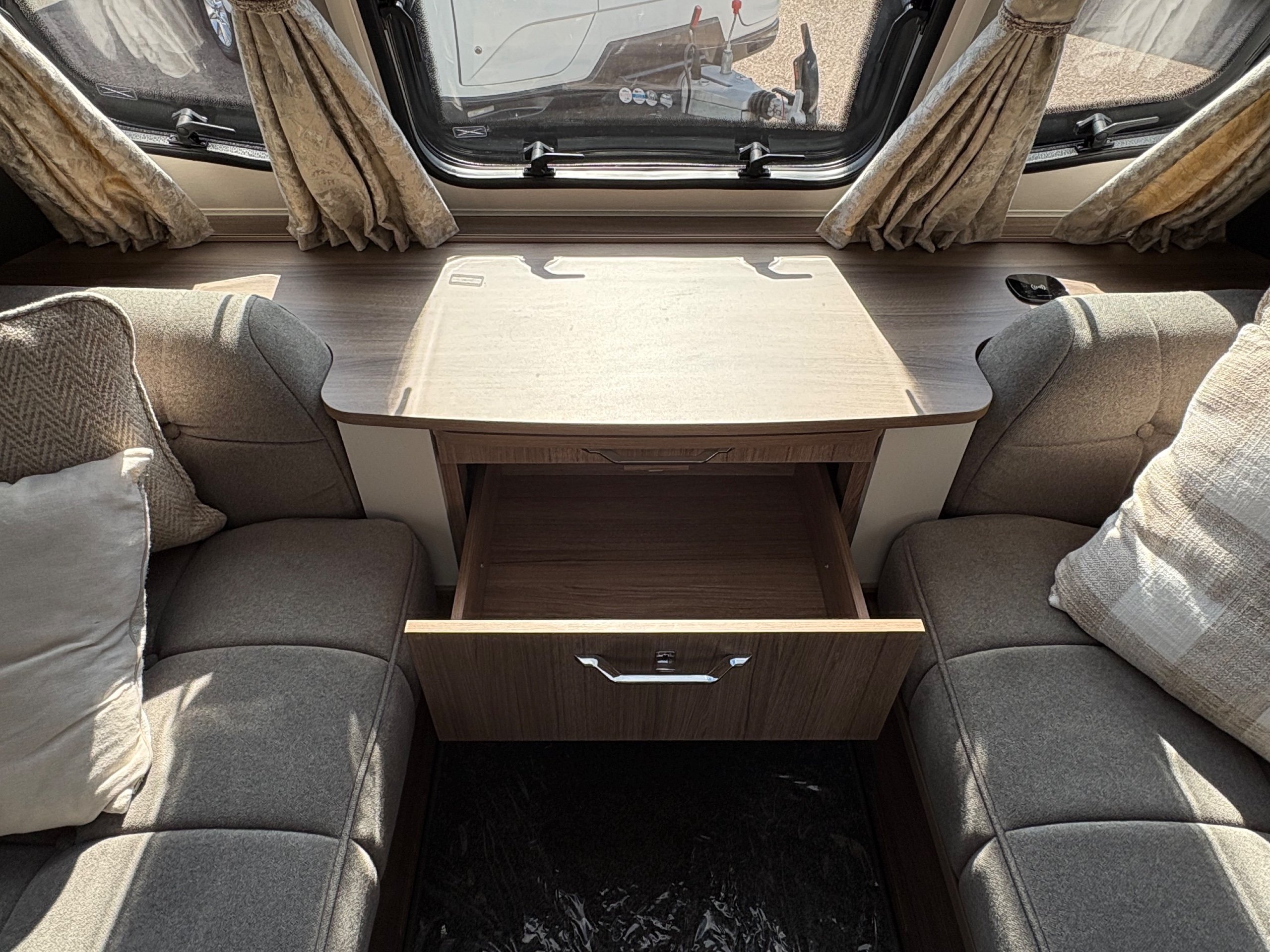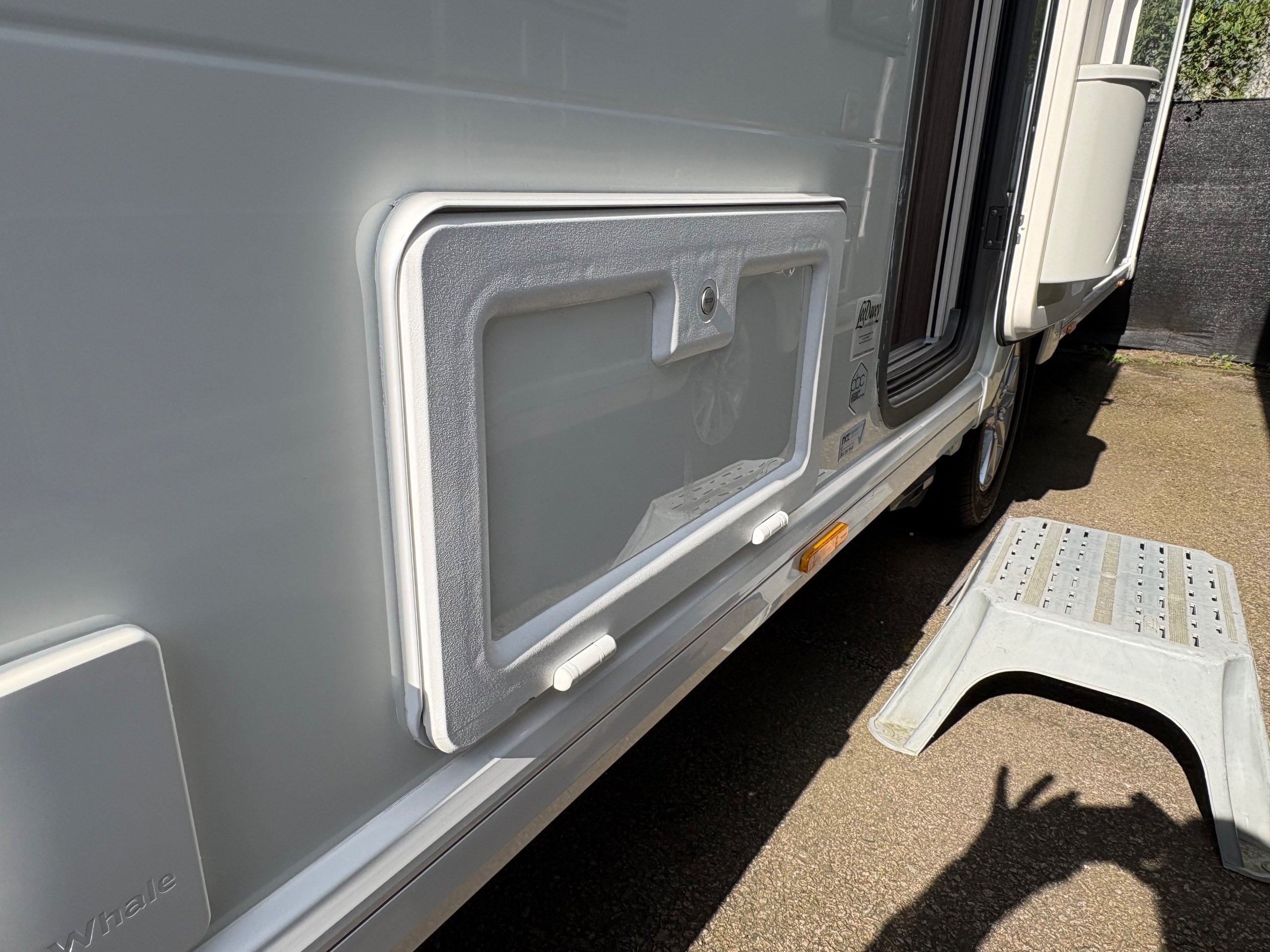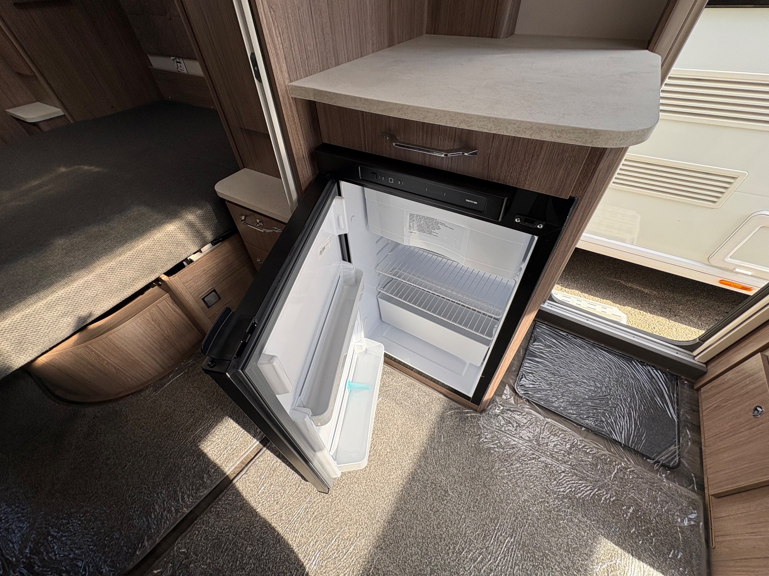 Year: 2024, Berth: 4, Internal length: 5.80m / 19', External length: 7.43m / 24'5", Width: 7'7", Unladen weight: 1504kg, MTPLM: 1700kg, Awning size:10.34m, Warranty: Balance of manufacturers warranty ( subject to terms and conditions ). One of the most successful transverse double bed, end washroom caravans. The Vip has a slightly wider body width of 7'7", which helps to get around the double bed when extended, and for more space in the front lounge. The powered caravan mover fitted to this model, make sit easier to move around at home, storage or when away on site. Alde heating, alko atc braking, alko wheel locks, external gas and mains points, alarm or just some of the features fitted on this model. -