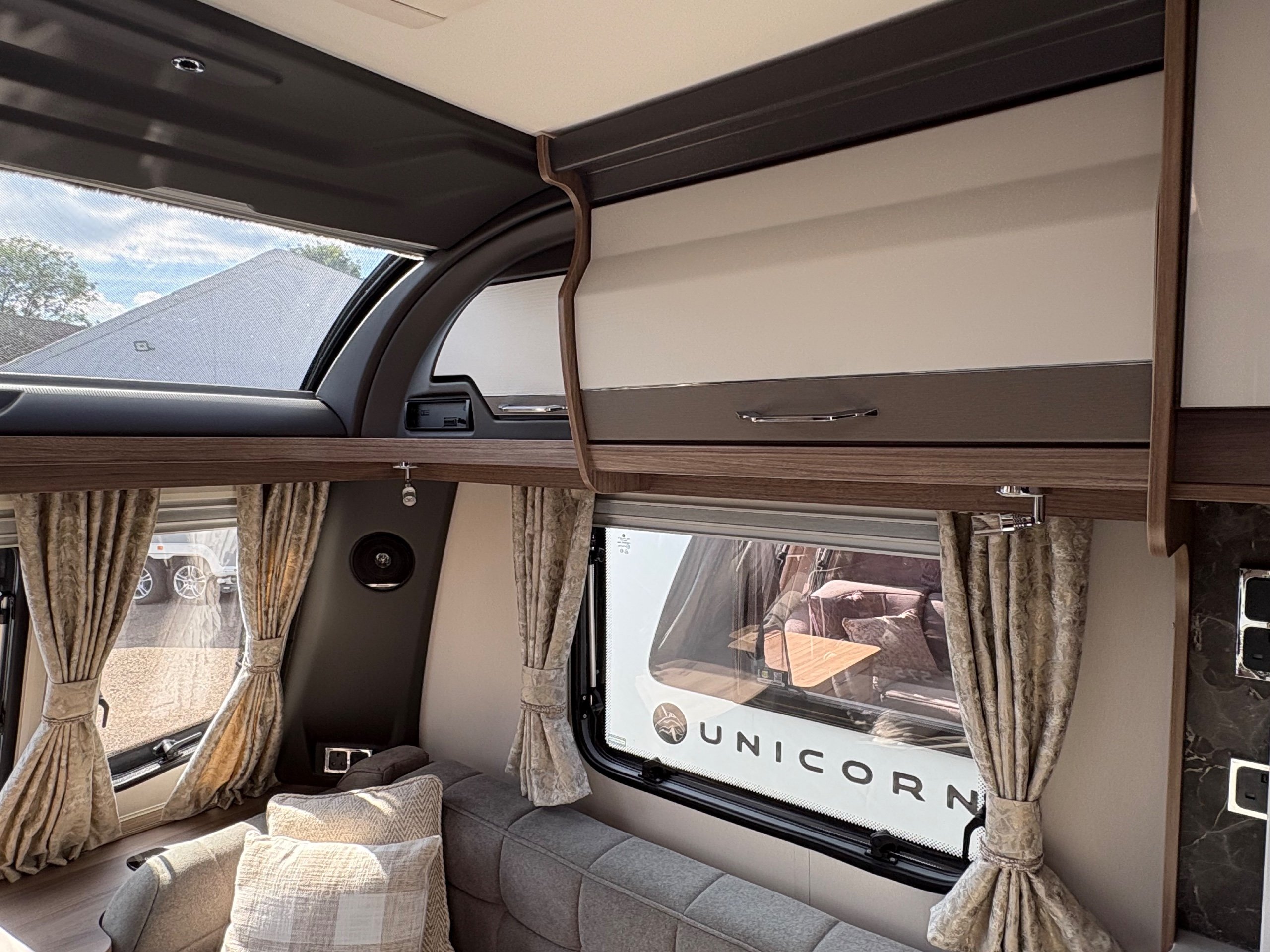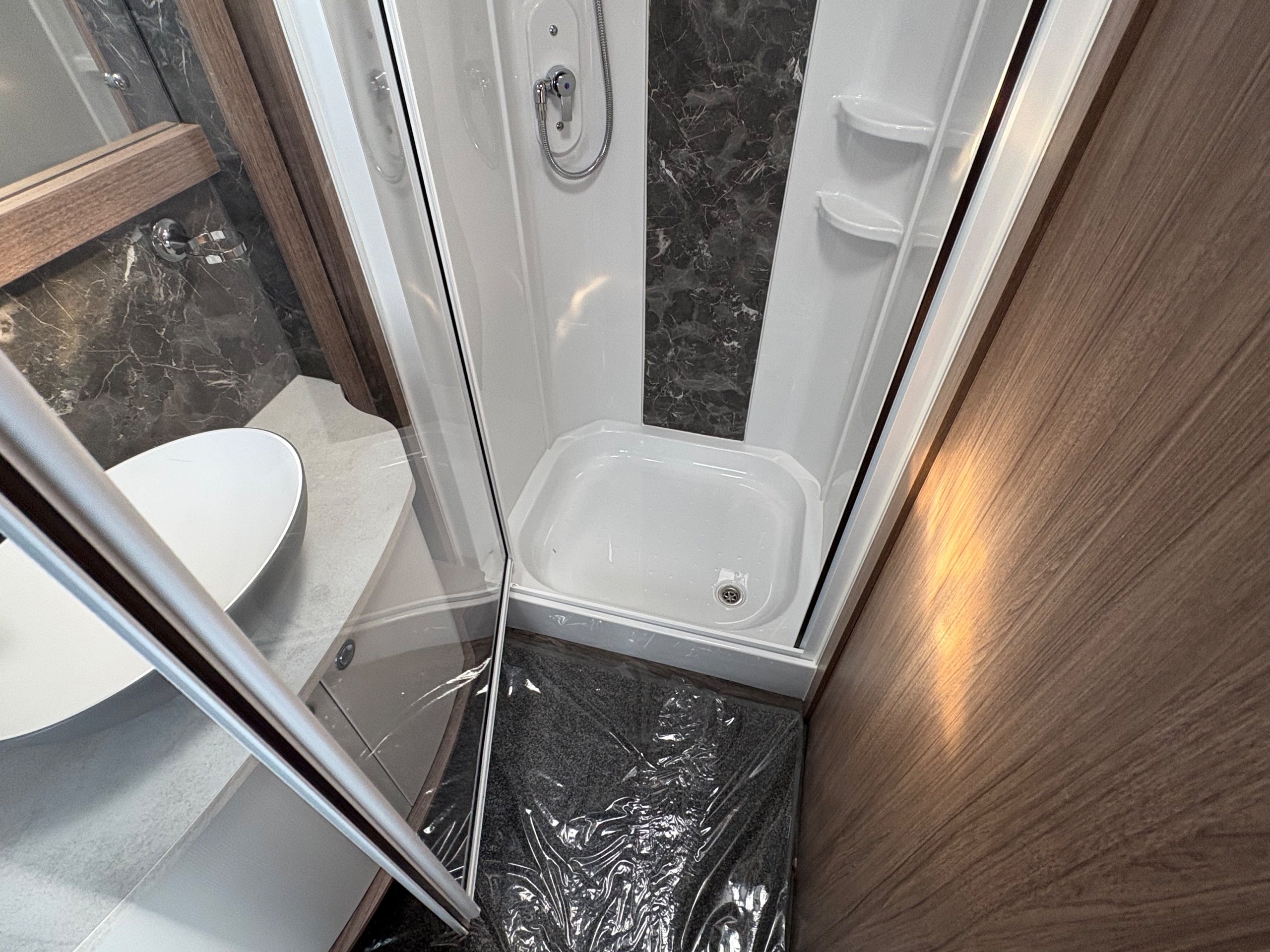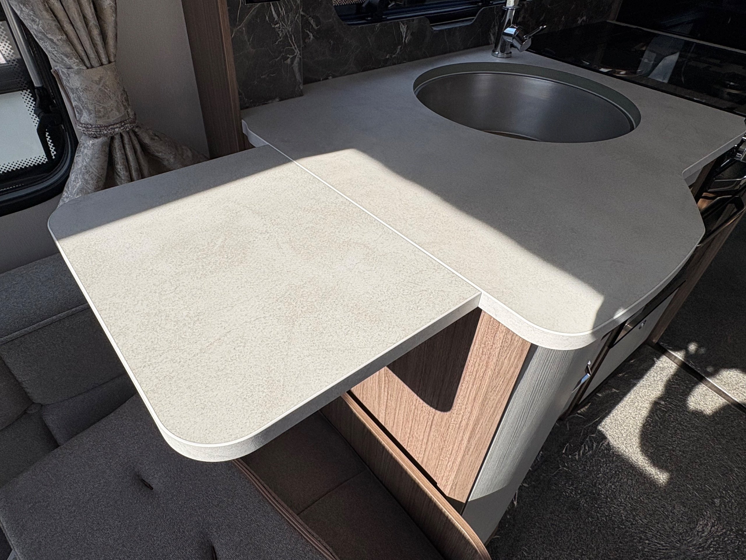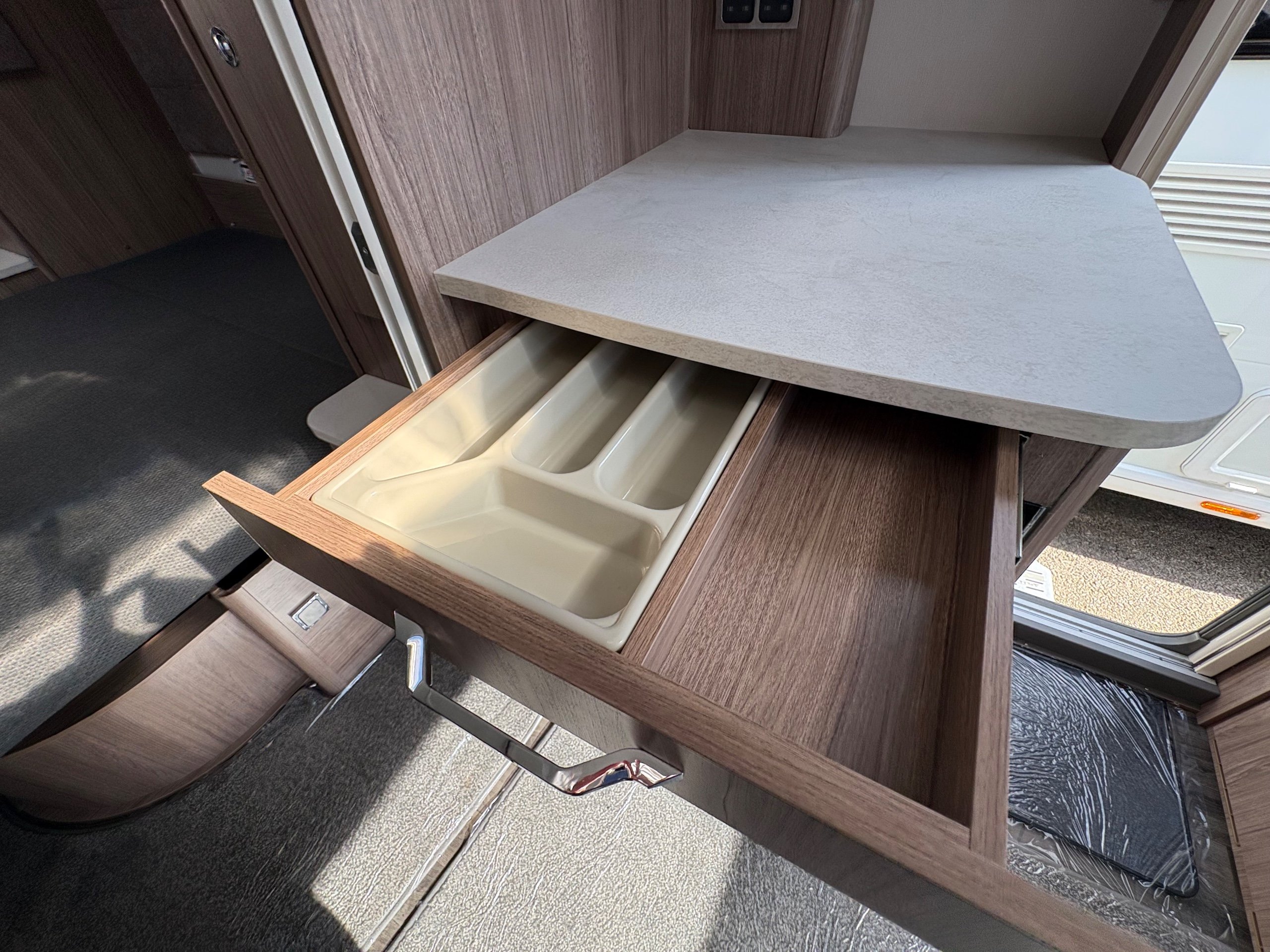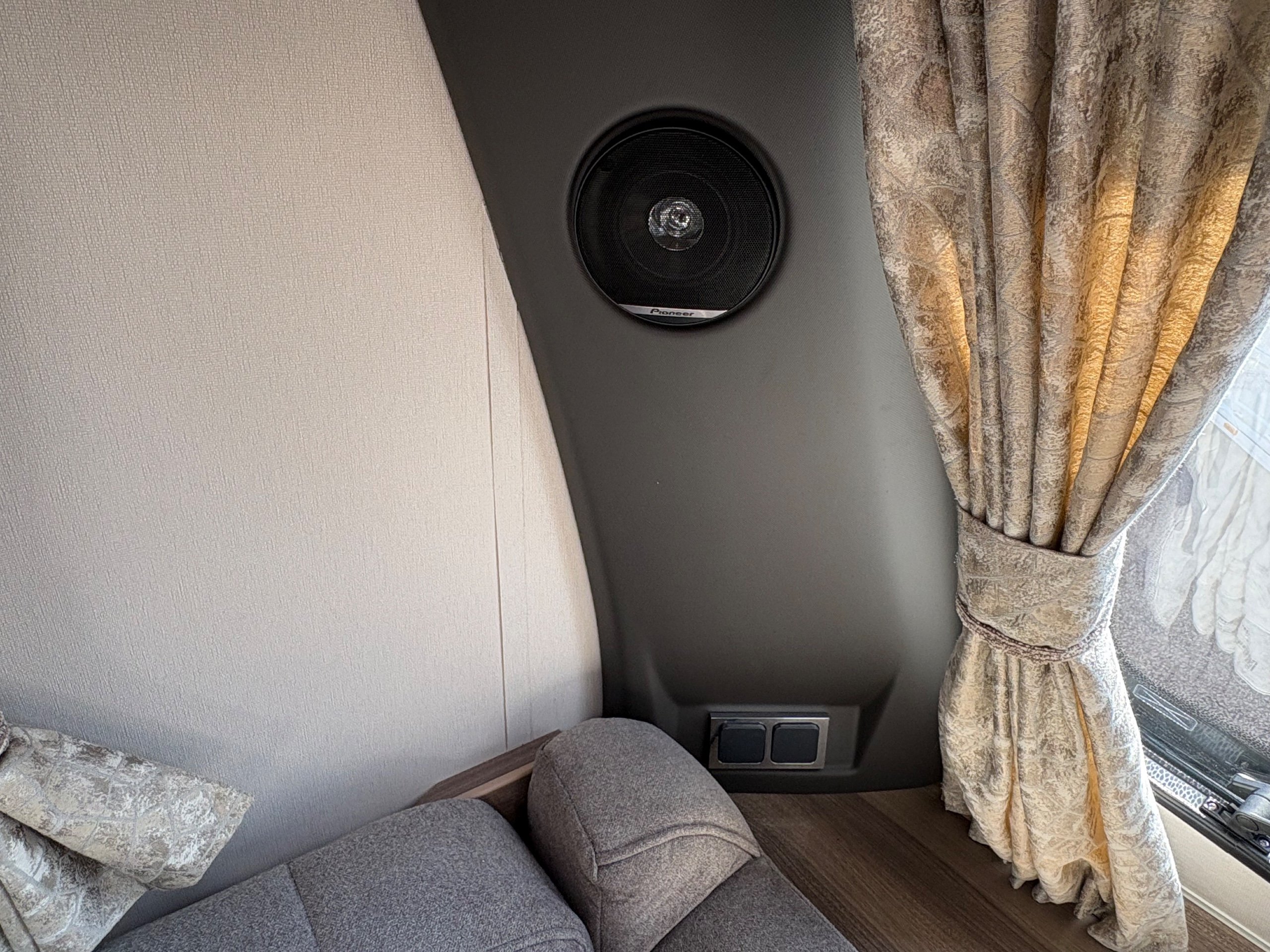Year: 2024, Berth: 4, Internal length: 5.80m / 19', External length: 7.43m / 24'5", Width: 7'7", Unladen weight: 1504kg, MTPLM: 1700kg, Awning size:10.34m, Warranty: Balance of manufacturers warranty ( subject to terms and conditions ). One of the most successful transverse double bed, end washroom caravans. The Vip has a slightly wider body width of 7'7", which helps to get around the double bed when extended, and for more space in the front lounge. The powered caravan mover fitted to this model, make sit easier to move around at home, storage or when away on site. Alde heating, alko atc braking, alko wheel locks, external gas and mains points, alarm or just some of the features fitted on this model. -