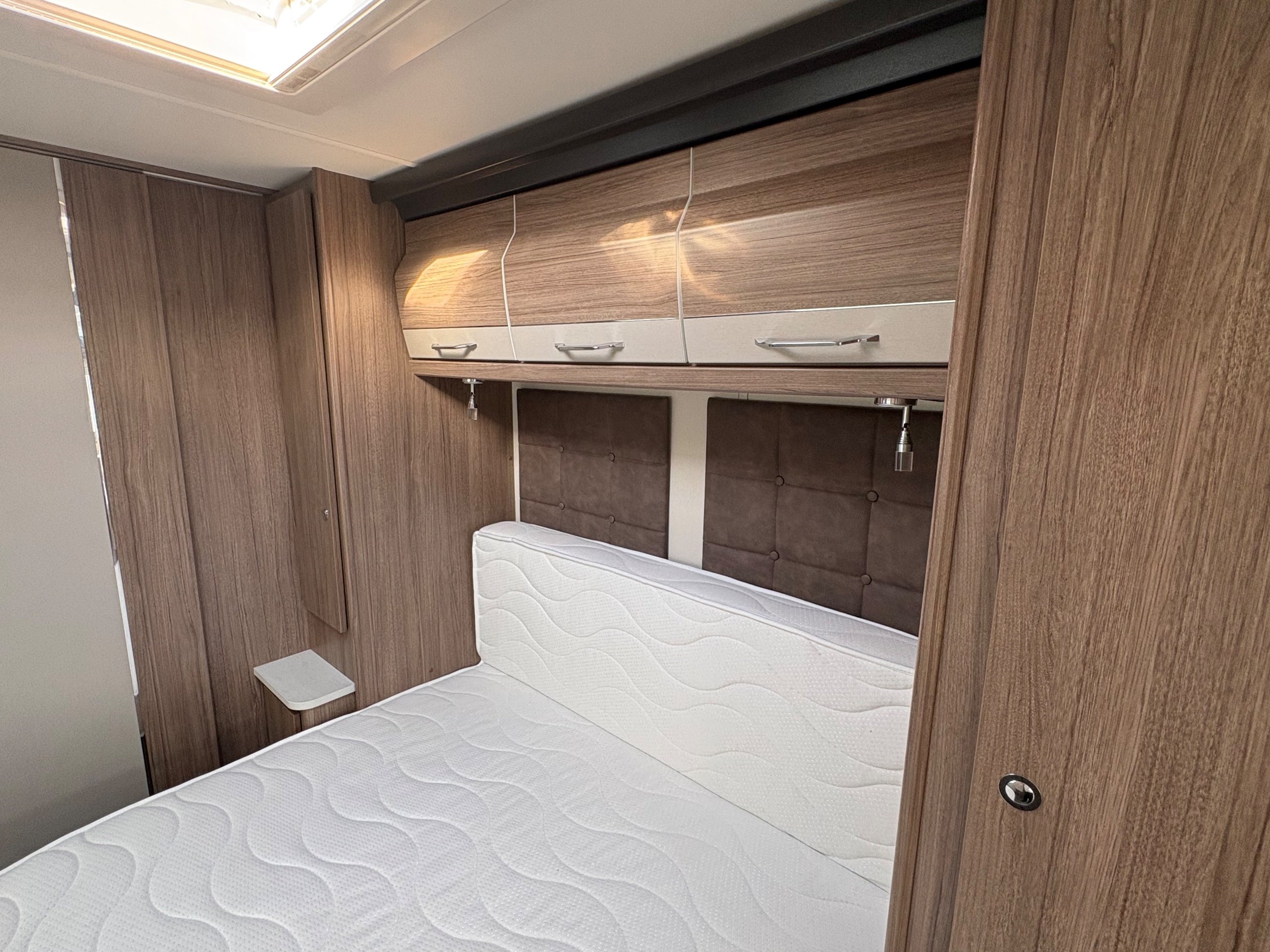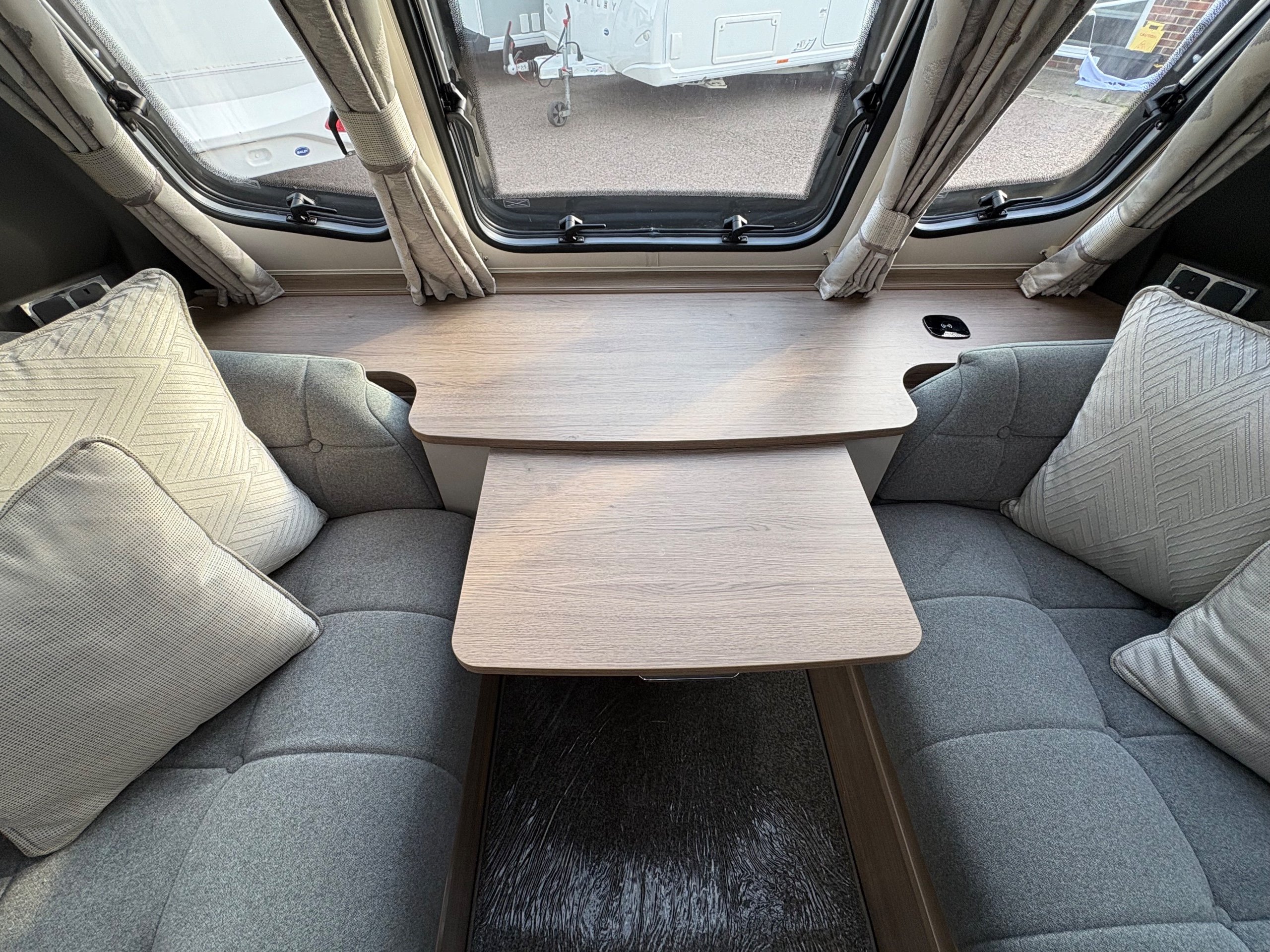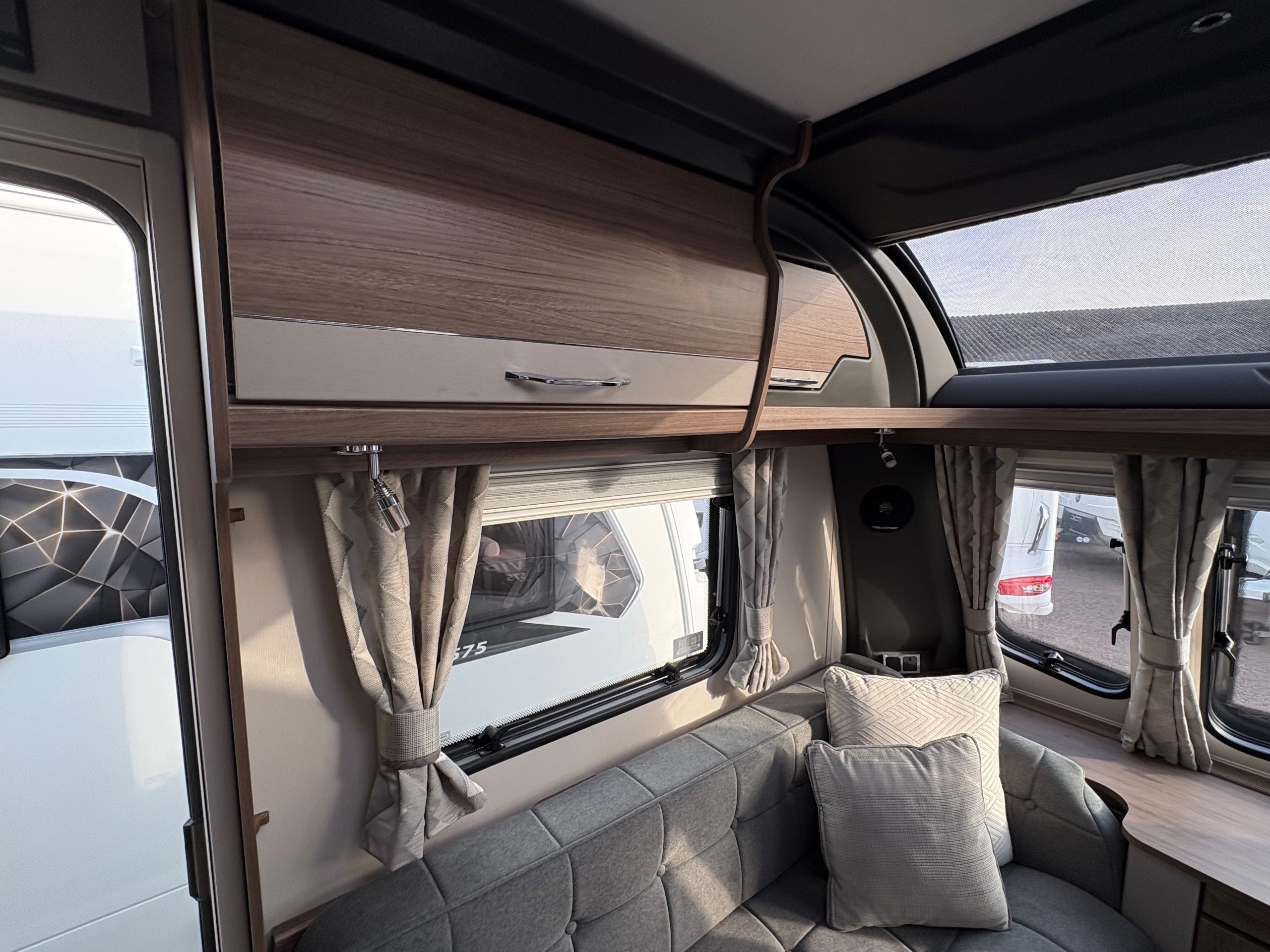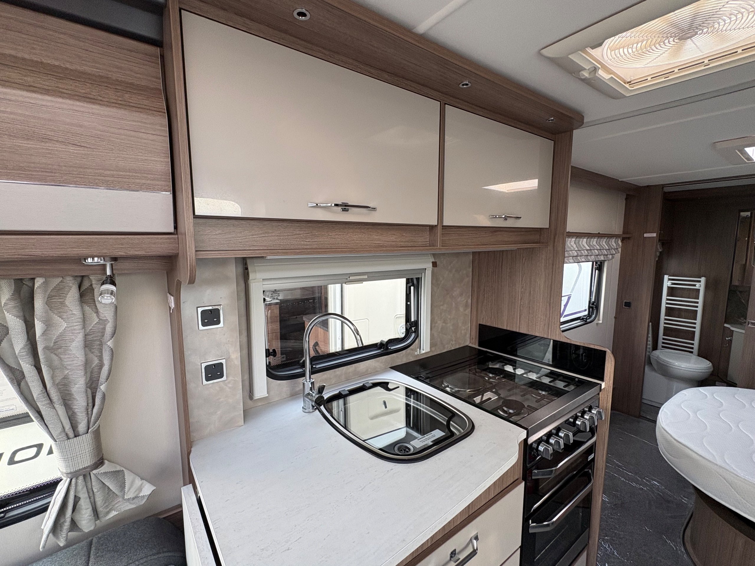 Year: 2022, Berth: 4, Internal length: 5.80m / 19', External length: 7.43m / 24'5", Width: 2.31m / 7'7", Unladen weight: 1502kg, MTPLM: 1700kg, Awning size: 10.14m, Warranty: 12 months. One of the most successful models of recent times , Vip 575 has a width of 7'7", a transverse double bed and a good sized end washroom. Alde heating , ATC braking, alko secure wheel locks are only some of the features that come with this model as standard. The powered caravan mover fitted will make it easier to move this caravan around, either at home, on site or in storage. The front sunroof and large windows flood the front of this caravan with light, perfect for relaxing and enjoying your break. -