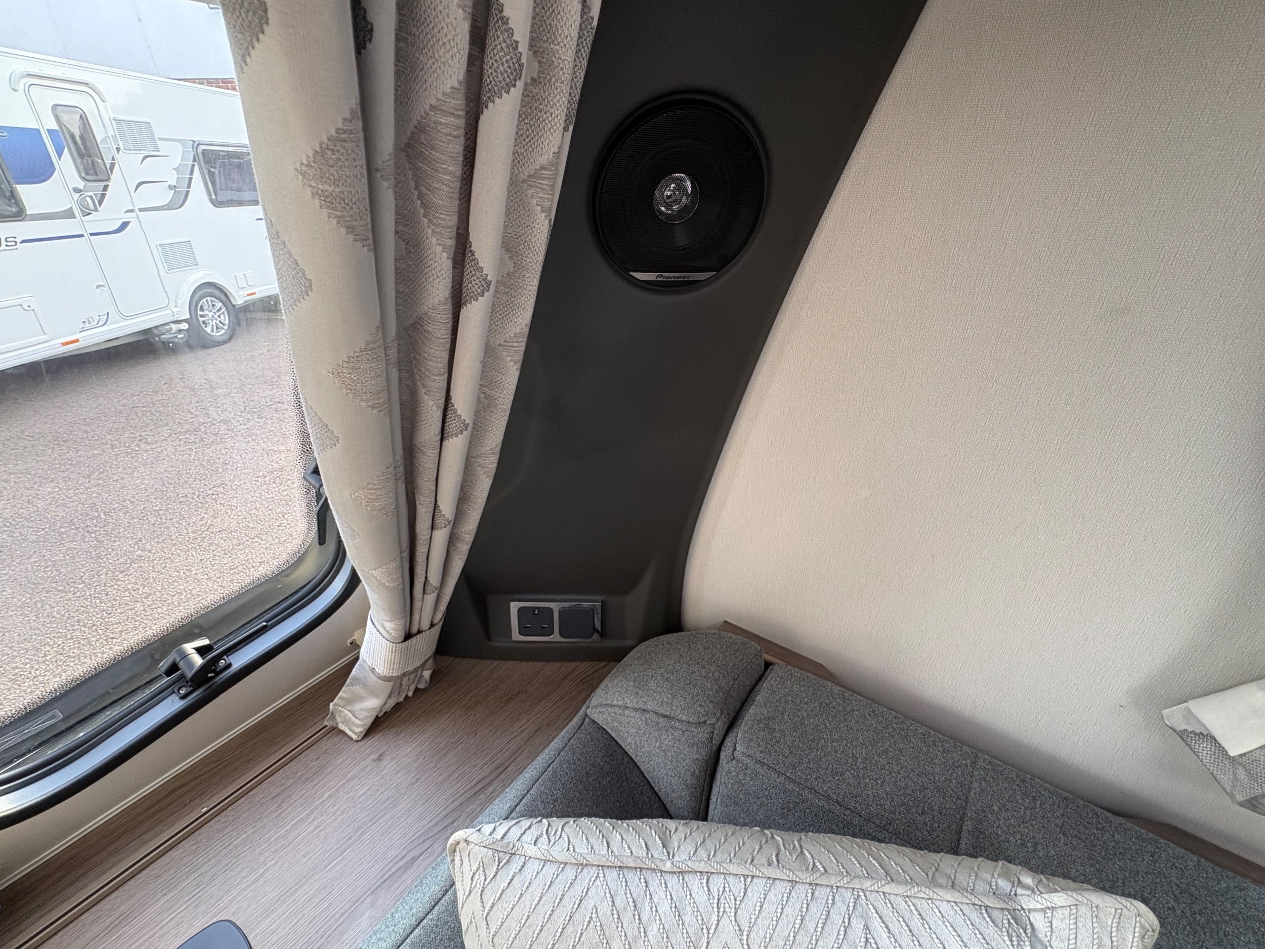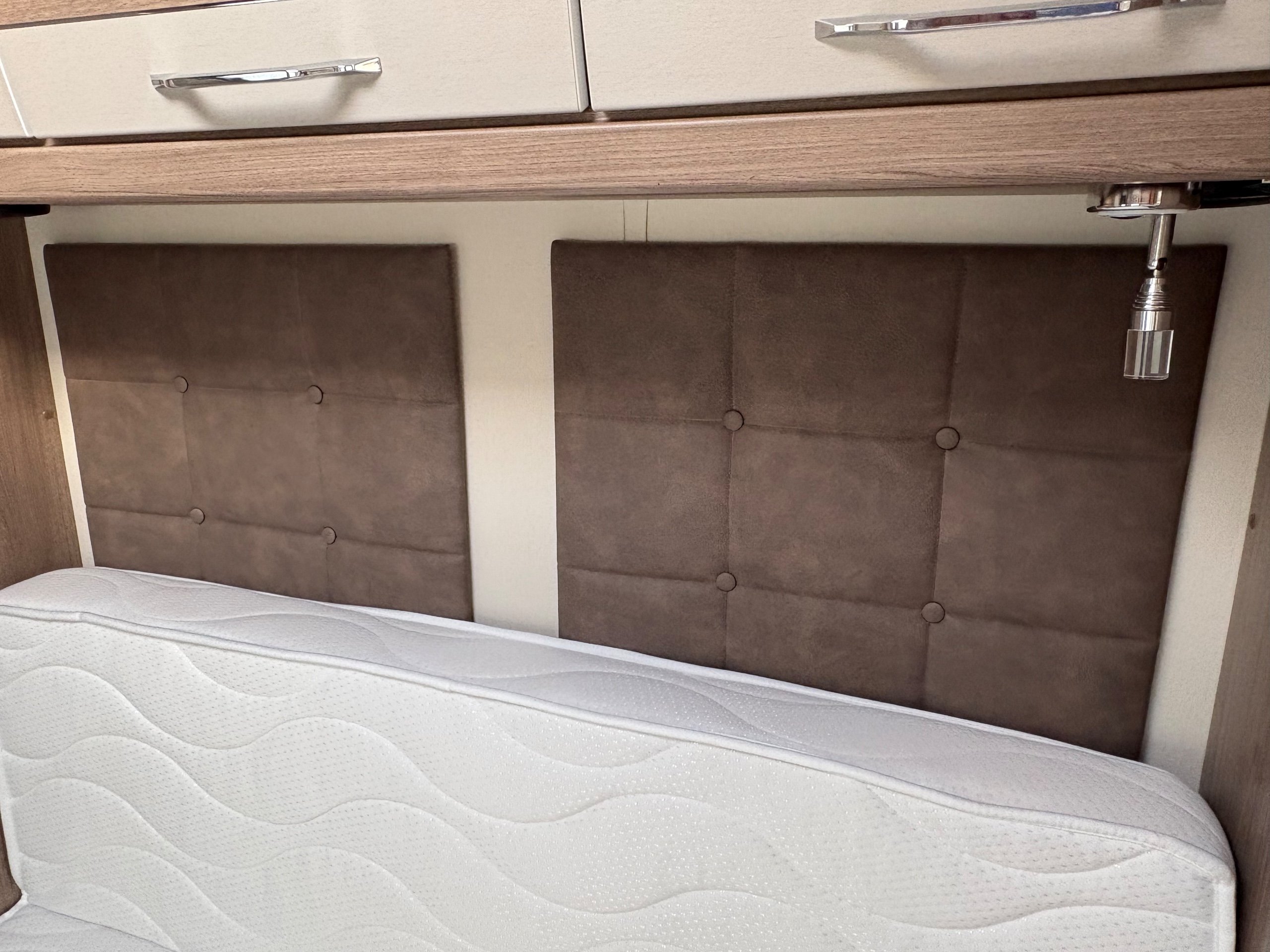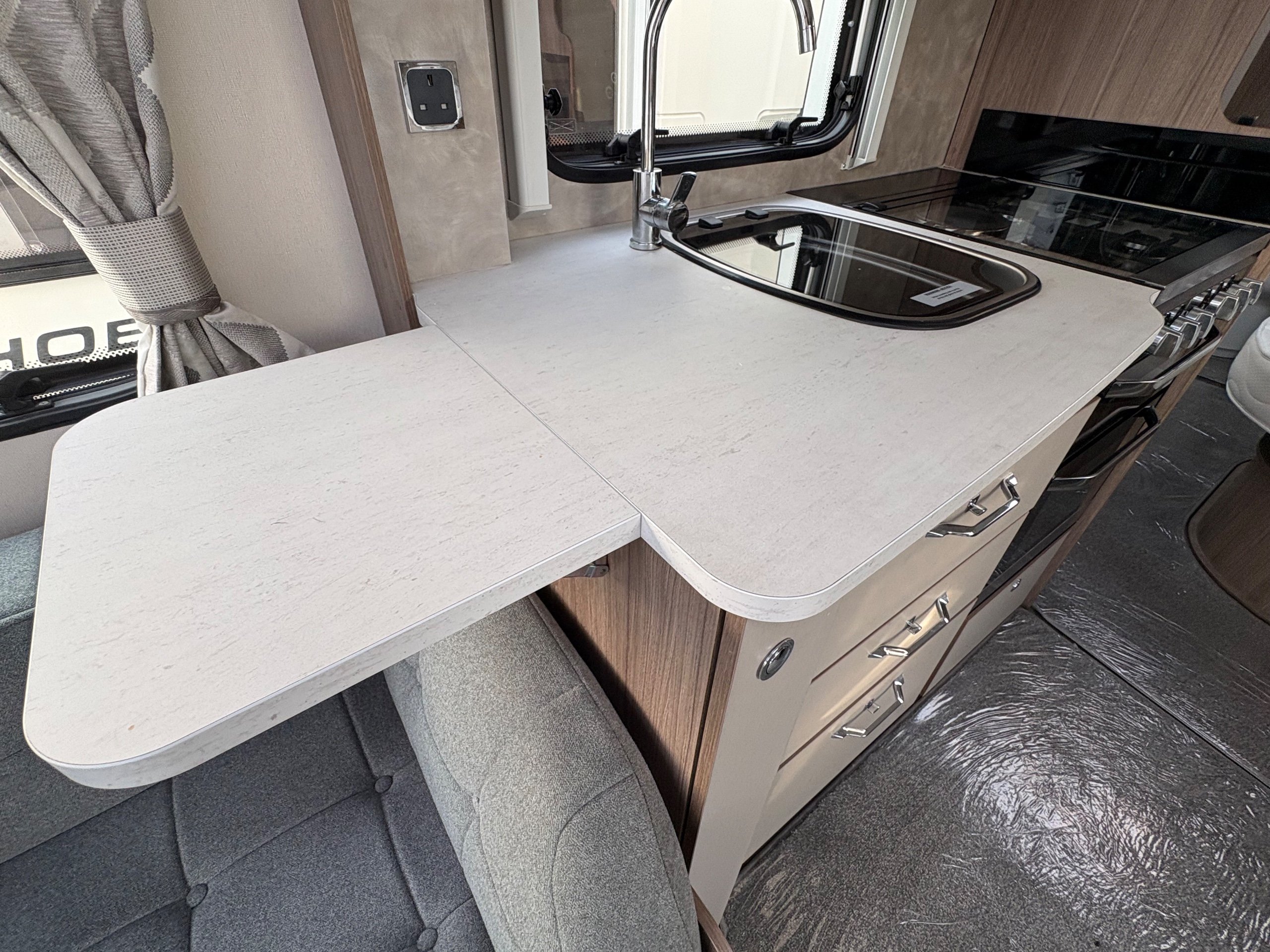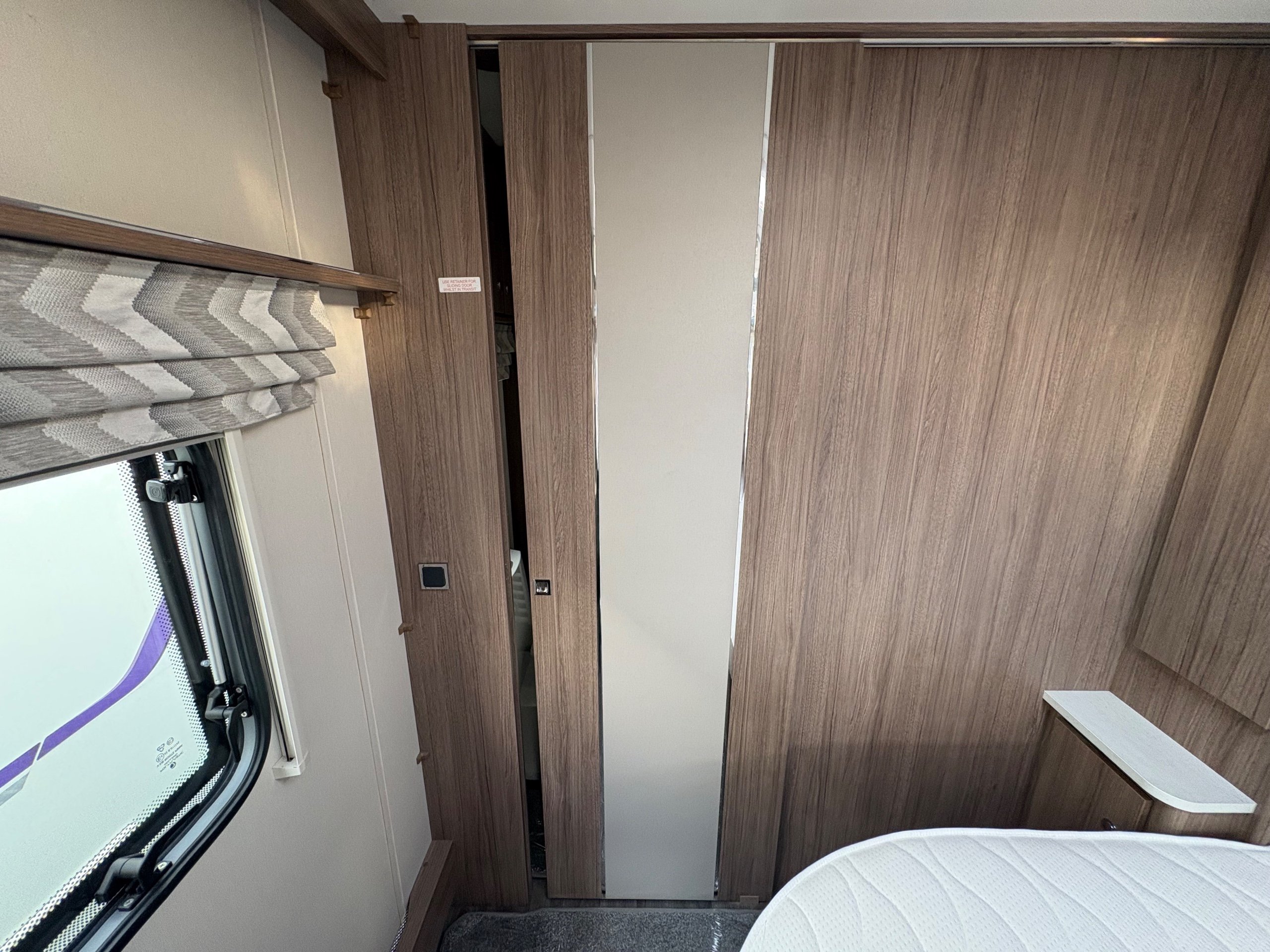 Year: 2022, Berth: 4, Internal length: 5.80m / 19', External length: 7.43m / 24'5", Width: 2.31m / 7'7", Unladen weight: 1502kg, MTPLM: 1700kg, Awning size: 10.14m, Warranty: 12 months. One of the most successful models of recent times , Vip 575 has a width of 7'7", a transverse double bed and a good sized end washroom. Alde heating , ATC braking, alko secure wheel locks are only some of the features that come with this model as standard. The powered caravan mover fitted will make it easier to move this caravan around, either at home, on site or in storage. The front sunroof and large windows flood the front of this caravan with light, perfect for relaxing and enjoying your break. -