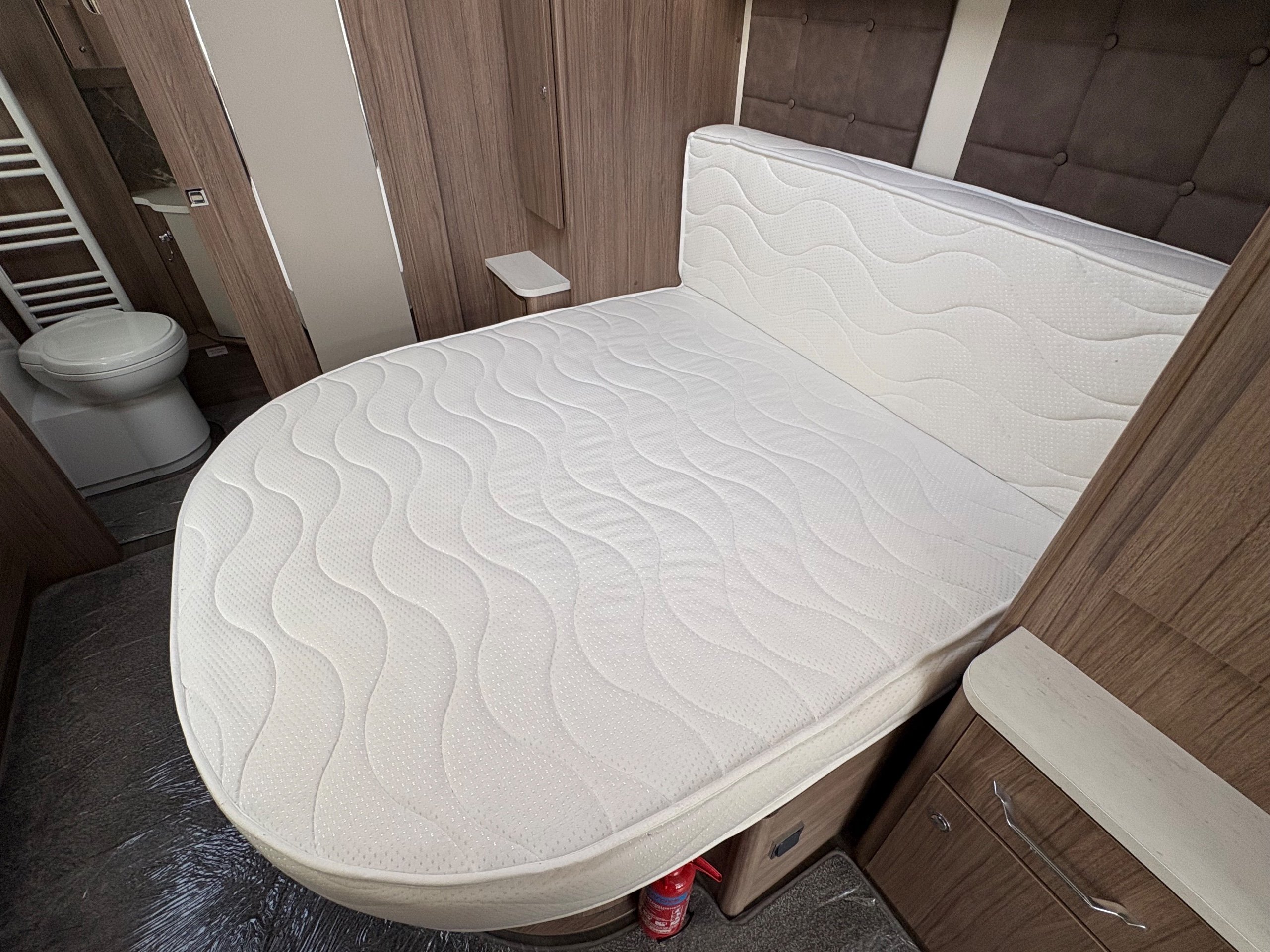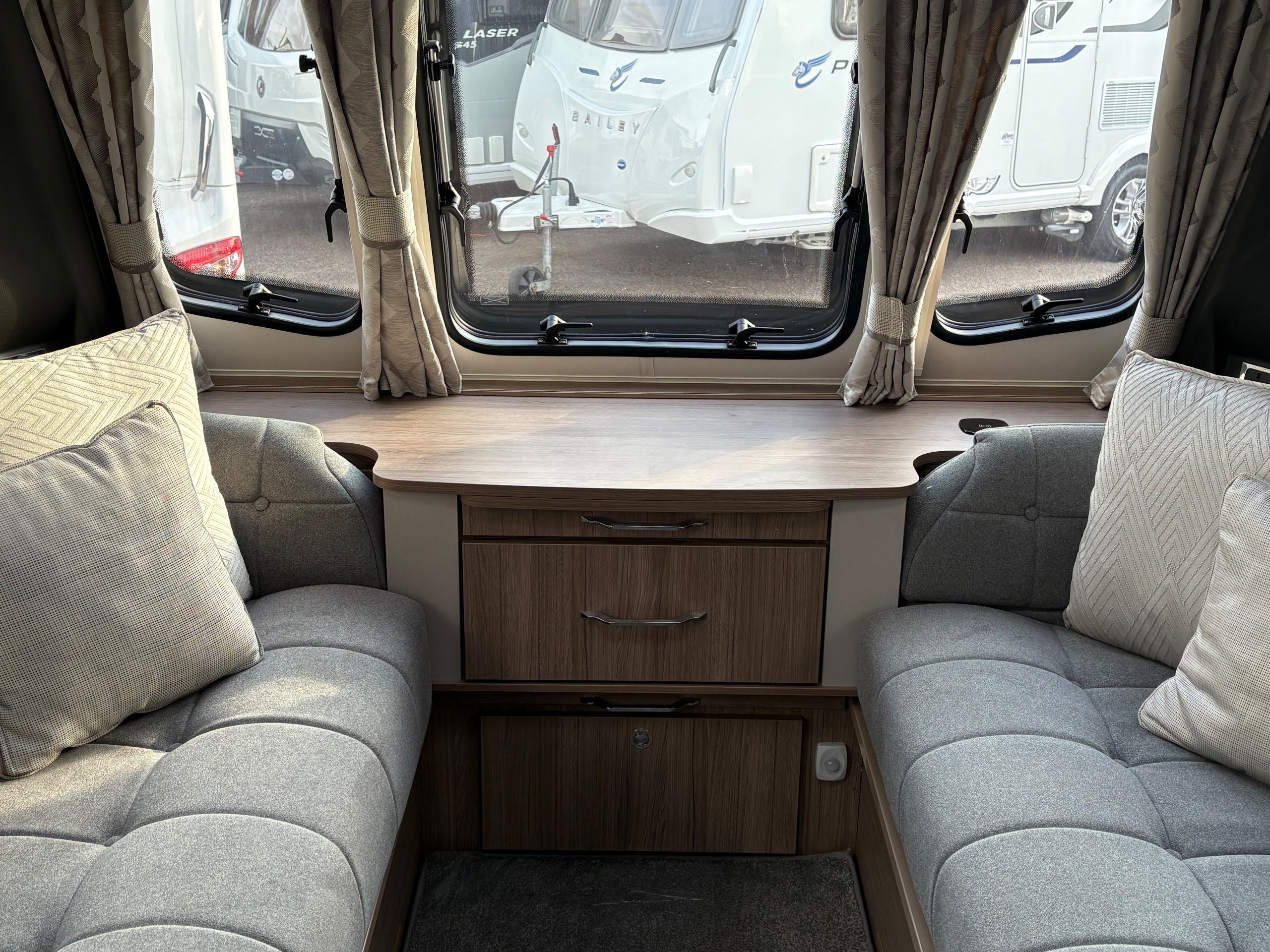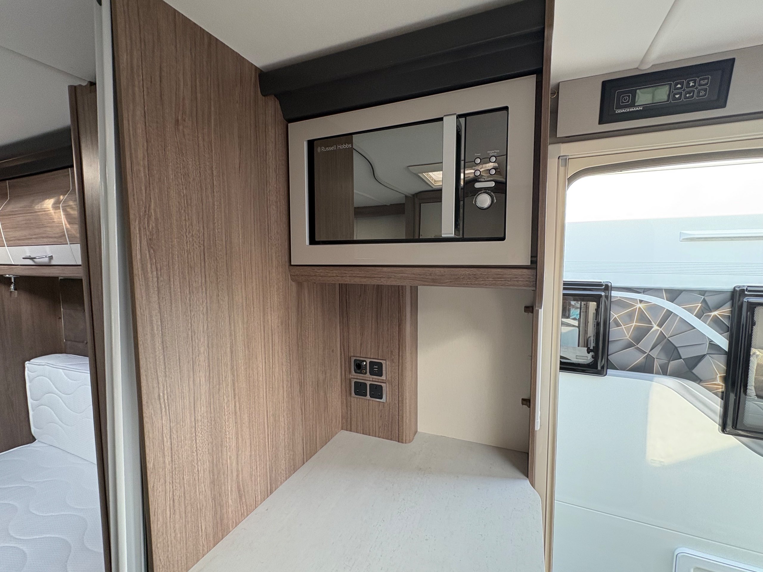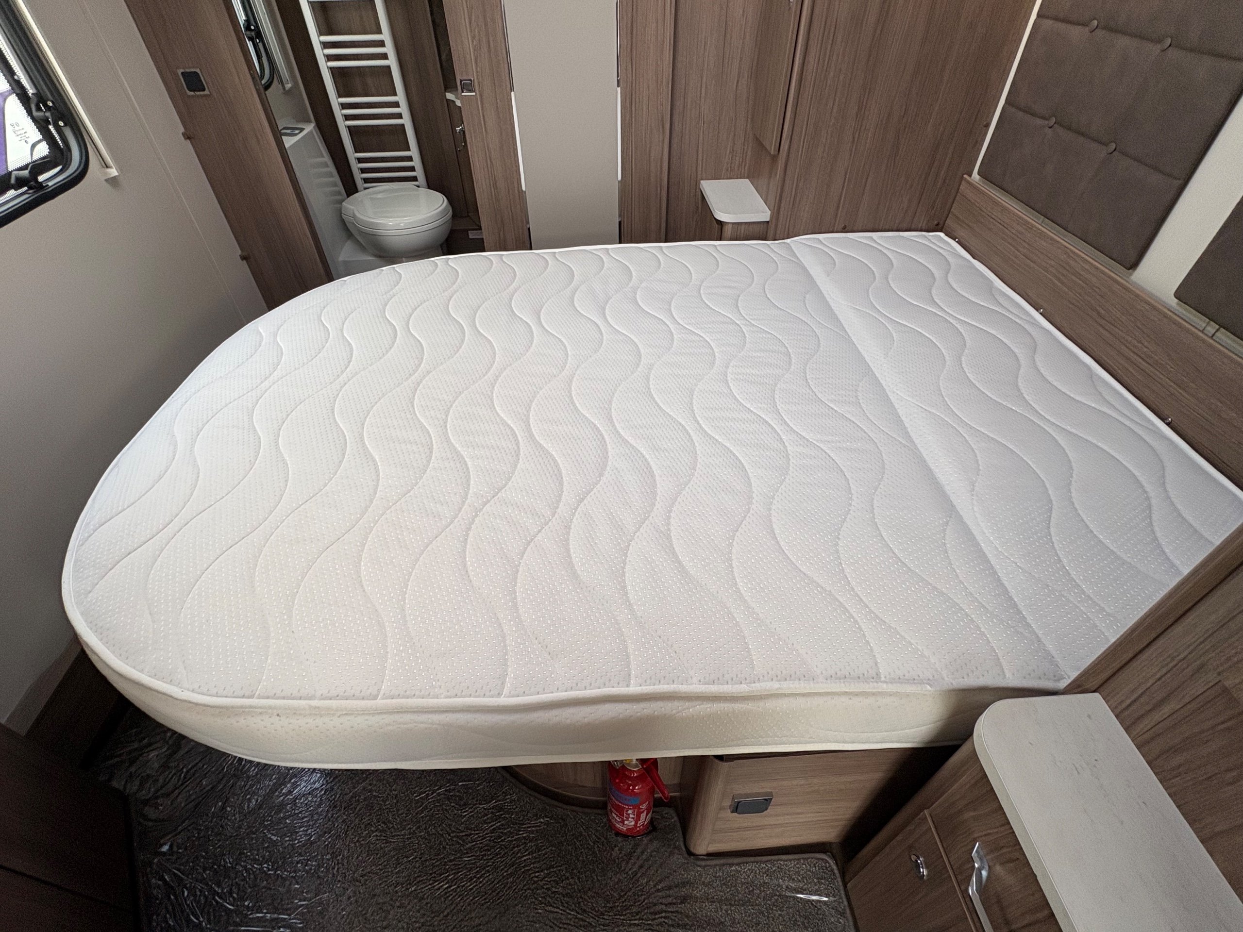 Year: 2022, Berth: 4, Internal length: 5.80m / 19', External length: 7.43m / 24'5", Width: 2.31m / 7'7", Unladen weight: 1502kg, MTPLM: 1700kg, Awning size: 10.14m, Warranty: 12 months. One of the most successful models of recent times , Vip 575 has a width of 7'7", a transverse double bed and a good sized end washroom. Alde heating , ATC braking, alko secure wheel locks are only some of the features that come with this model as standard. The powered caravan mover fitted will make it easier to move this caravan around, either at home, on site or in storage. The front sunroof and large windows flood the front of this caravan with light, perfect for relaxing and enjoying your break. -