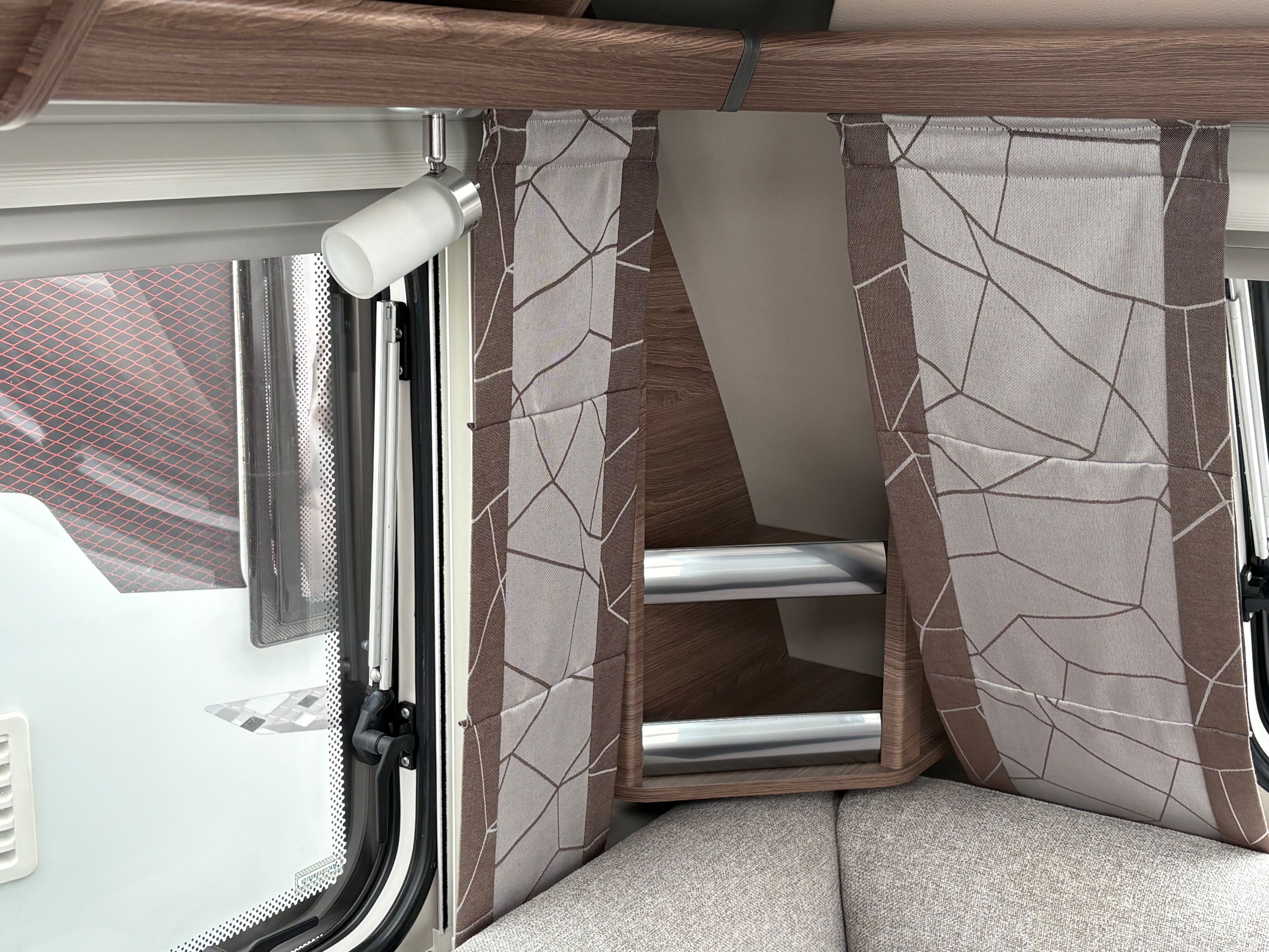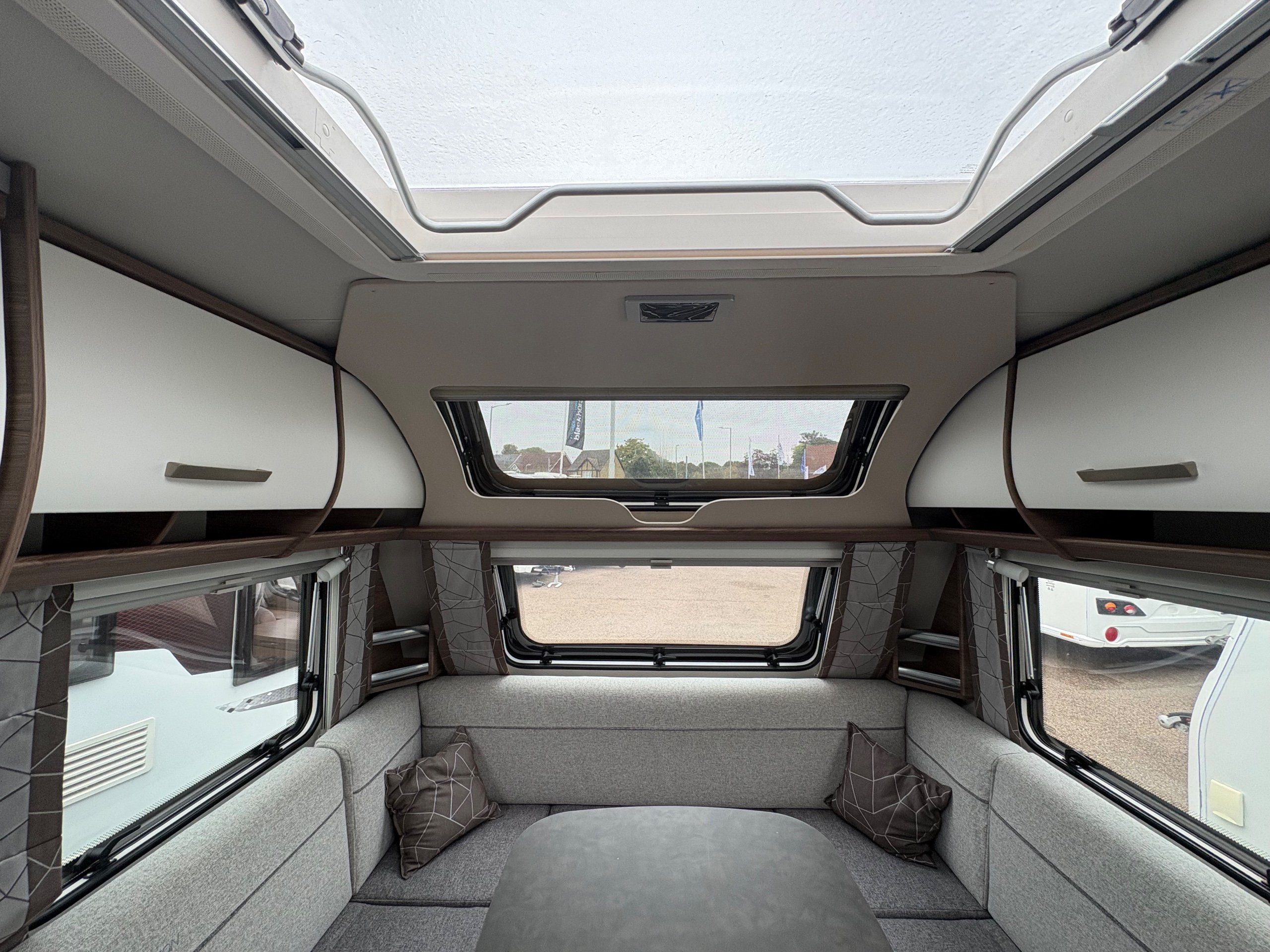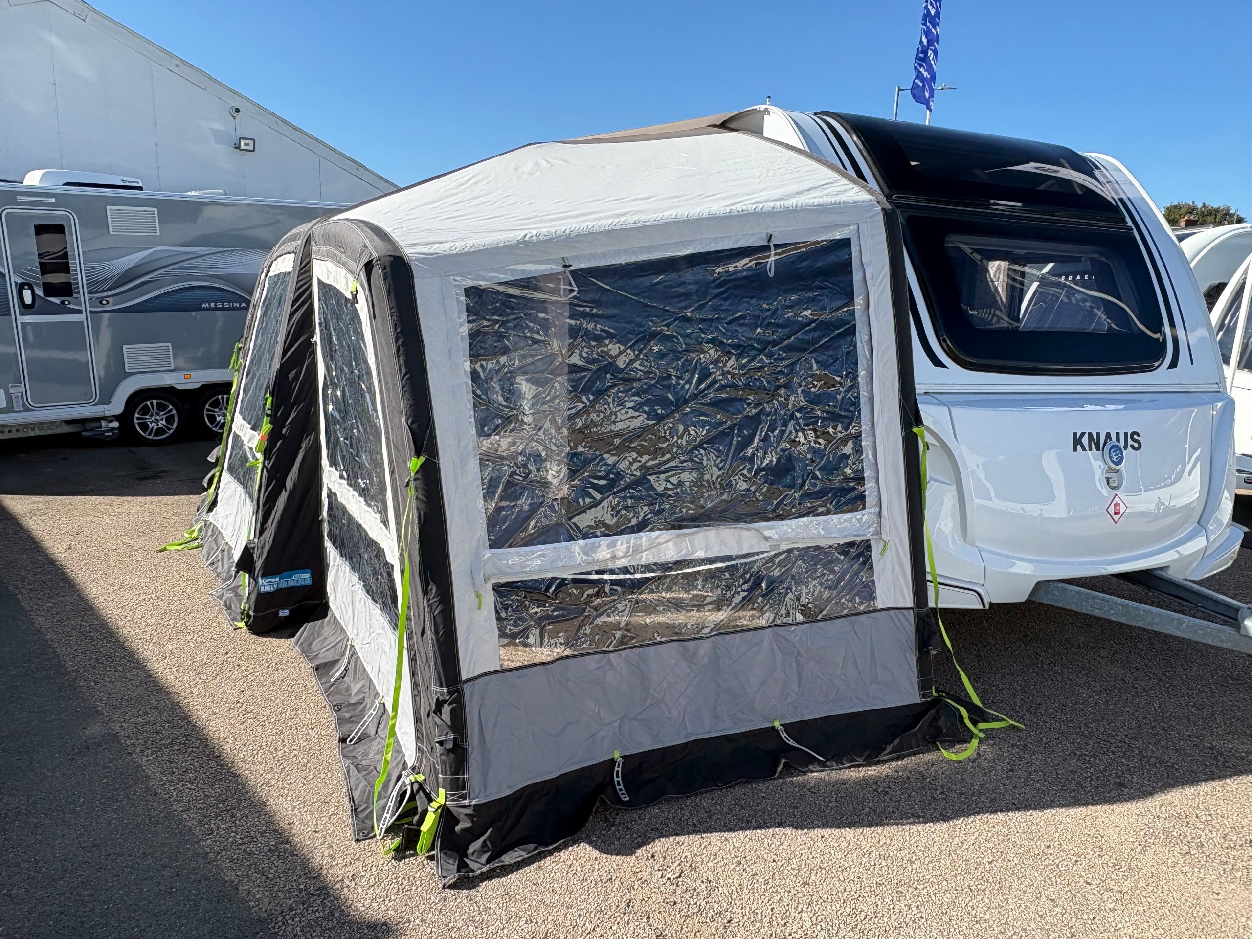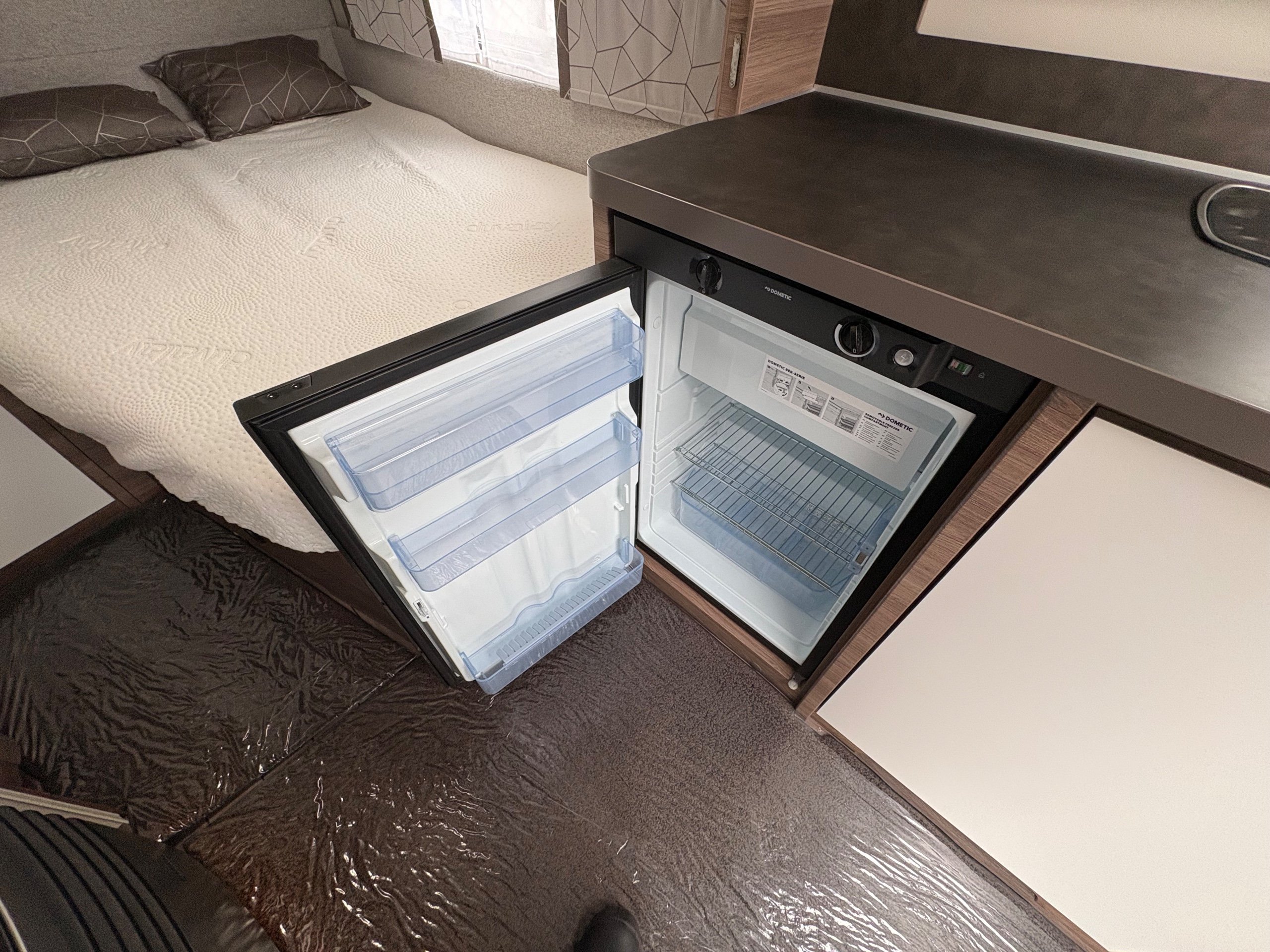 Year: 2019, Berth: 4, Internal length: 5.32m / 17'4", External length: 7.31m / 23'9", Width: 2.32m / 7'6", Unladen weight: 1170kg, MTPLM: 1500kg, Awning size: 9.60m, Warranty: 12 months. This fixed bed caravan is continental specification so the door is on the off side not the near side. This model is designed for running from a mains hook up, with the leisure battery solely for the caravan mover and the water pump. A gas space heater is fitted along with a three burner gas hob and a three way fridge, while the hot water and microwave are purely mains. This caravan also has a caravan mover fitted to it, and also comes with both a storage cover and a Kampa air awning. The fixed double bed is at the rear while the wrap around front seats, make into another generous double bed. -