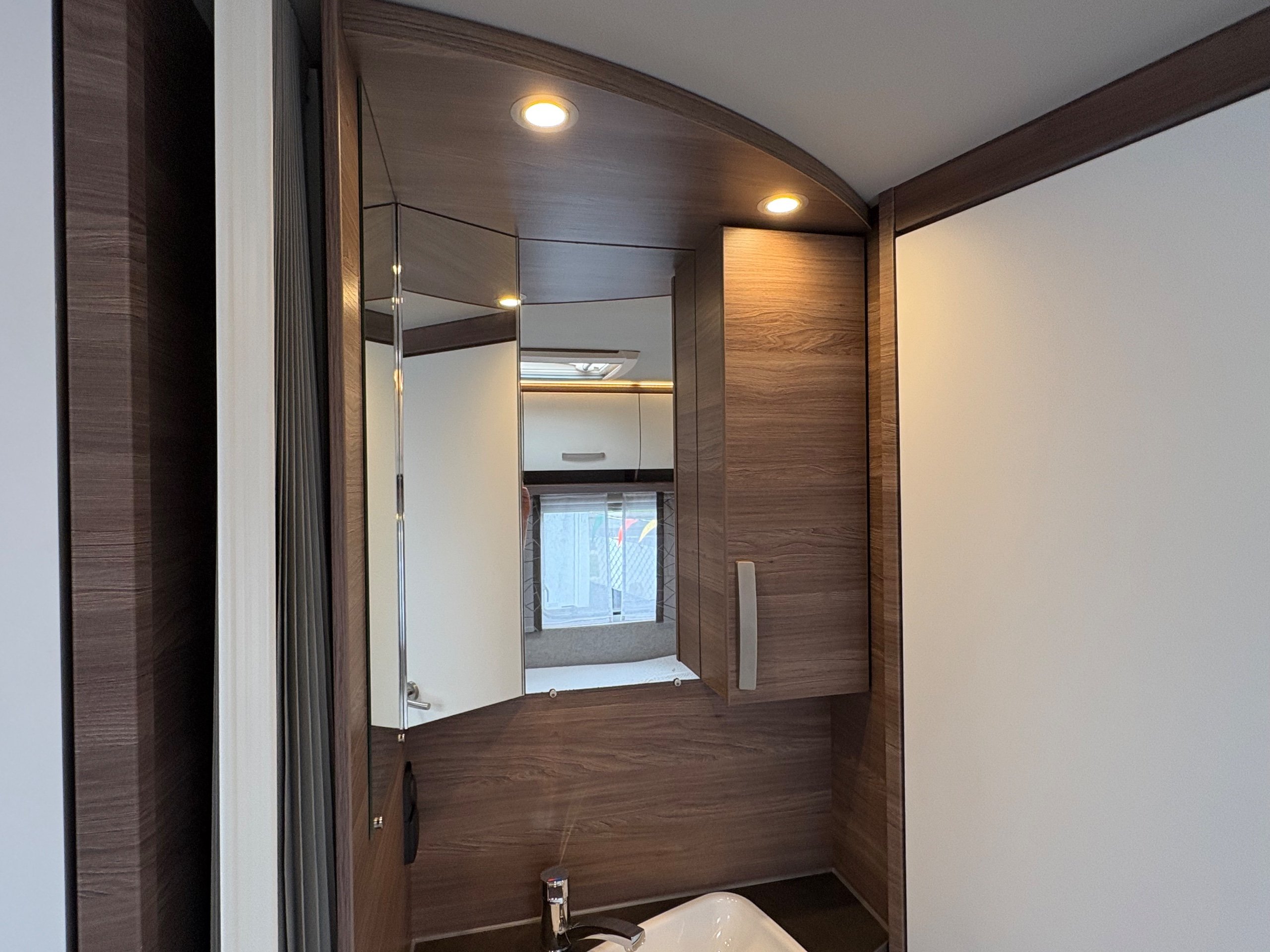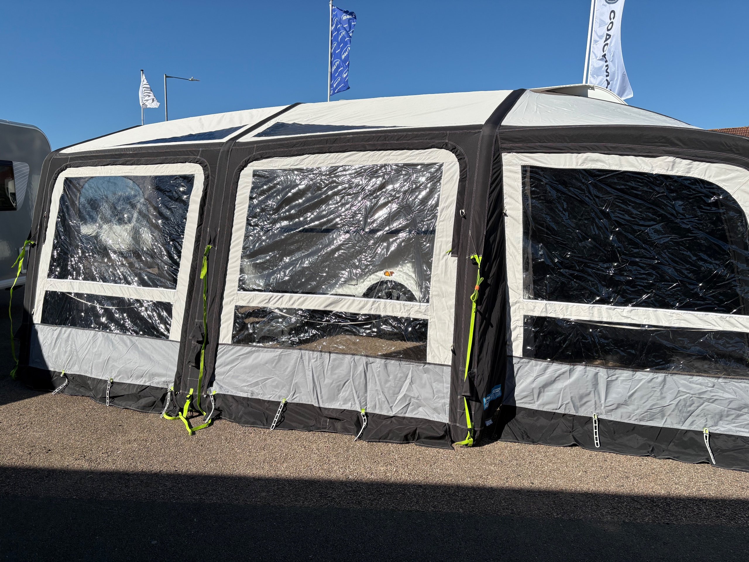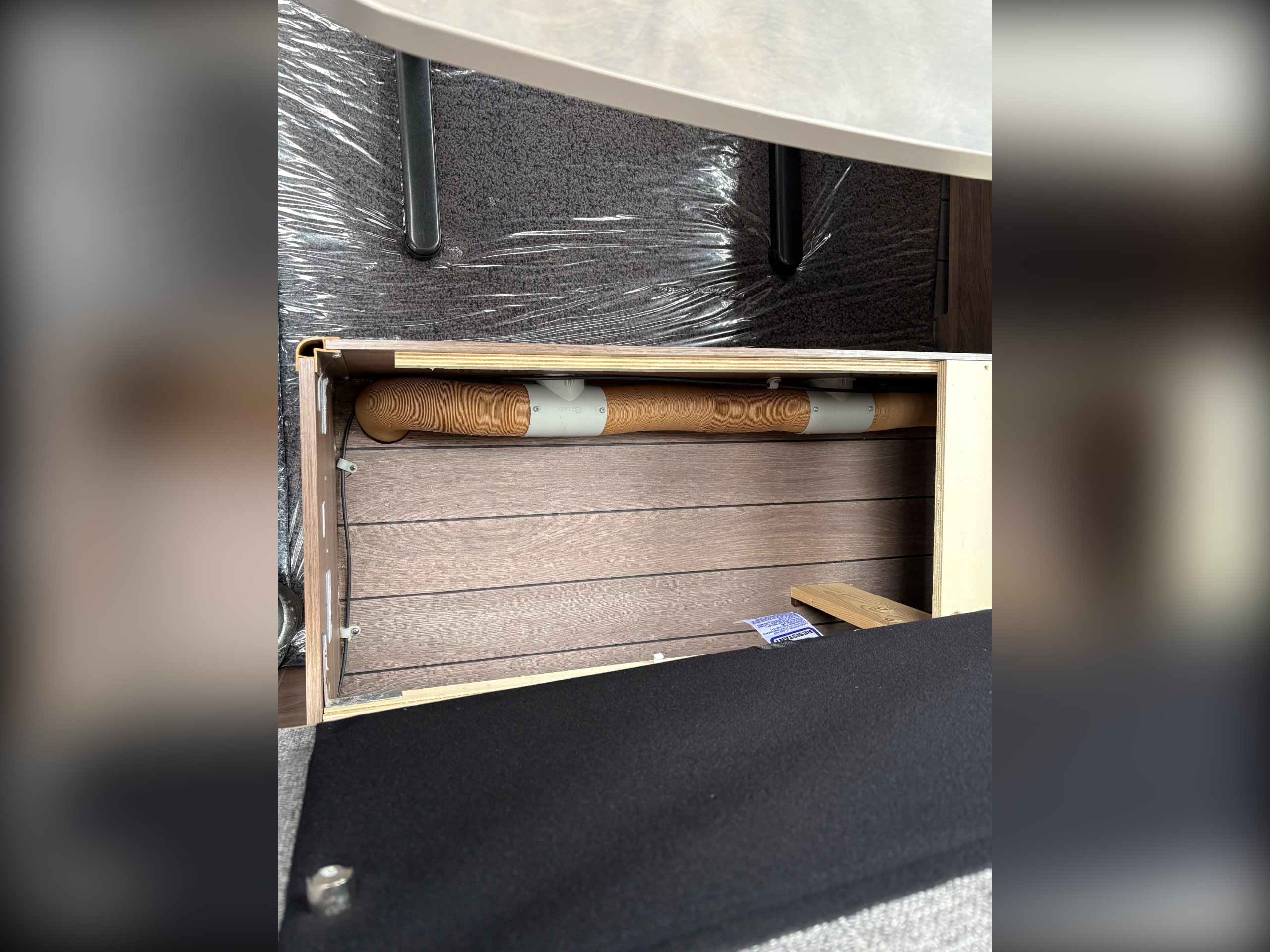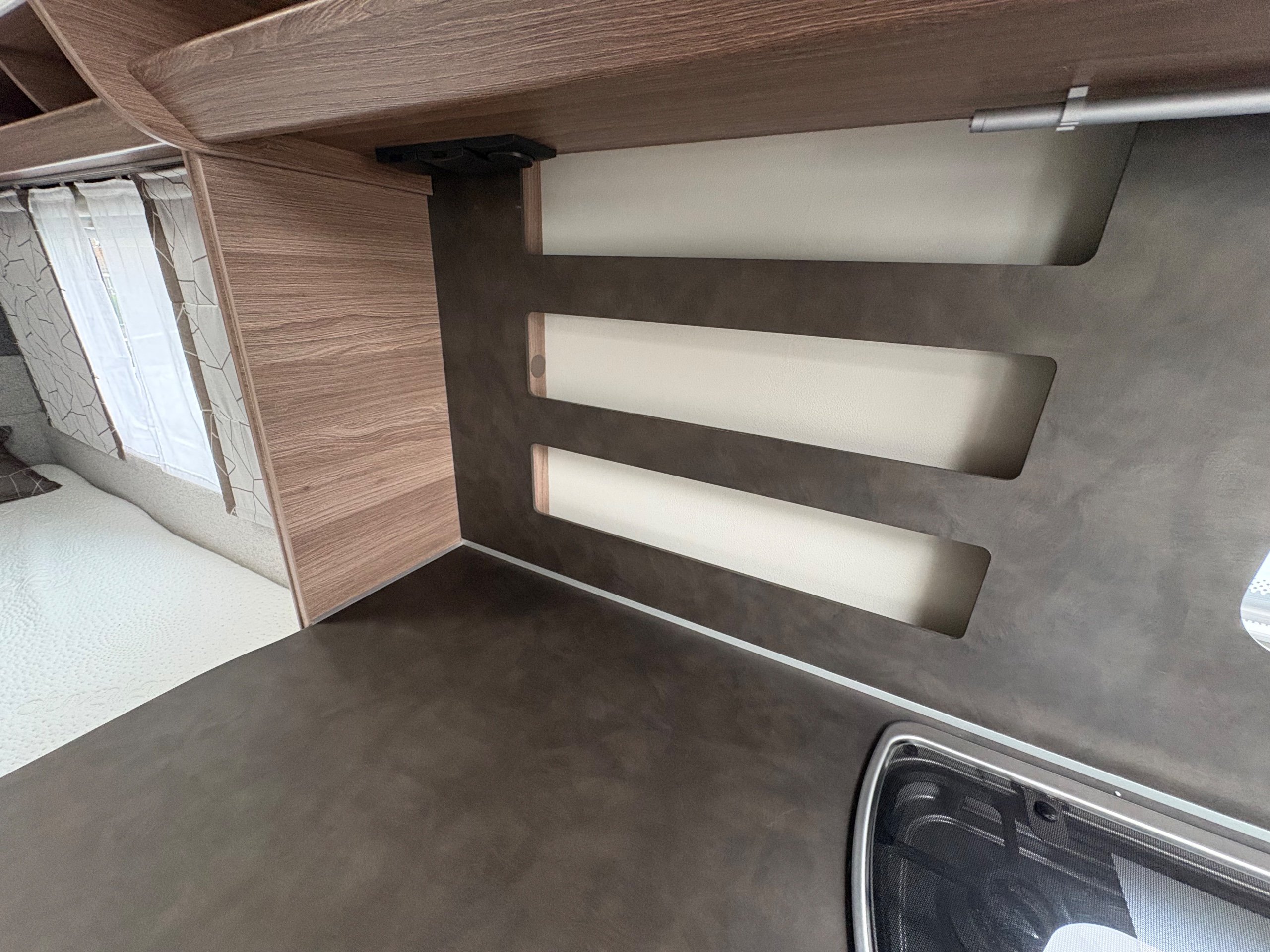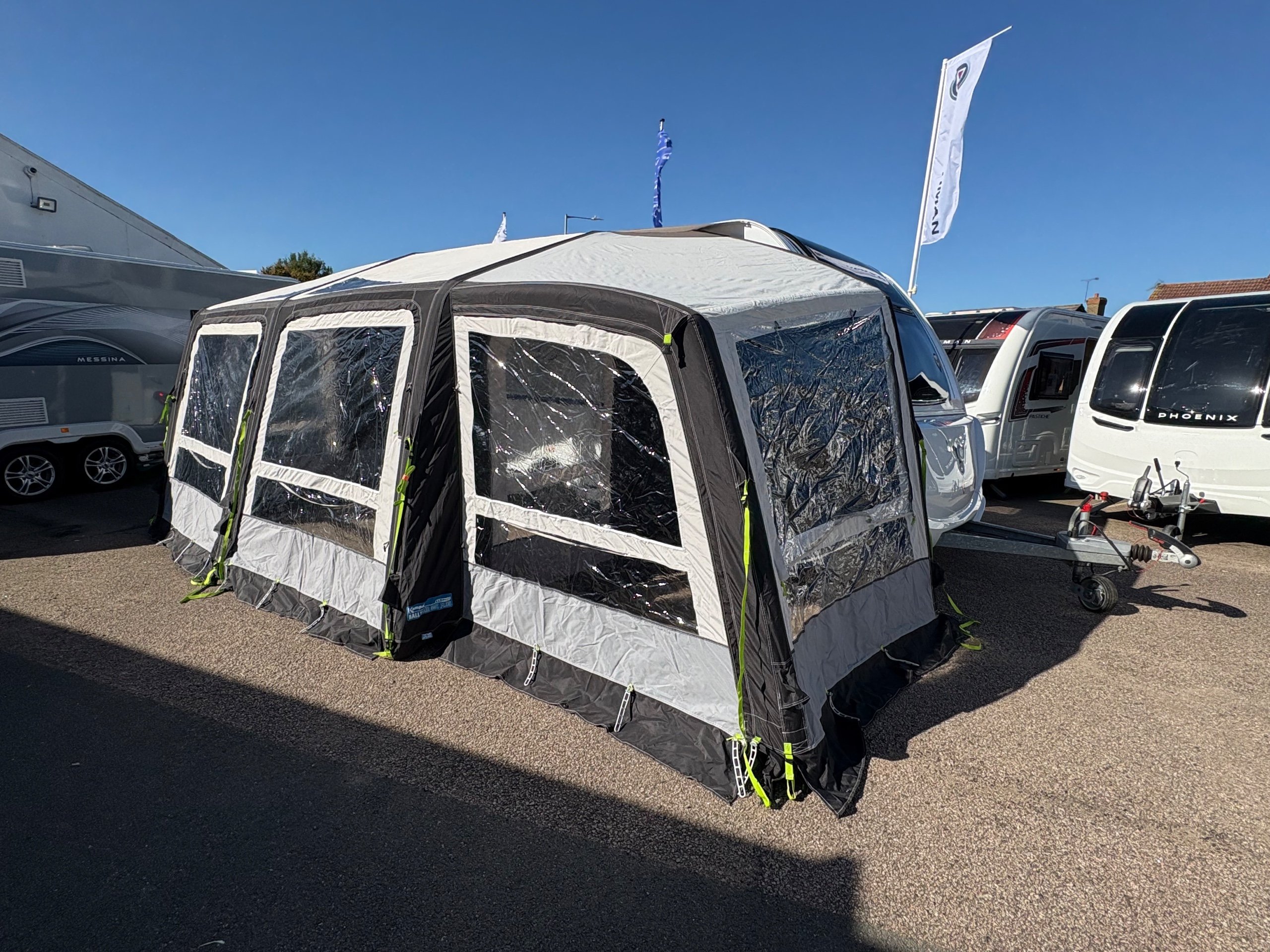 Year: 2019, Berth: 4, Internal length: 5.32m / 17'4", External length: 7.31m / 23'9", Width: 2.32m / 7'6", Unladen weight: 1170kg, MTPLM: 1500kg, Awning size: 9.60m, Warranty: 12 months. This fixed bed caravan is continental specification so the door is on the off side not the near side. This model is designed for running from a mains hook up, with the leisure battery solely for the caravan mover and the water pump. A gas space heater is fitted along with a three burner gas hob and a three way fridge, while the hot water and microwave are purely mains. This caravan also has a caravan mover fitted to it, and also comes with both a storage cover and a Kampa air awning. The fixed double bed is at the rear while the wrap around front seats, make into another generous double bed. -